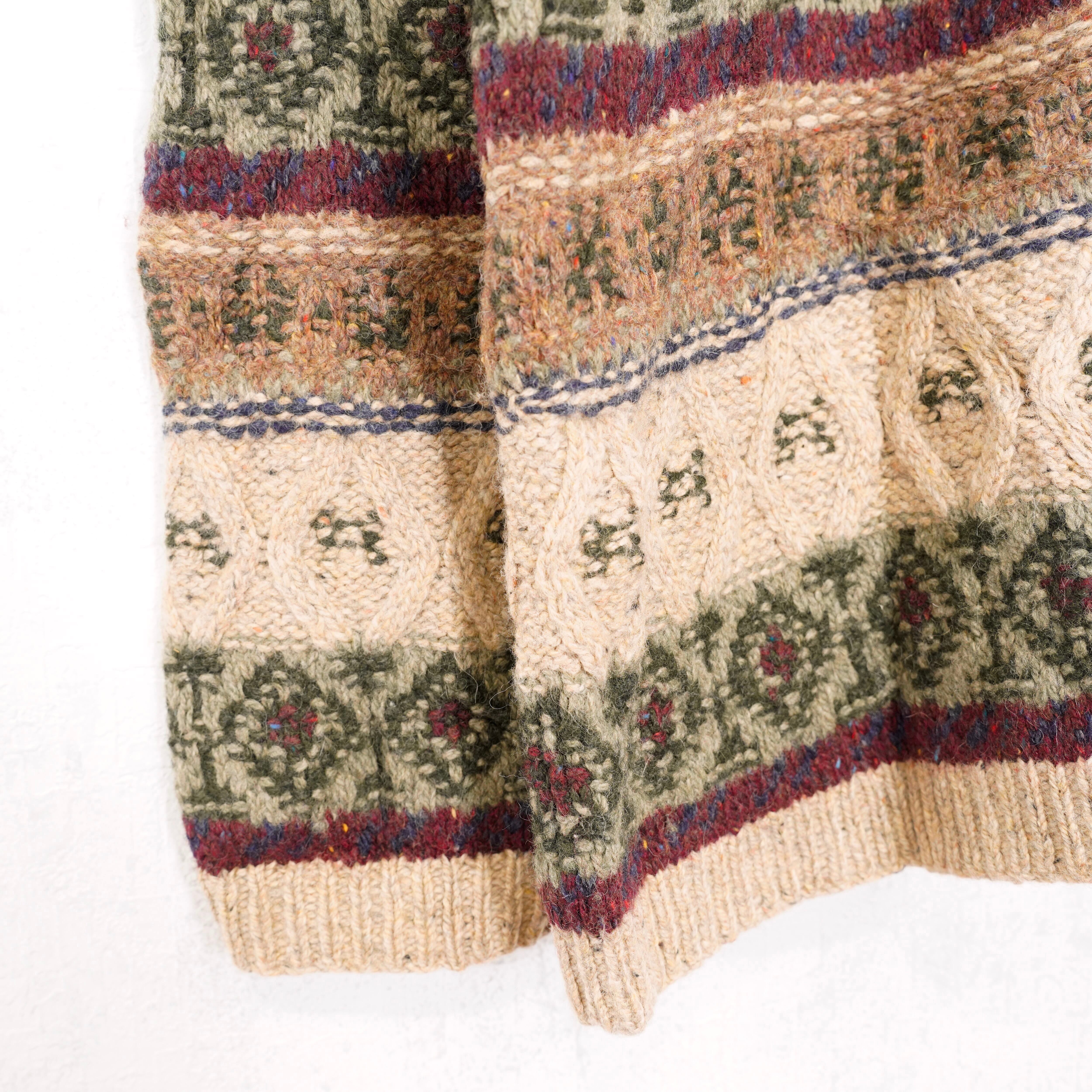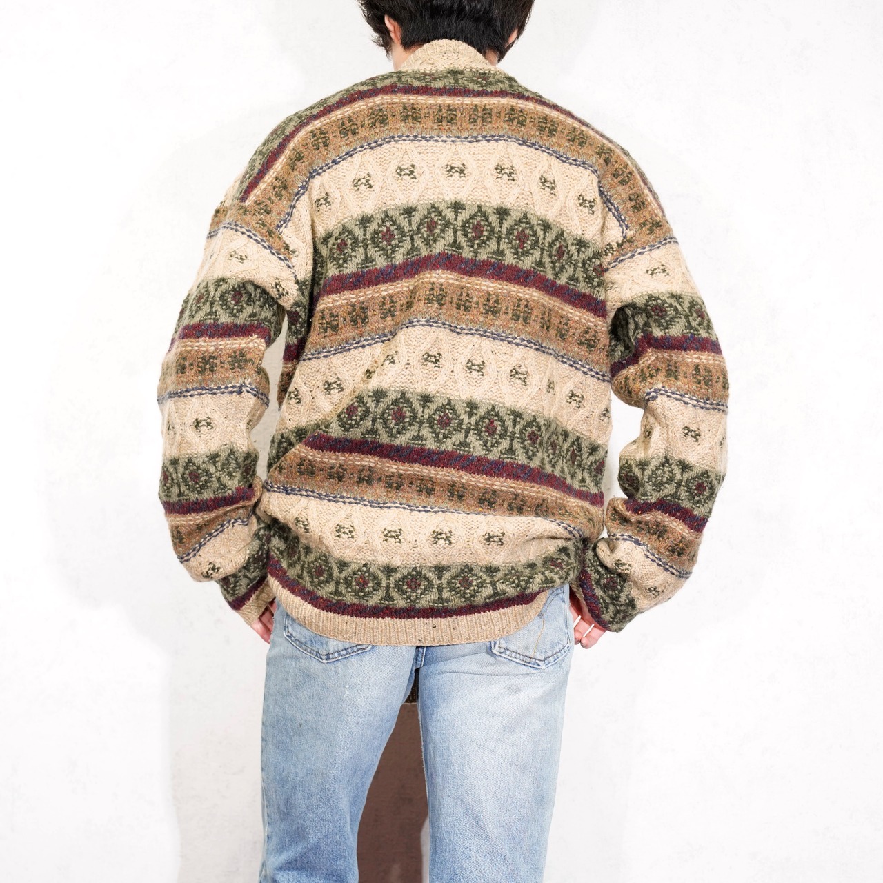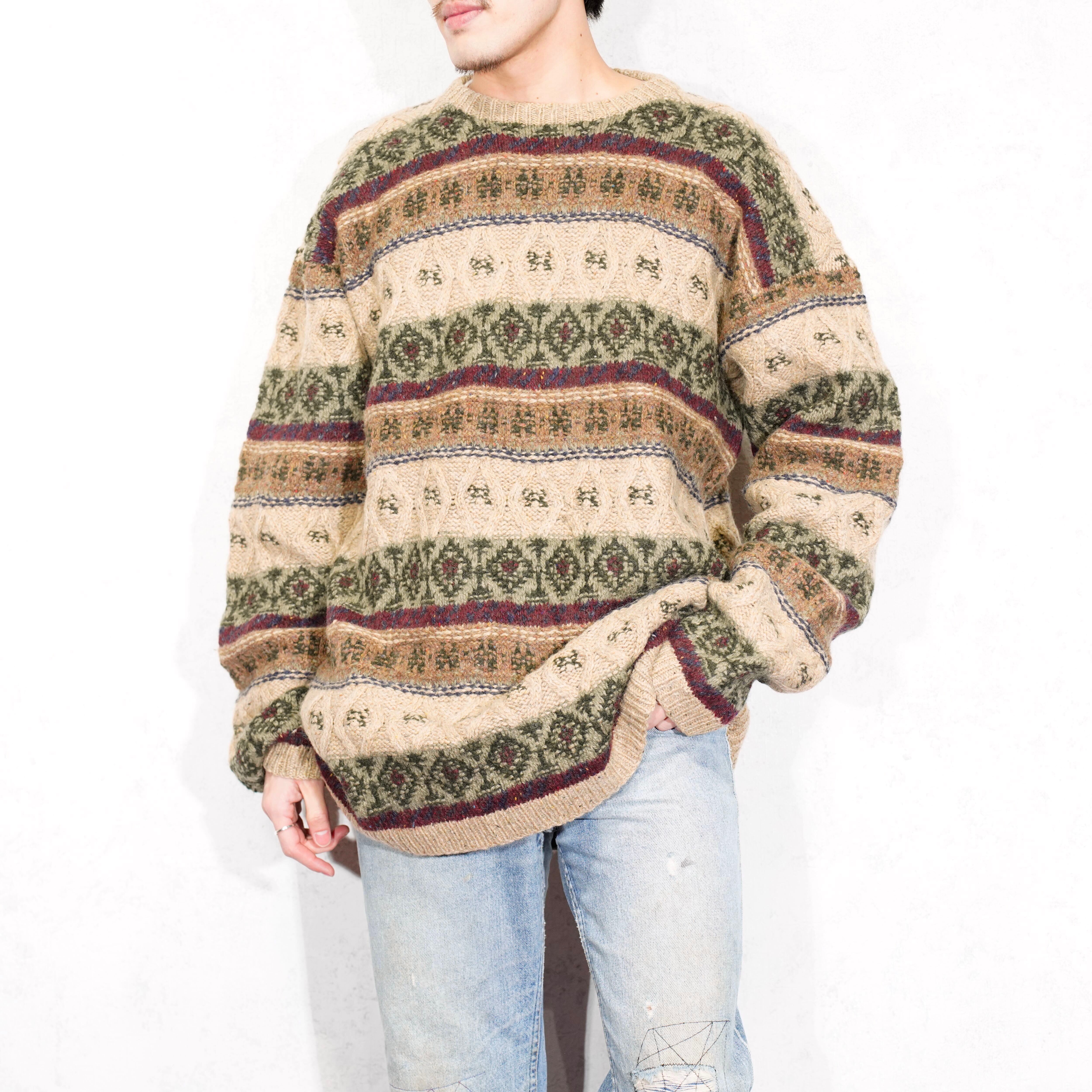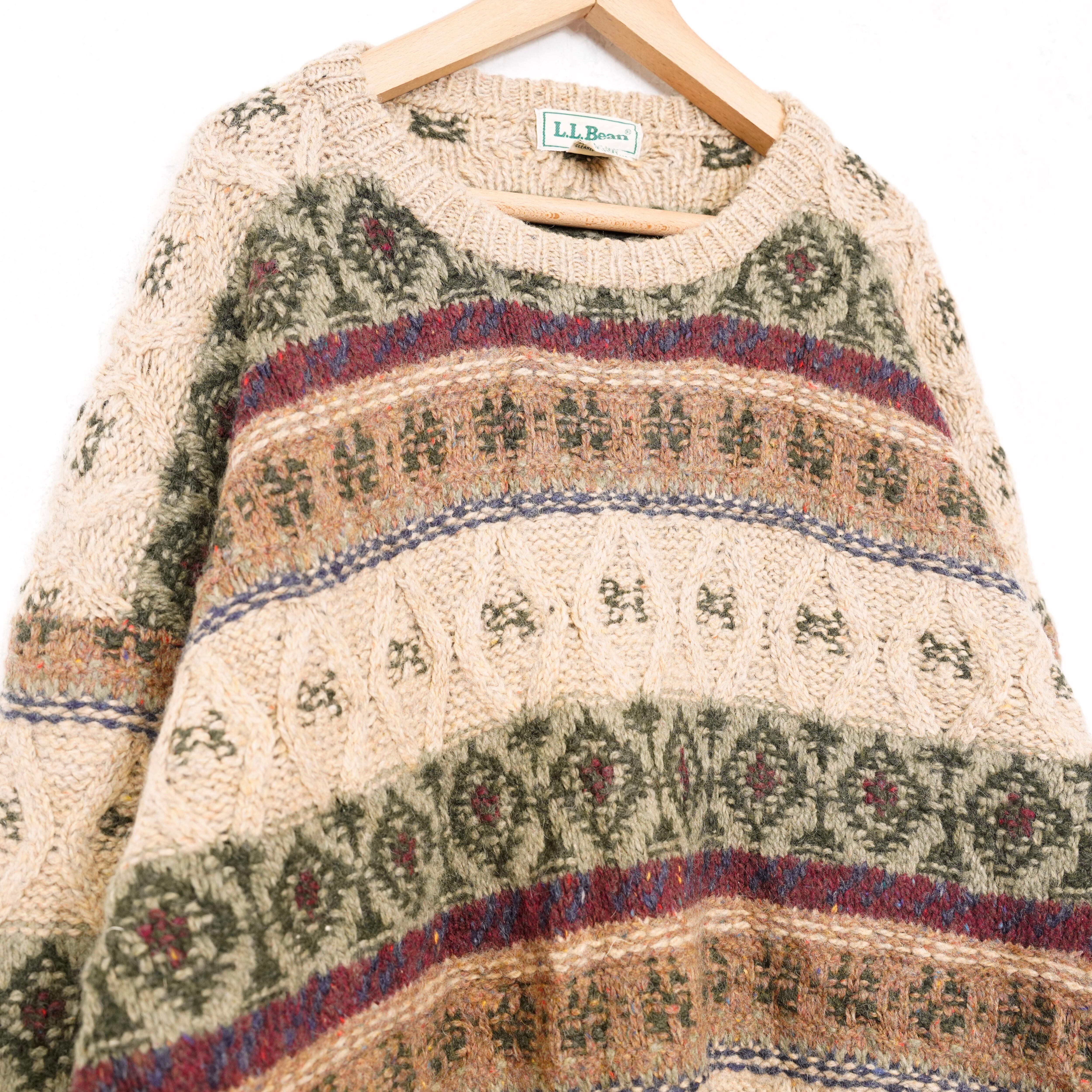 USA VINTAGE L.L.Bean PATTERNED DESIGN WOOL LAWGAUGE OVER KNIT/アメリカ古着エルエルビーン柄デザインウールローゲージオーバーニット