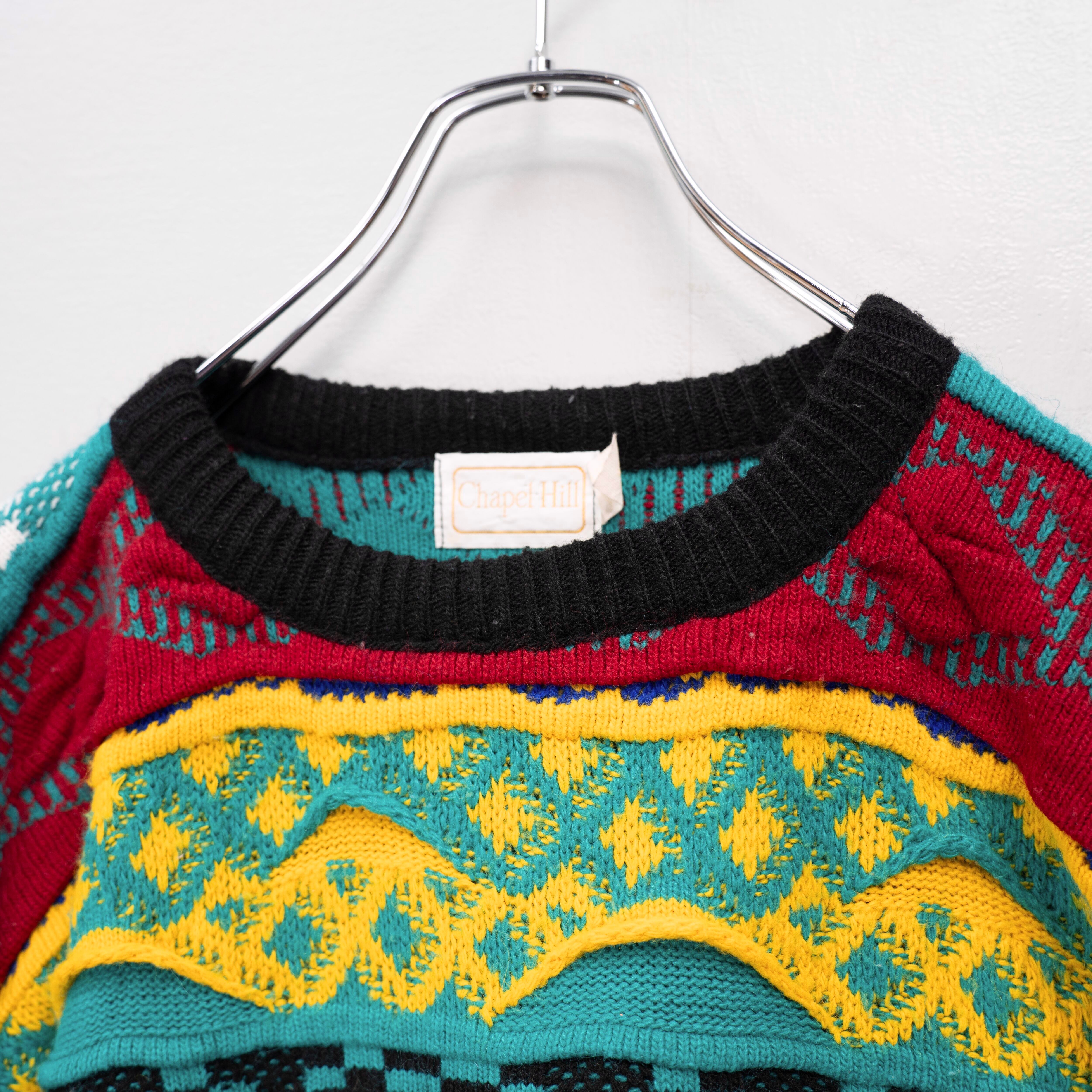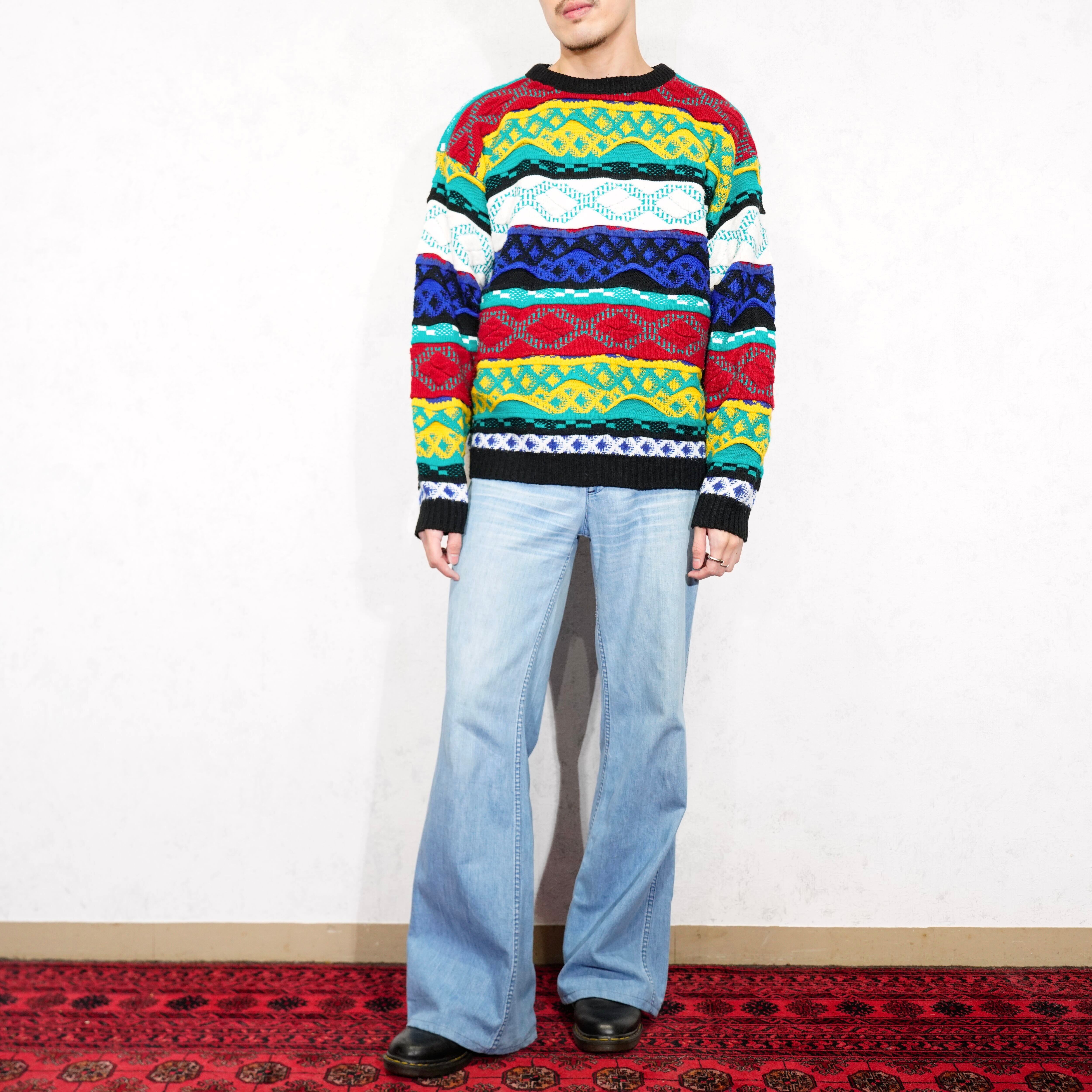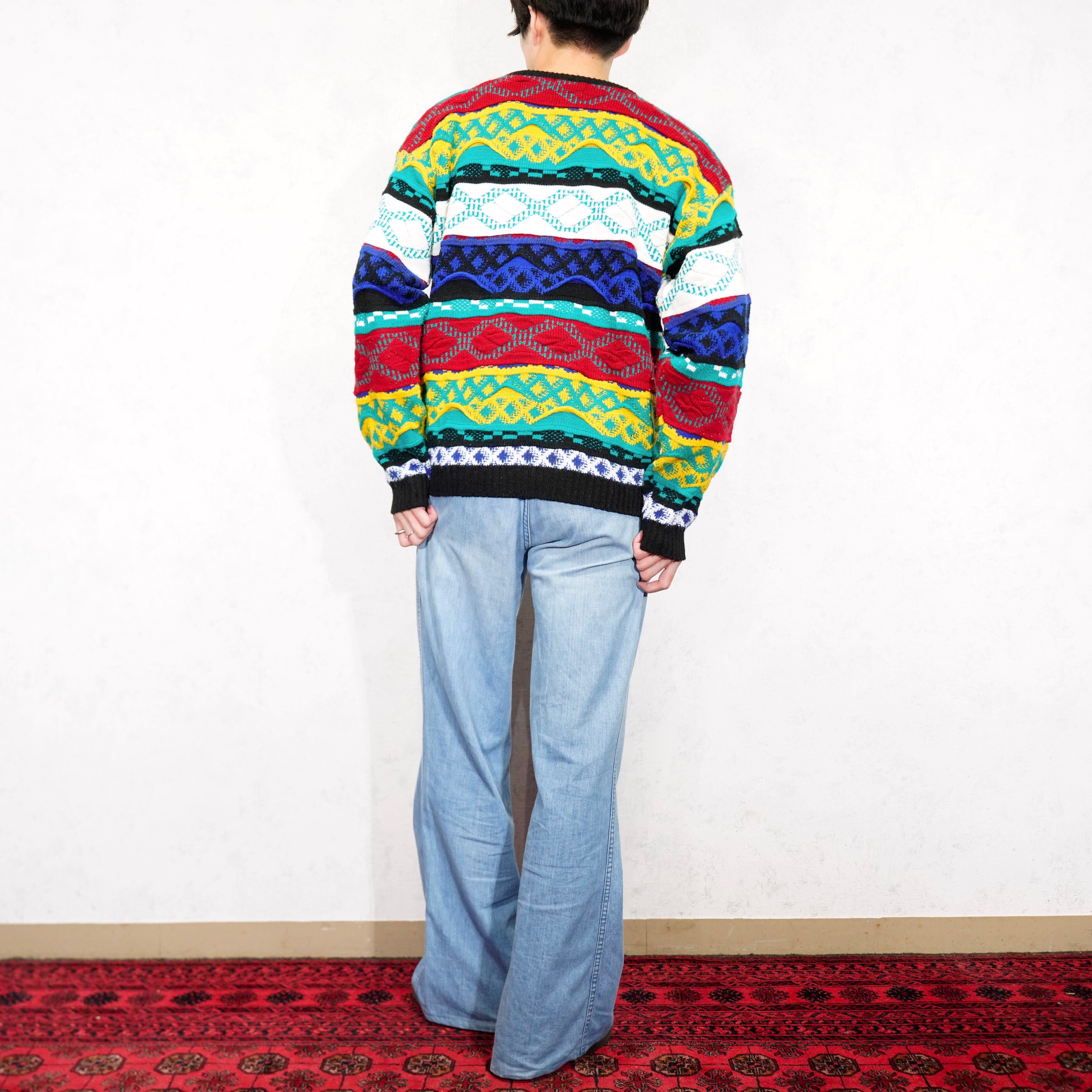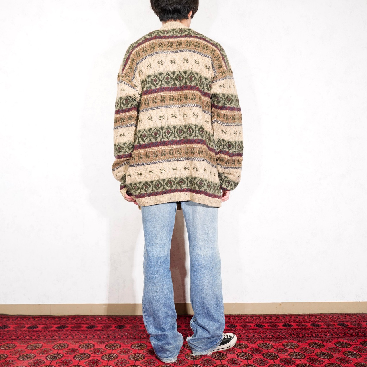 USA VINTAGE L.L.Bean PATTERNED DESIGN WOOL LAWGAUGE OVER KNIT/アメリカ古着エルエルビーン柄デザインウールローゲージオーバーニット