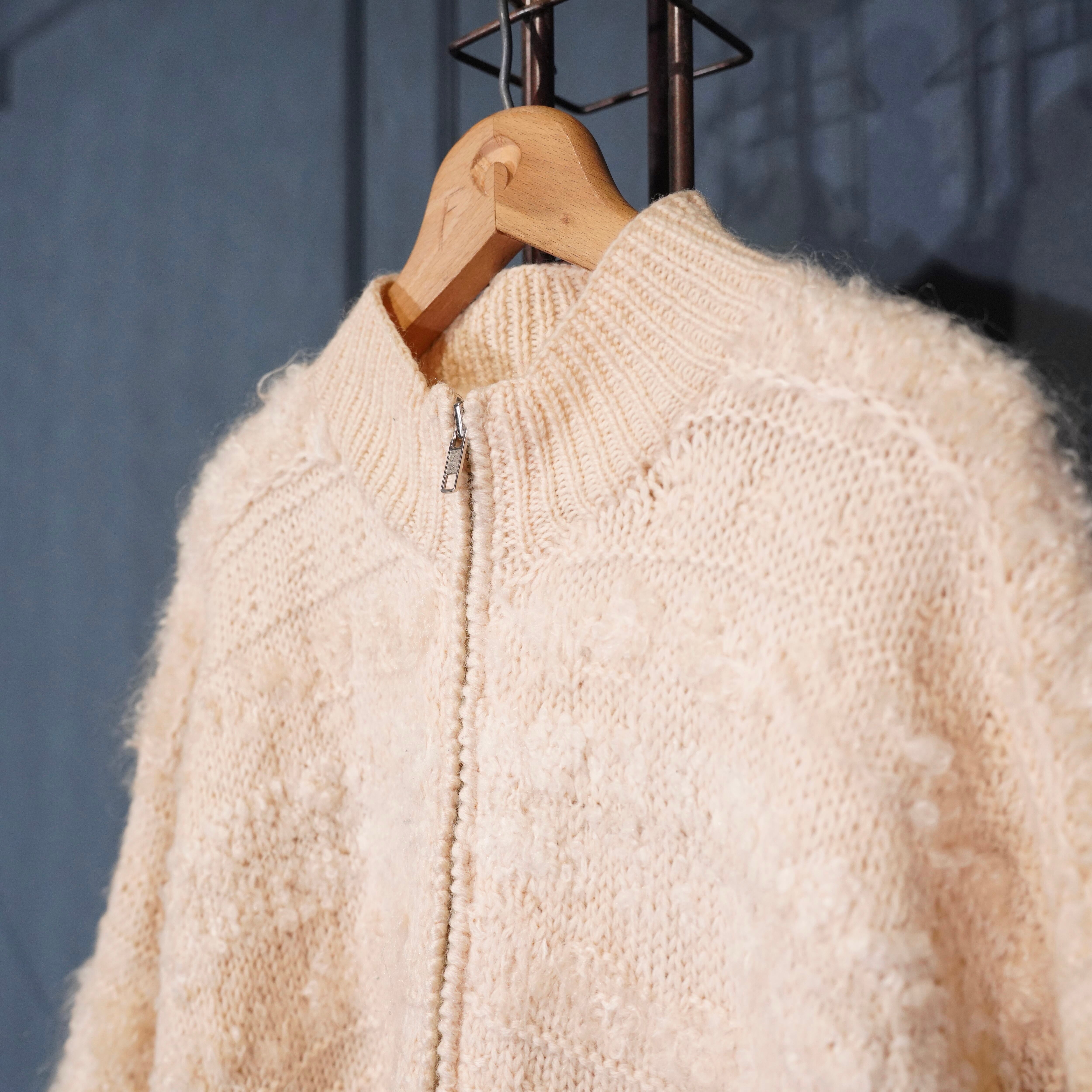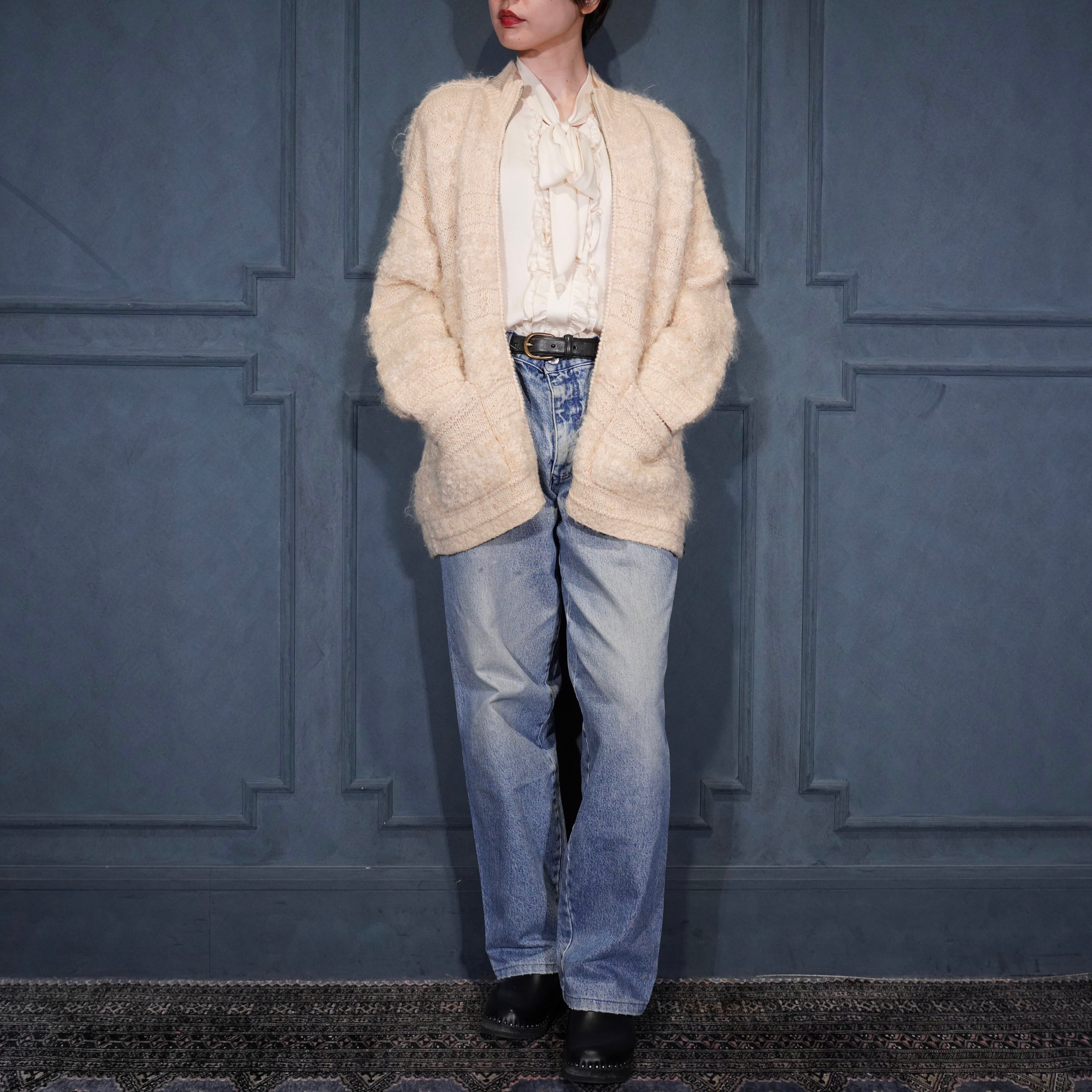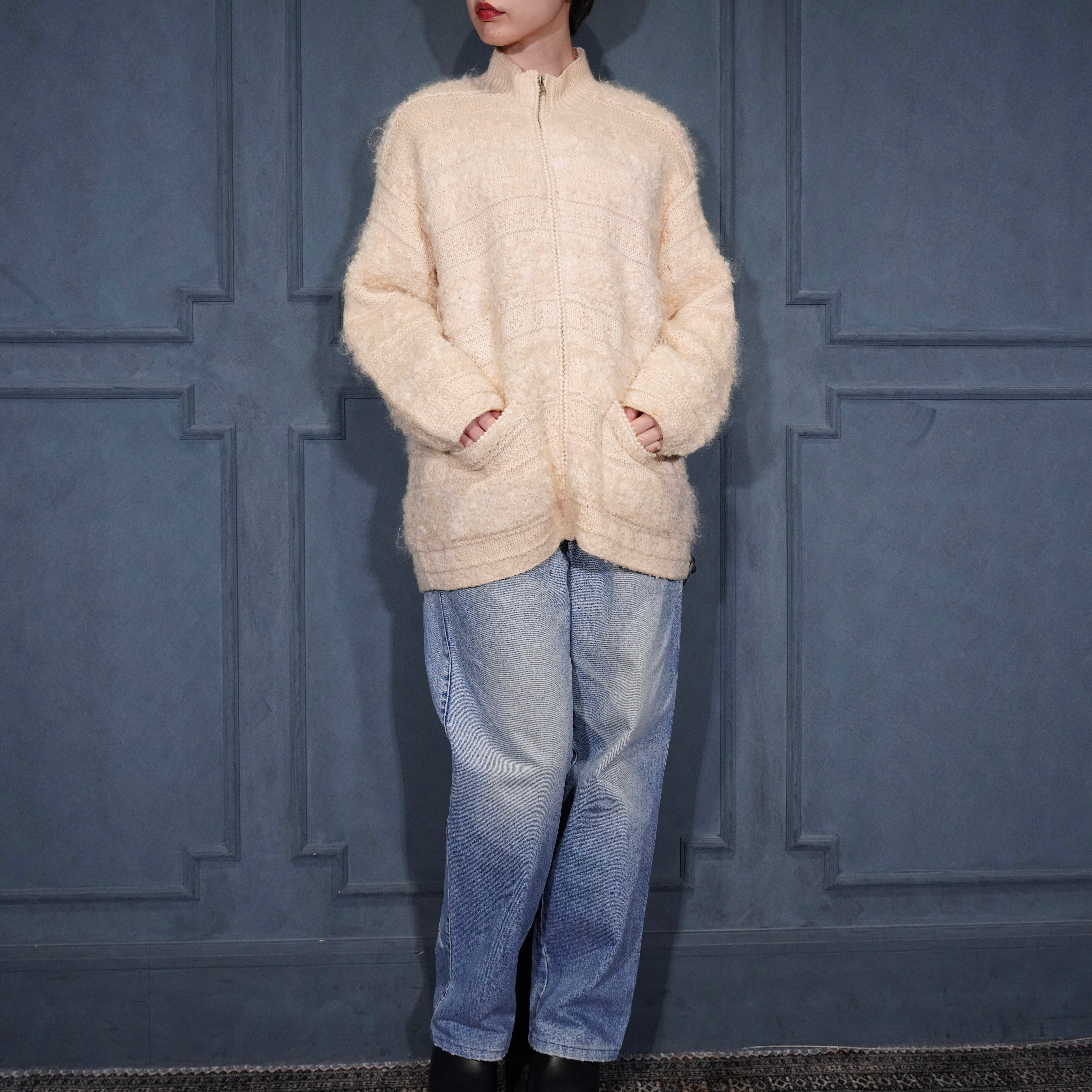 *SPECIAL ITEM* USA VINTAGE EXCLUSIVE HAND KNIT FOR JONES NEW YORK SPORT PETIT HAND MOHAIR WOOL KNIT ZIP UP BLOUSON/アメリカ古着ハンドモヘアウールジップアップニットブルゾン(ドライバーズニット)