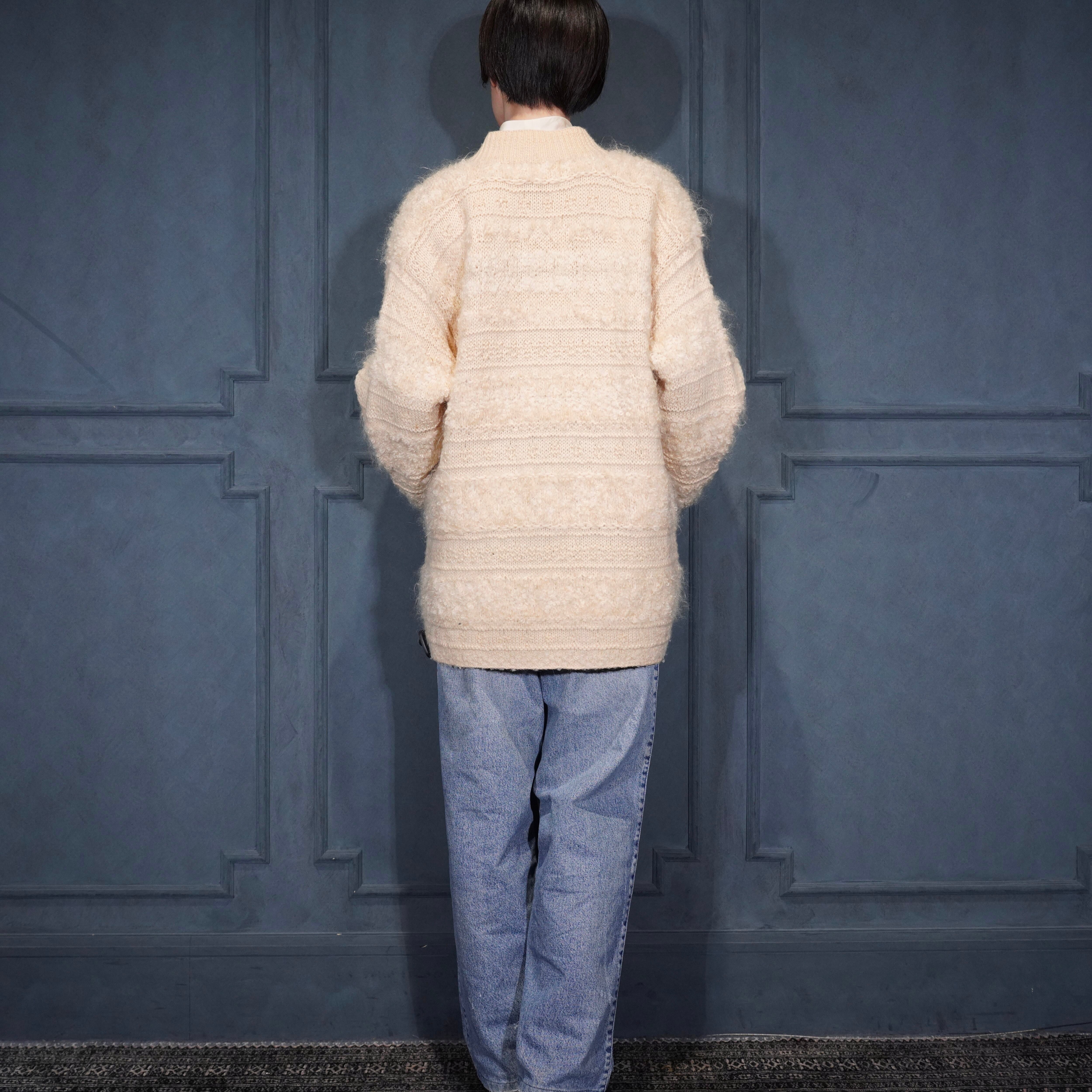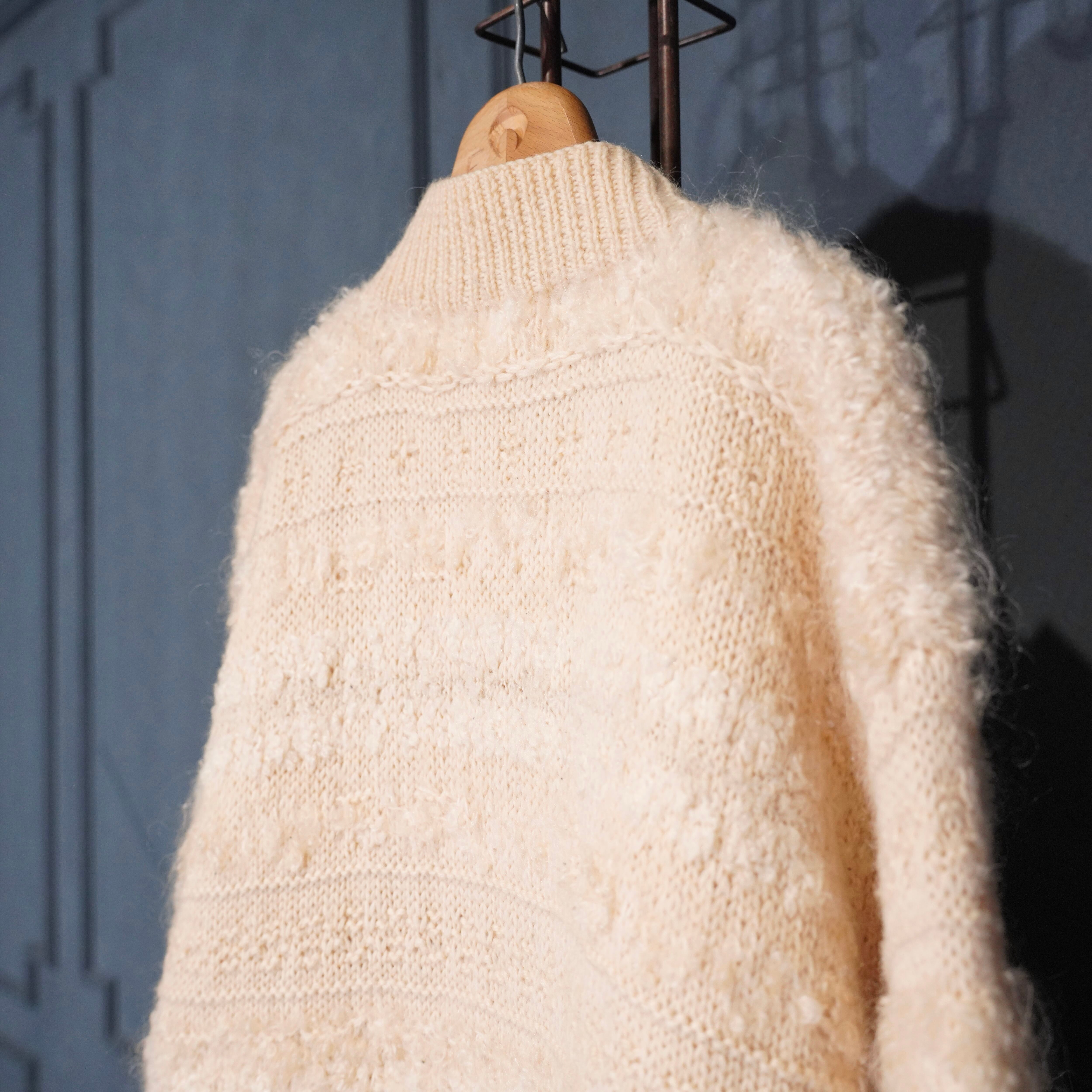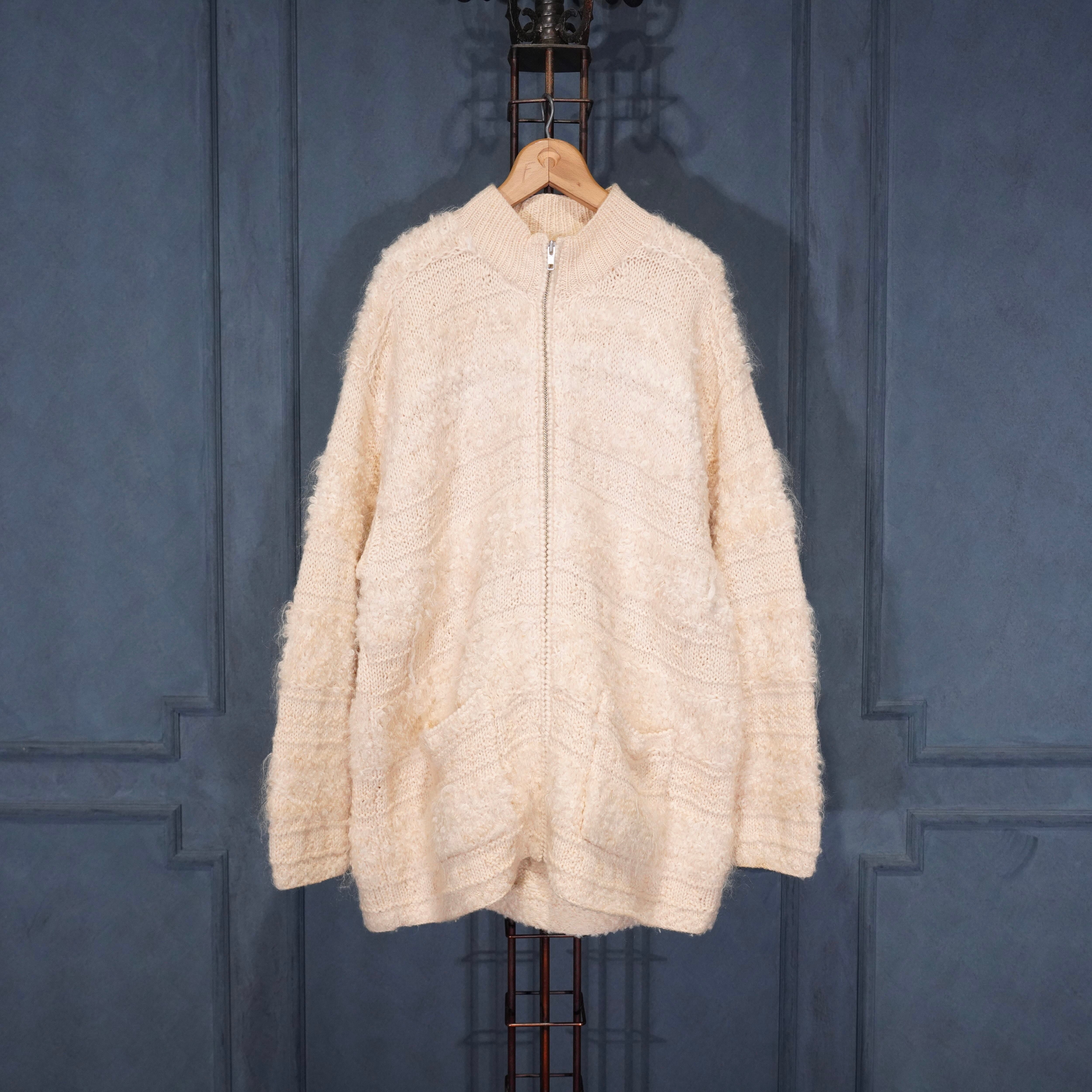 *SPECIAL ITEM* USA VINTAGE EXCLUSIVE HAND KNIT FOR JONES NEW YORK SPORT PETIT HAND MOHAIR WOOL KNIT ZIP UP BLOUSON/アメリカ古着ハンドモヘアウールジップアップニットブルゾン(ドライバーズニット)
