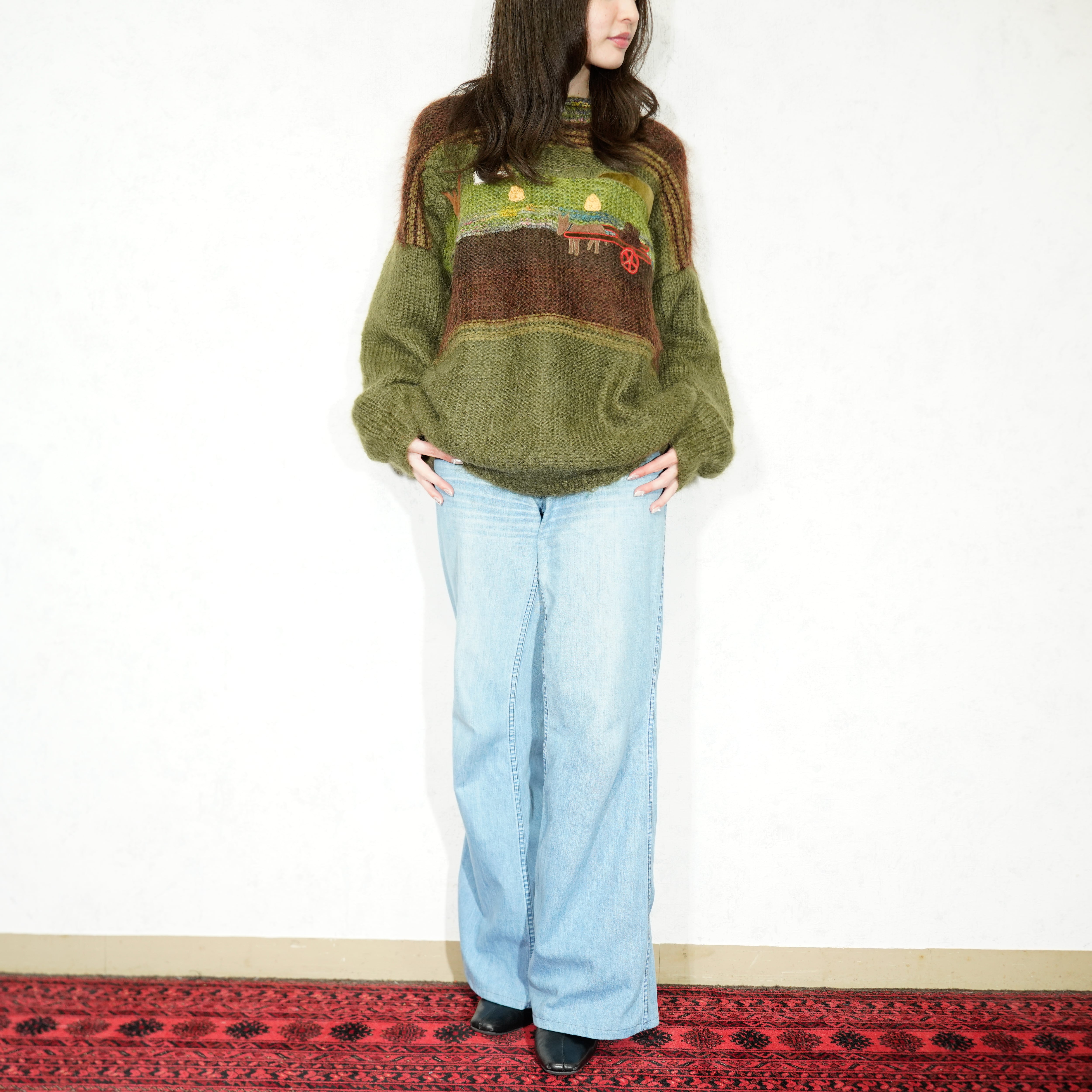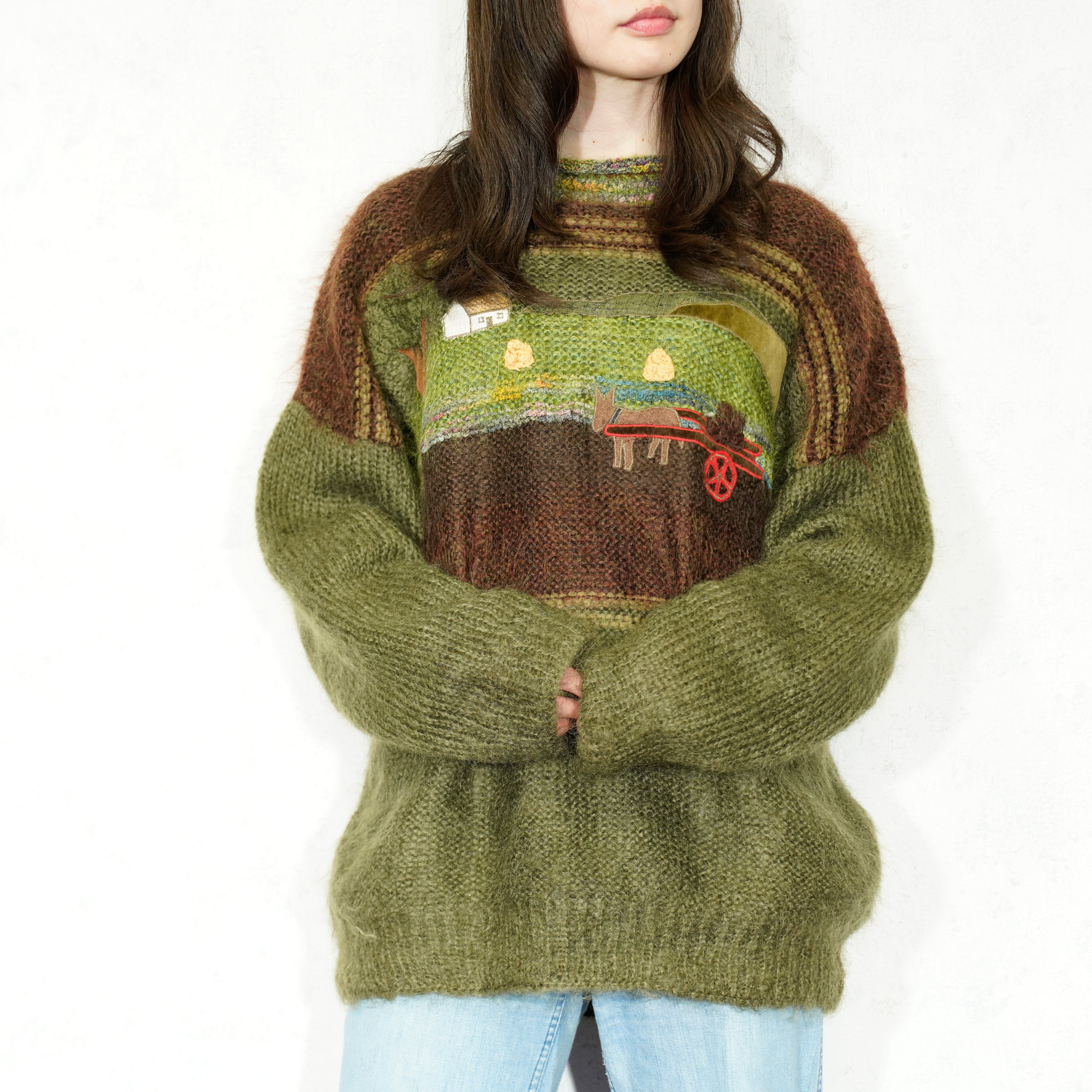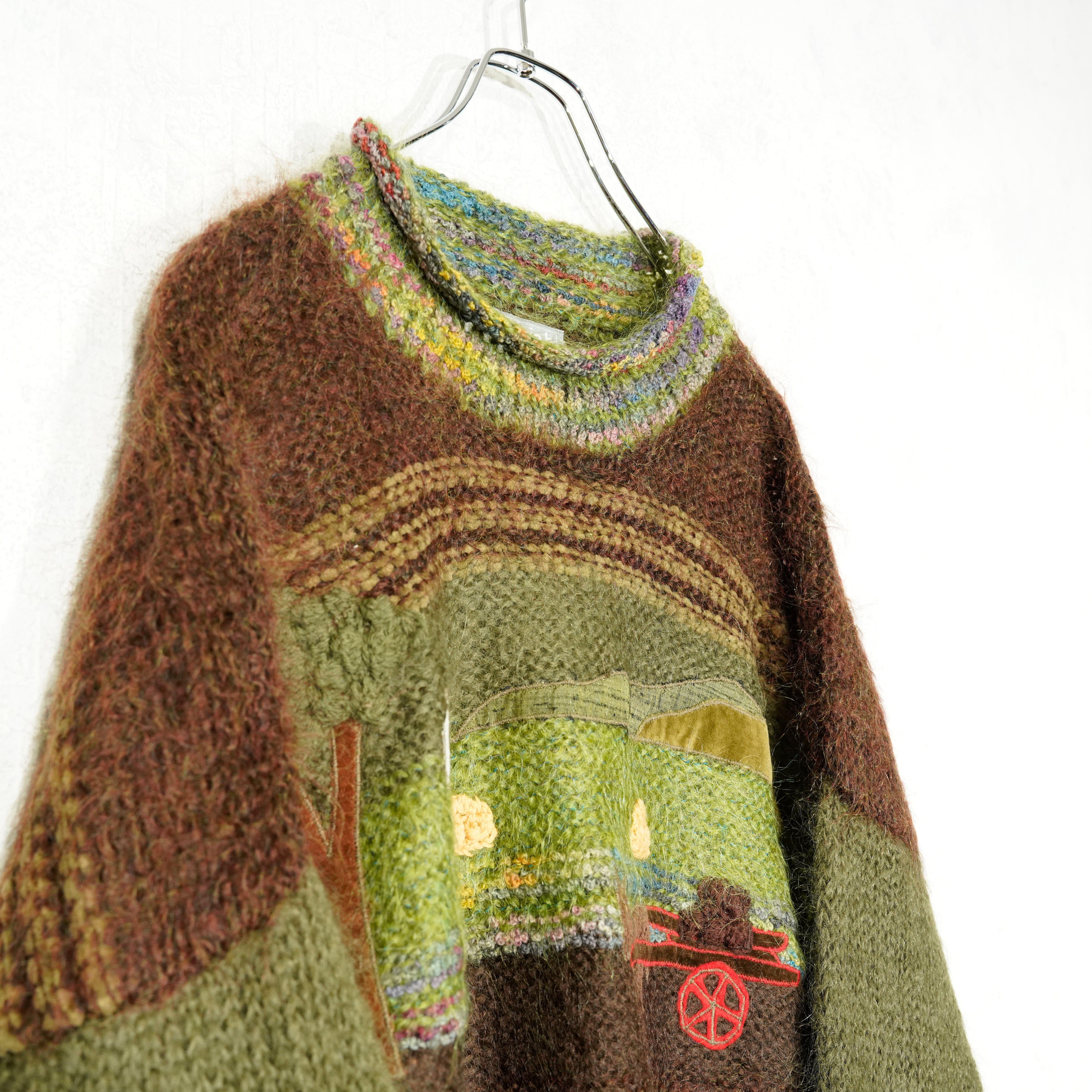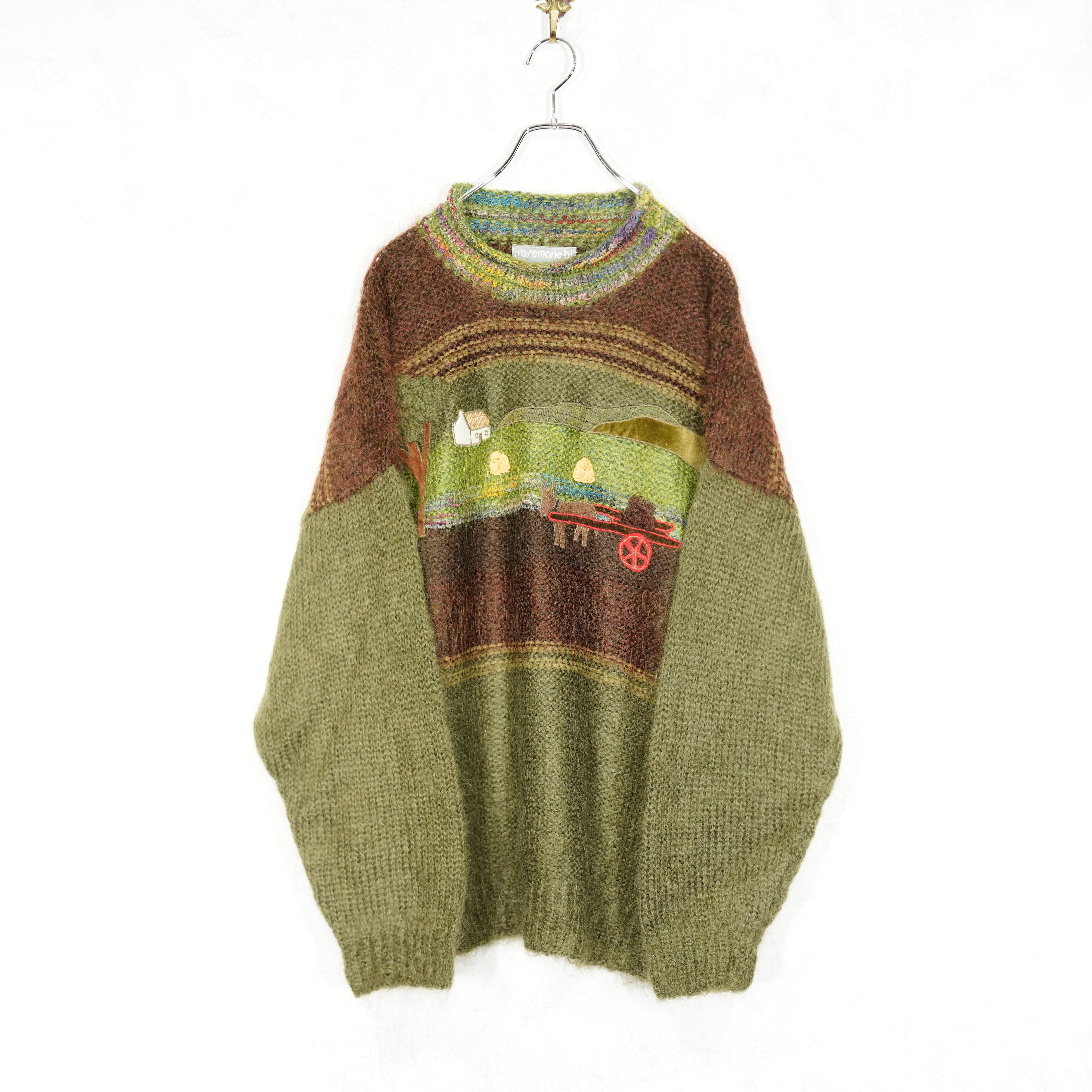 EU VINTAGE rosemorie b IRELAND EMBROIDERY DESIGN MOHAIR KNIT/ヨーロッパ古着刺繍デザインモヘアニット