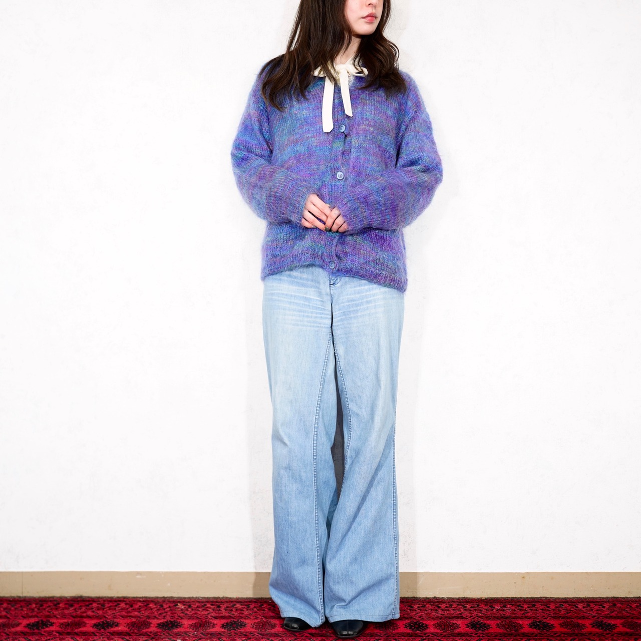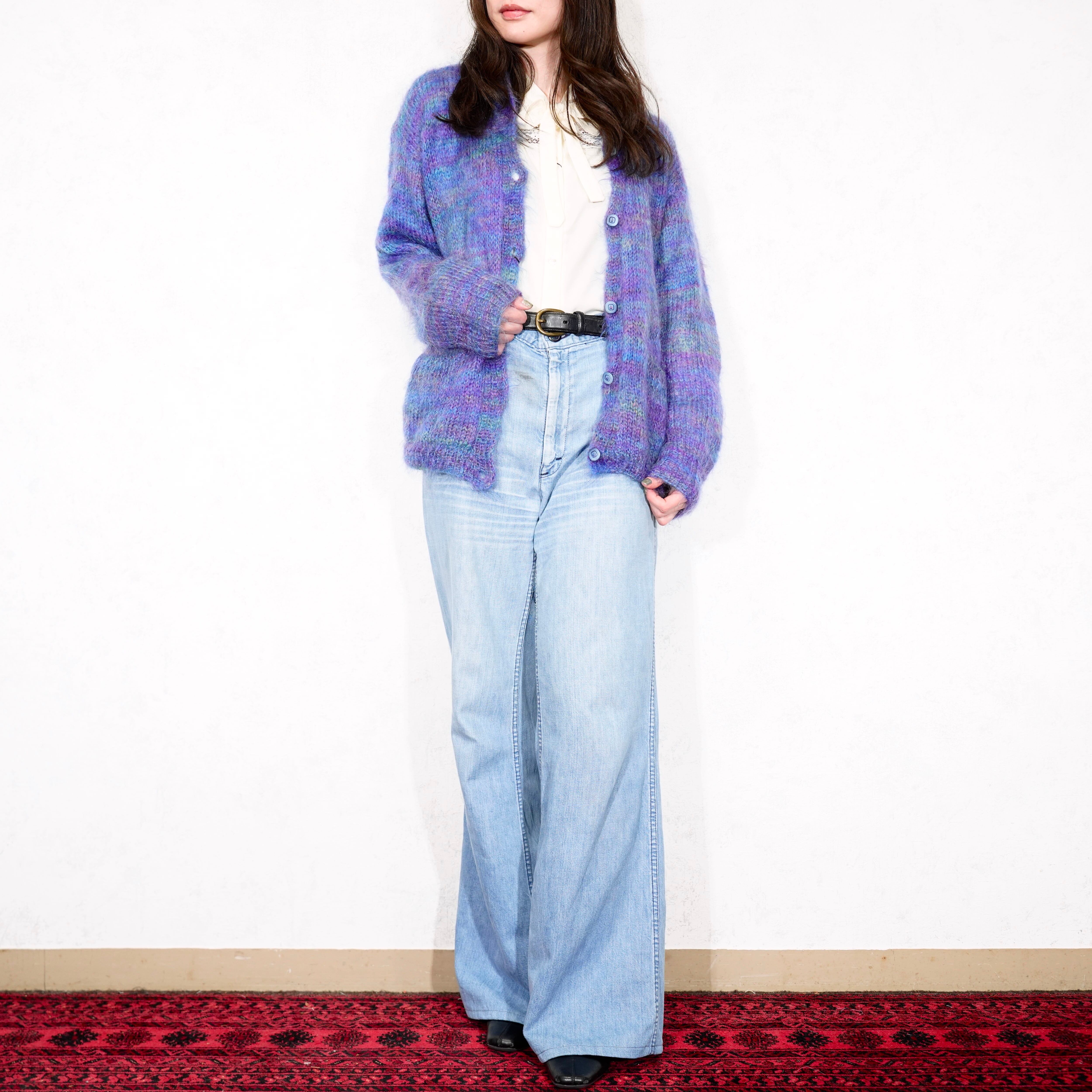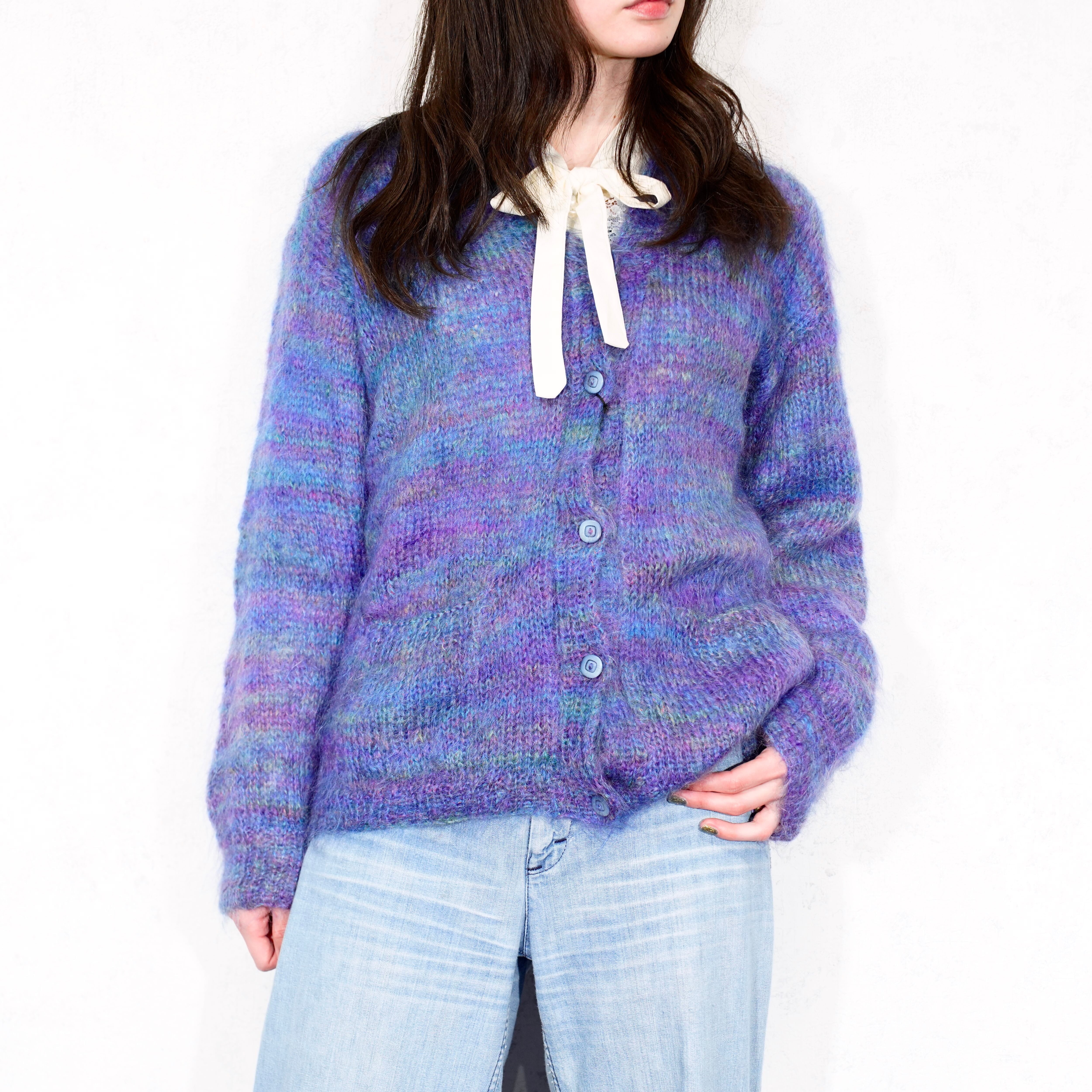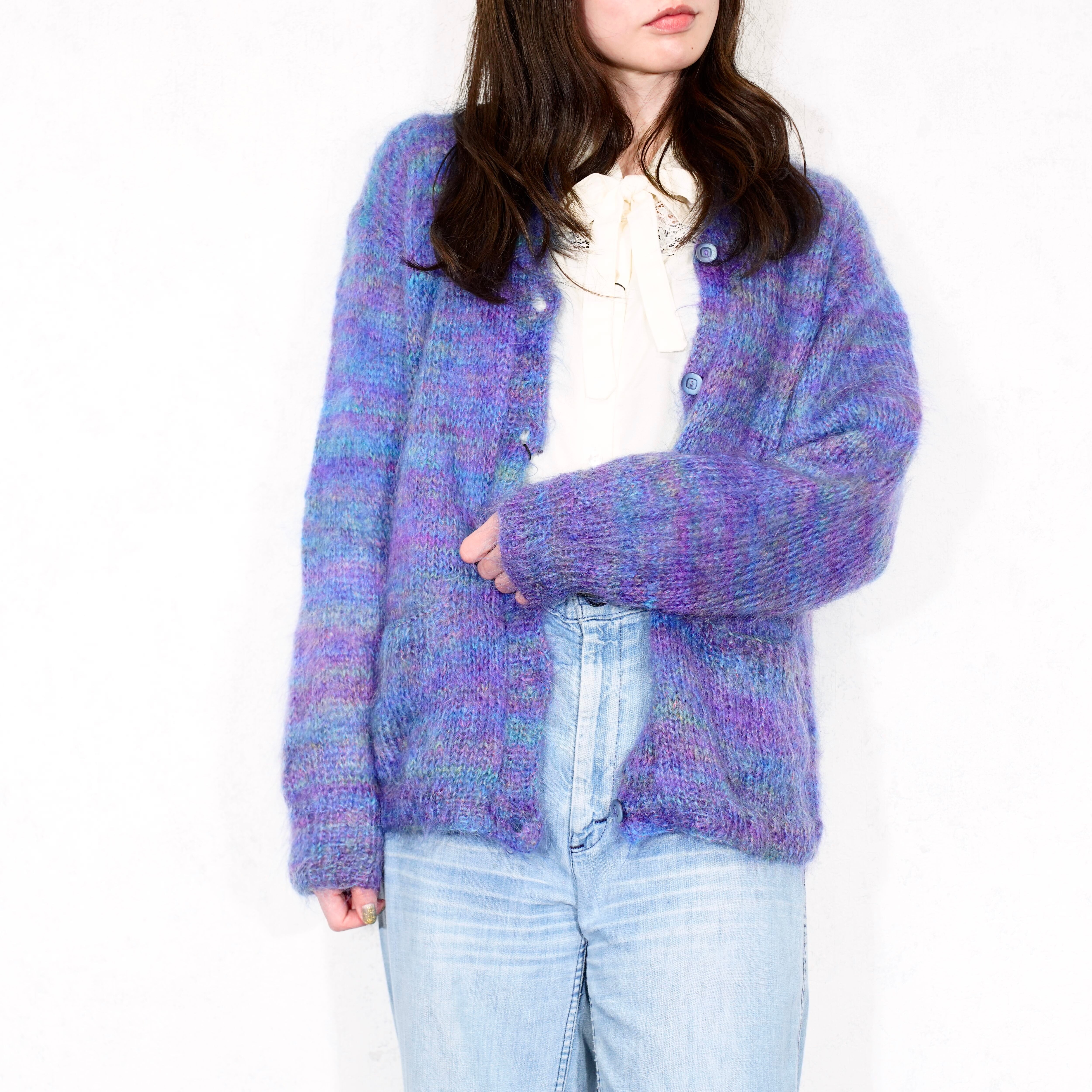 USA VINTAGE GRADATION DESIGN MOHAIR KNIT CARDIGAN/アメリカ古着グラデーションデザインモヘアニットカーディガン
