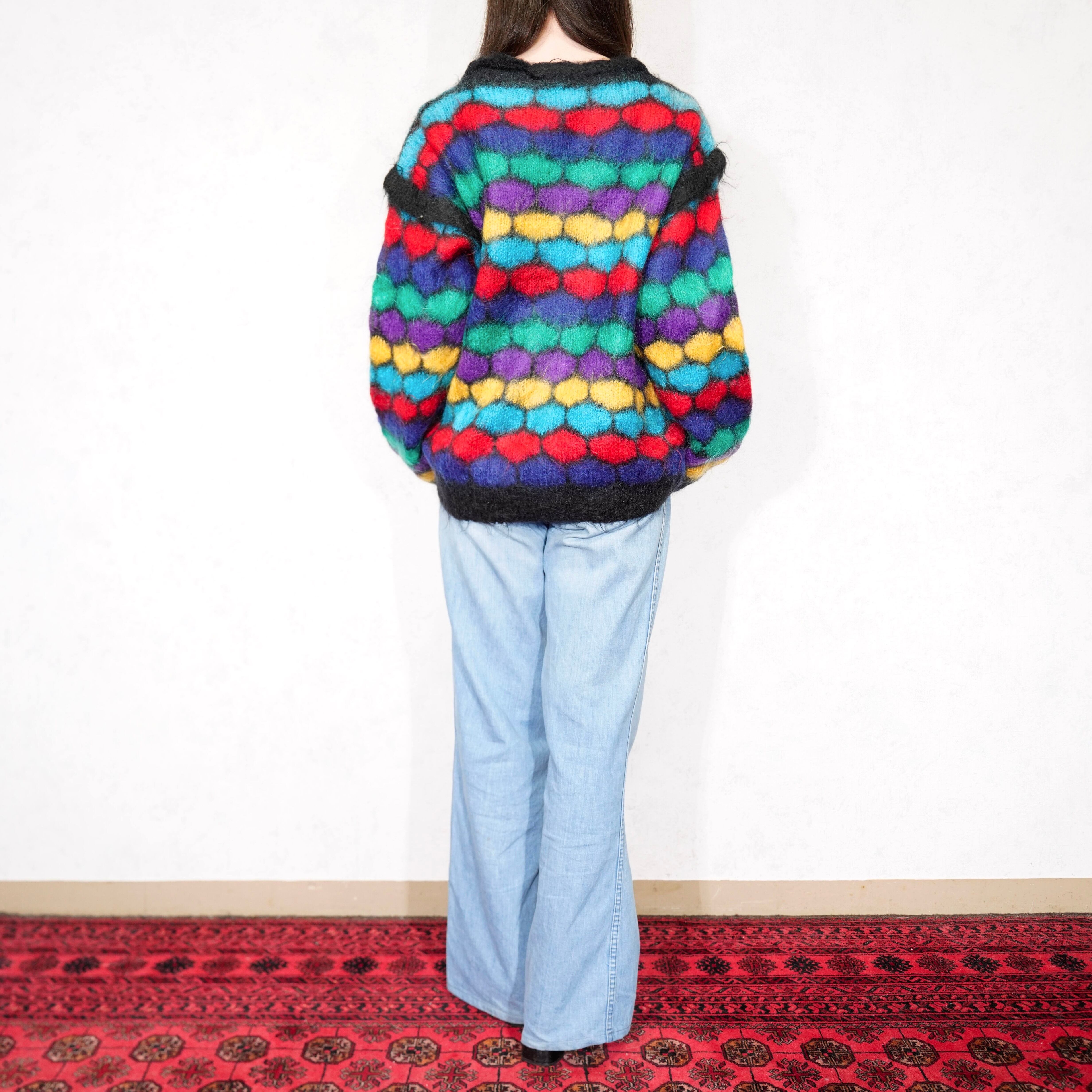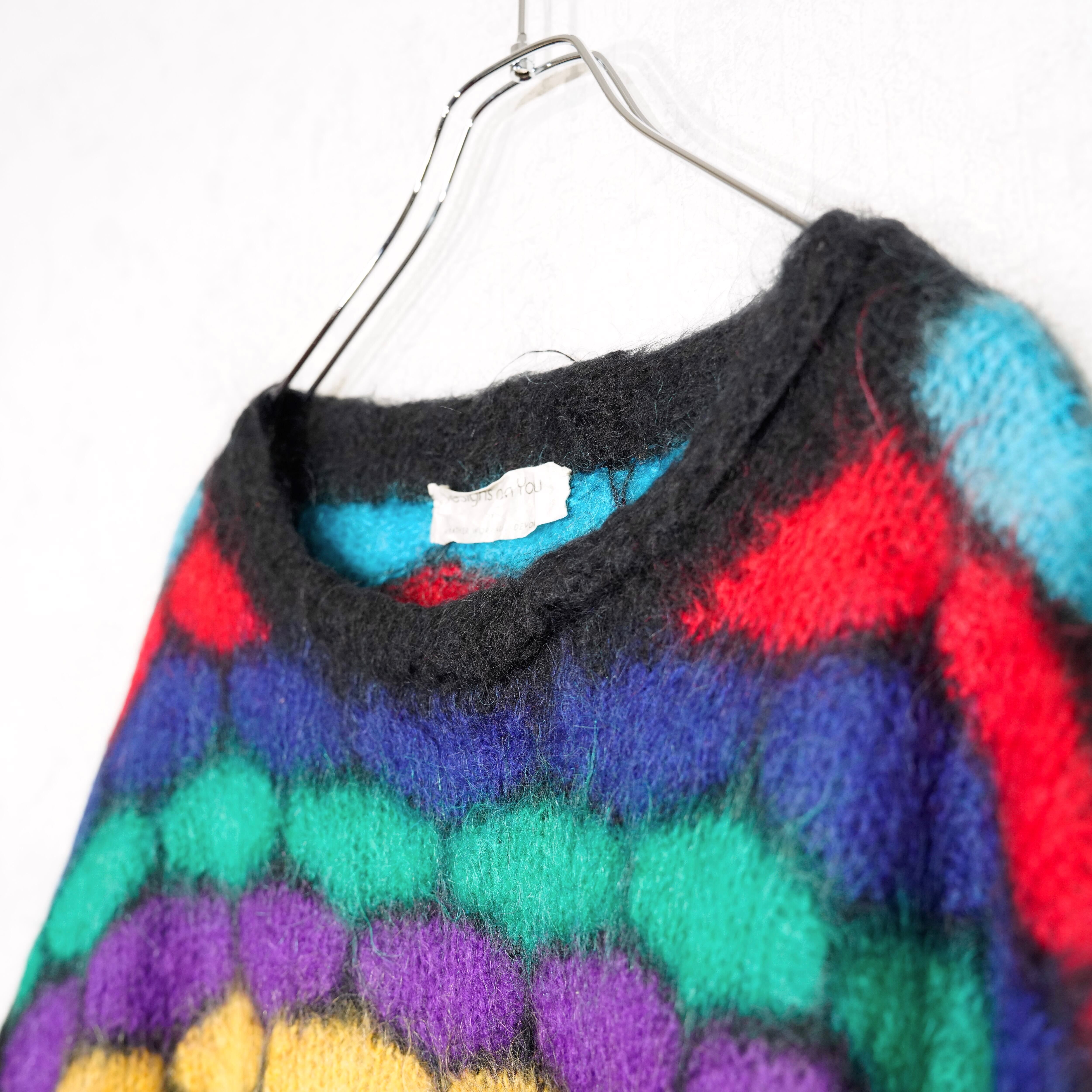 USA VINTAGE designs on you HONEYCOMB PATTERNED COLORFUL LONG MOHAIR DESIGN KNIT/アメリカ古着ハニカム柄カラフルロングモヘアデザインニット