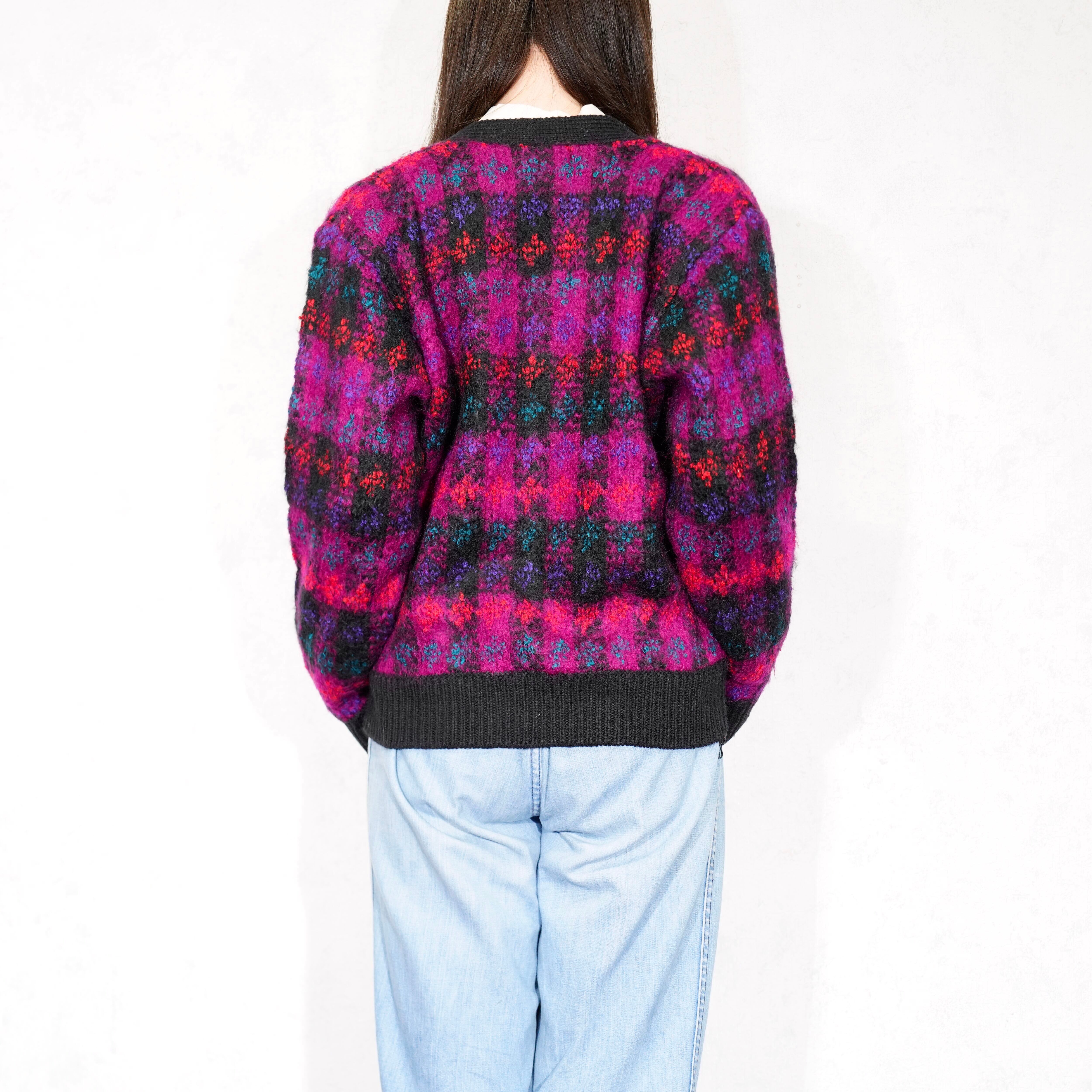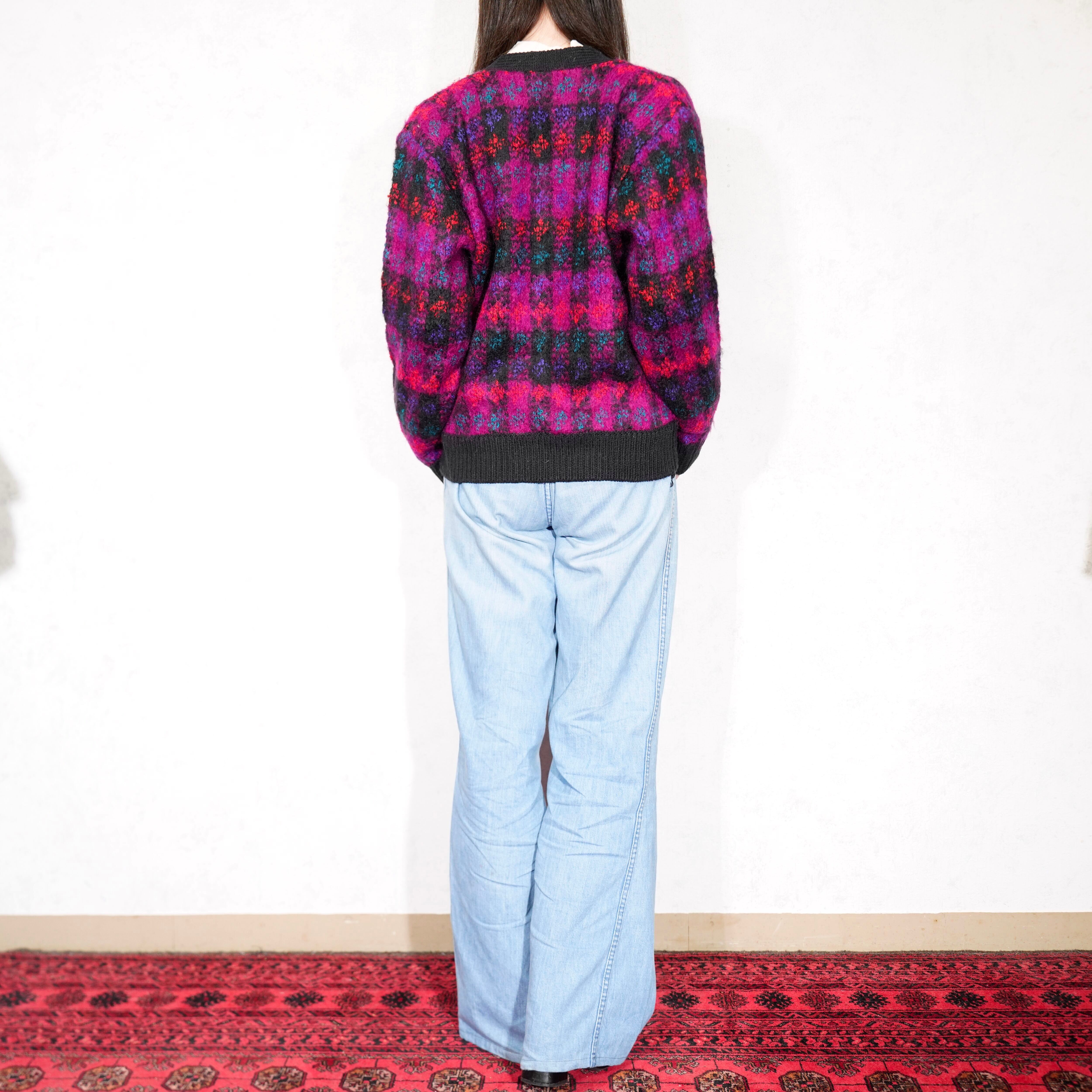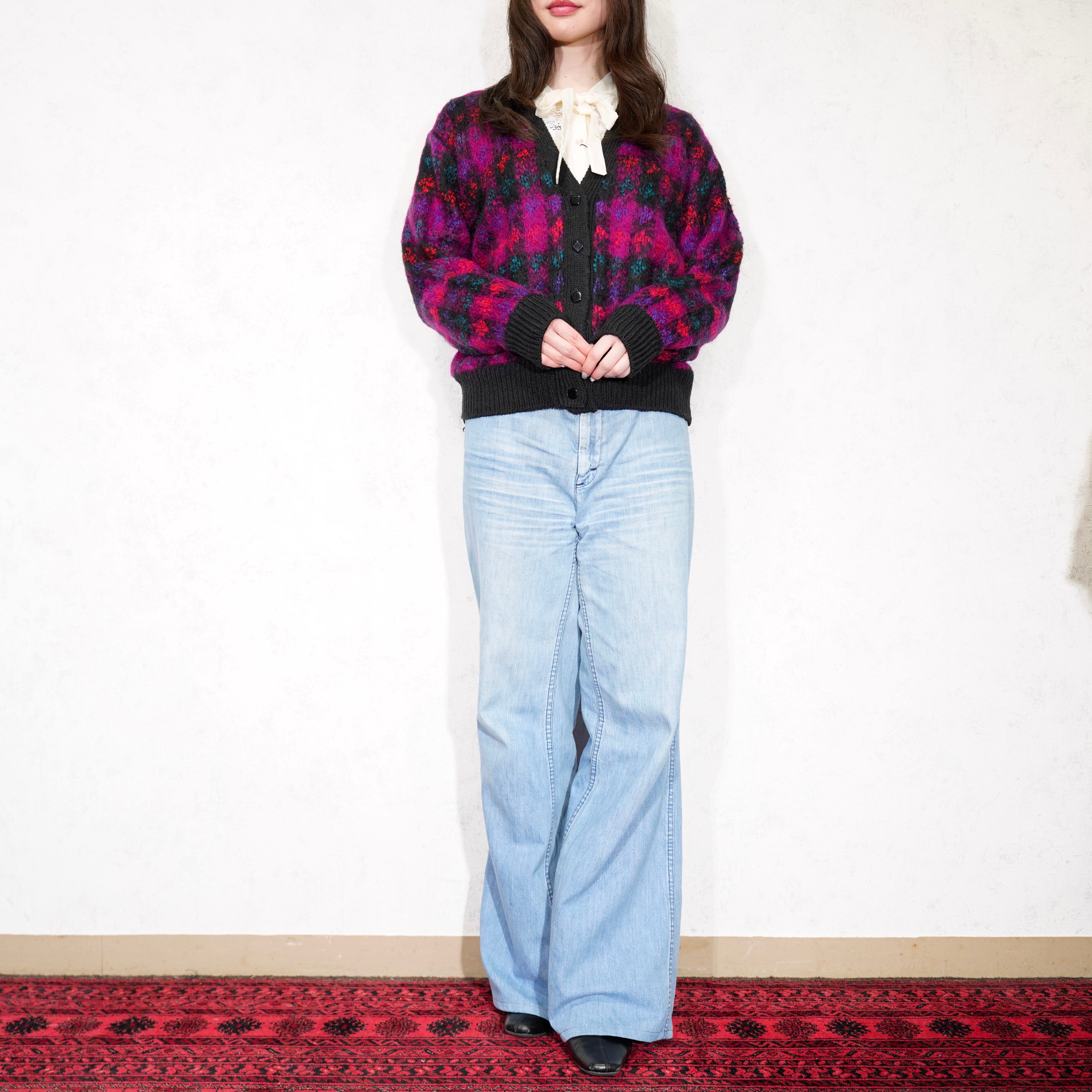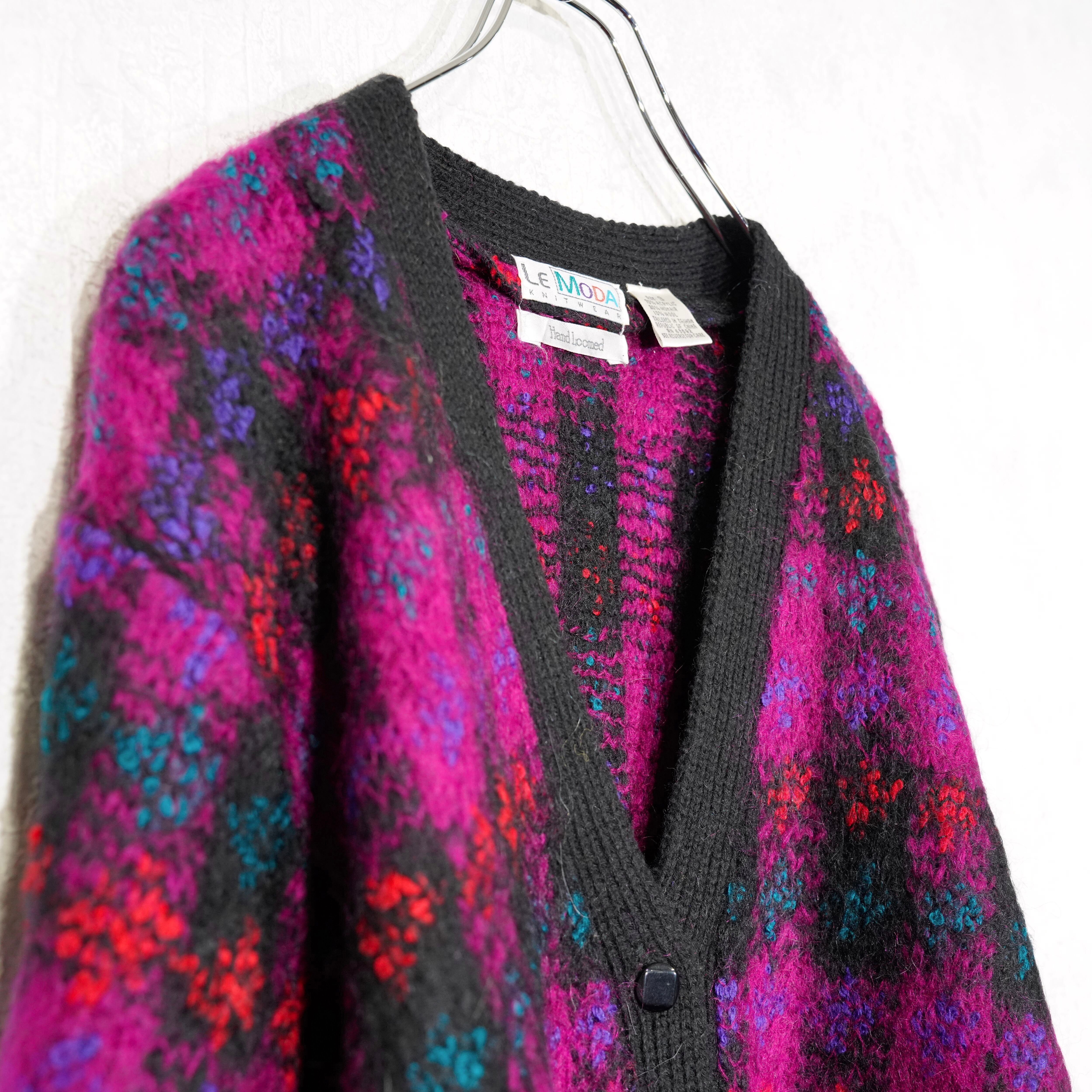 EU VINTAGE LE MODA TWEED LIKE HAND LOOMED MOHAIR KNIT CARDIGAN/ヨーロッパ古着ツイード風ハンドルームドモヘアニットカーディガン