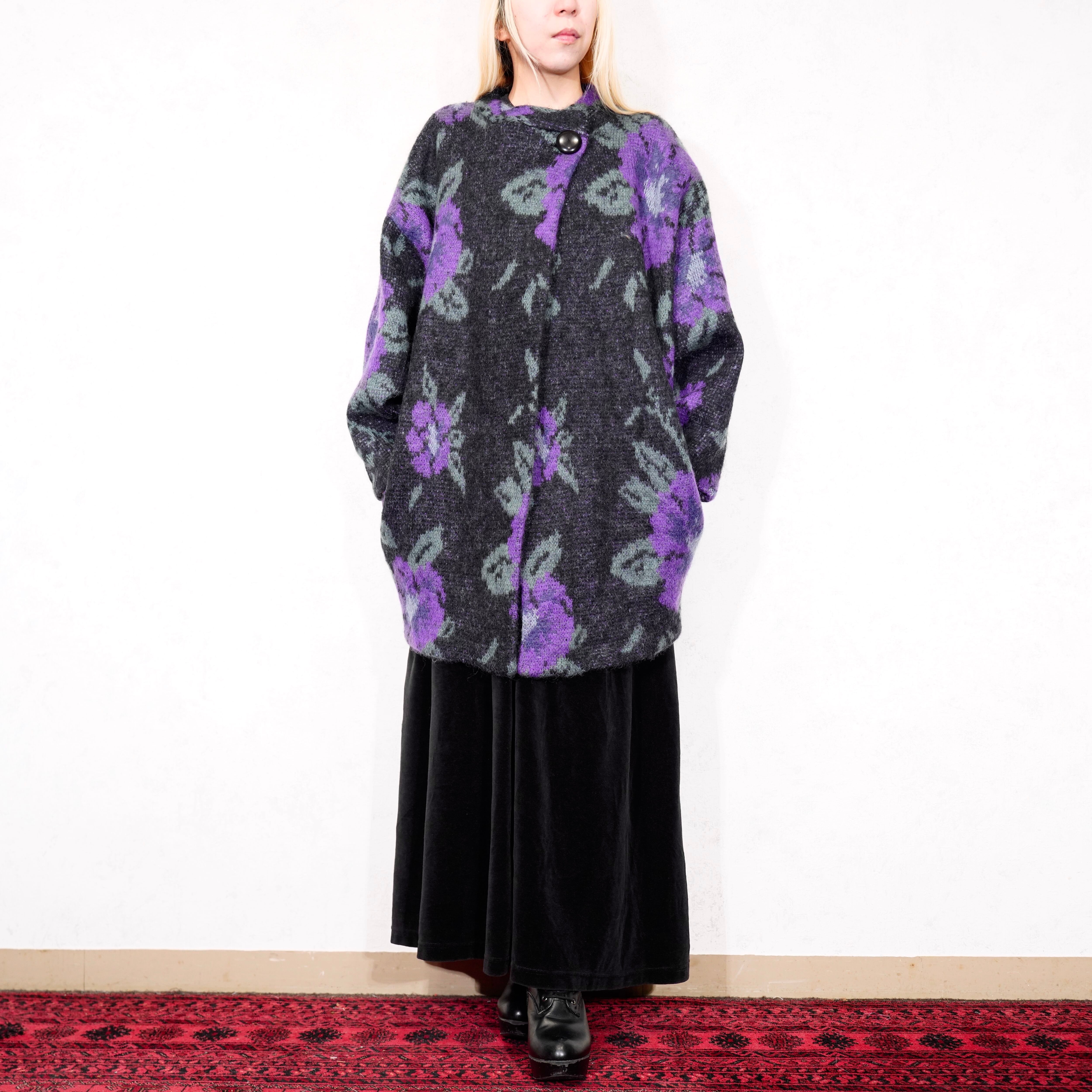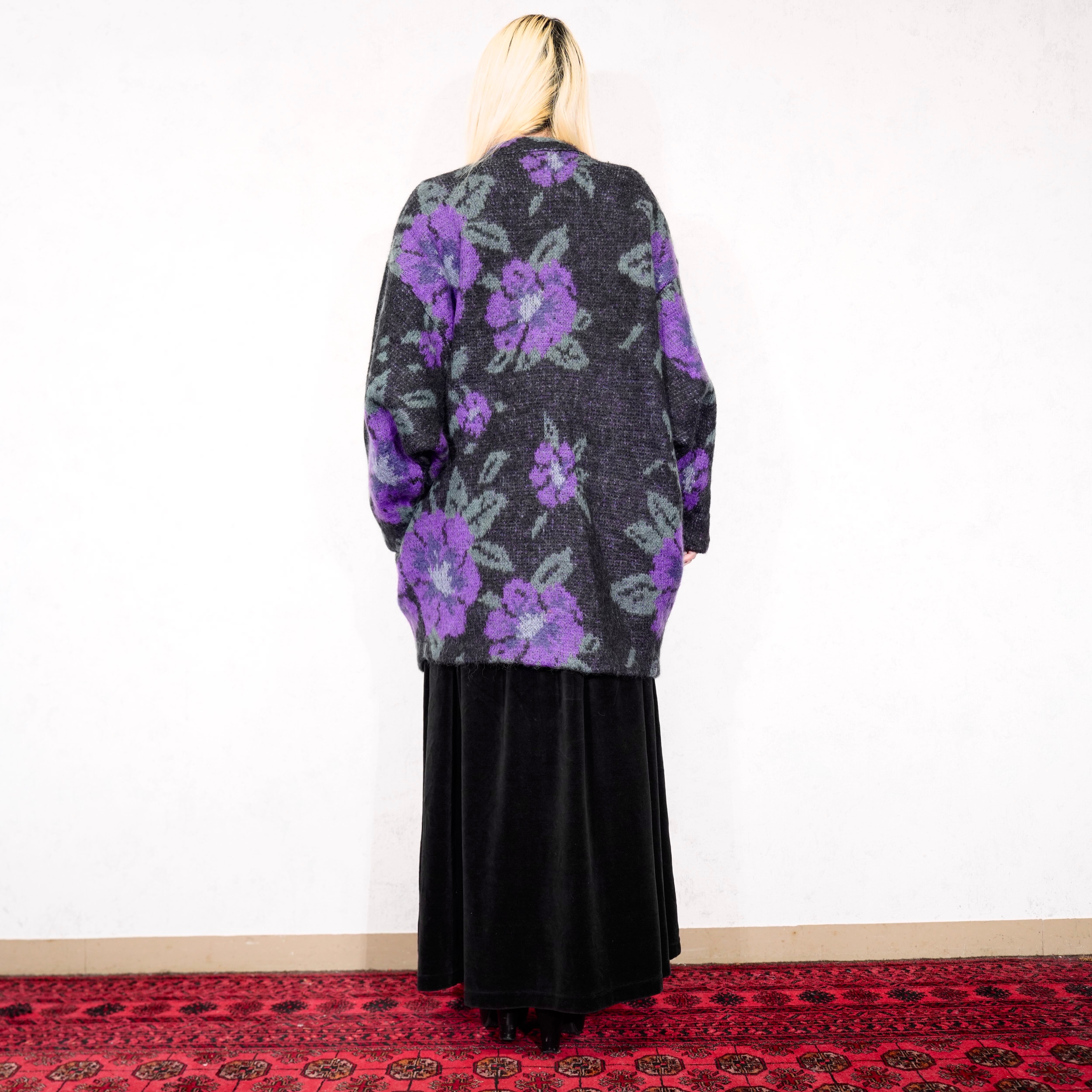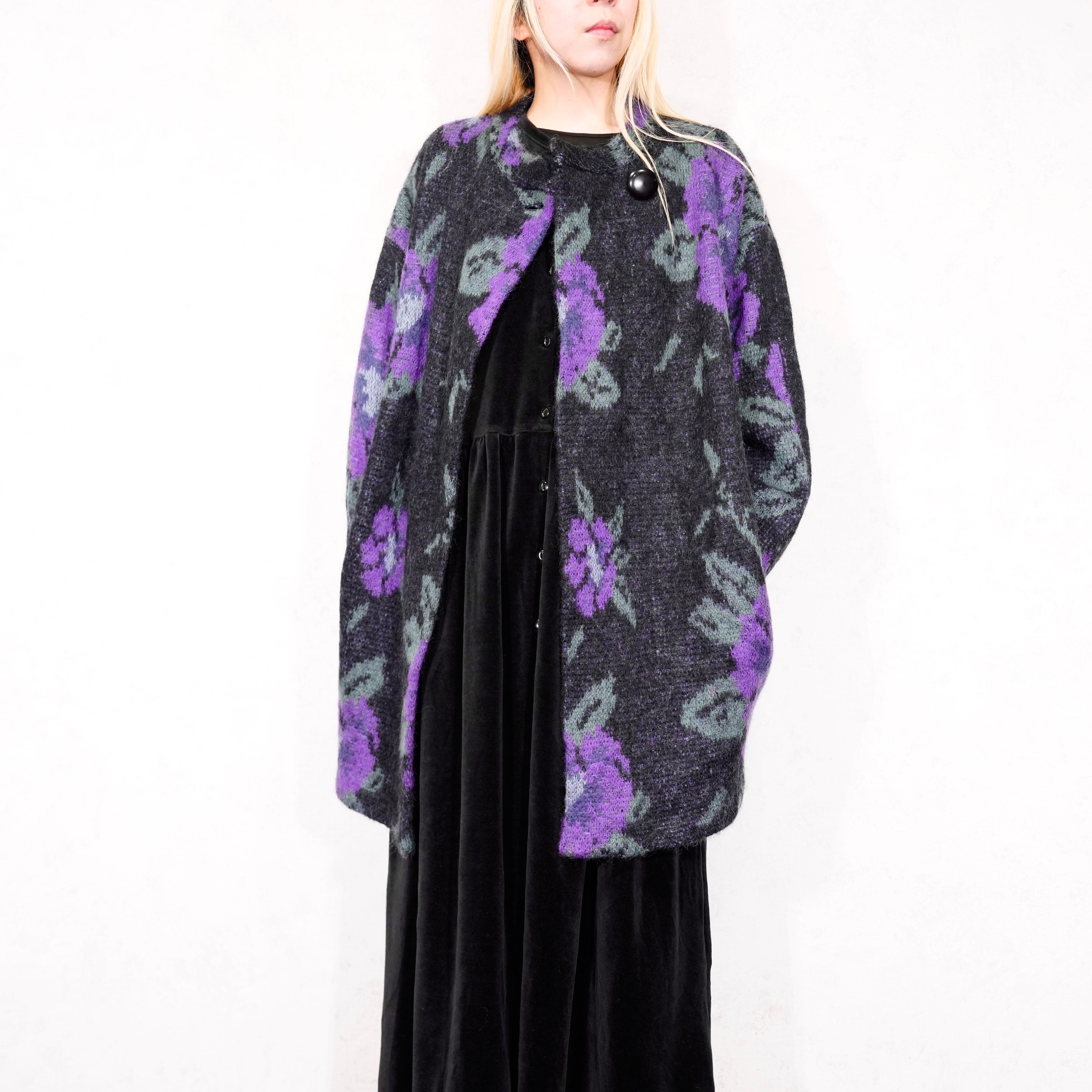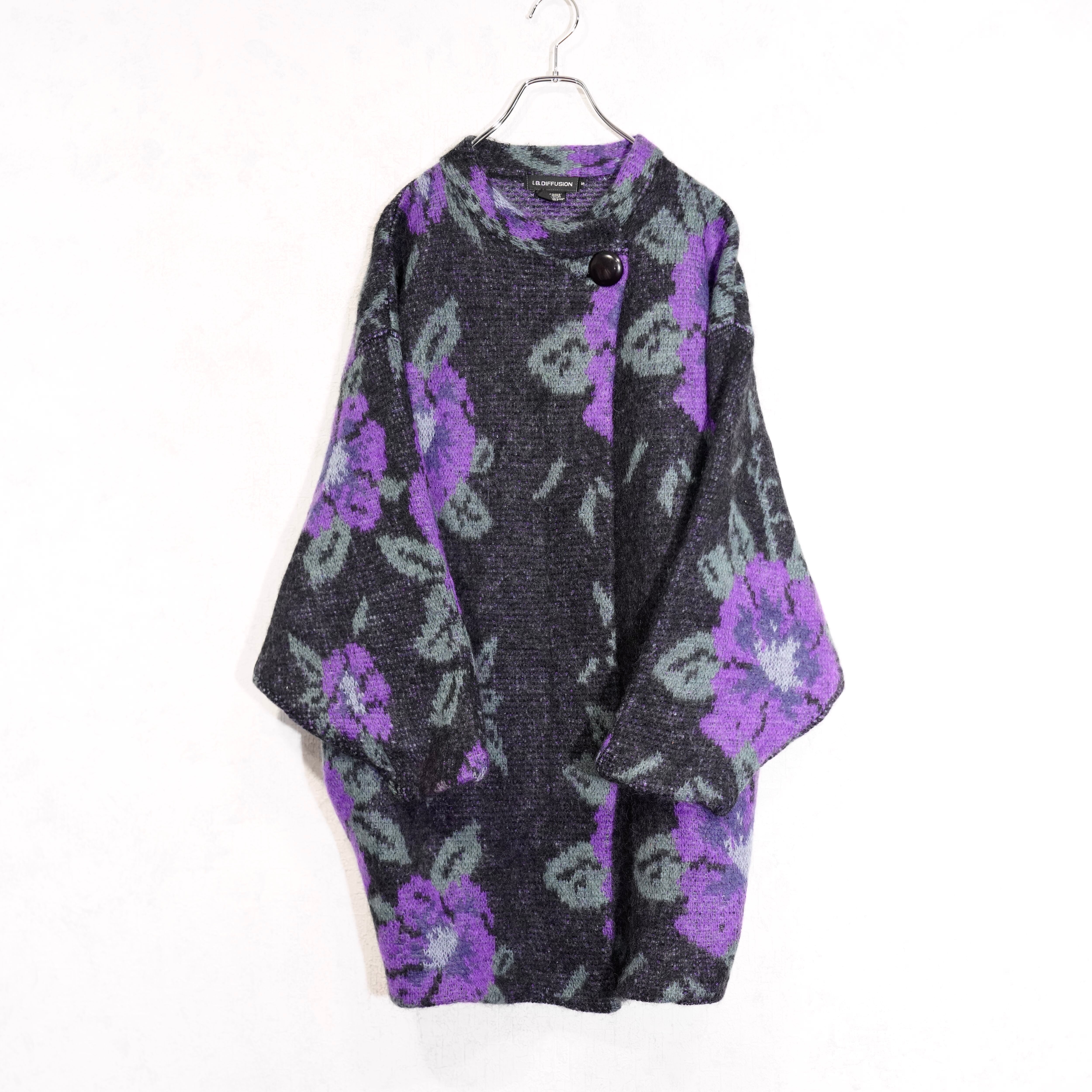 USA VINTAGE I.B.DIFFUSION FLOWER PATTERNED LONG MOHAIR DESIGN KNIT COAT/アメリカ古着お花柄ロングモヘアデザインニットコート(ロングカーディガン)