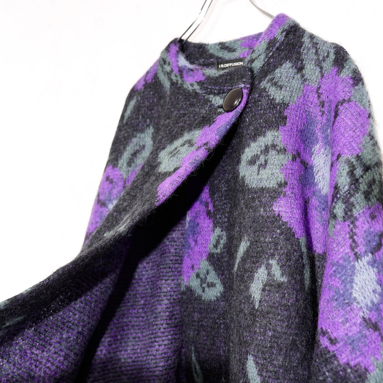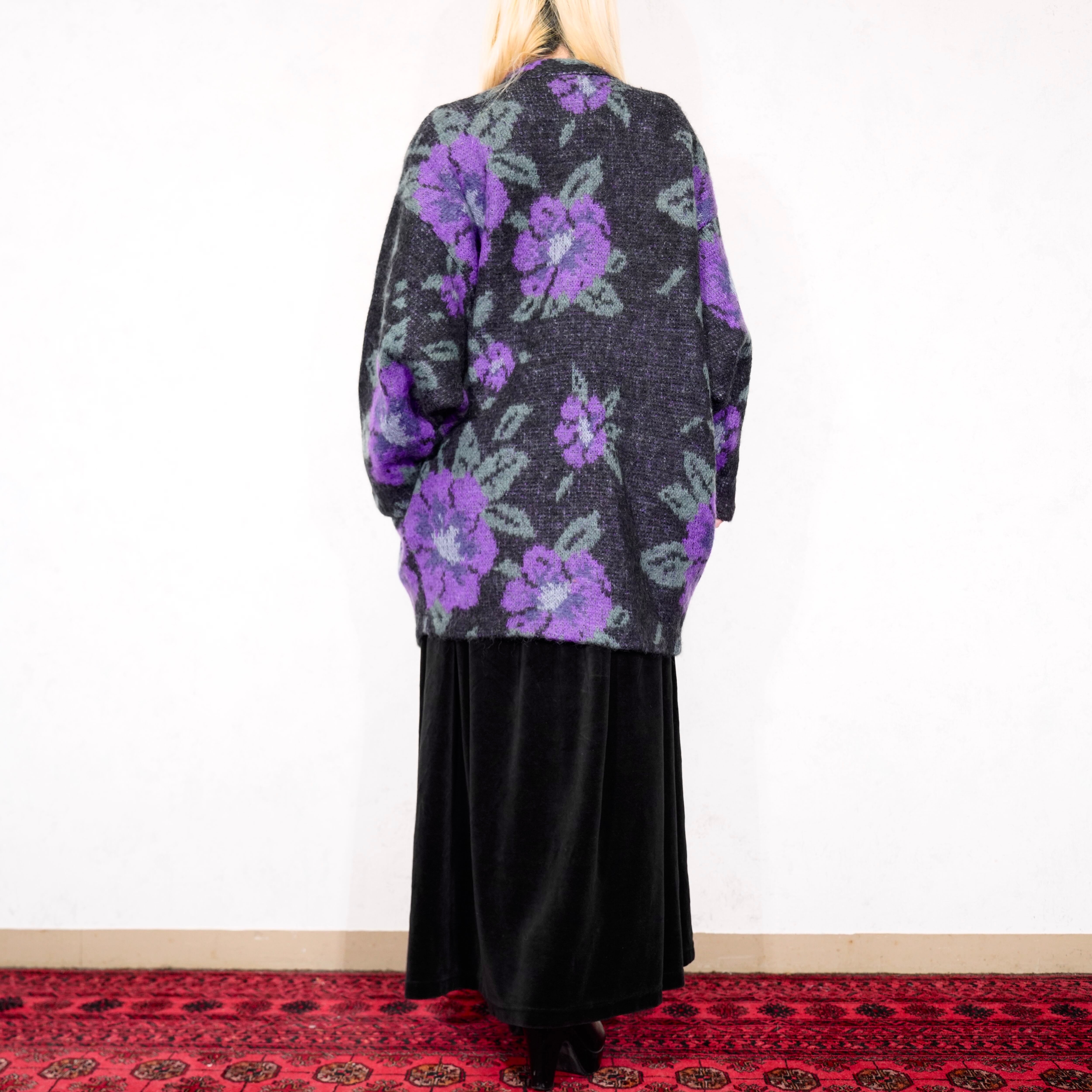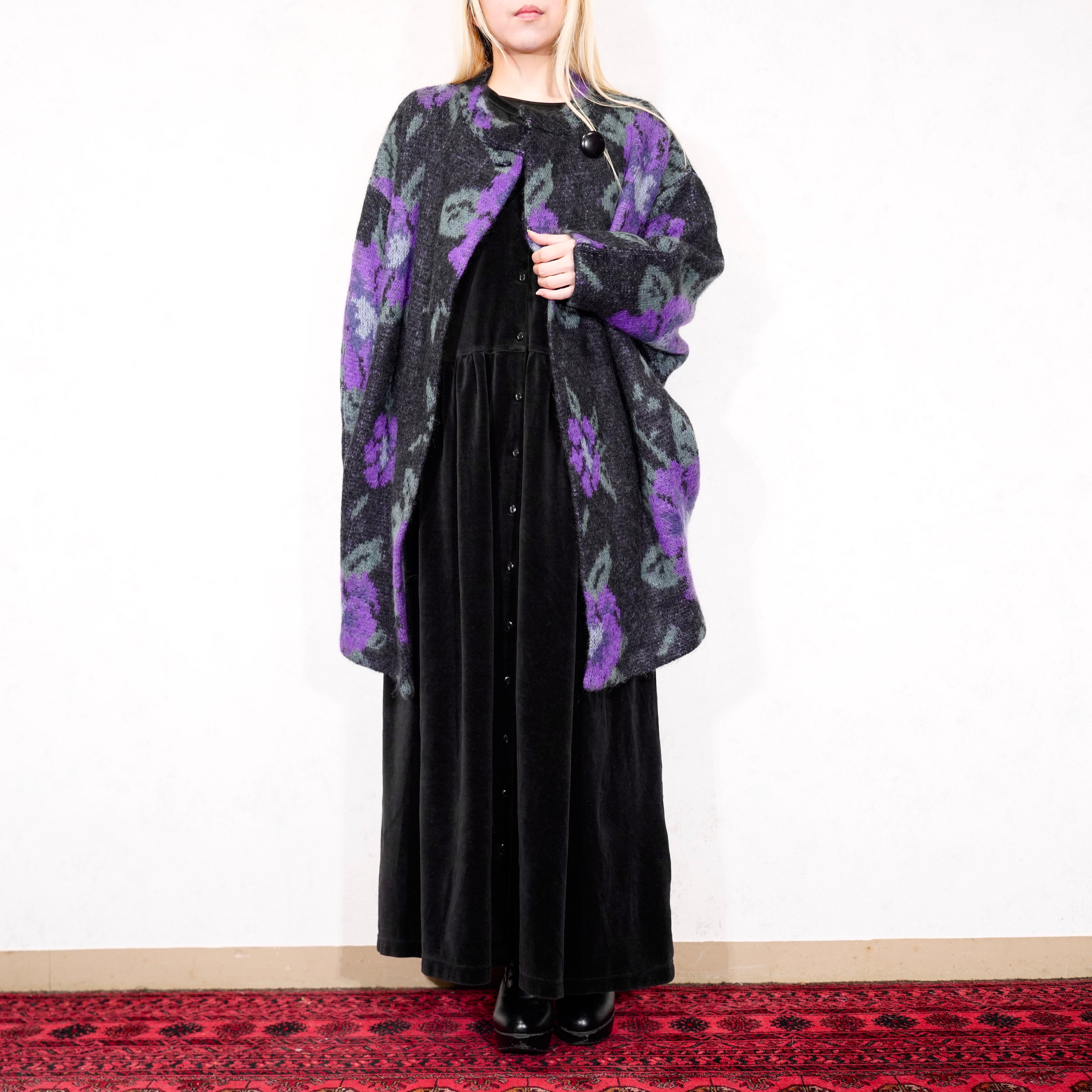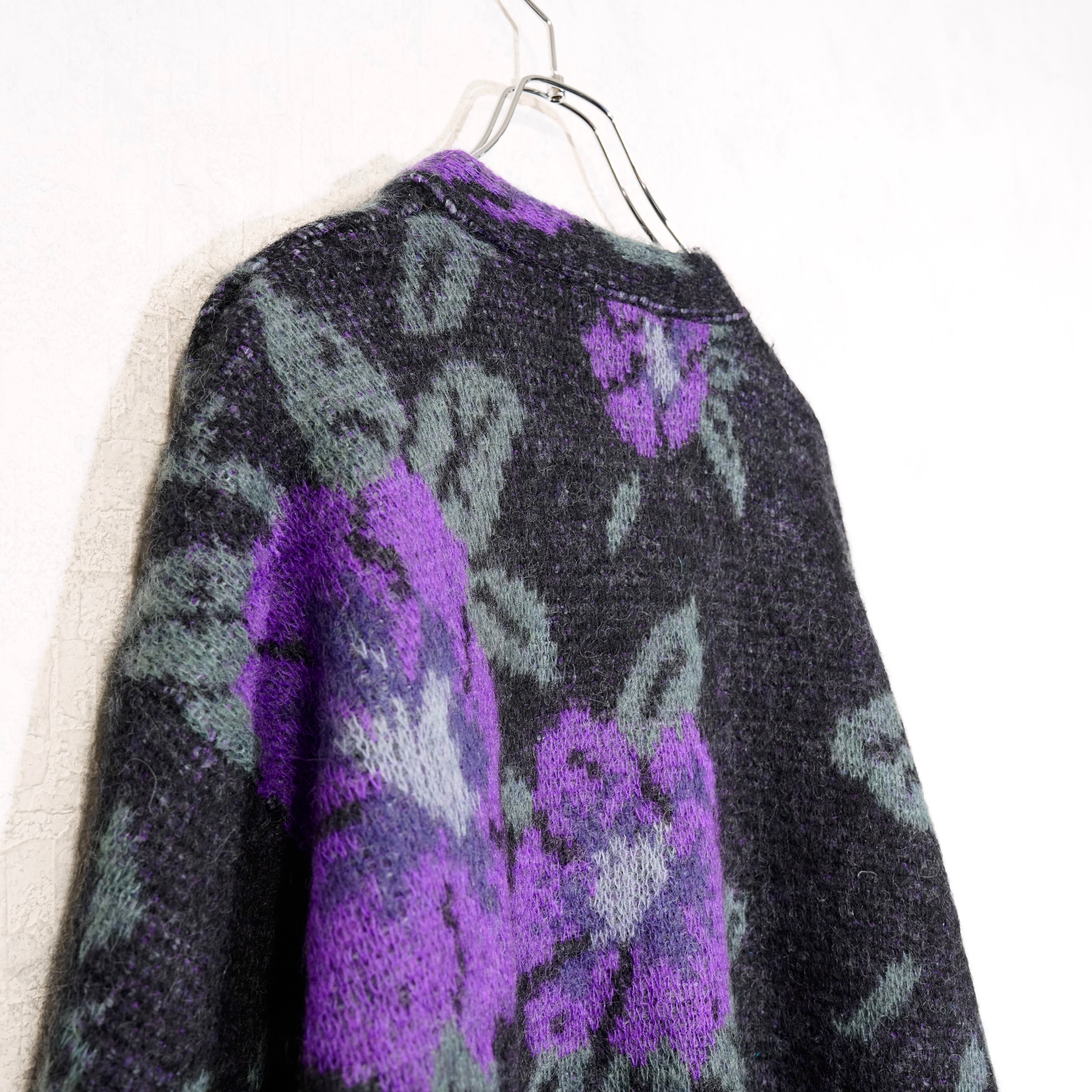 USA VINTAGE I.B.DIFFUSION FLOWER PATTERNED LONG MOHAIR DESIGN KNIT COAT/アメリカ古着お花柄ロングモヘアデザインニットコート(ロングカーディガン)