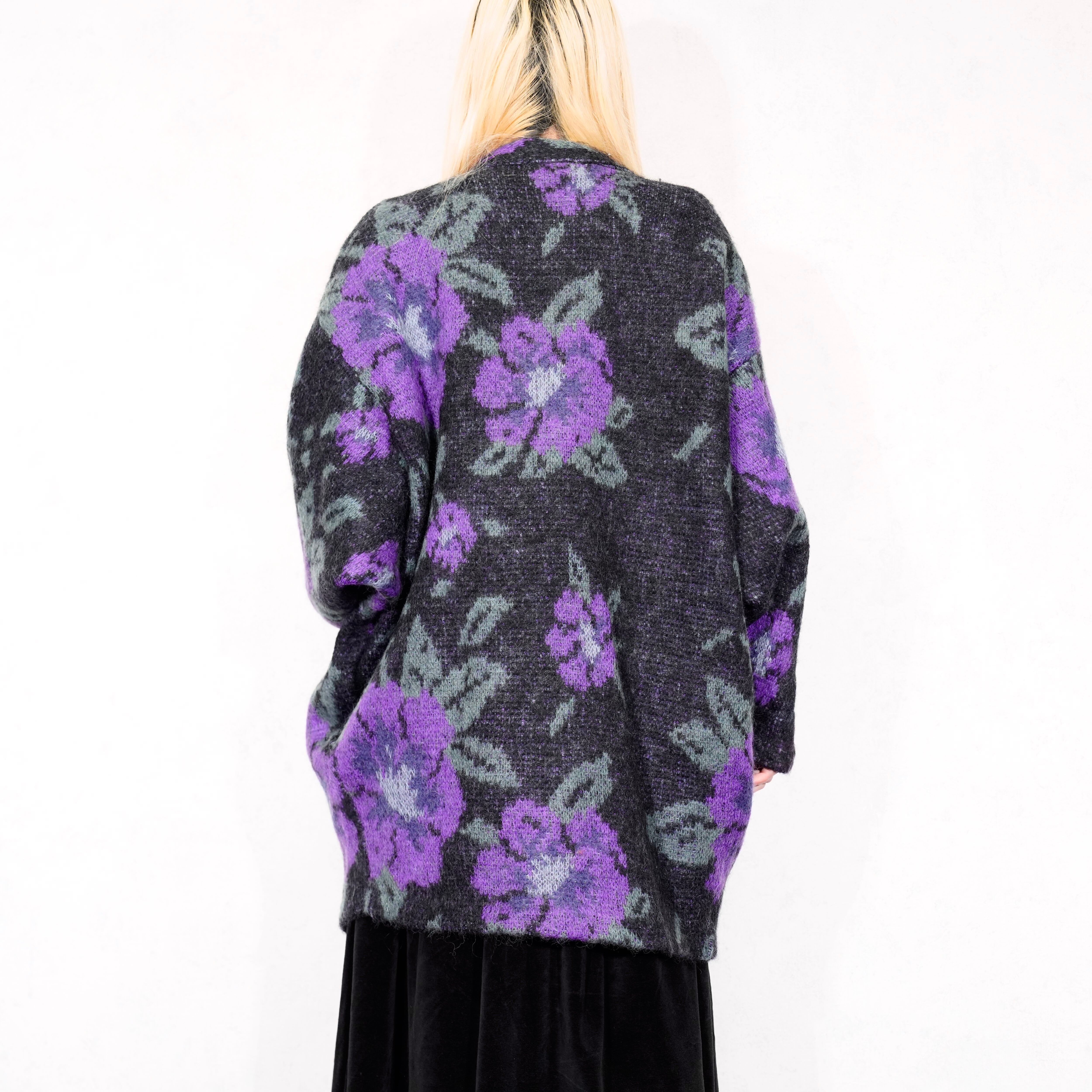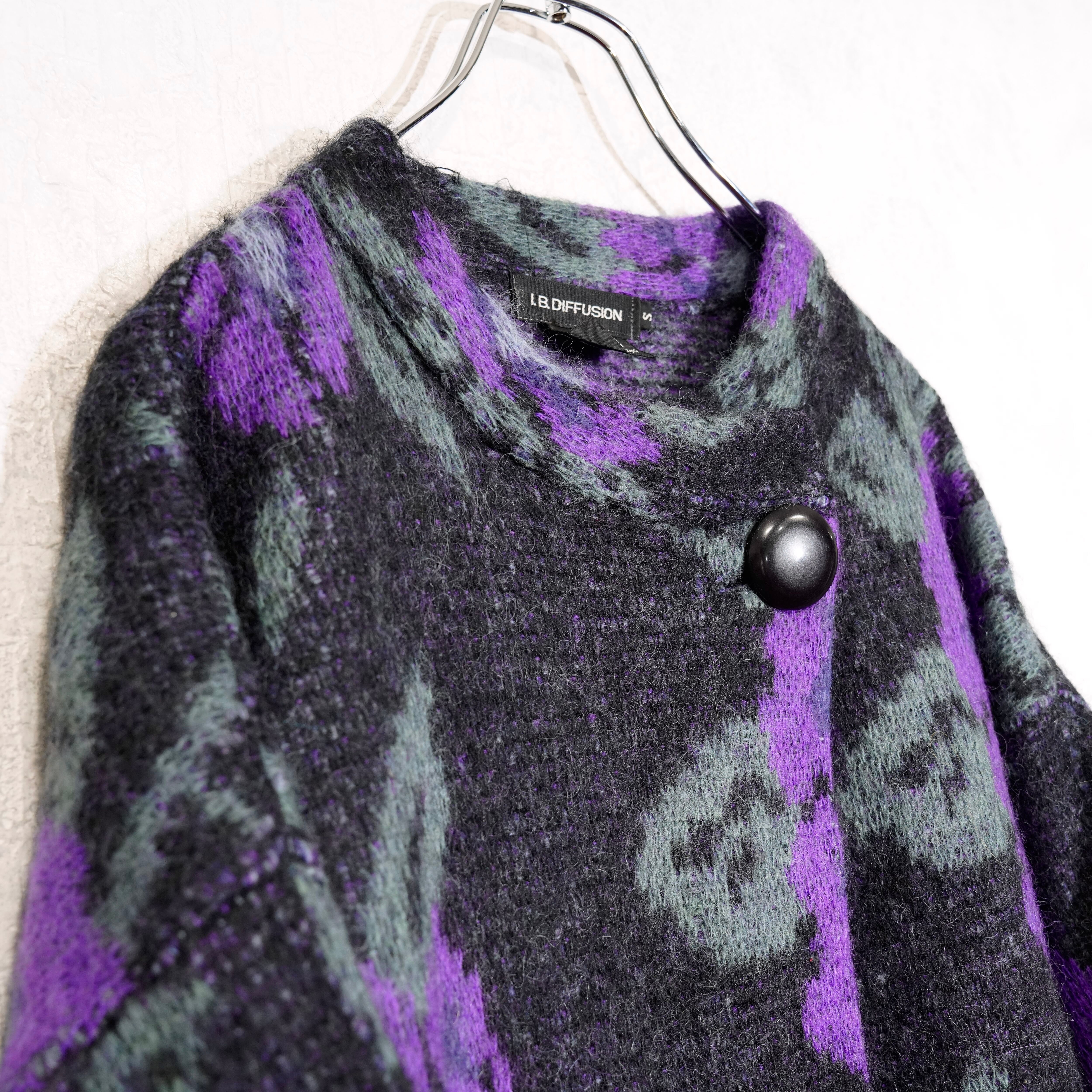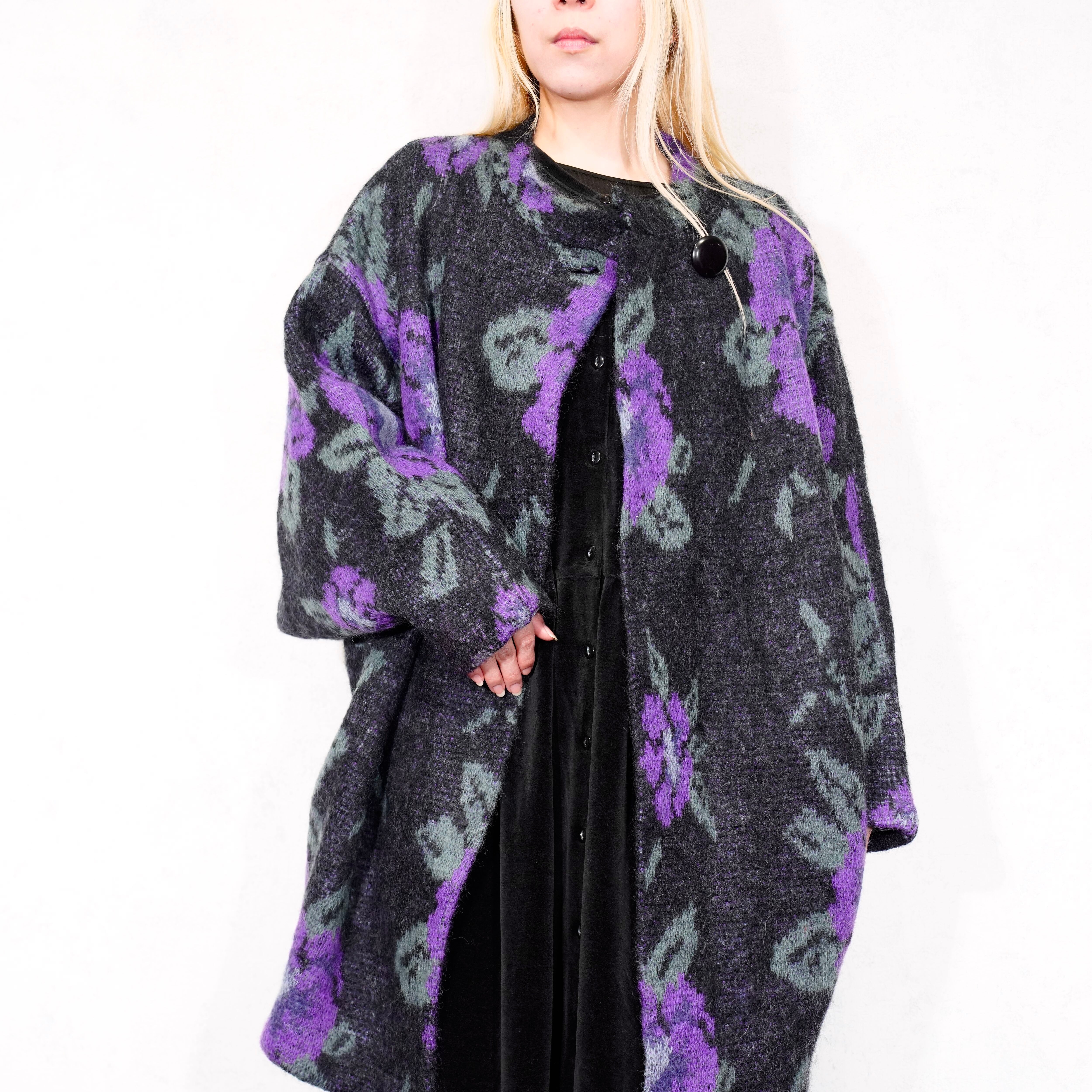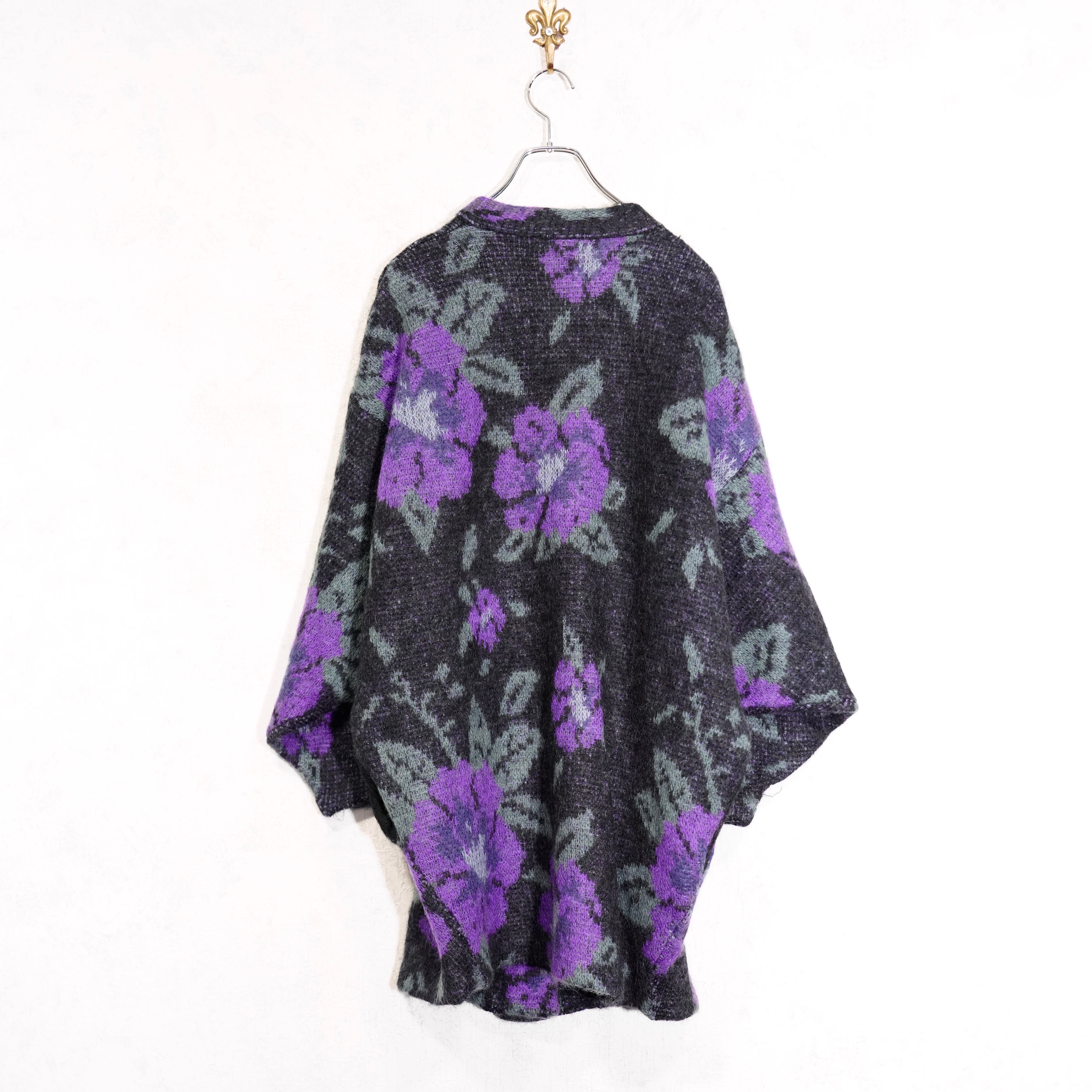 USA VINTAGE I.B.DIFFUSION FLOWER PATTERNED LONG MOHAIR DESIGN KNIT COAT/アメリカ古着お花柄ロングモヘアデザインニットコート(ロングカーディガン)