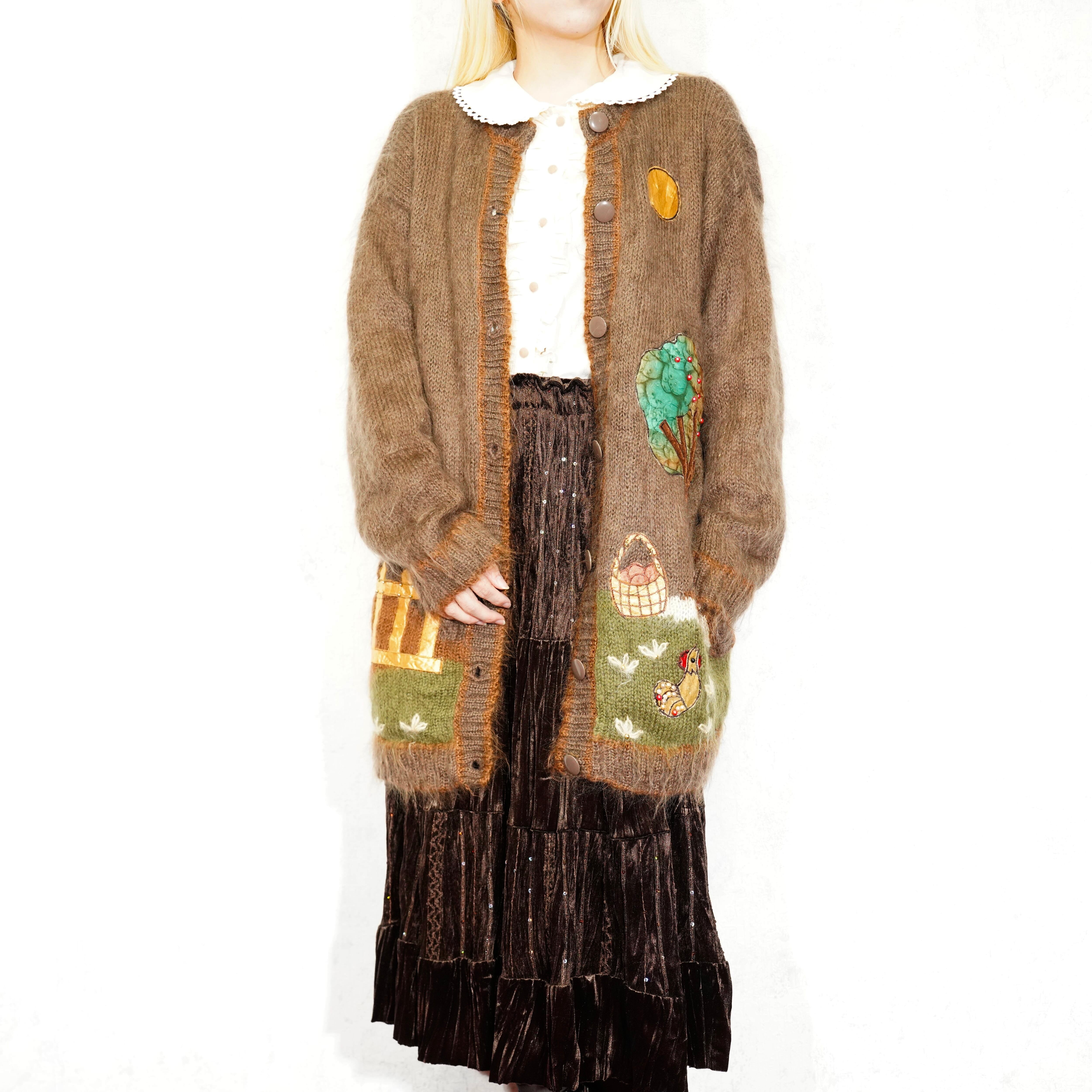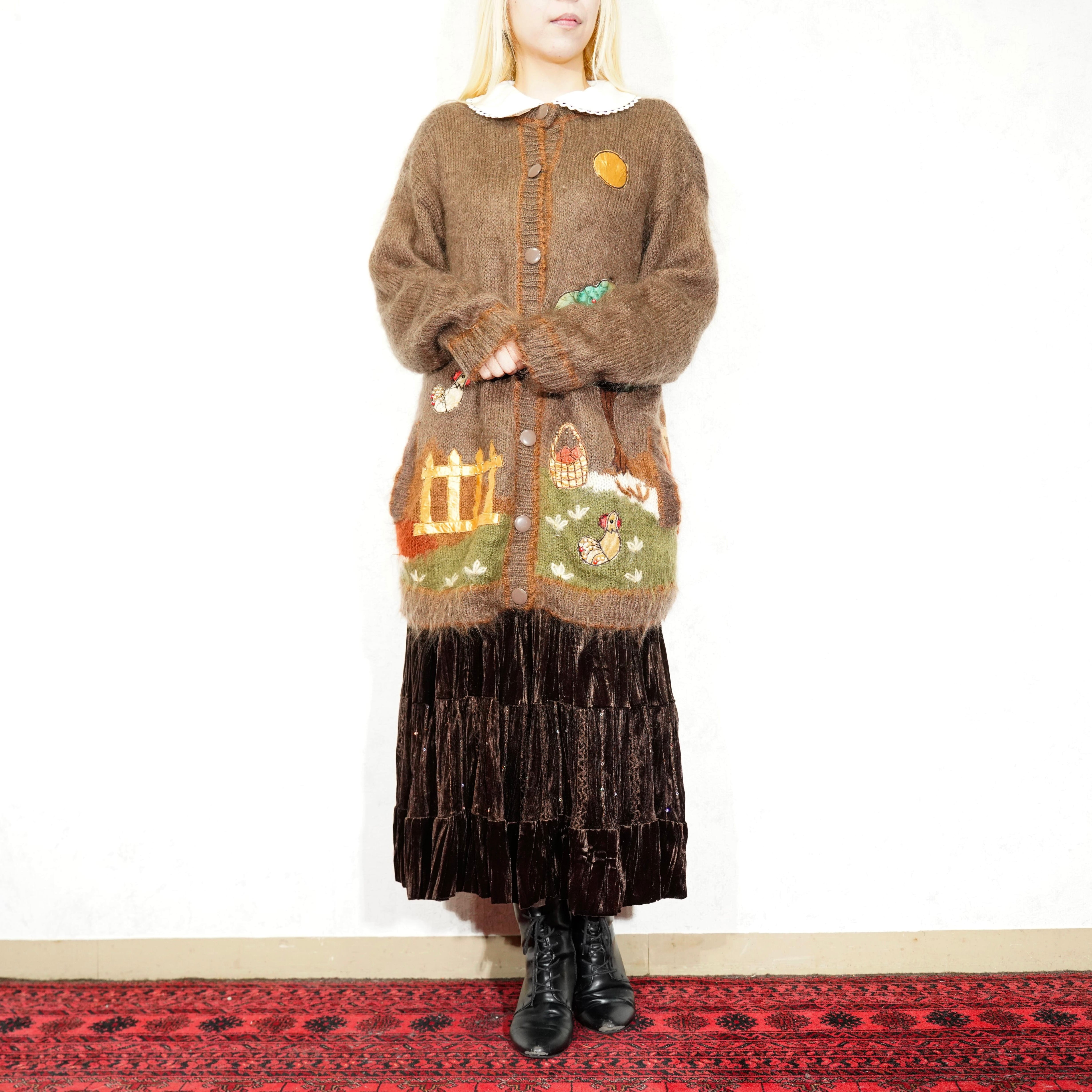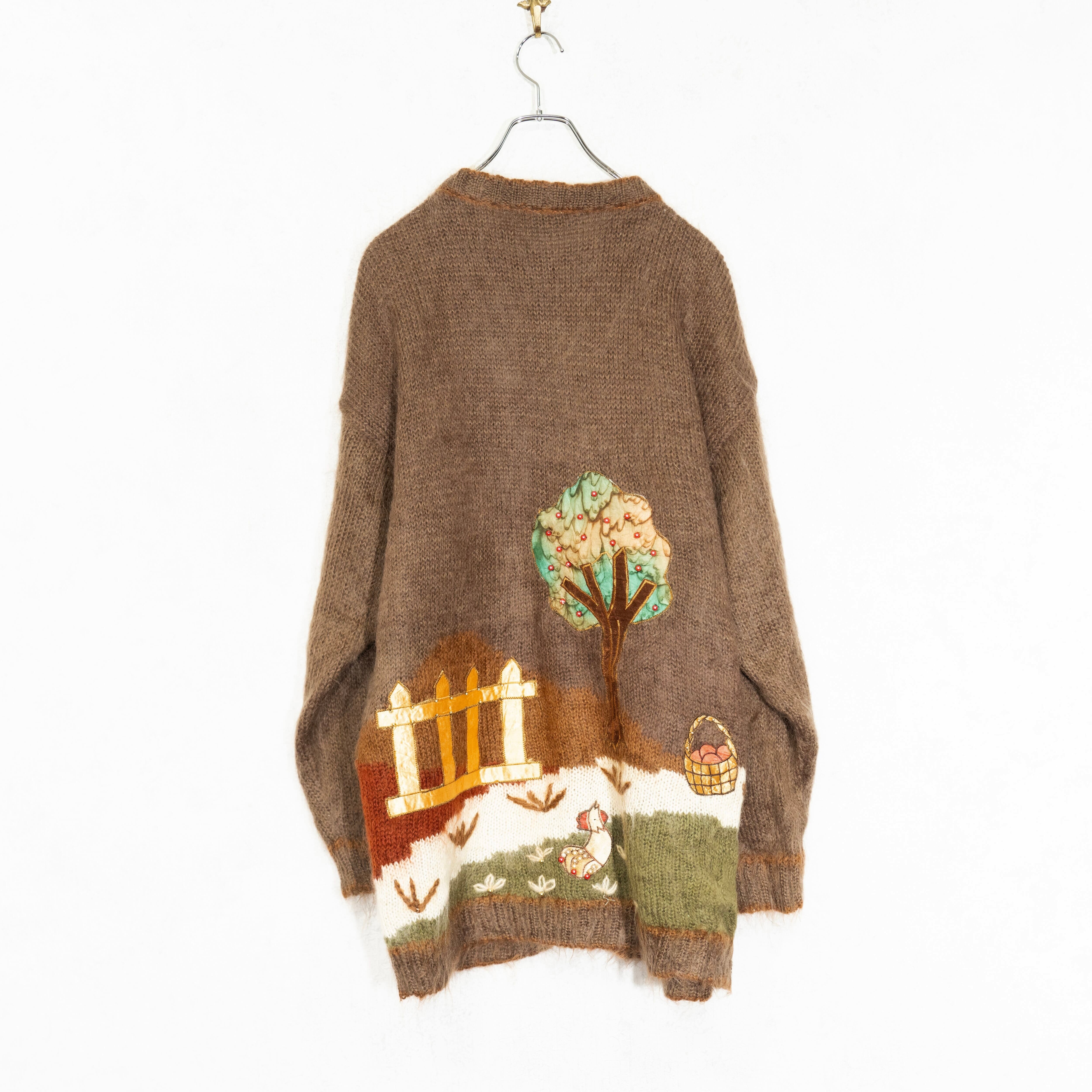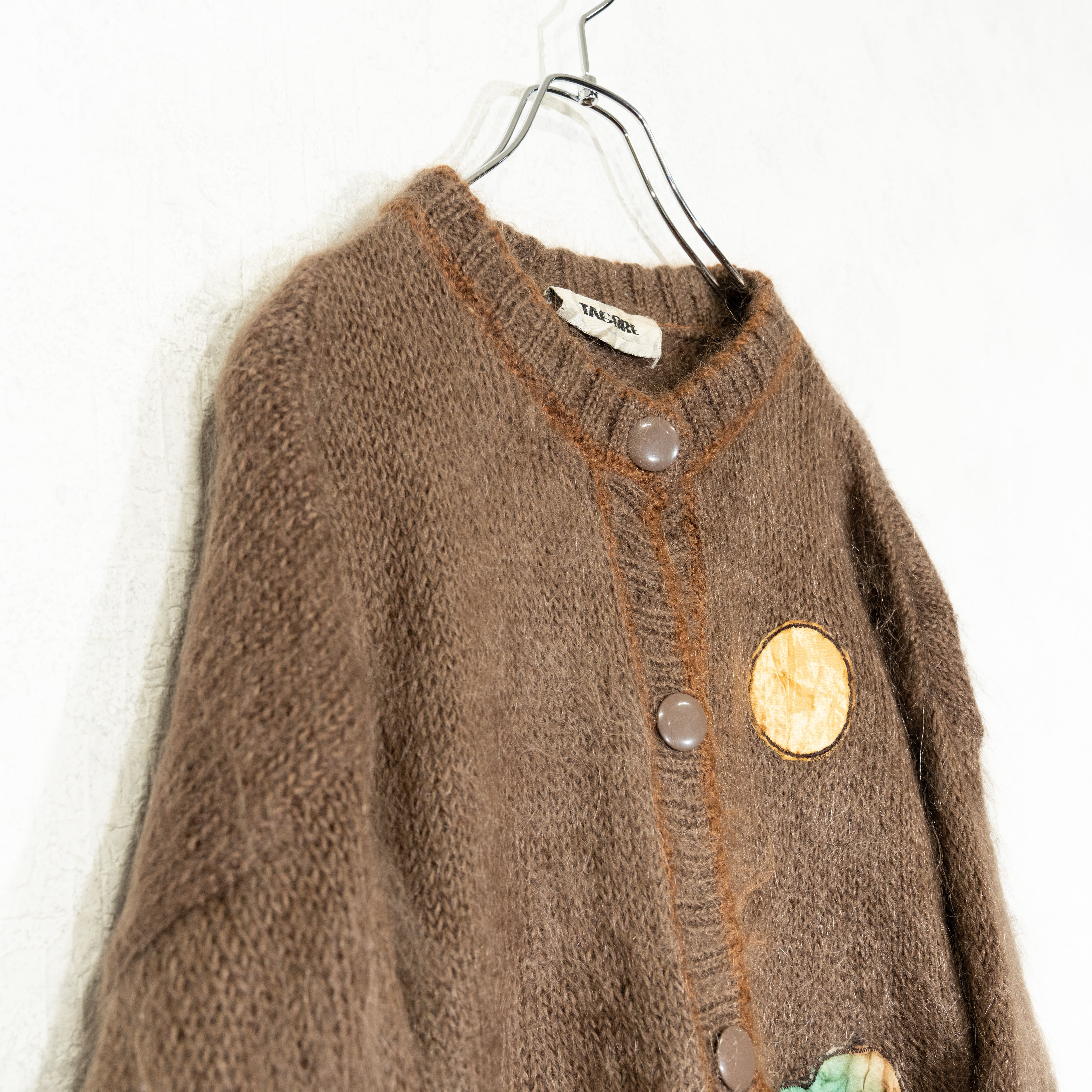 EU VINTAGE TAGORE HAND EMBROIDERY PATCHWORK DESIGN MOHAIR KNIT CARDIGAN/ヨーロッパ古着ハンド刺繍パッチワークデザインモヘアニットカーディガン