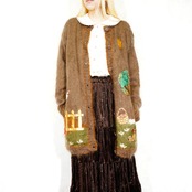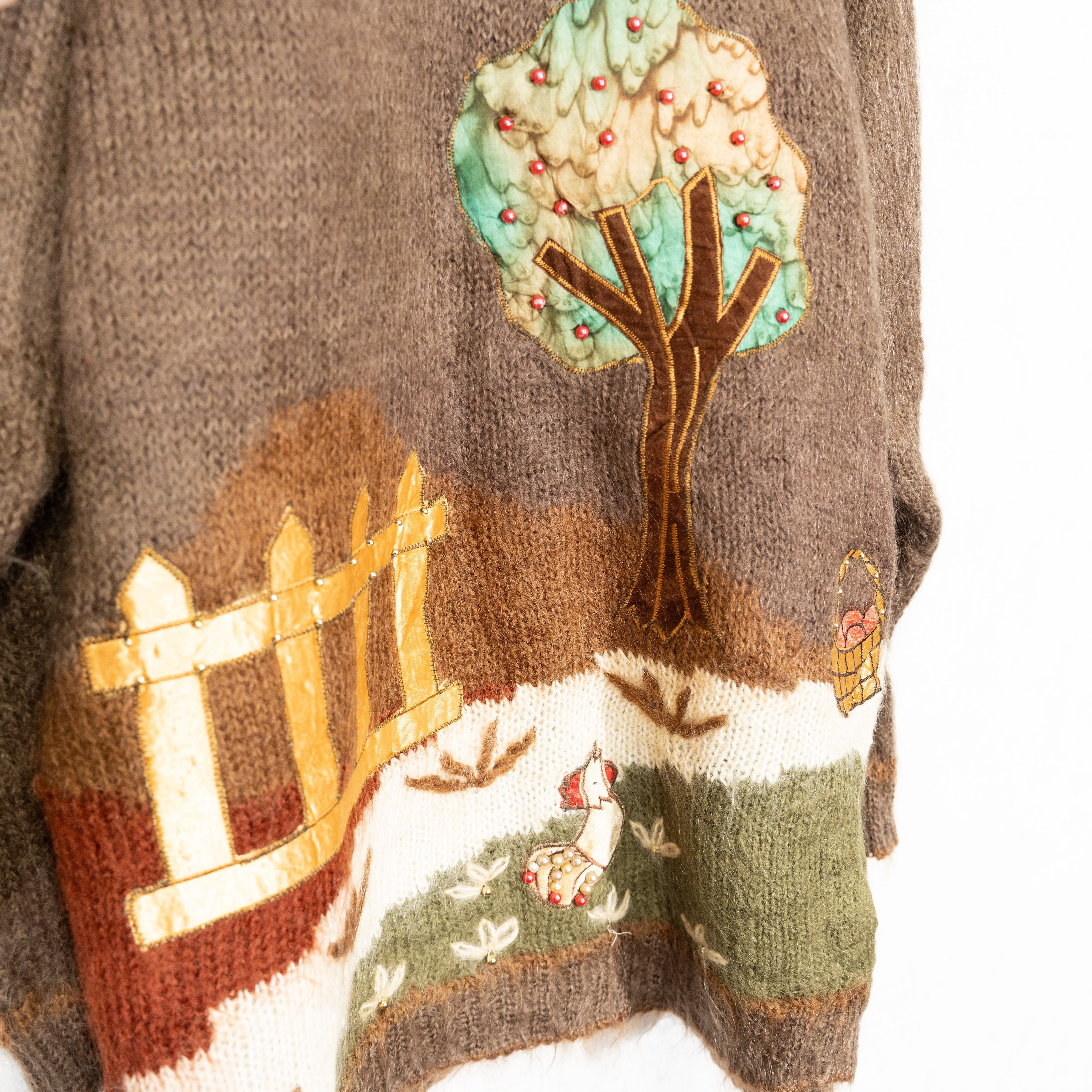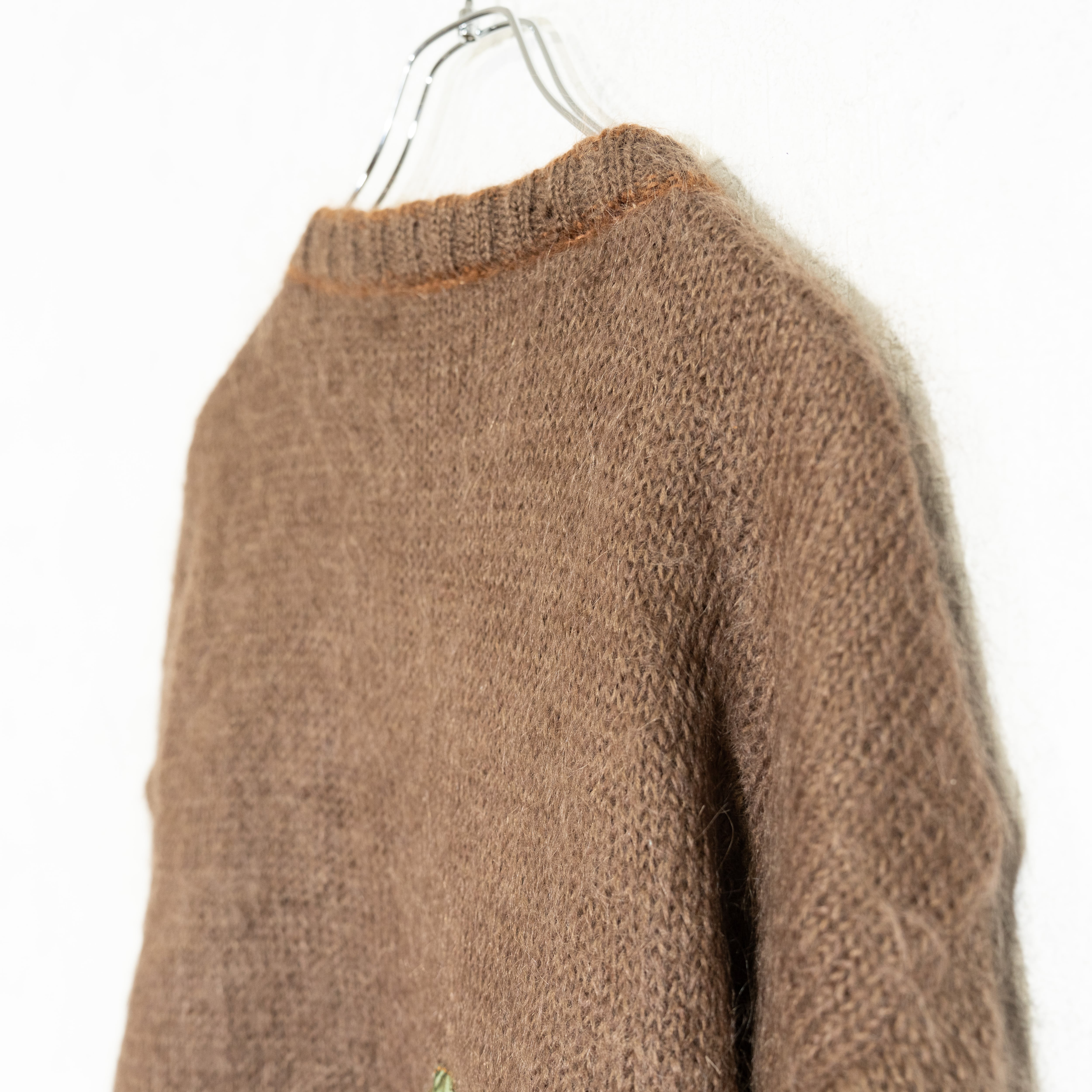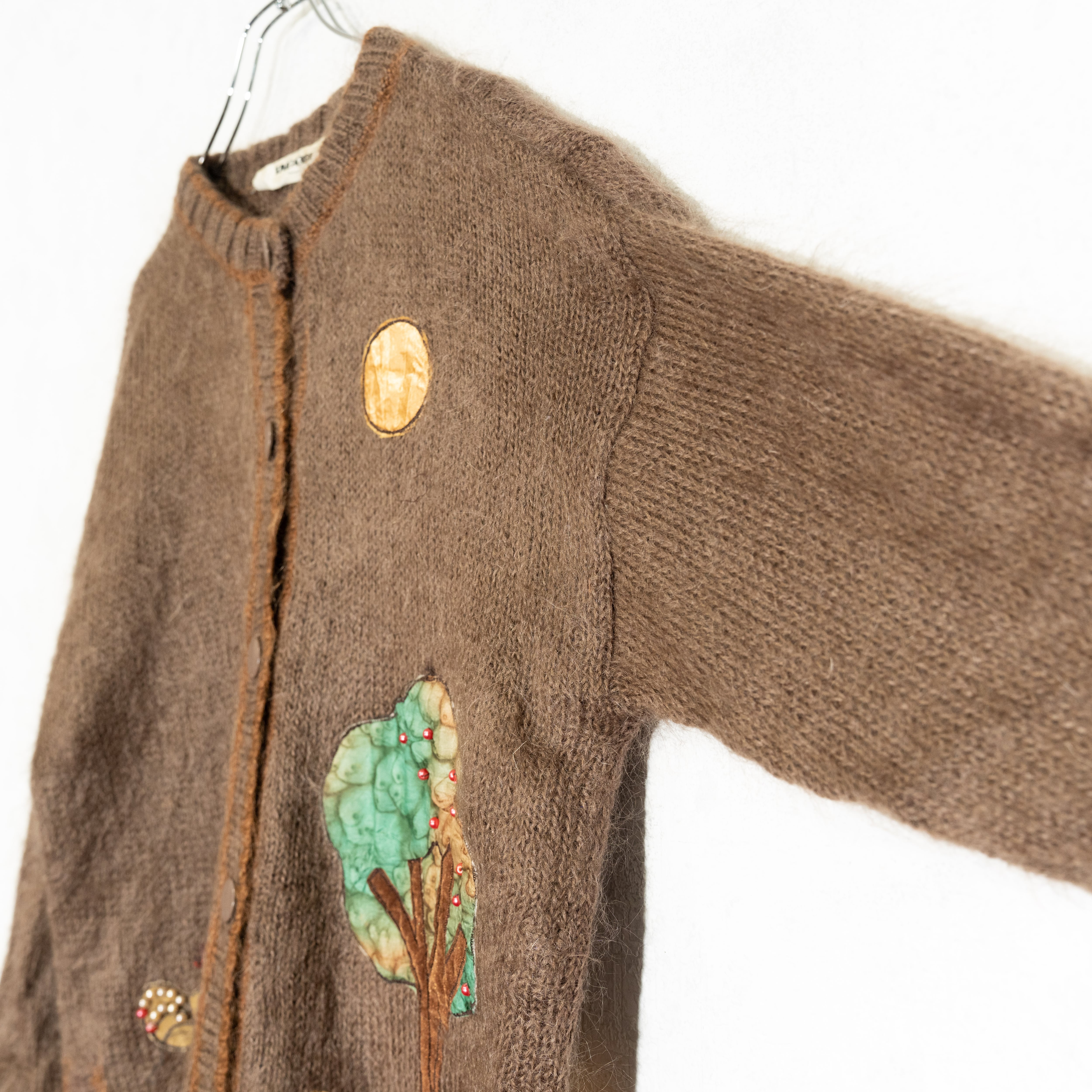 EU VINTAGE TAGORE HAND EMBROIDERY PATCHWORK DESIGN MOHAIR KNIT CARDIGAN/ヨーロッパ古着ハンド刺繍パッチワークデザインモヘアニットカーディガン