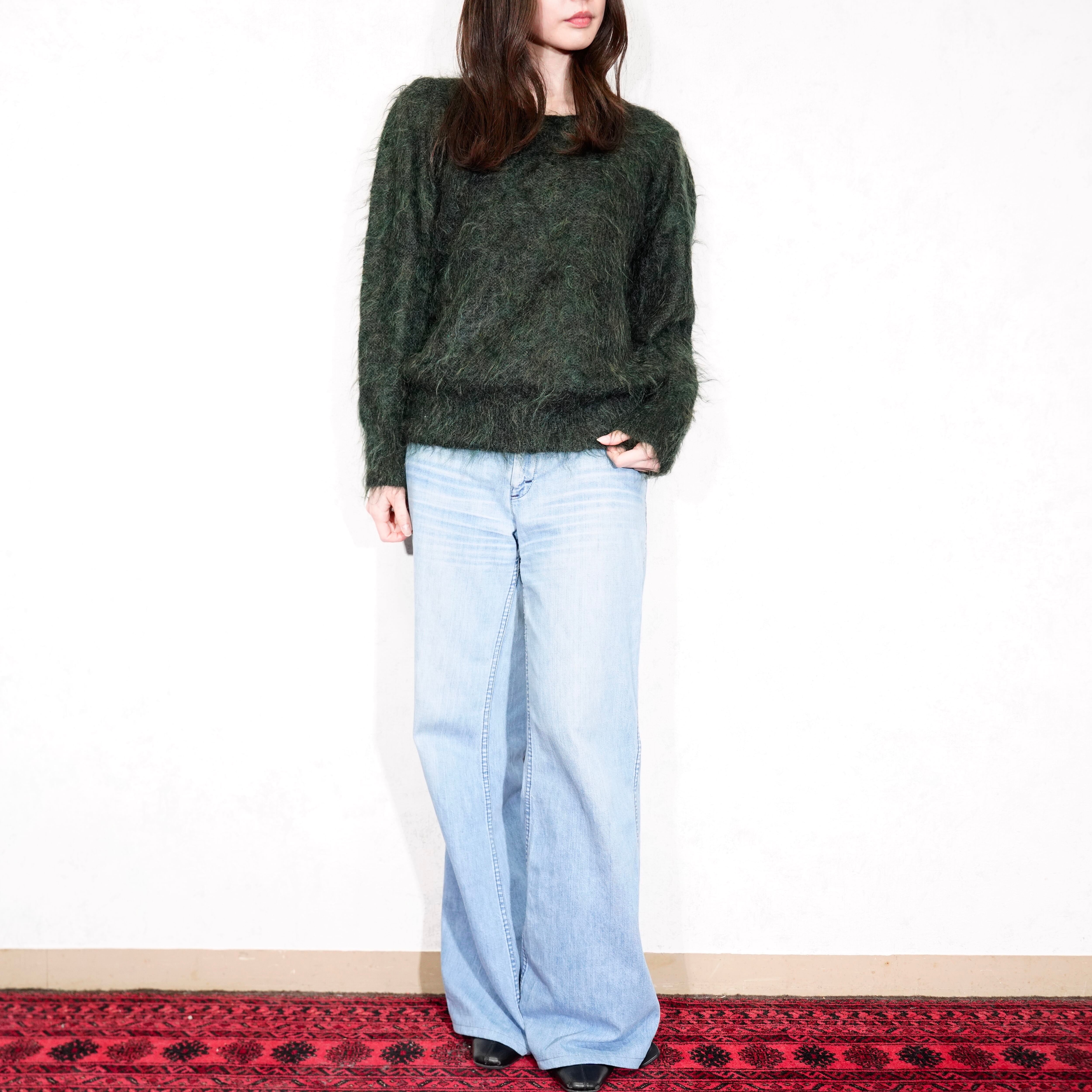 USA VINTAGE JIA SHIN LONG MOHAIR DESIGN KNIT/アメリカ古着ロングモヘアニット