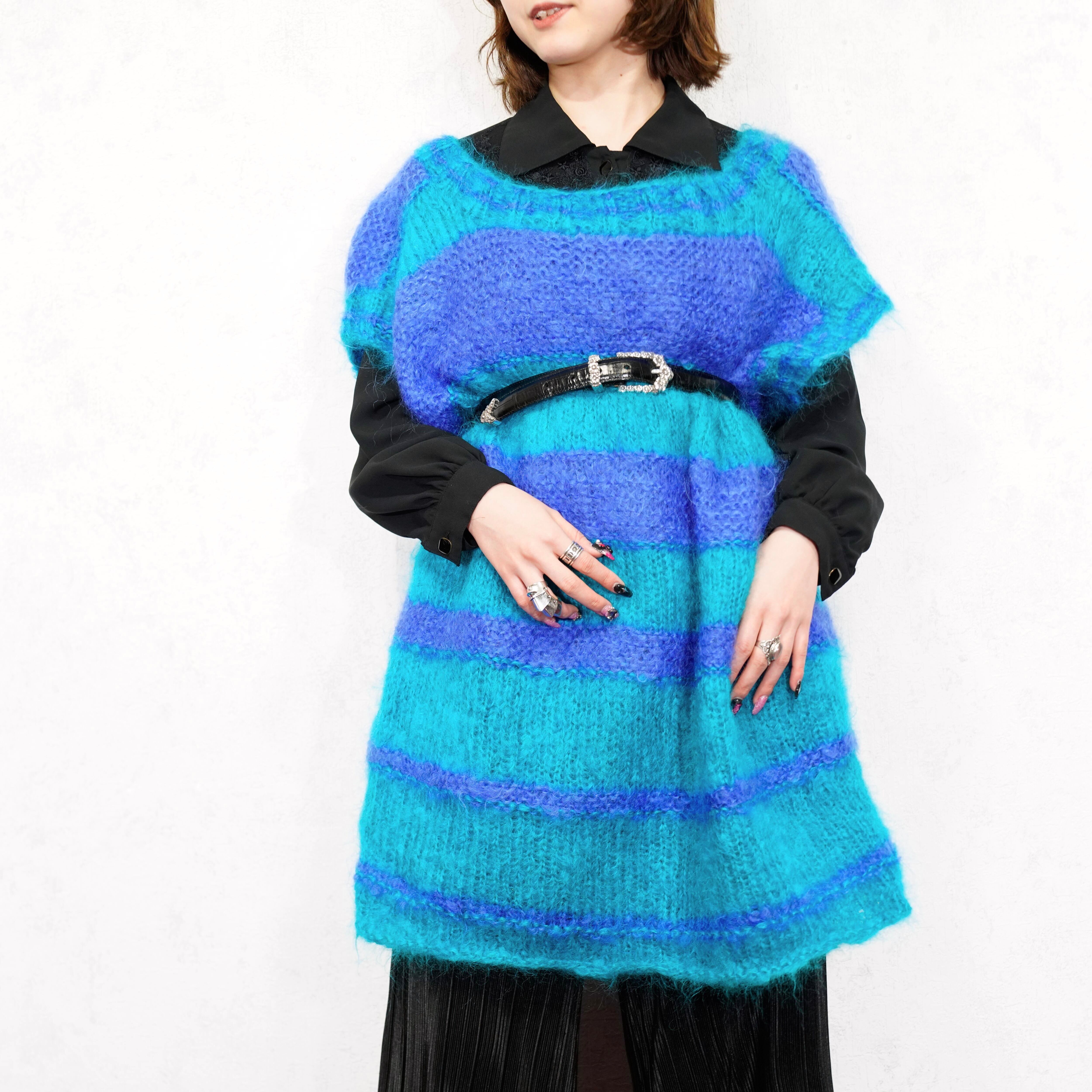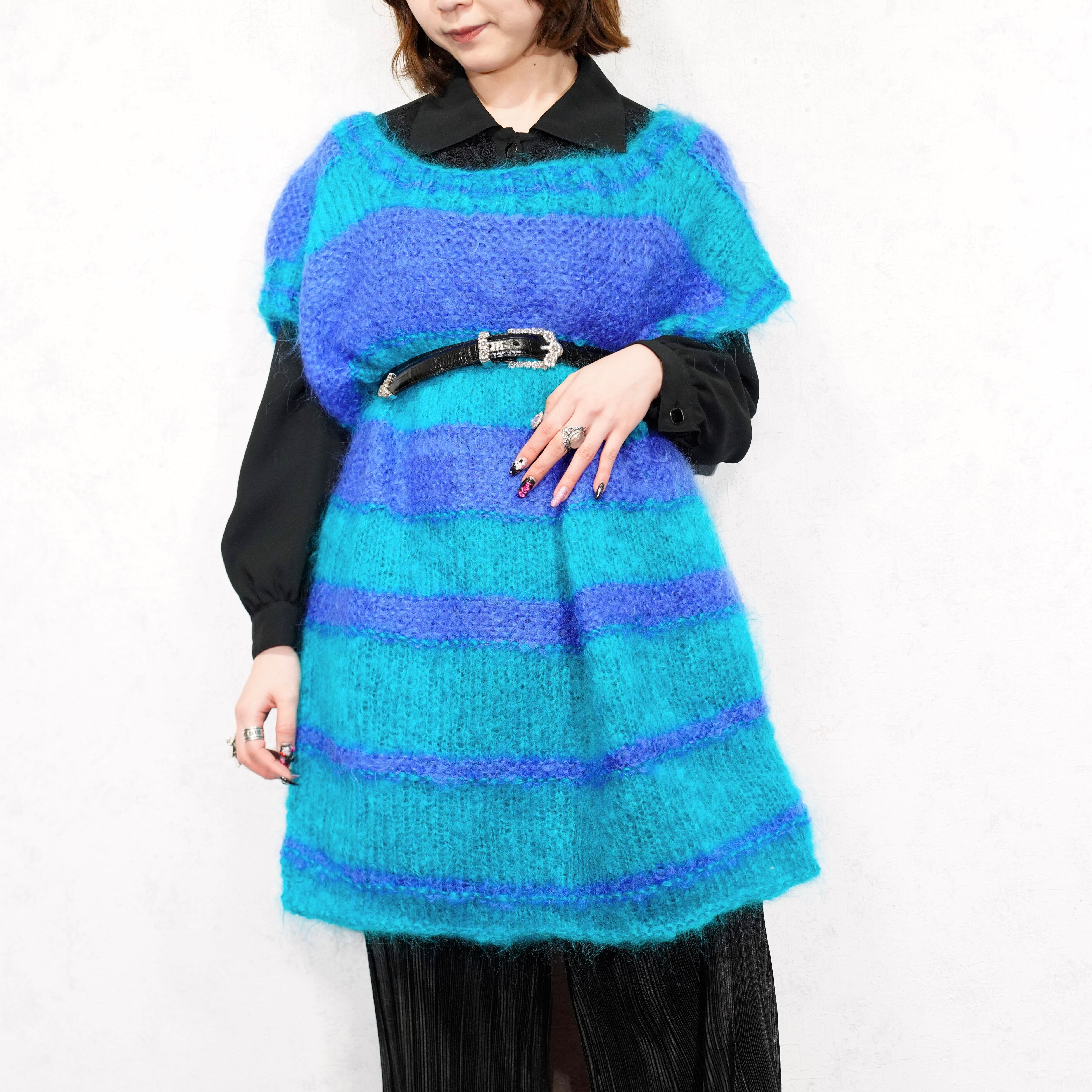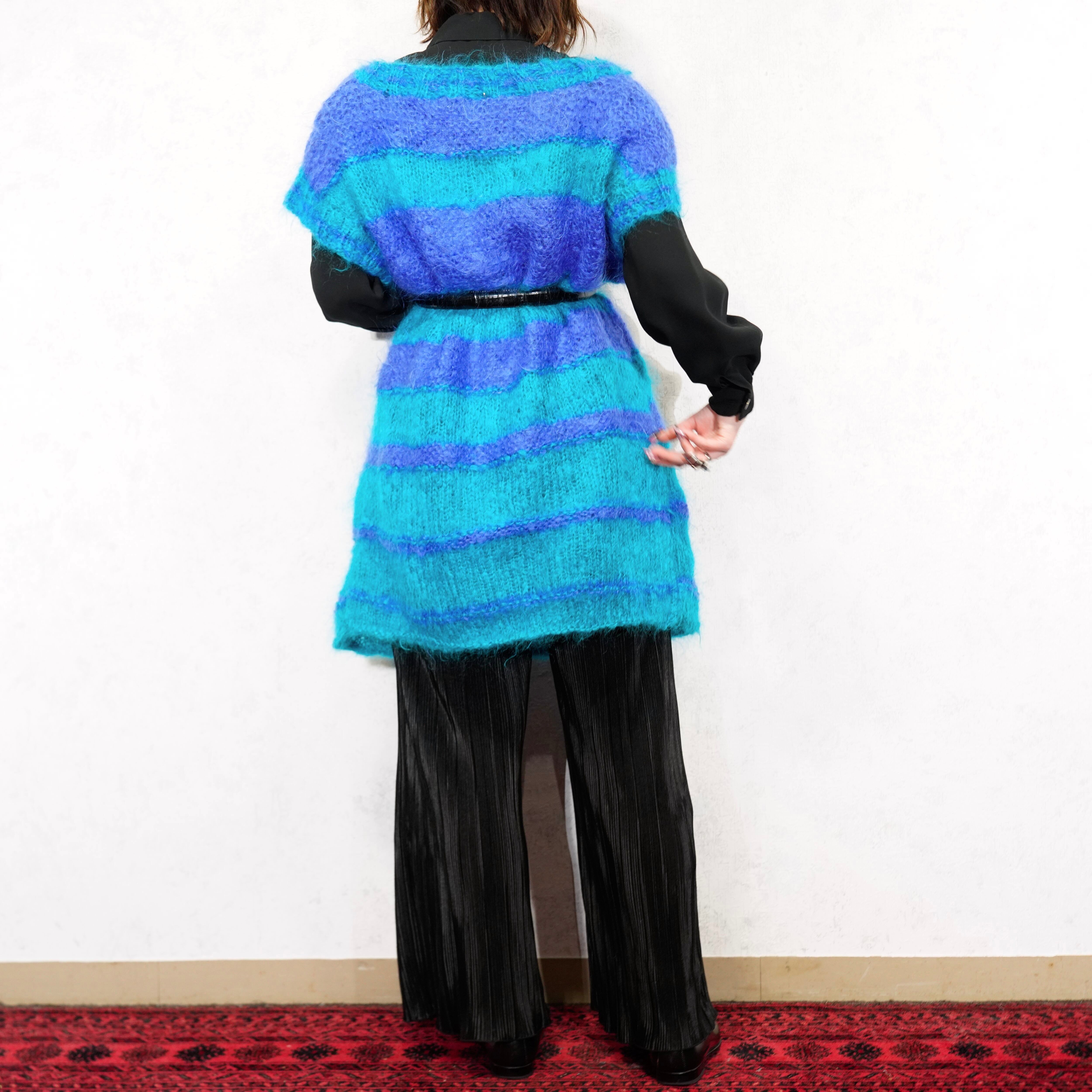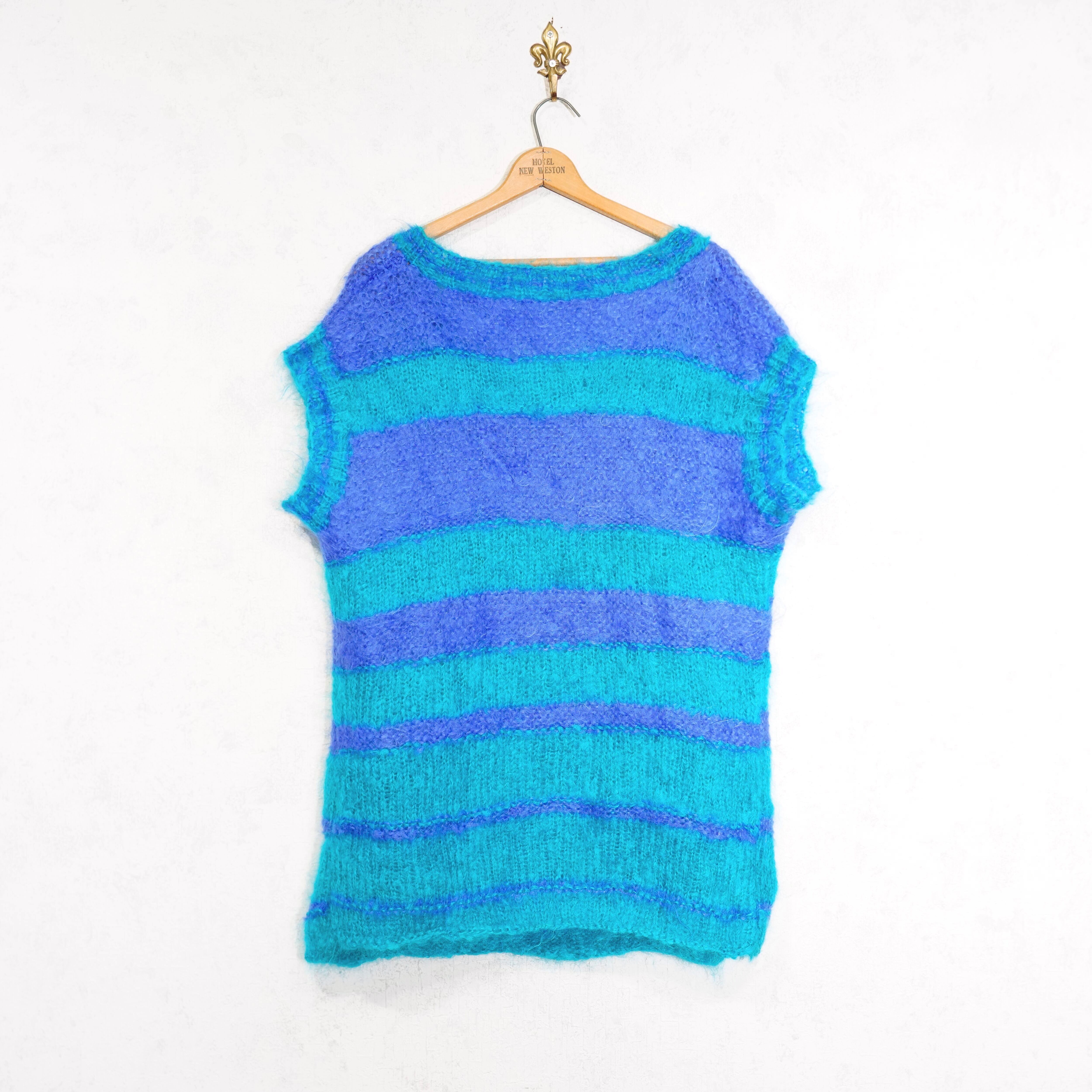 EU VINTAGE BORDER PATTERNED MOHAIR KNIT VEST/ヨーロッパ古着ボーダー柄モヘアニットベスト
