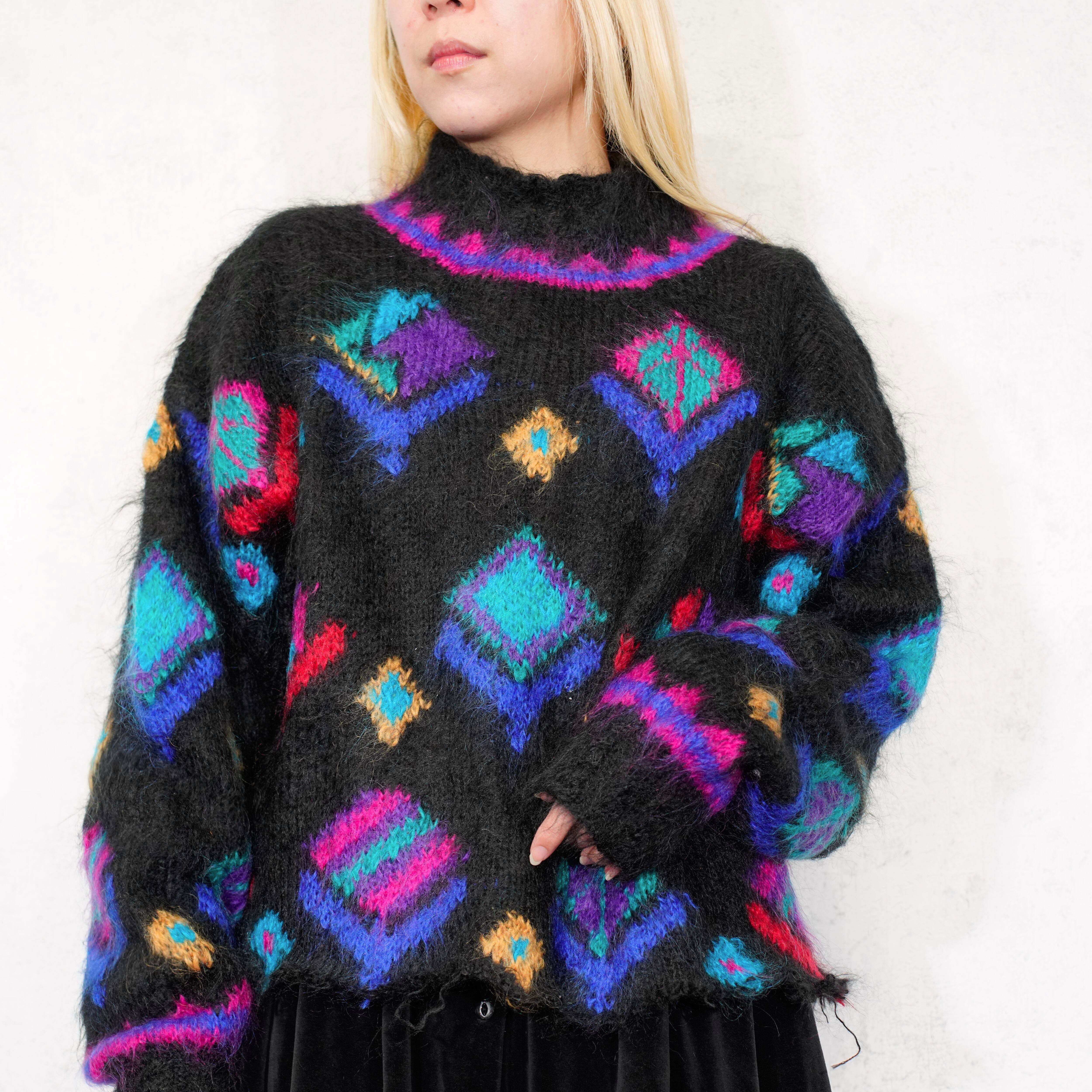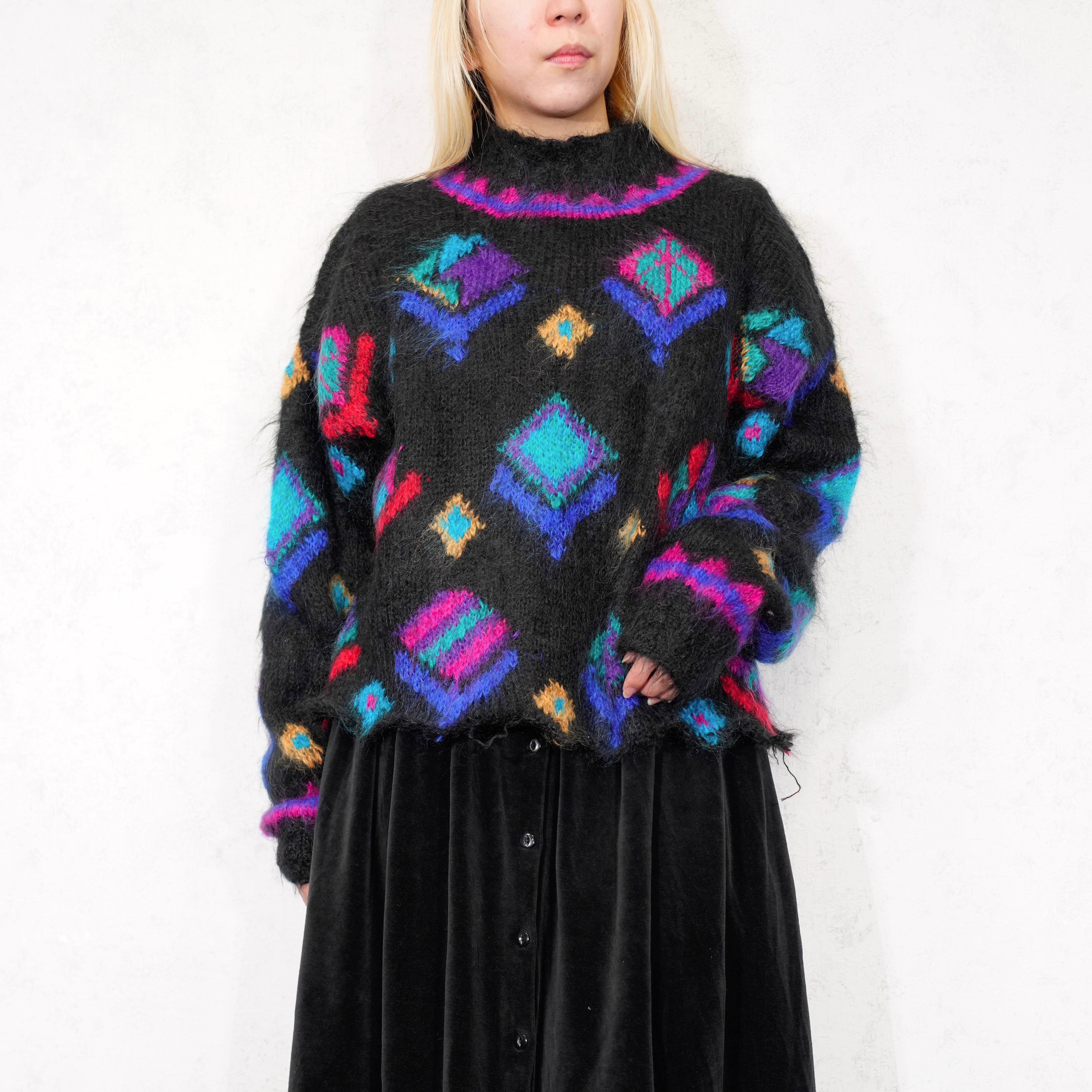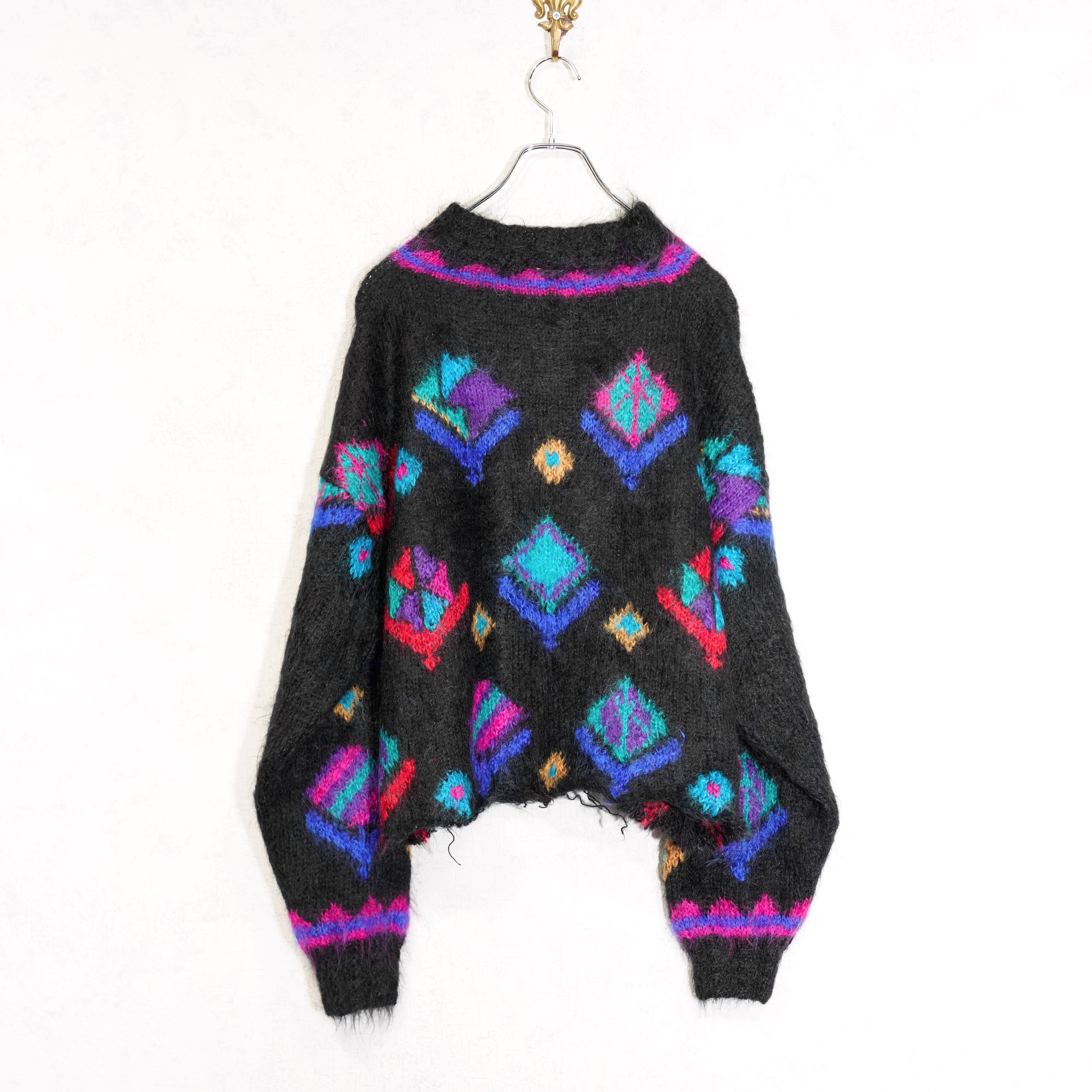 EU VINTAGE ICELANDIC DESIGN PATTERNED DESIGN LONG MOHAIR KNIT/ヨーロッパ古着柄デザインロングモヘアニット