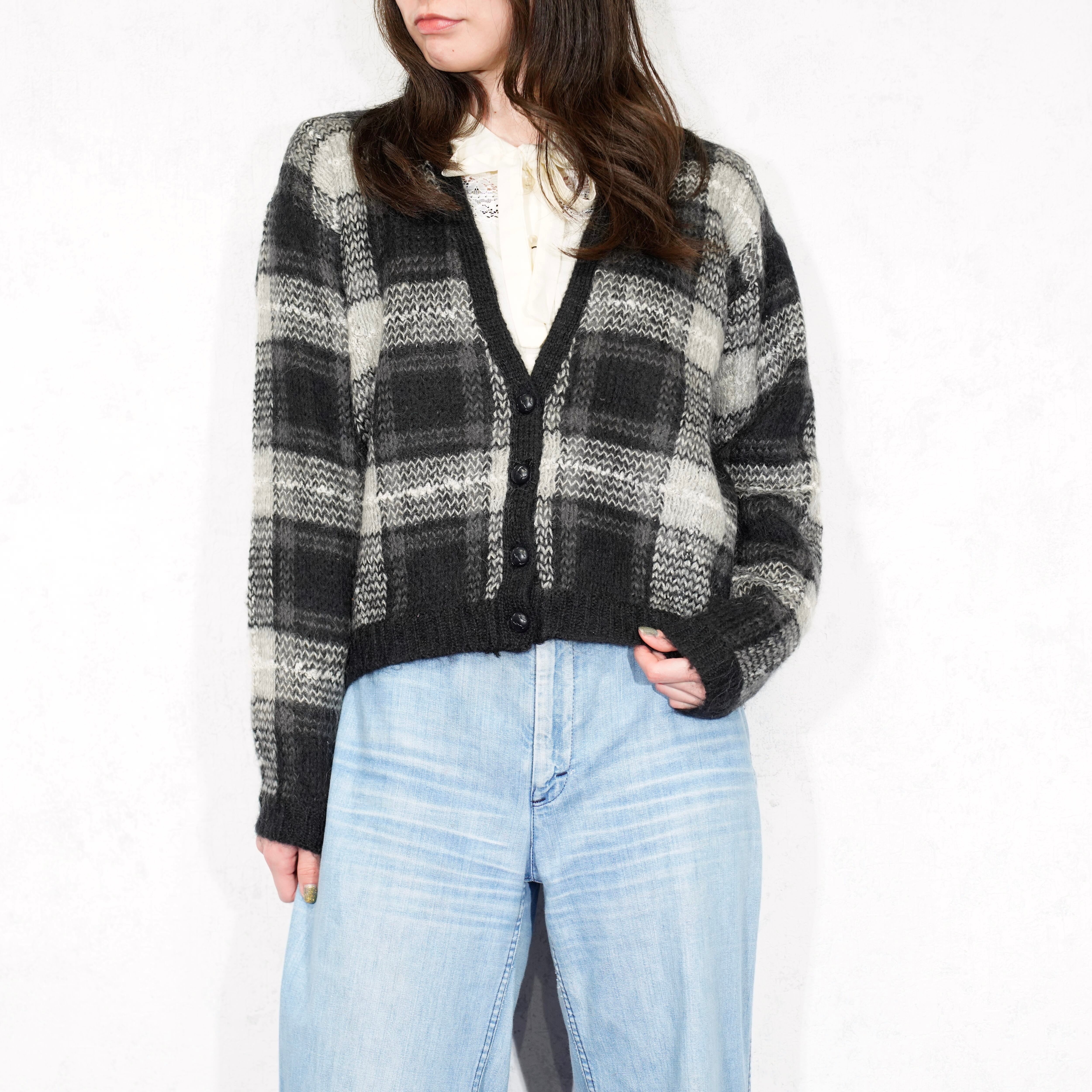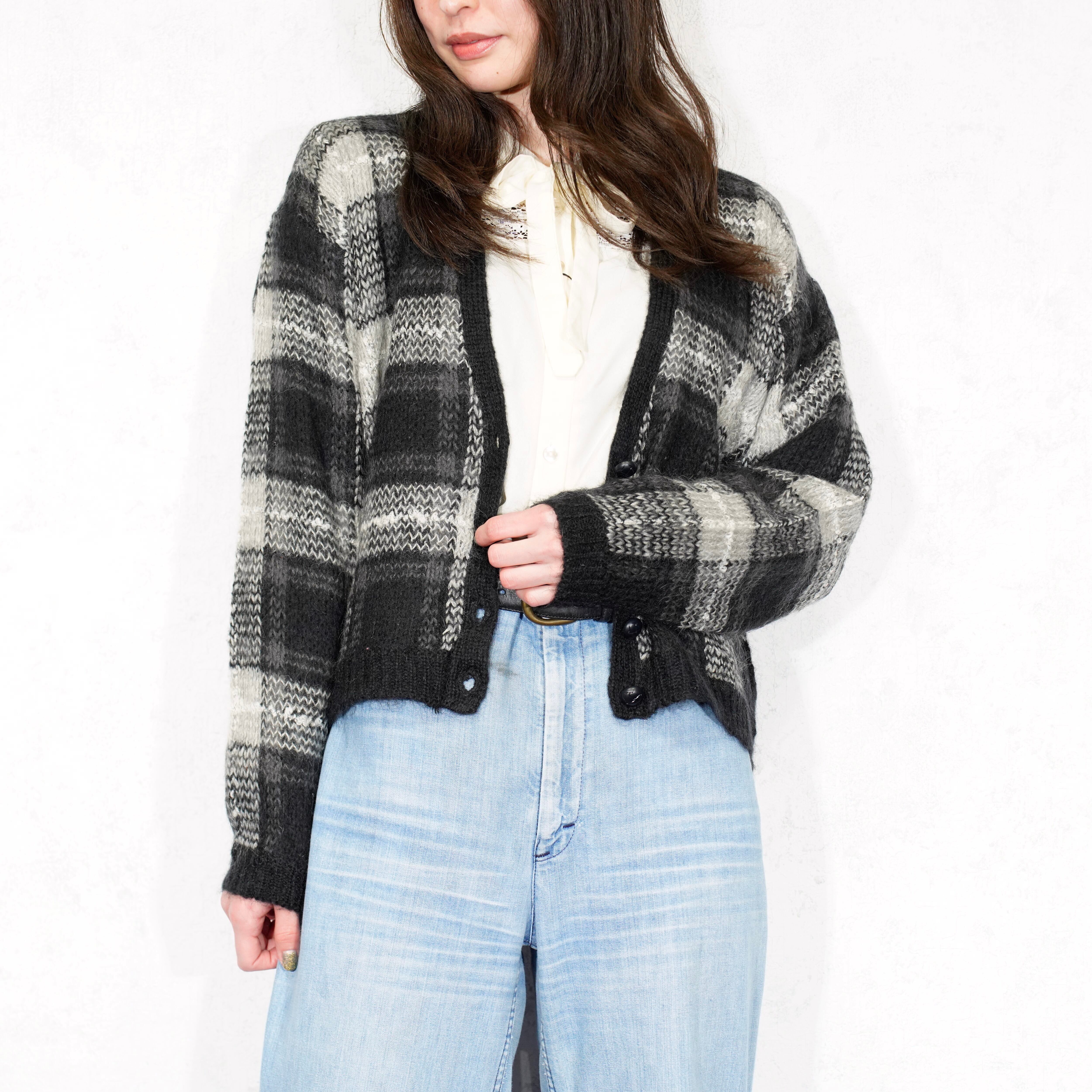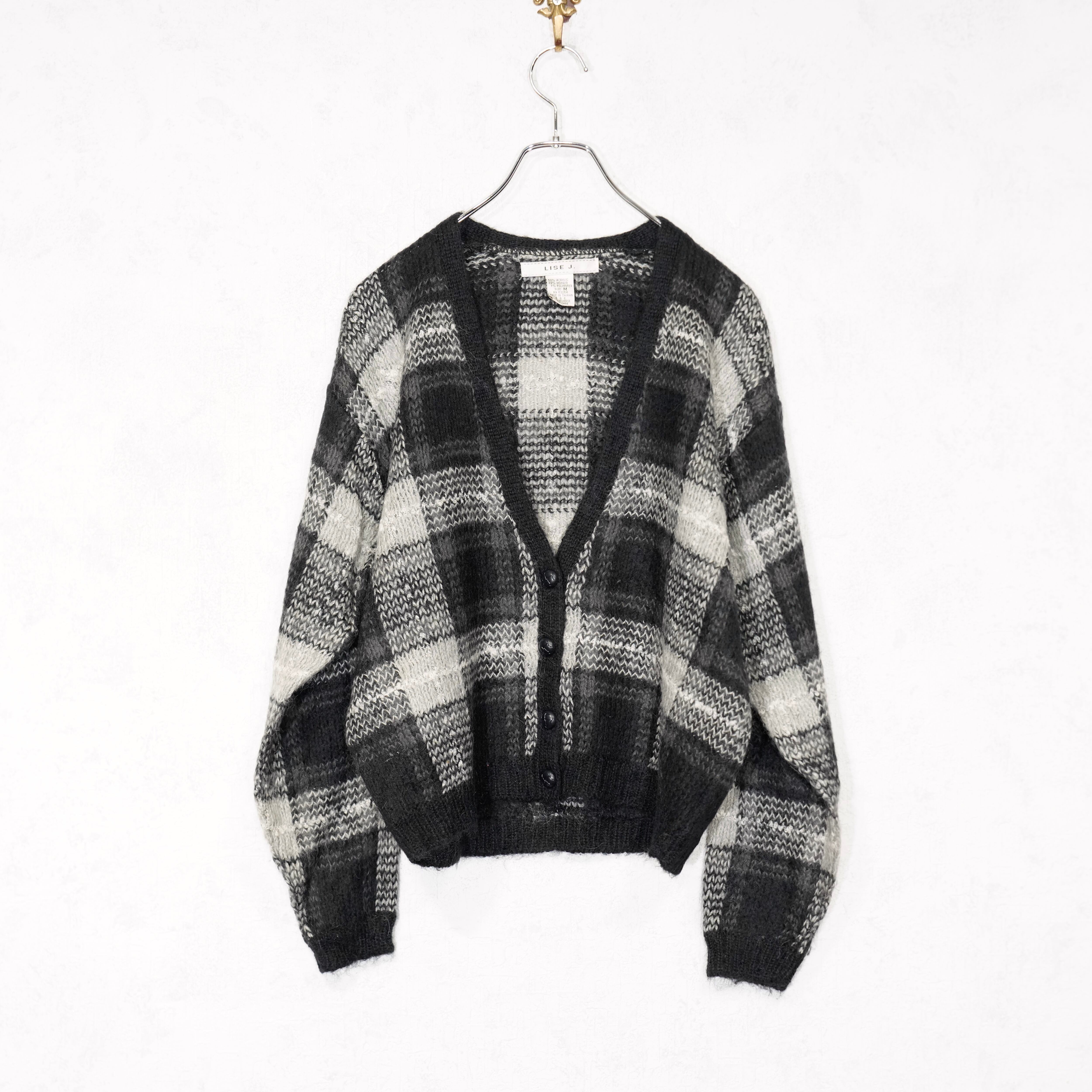 USA VINTAGE LISE J. CHECK PATTERNED MOHAIR KNIT CARDIGAN/アメリカ古着チェック柄モヘアニットカーディガン