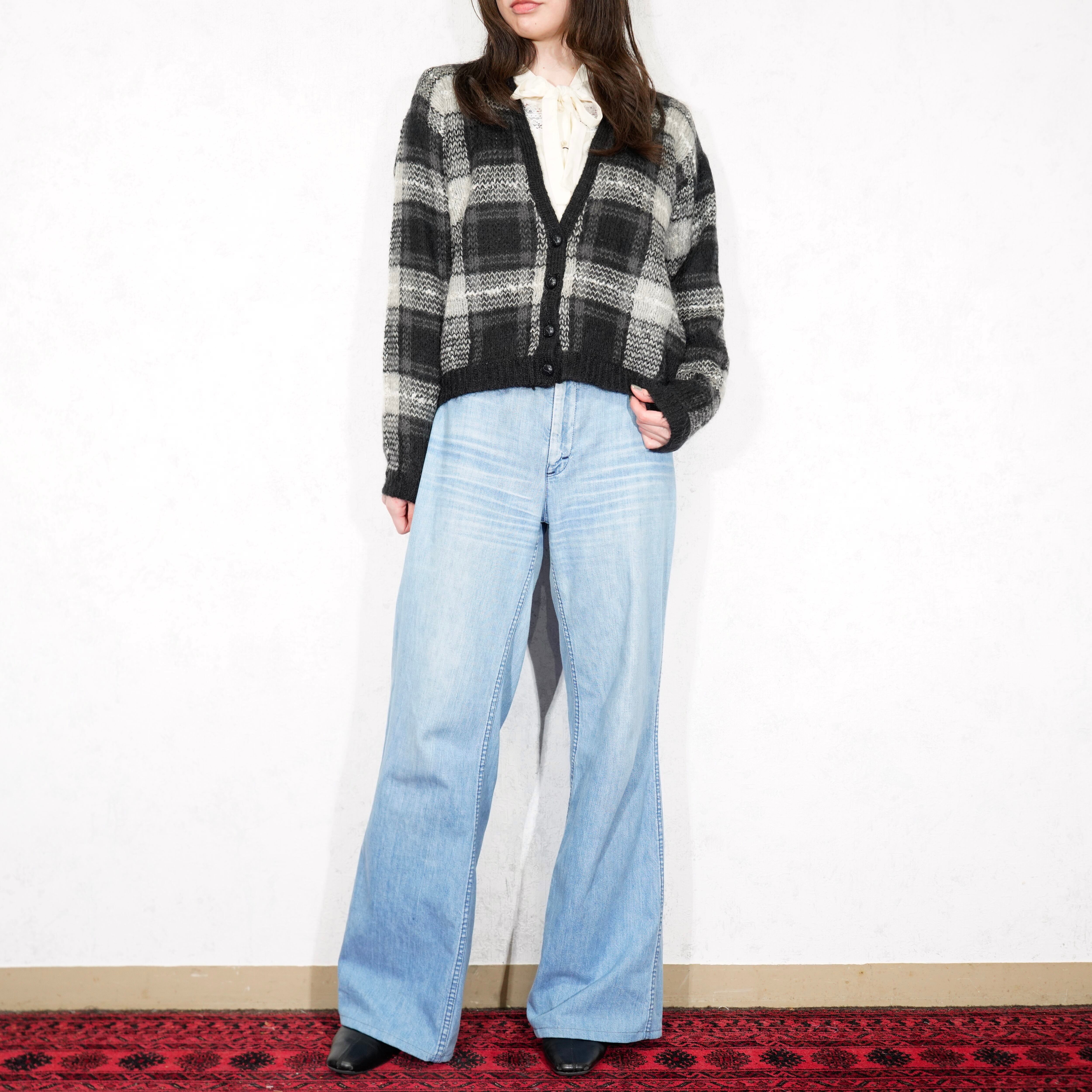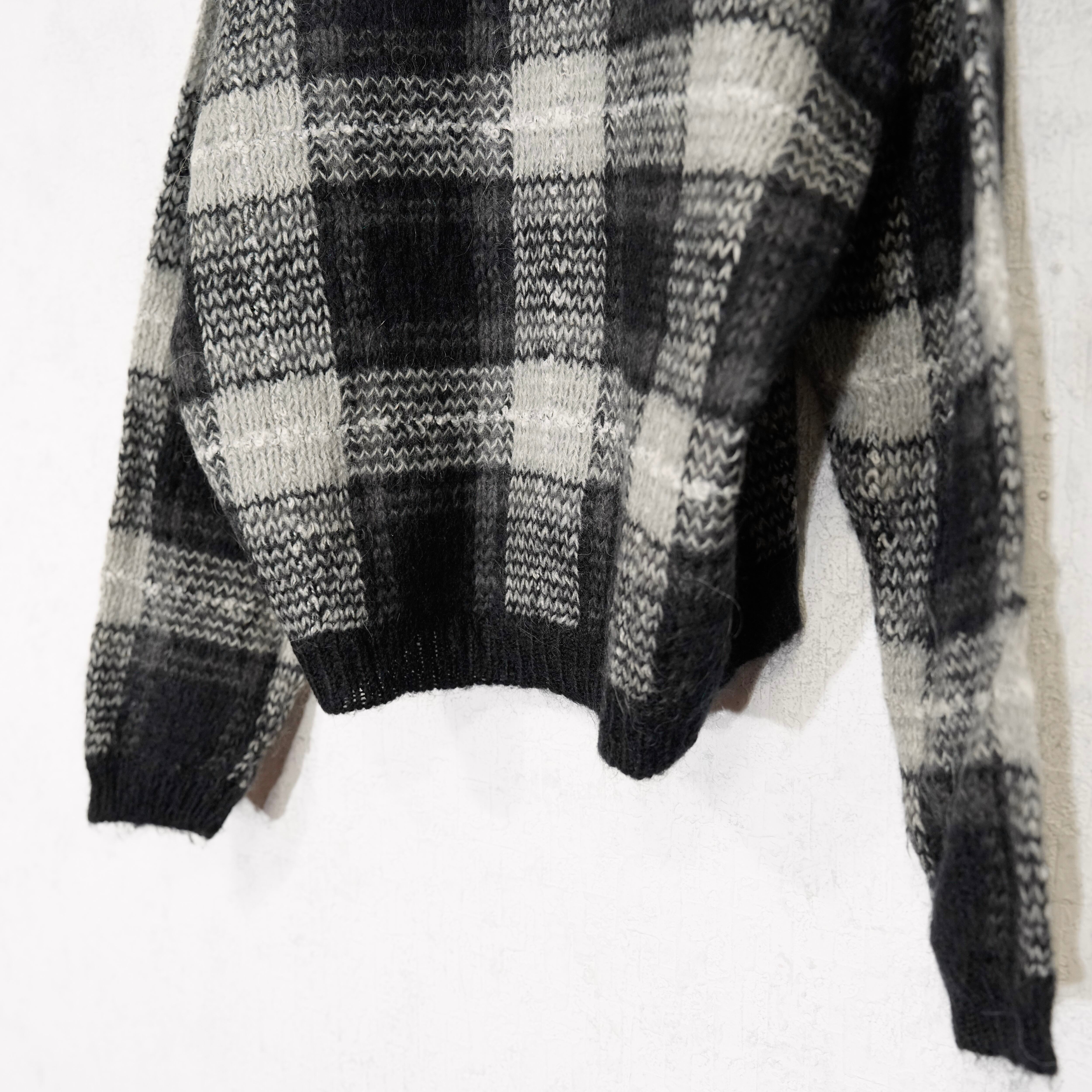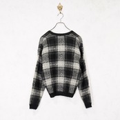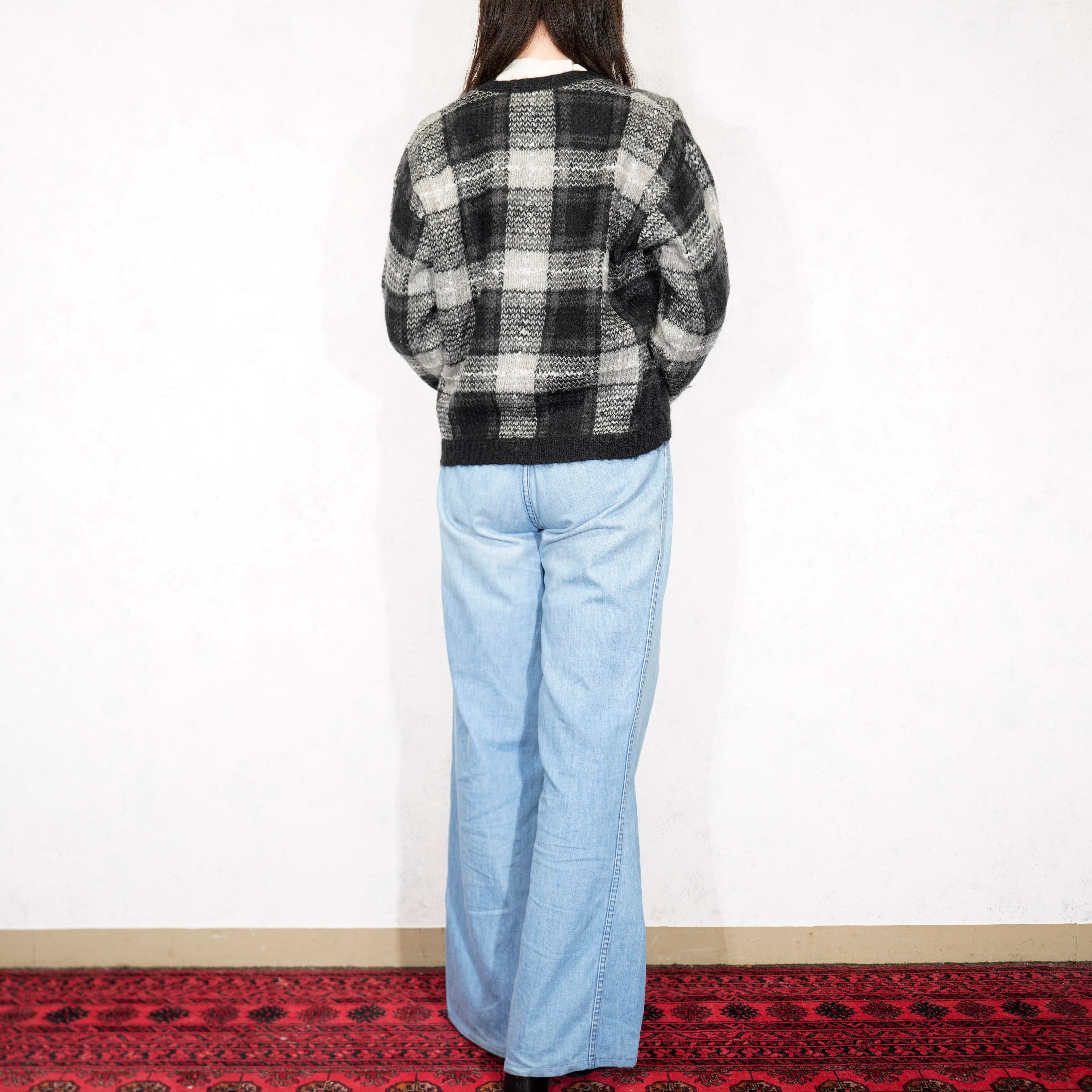 USA VINTAGE LISE J. CHECK PATTERNED MOHAIR KNIT CARDIGAN/アメリカ古着チェック柄モヘアニットカーディガン