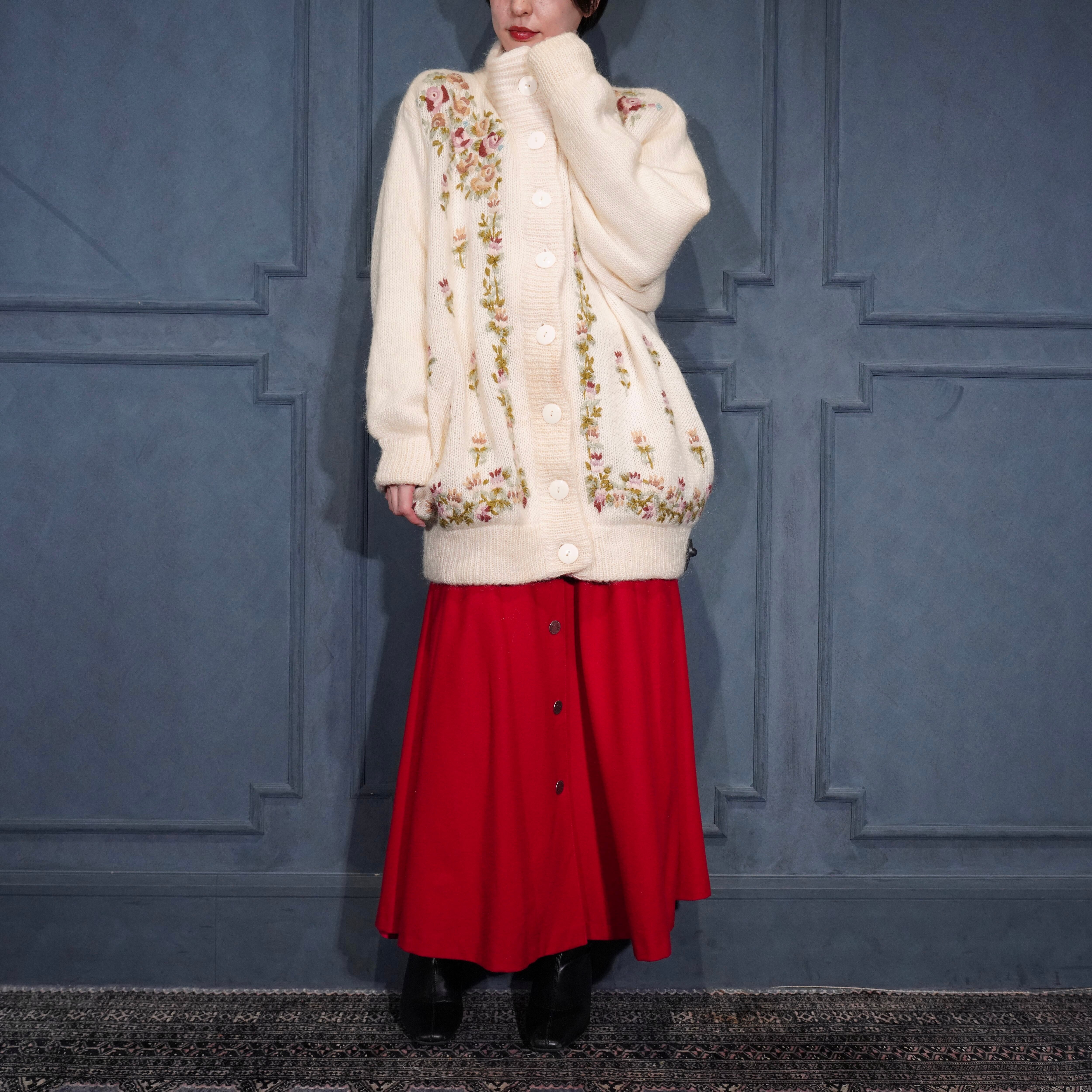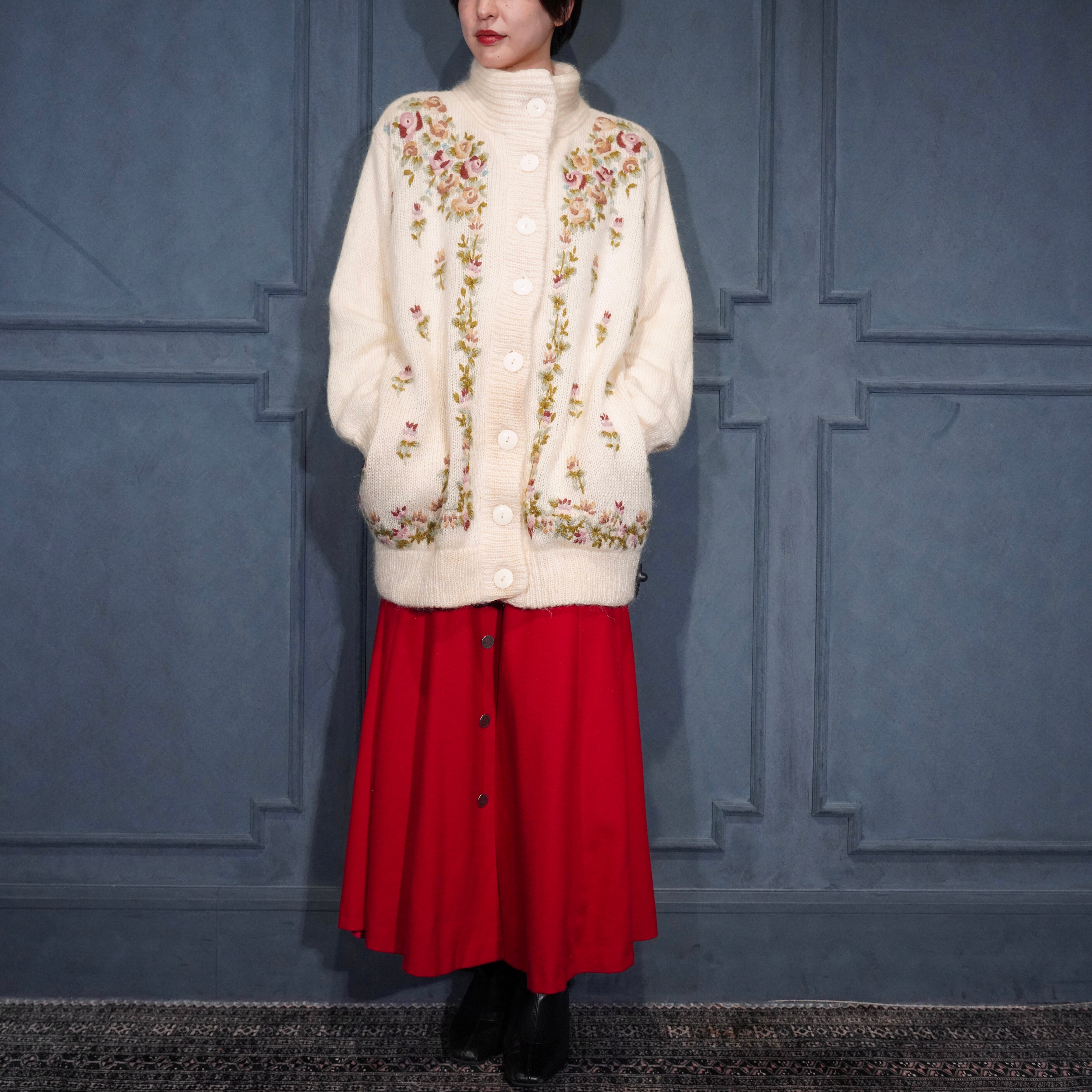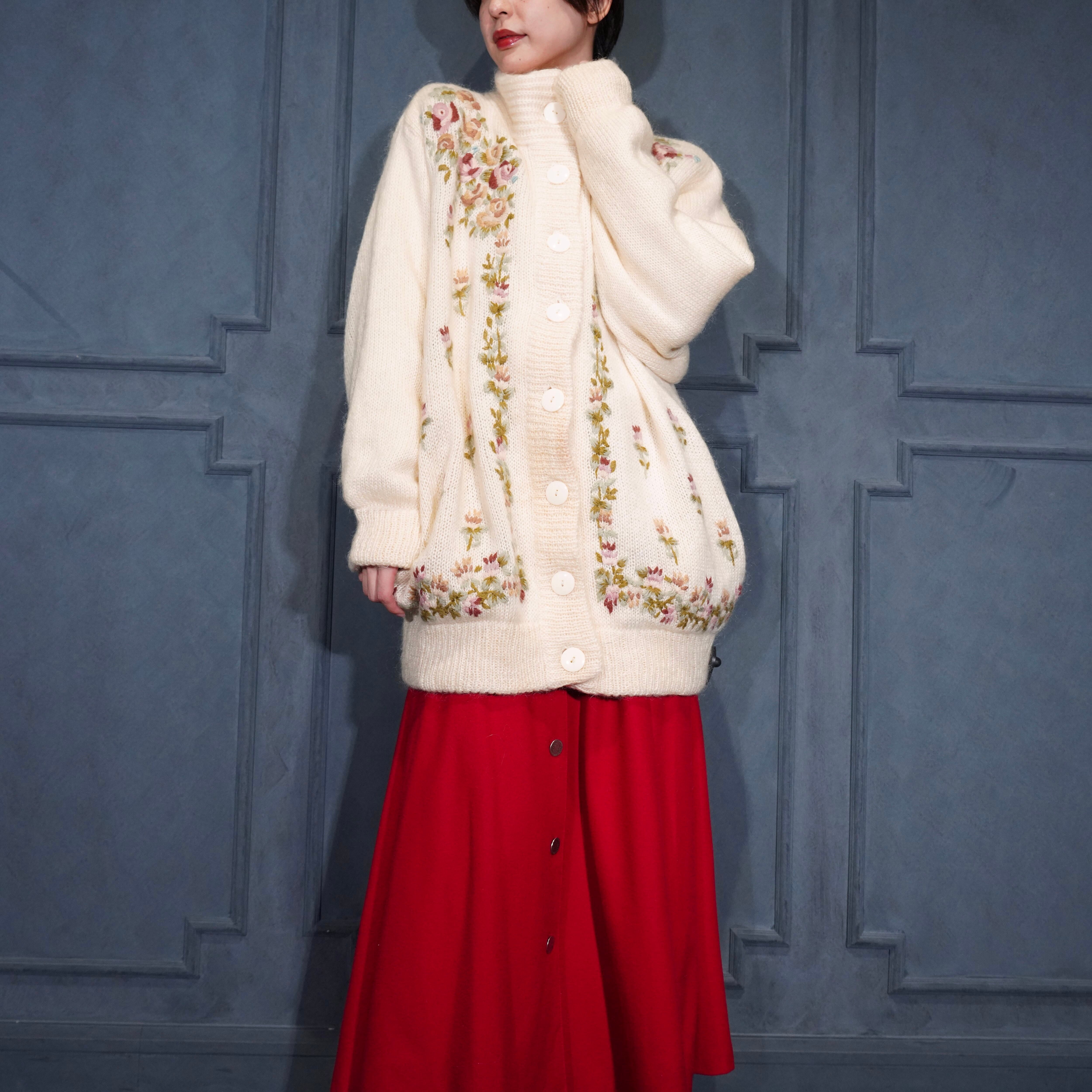EU VINTAGE ABEL FLOWER EMBROIDERY DESIGN MOHAIR KNIT CARDIGAN/ヨーロッパ古着お花刺繍デザインモヘアニットカーディガン