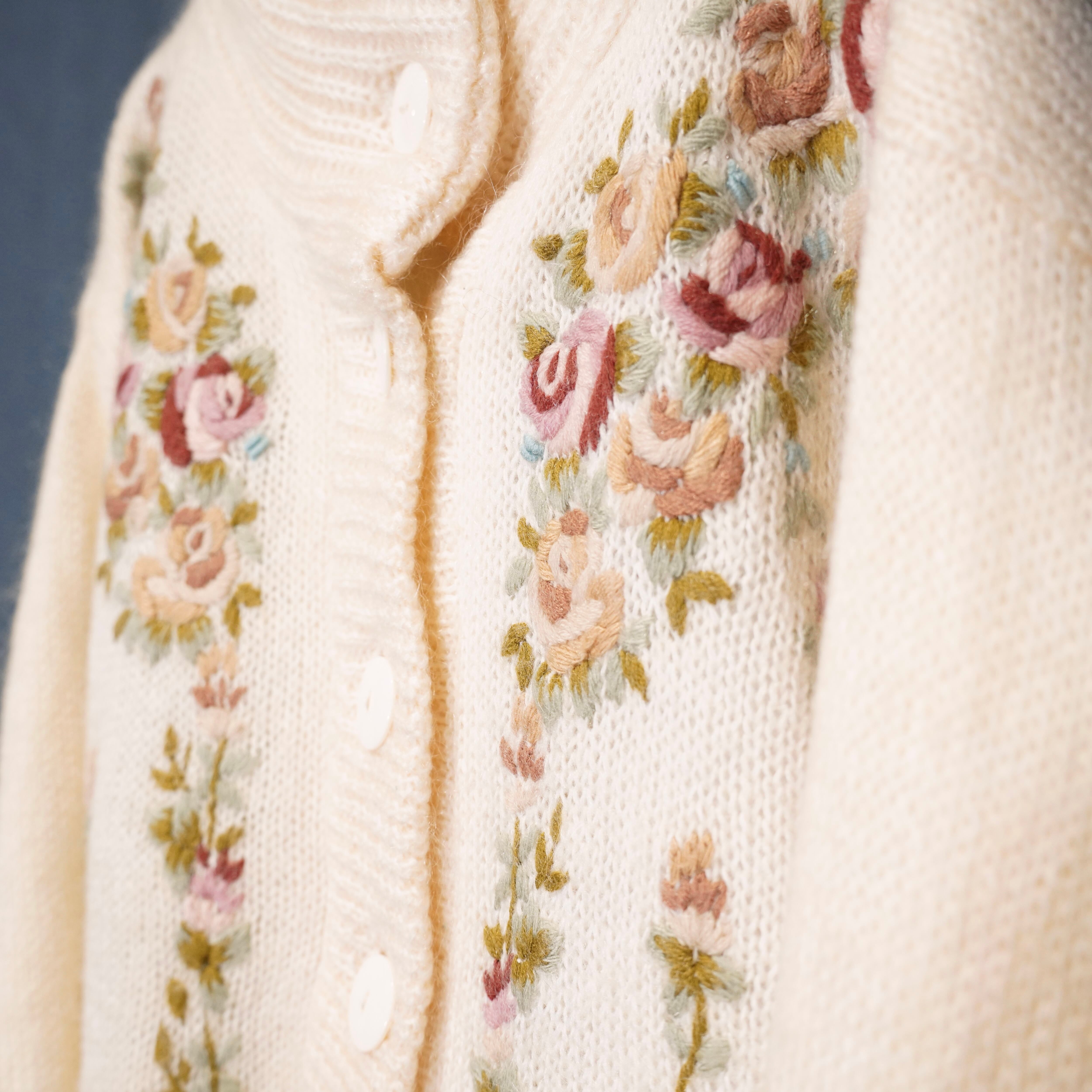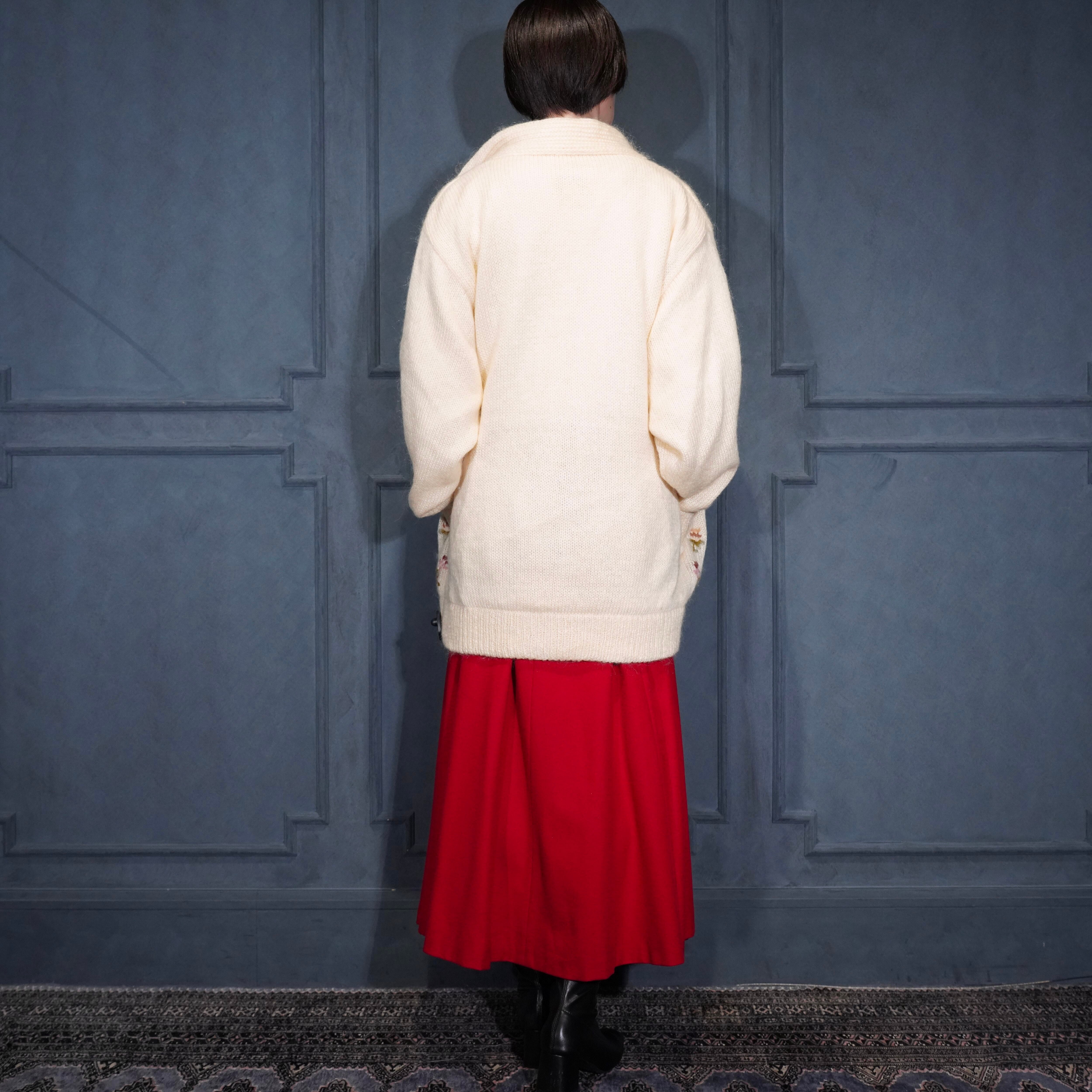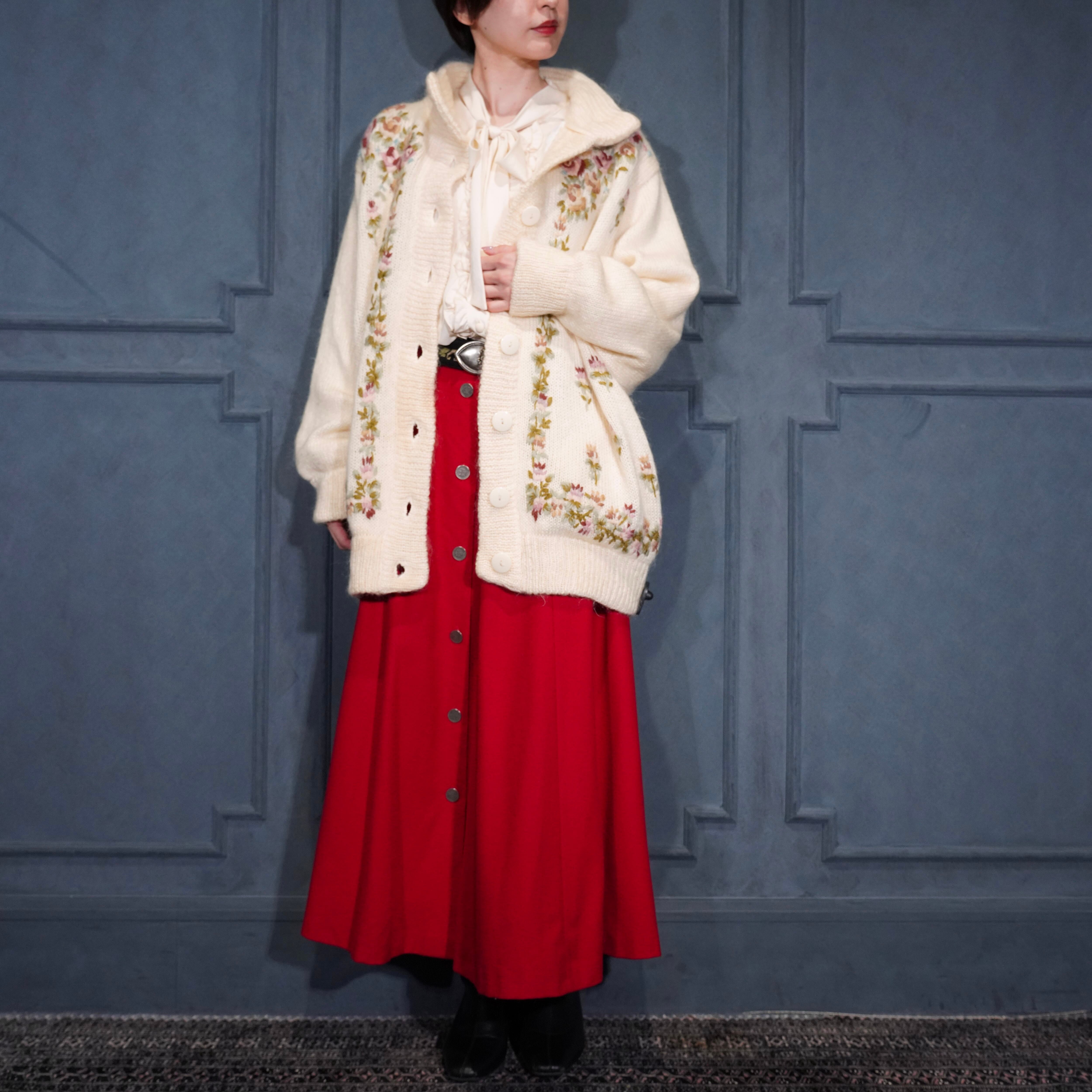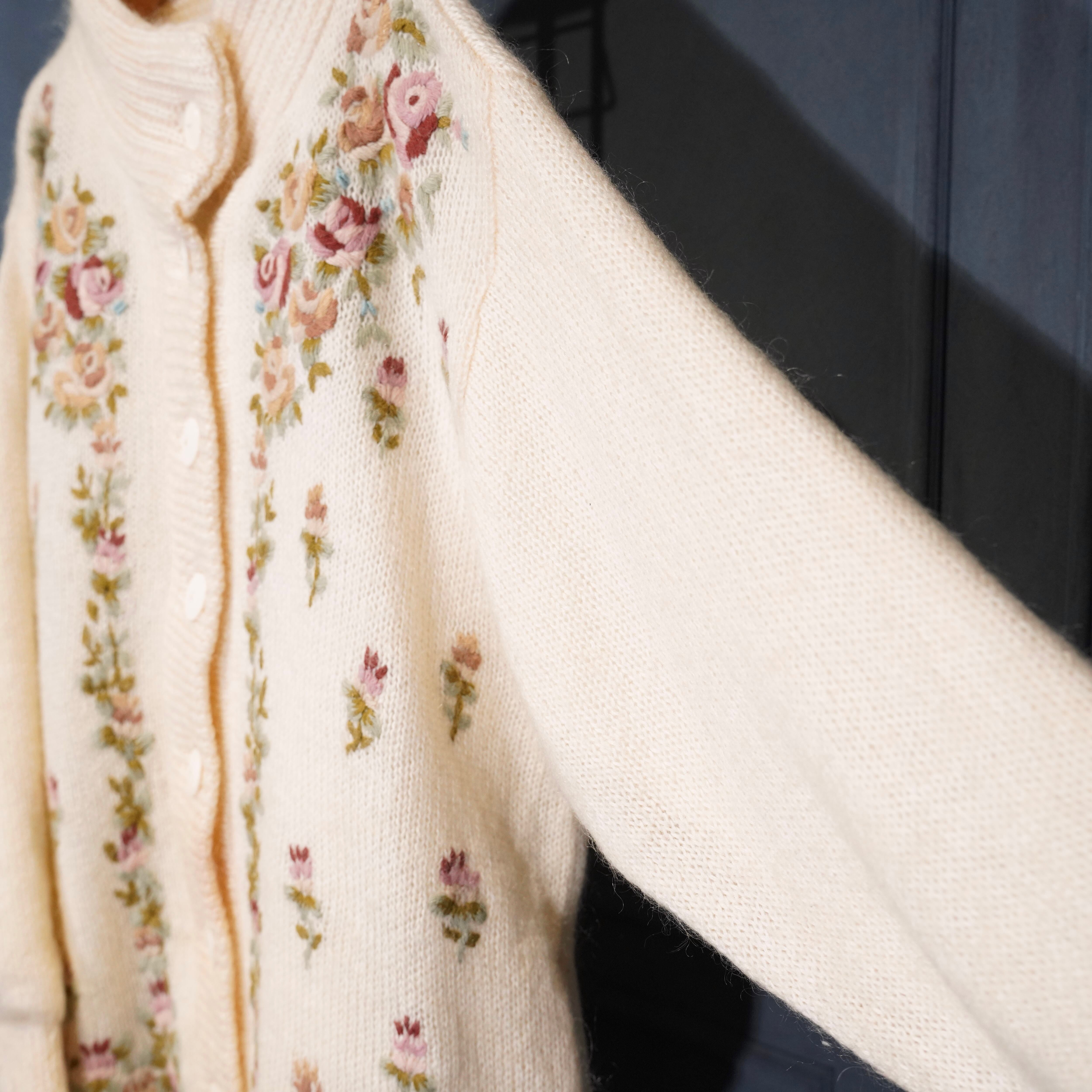 EU VINTAGE ABEL FLOWER EMBROIDERY DESIGN MOHAIR KNIT CARDIGAN/ヨーロッパ古着お花刺繍デザインモヘアニットカーディガン