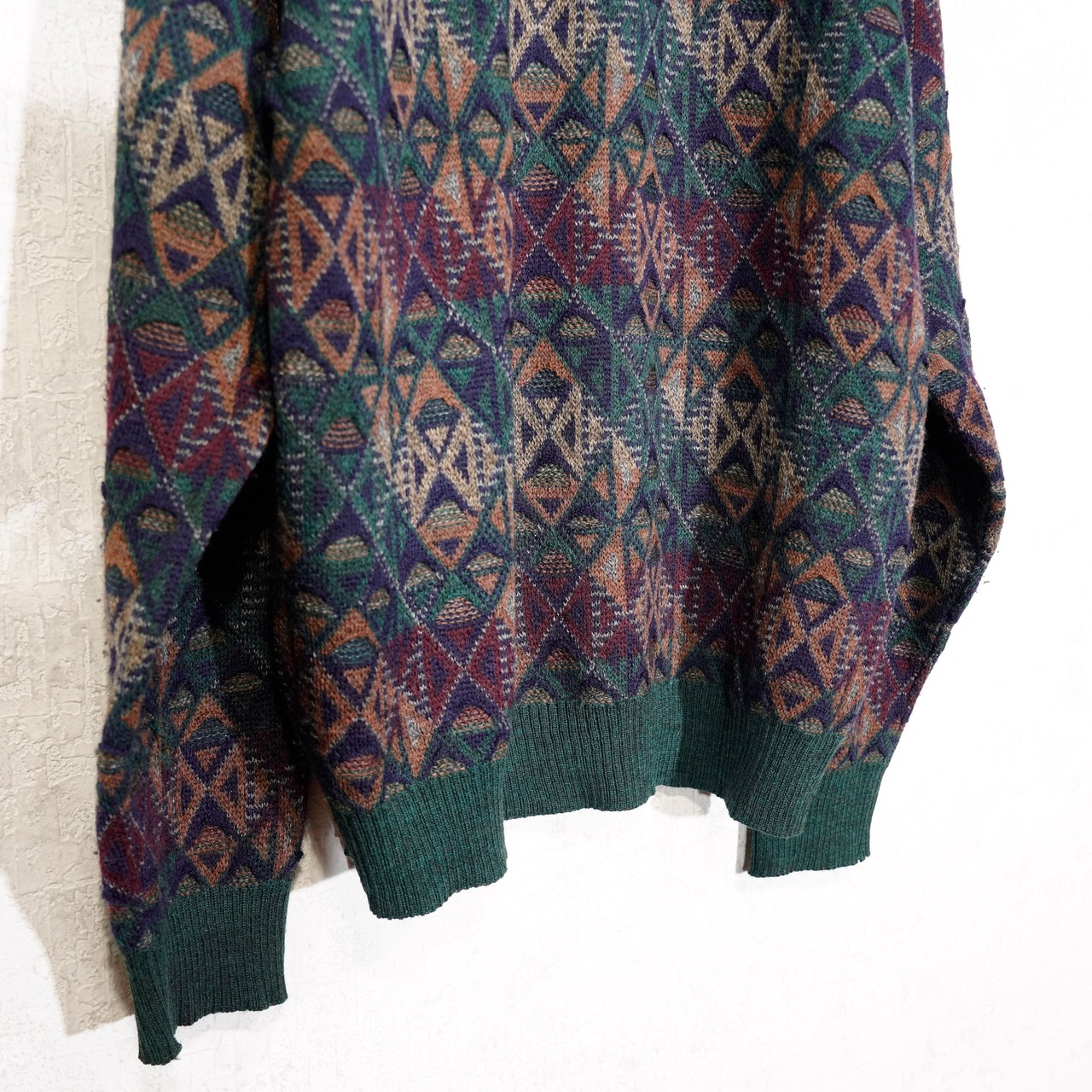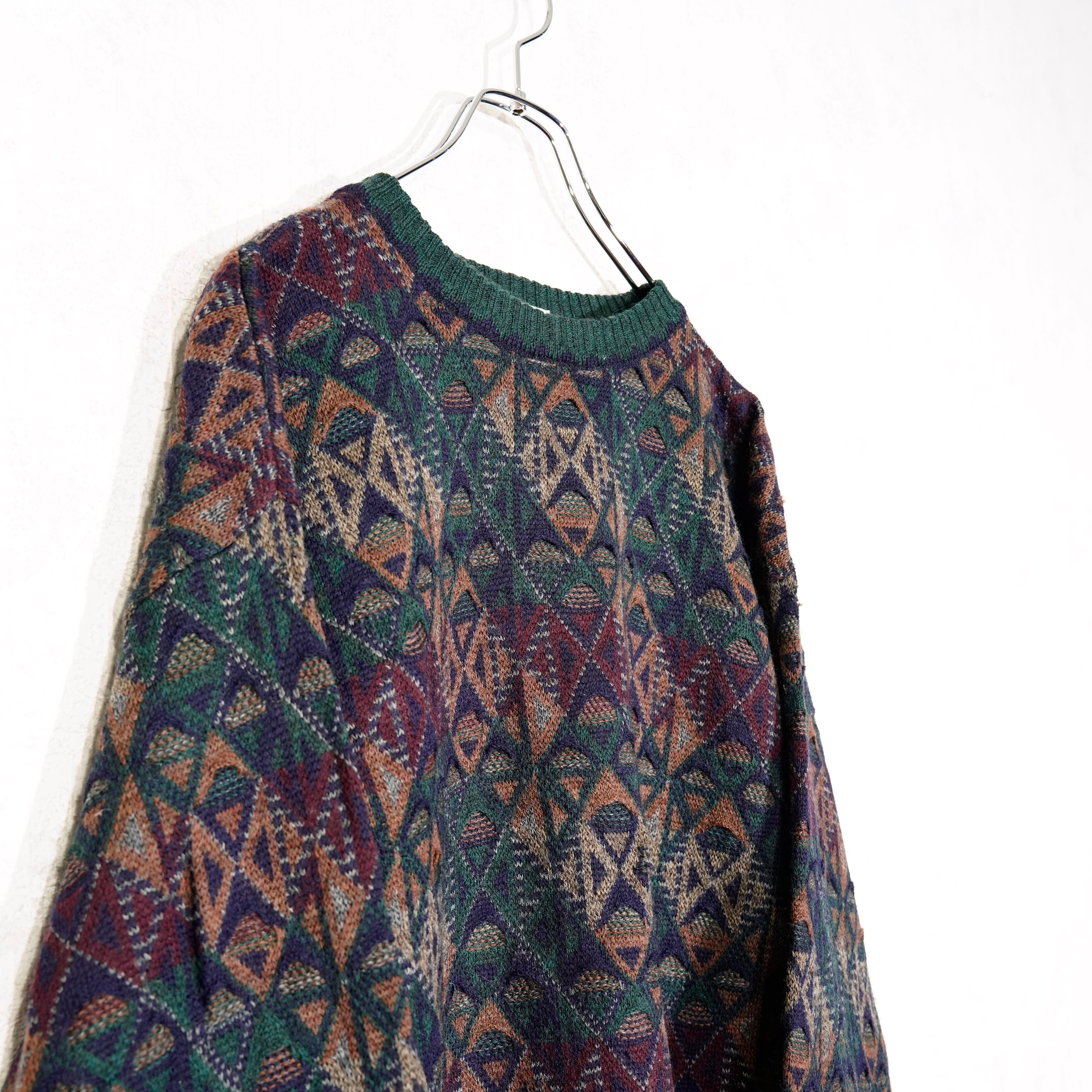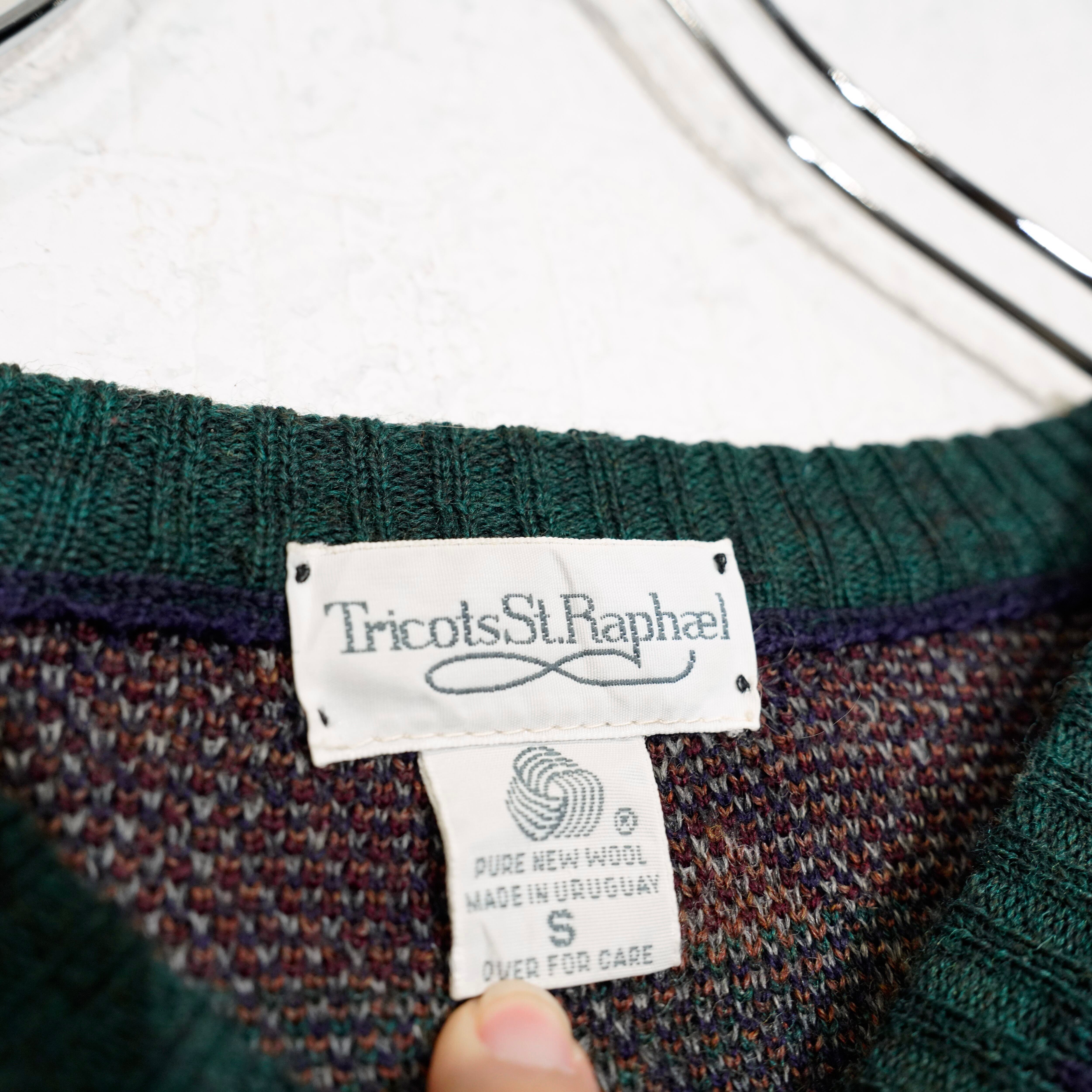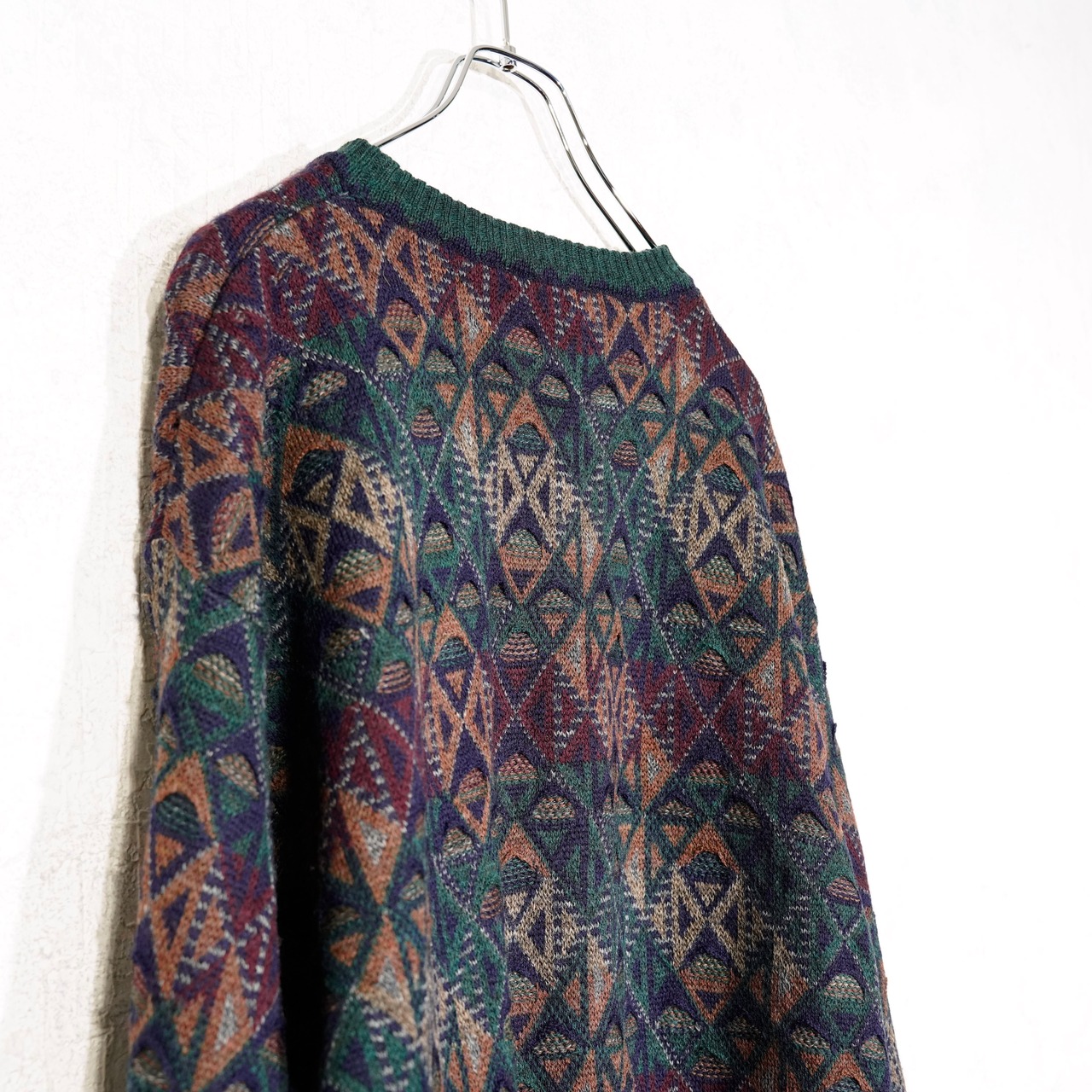 EU VINTAGE TricotsSt.Raphael GEOMETRIC PATTERNED DESIGN 3D KNIT MADE IN URUGUAY/ヨーロッパ古着幾何学柄デザイン3Dニット
