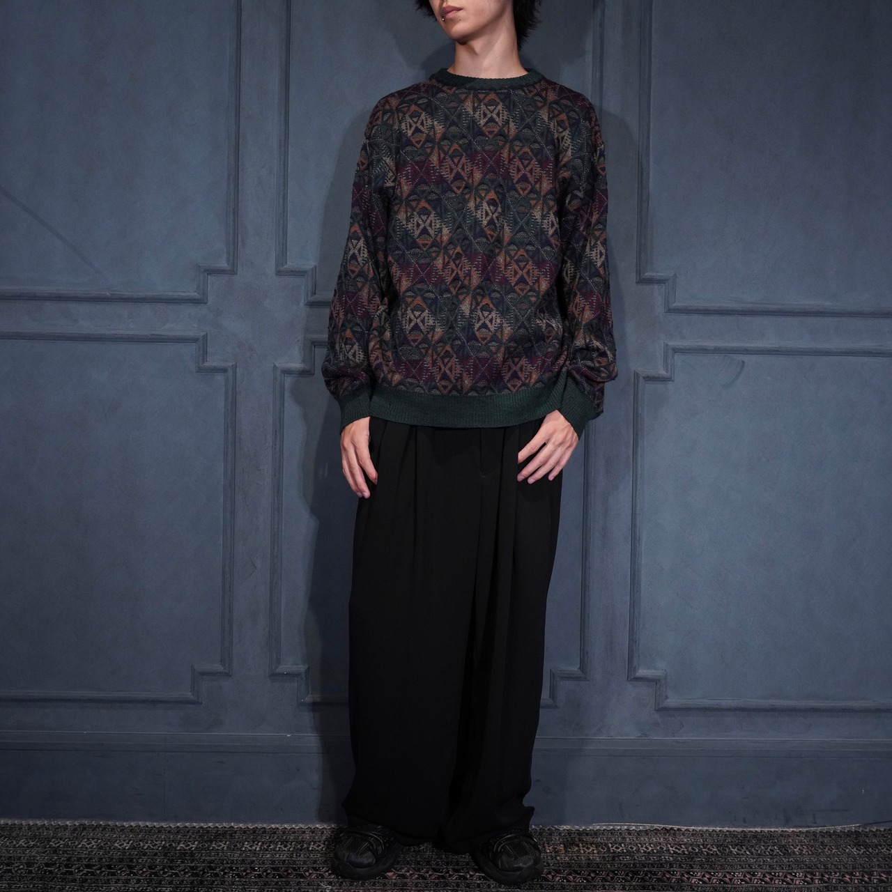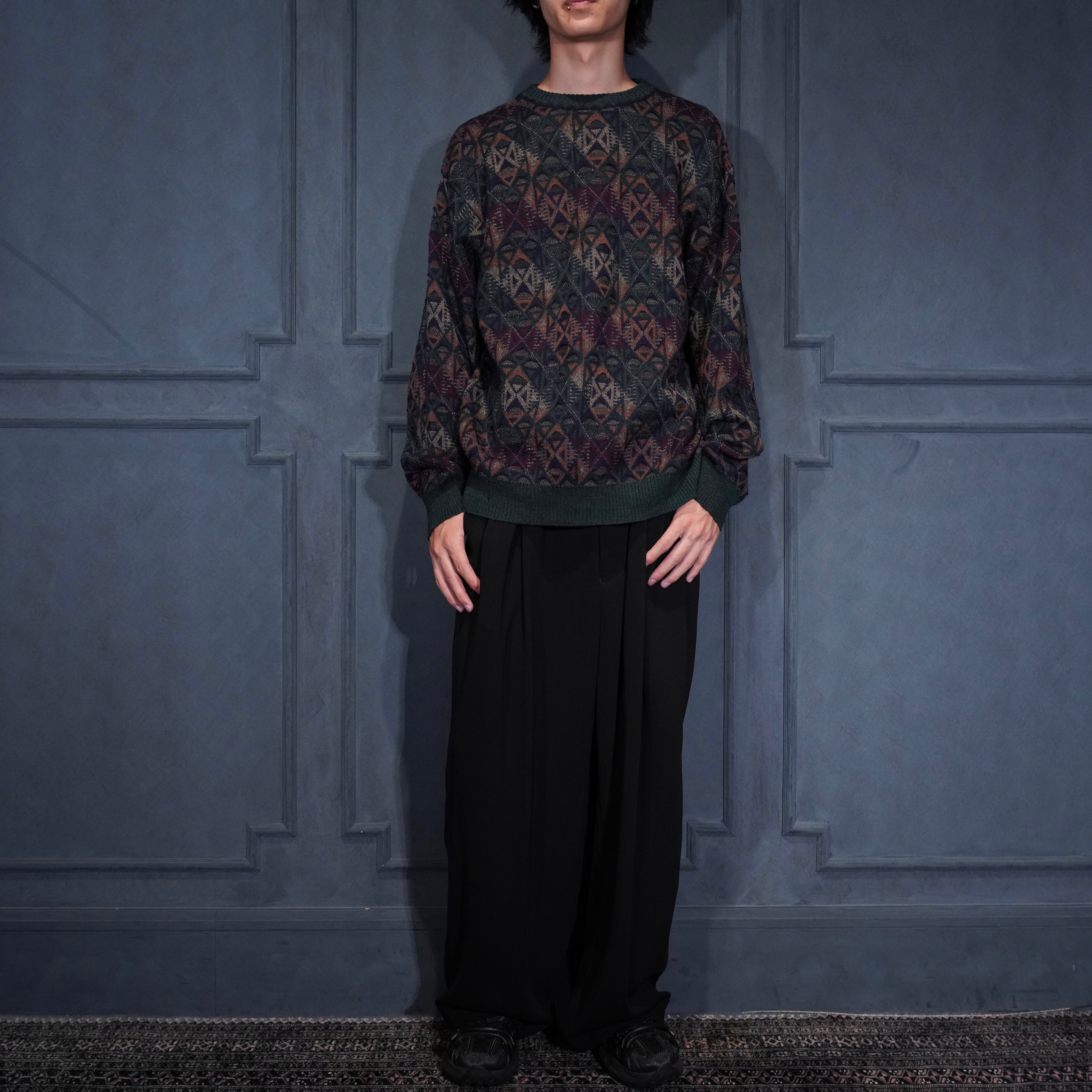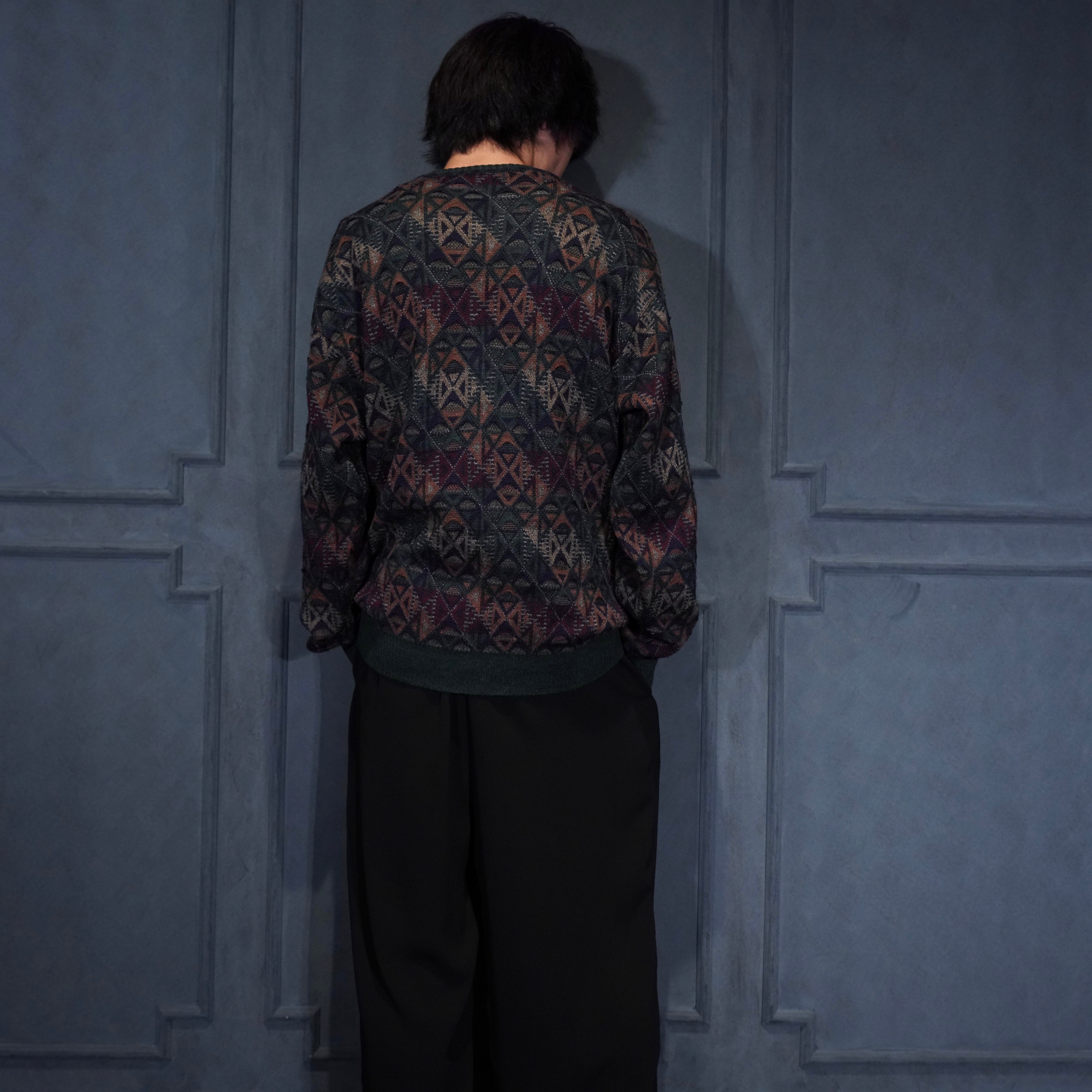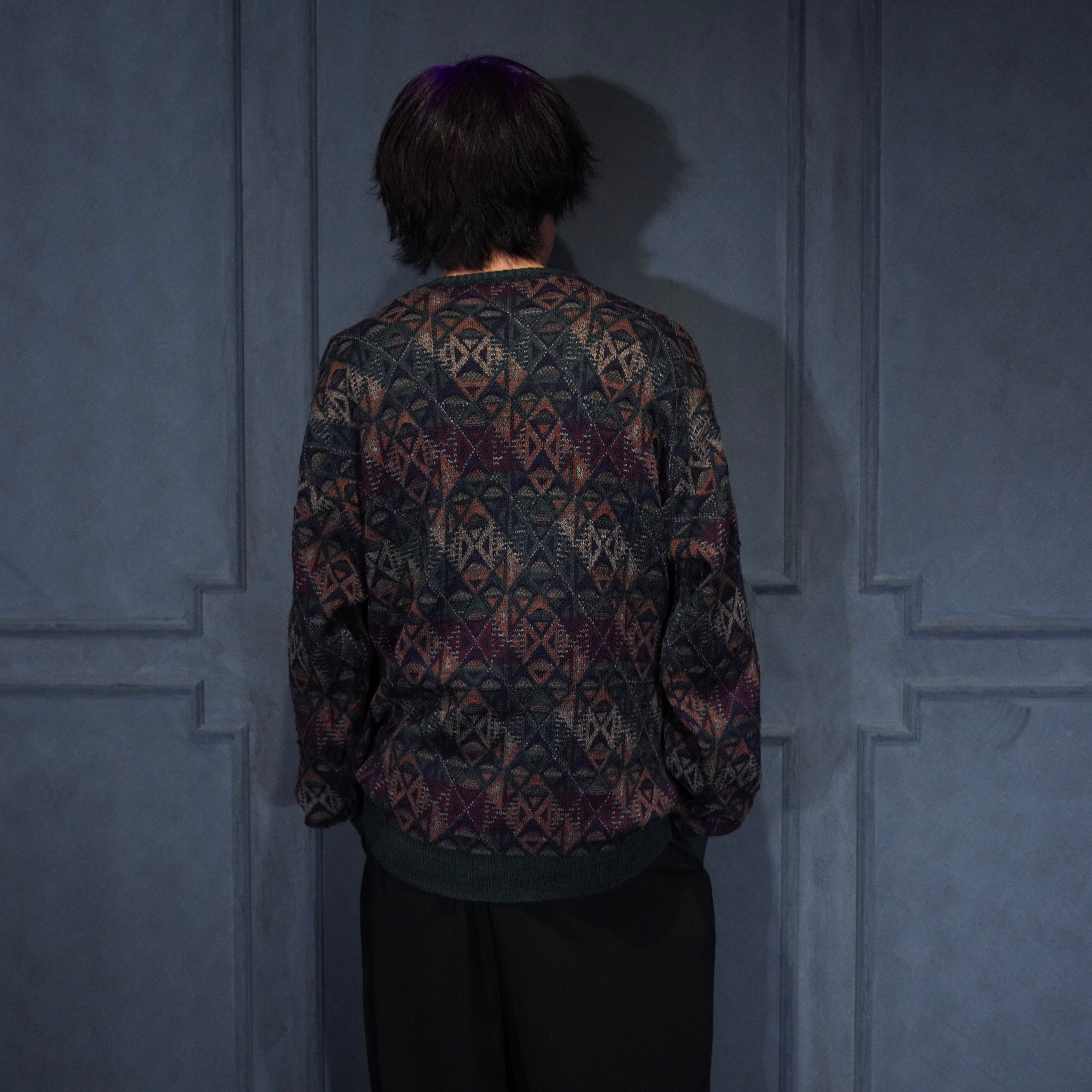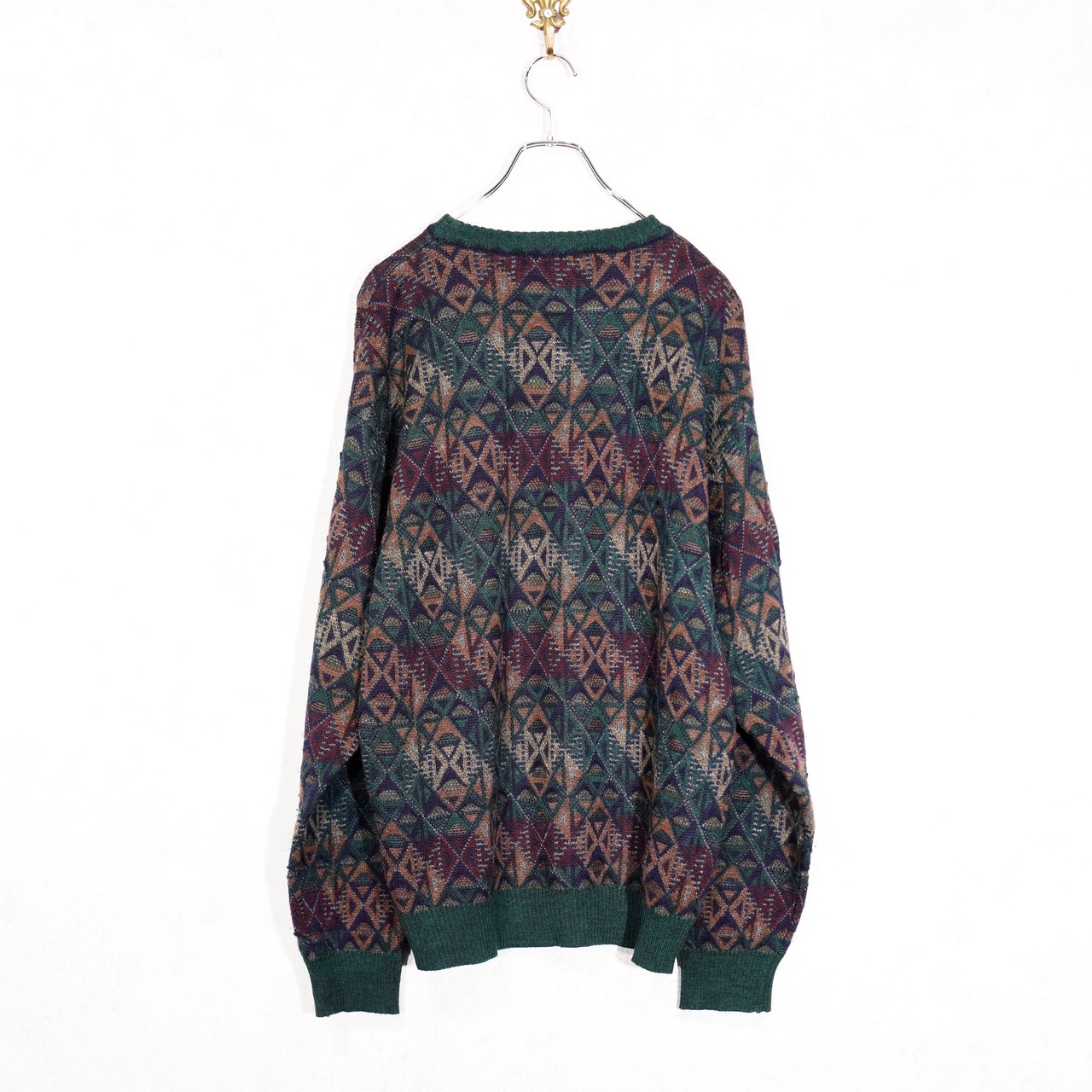 EU VINTAGE TricotsSt.Raphael GEOMETRIC PATTERNED DESIGN 3D KNIT MADE IN URUGUAY/ヨーロッパ古着幾何学柄デザイン3Dニット