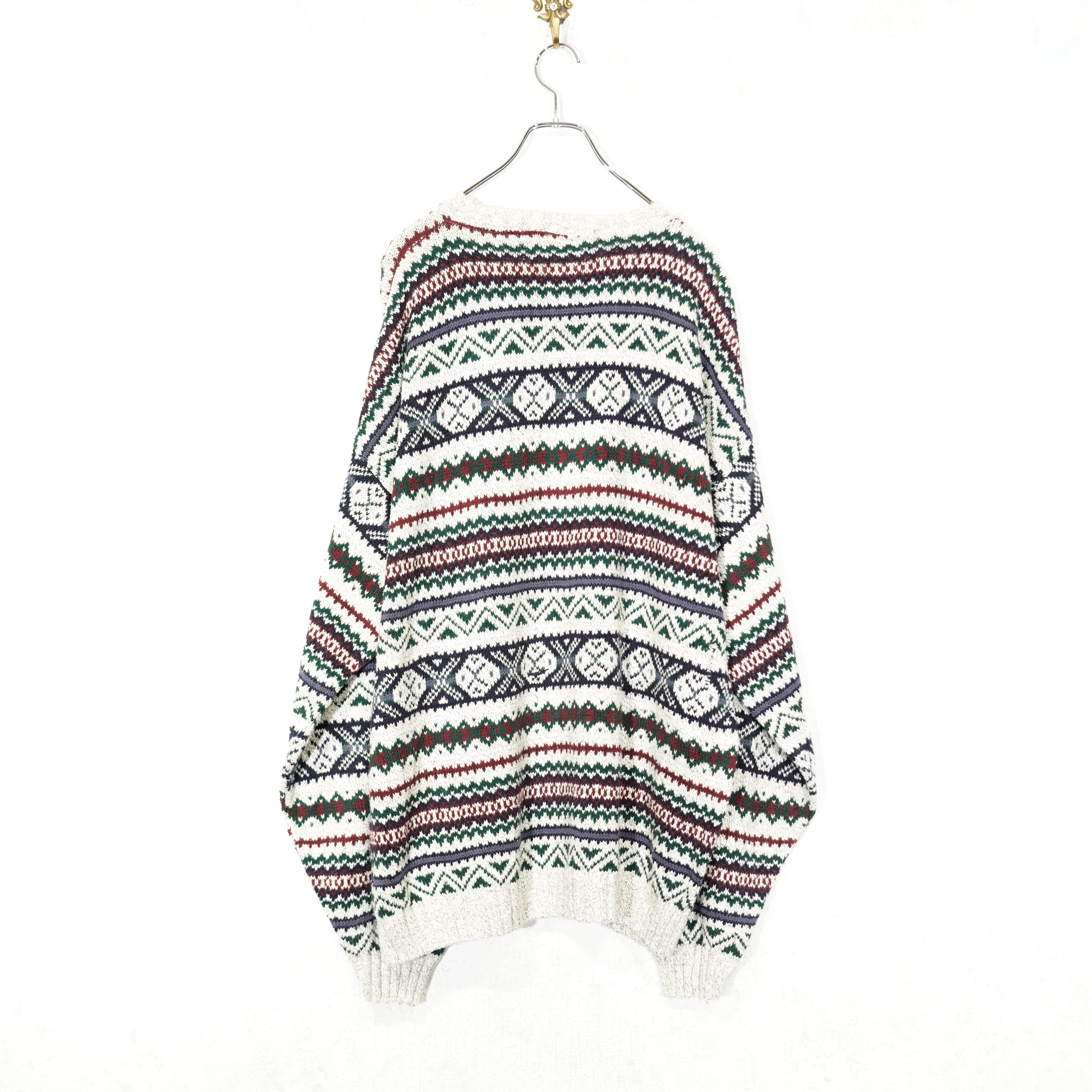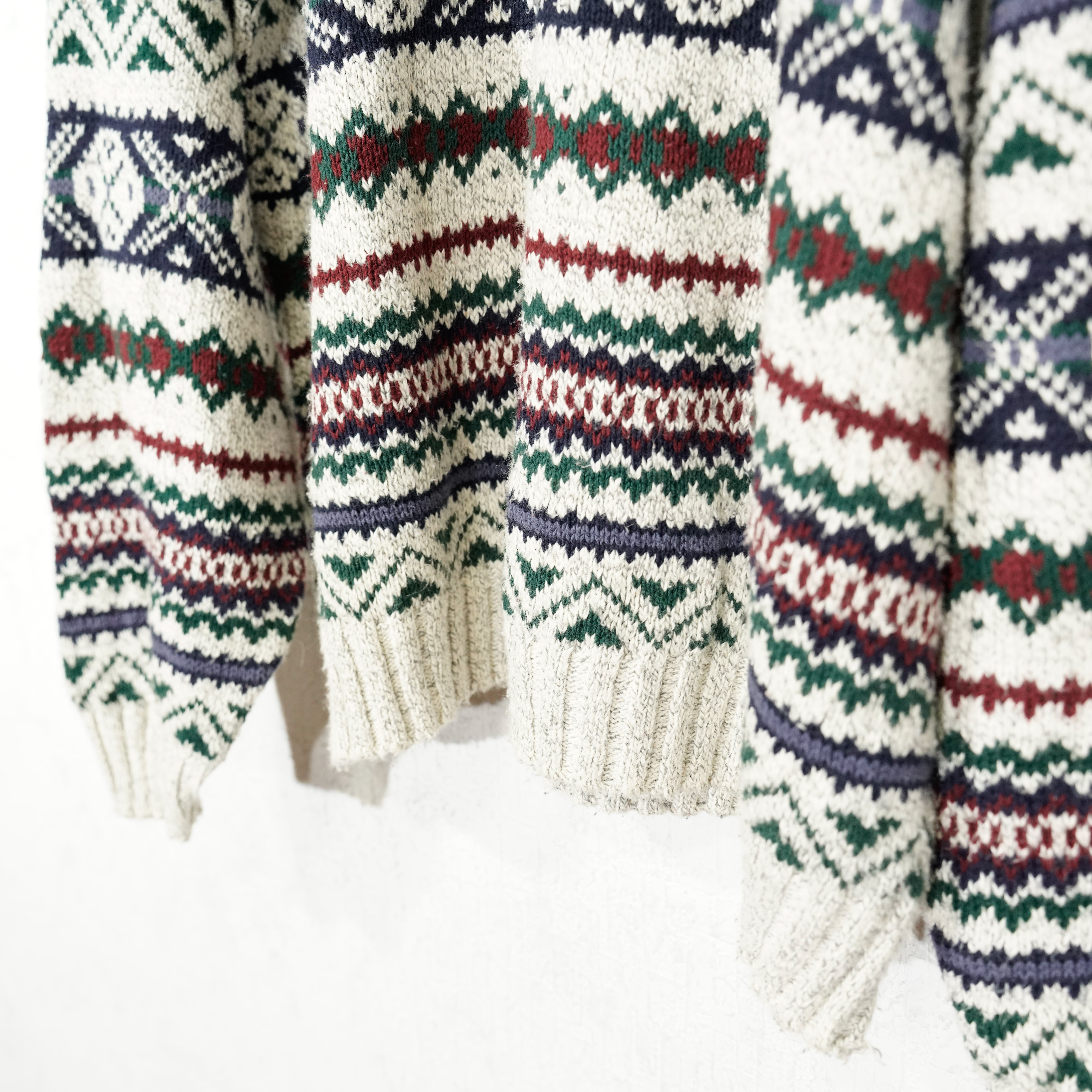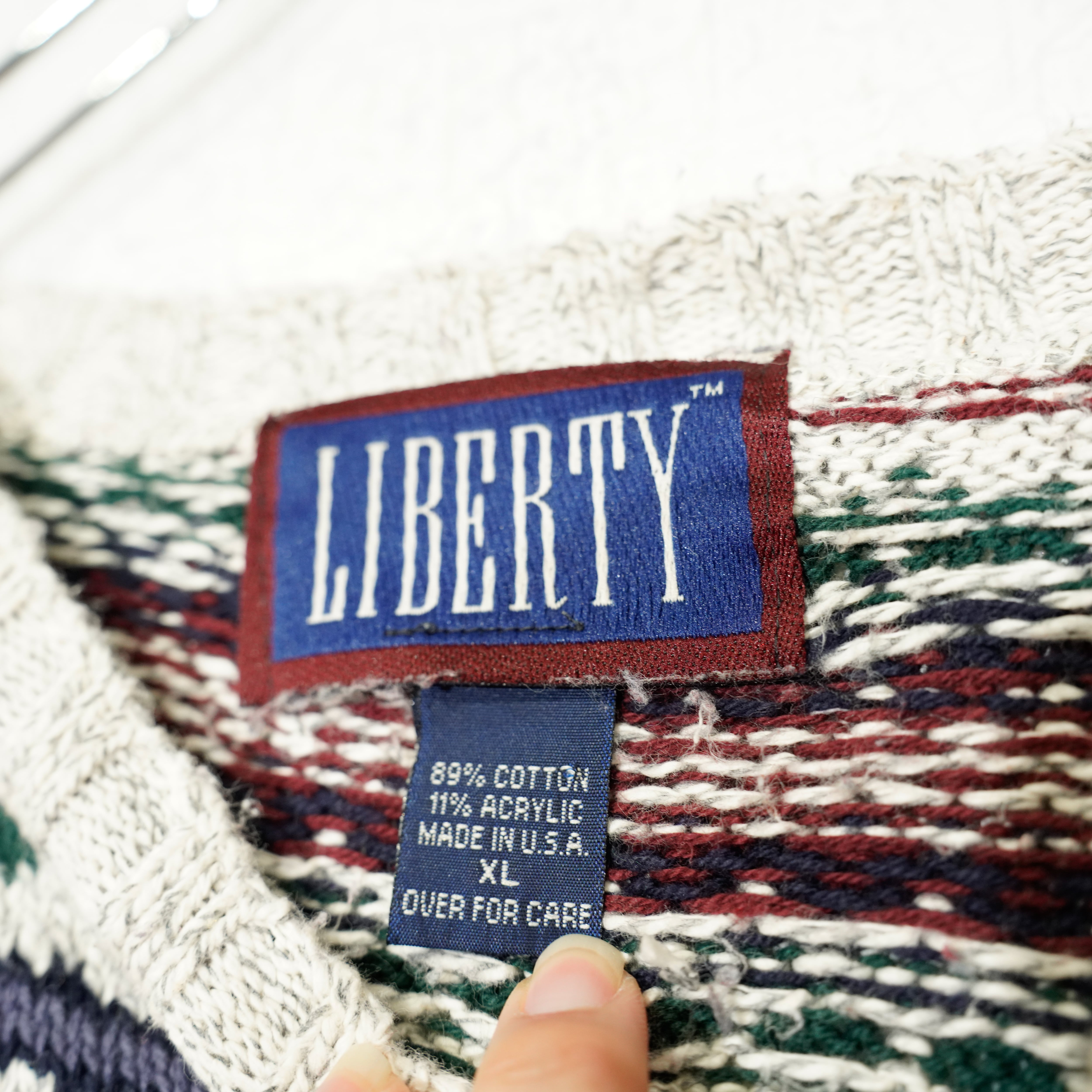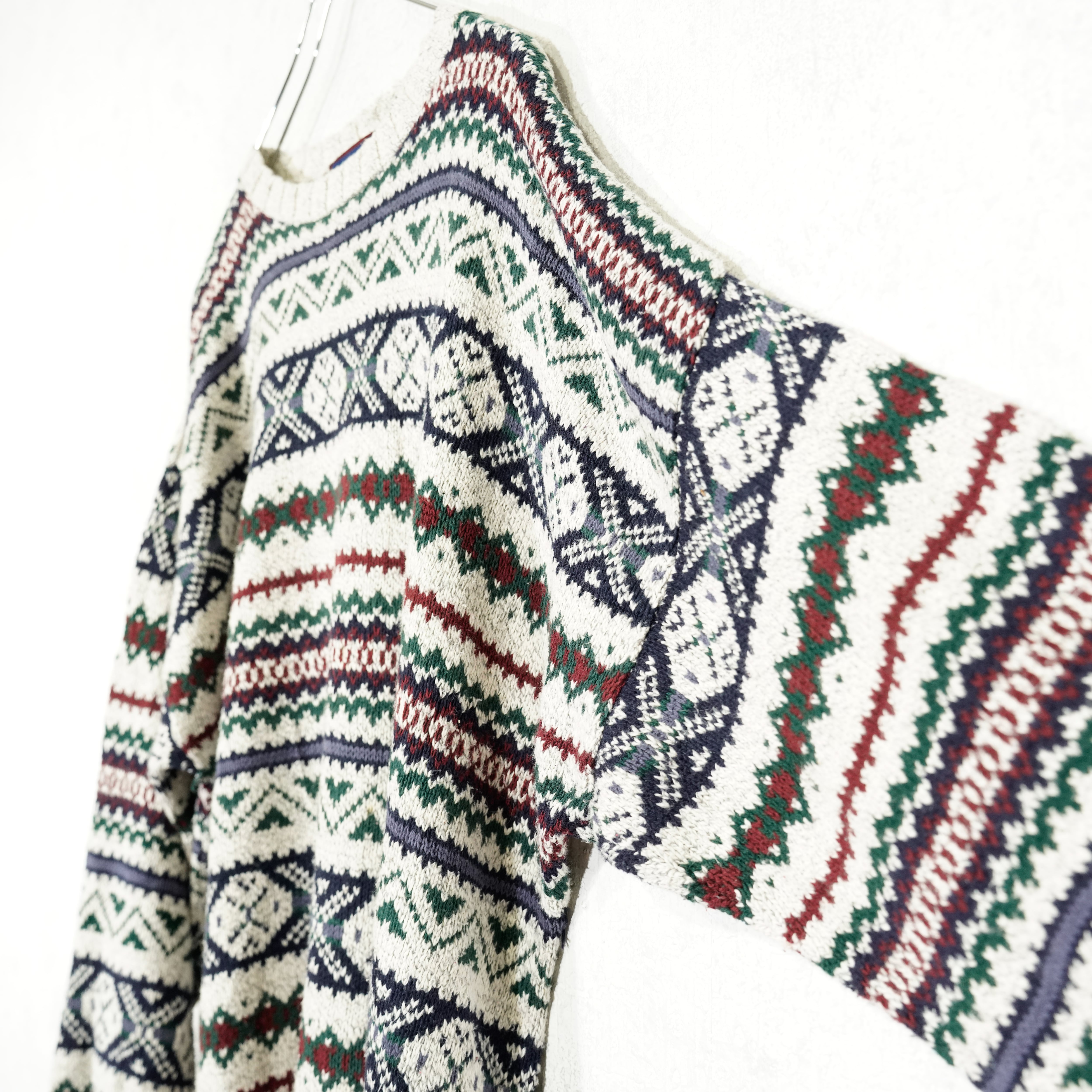 USA VINTAGE LIBERTY FAIRISLE PATTERNED COTTON KNIT MADE IN USA/アメリカ古着フェアアイル柄コットンニット