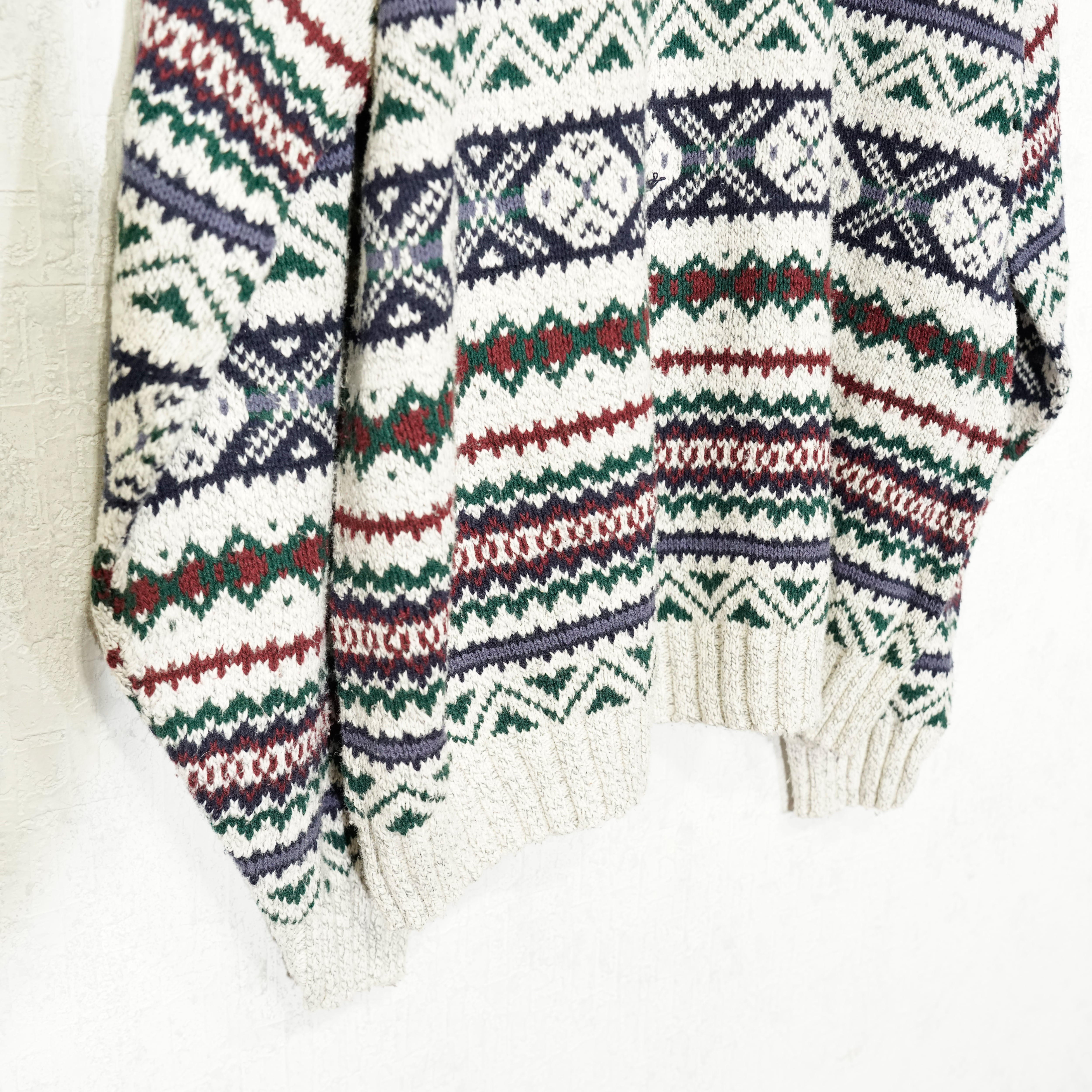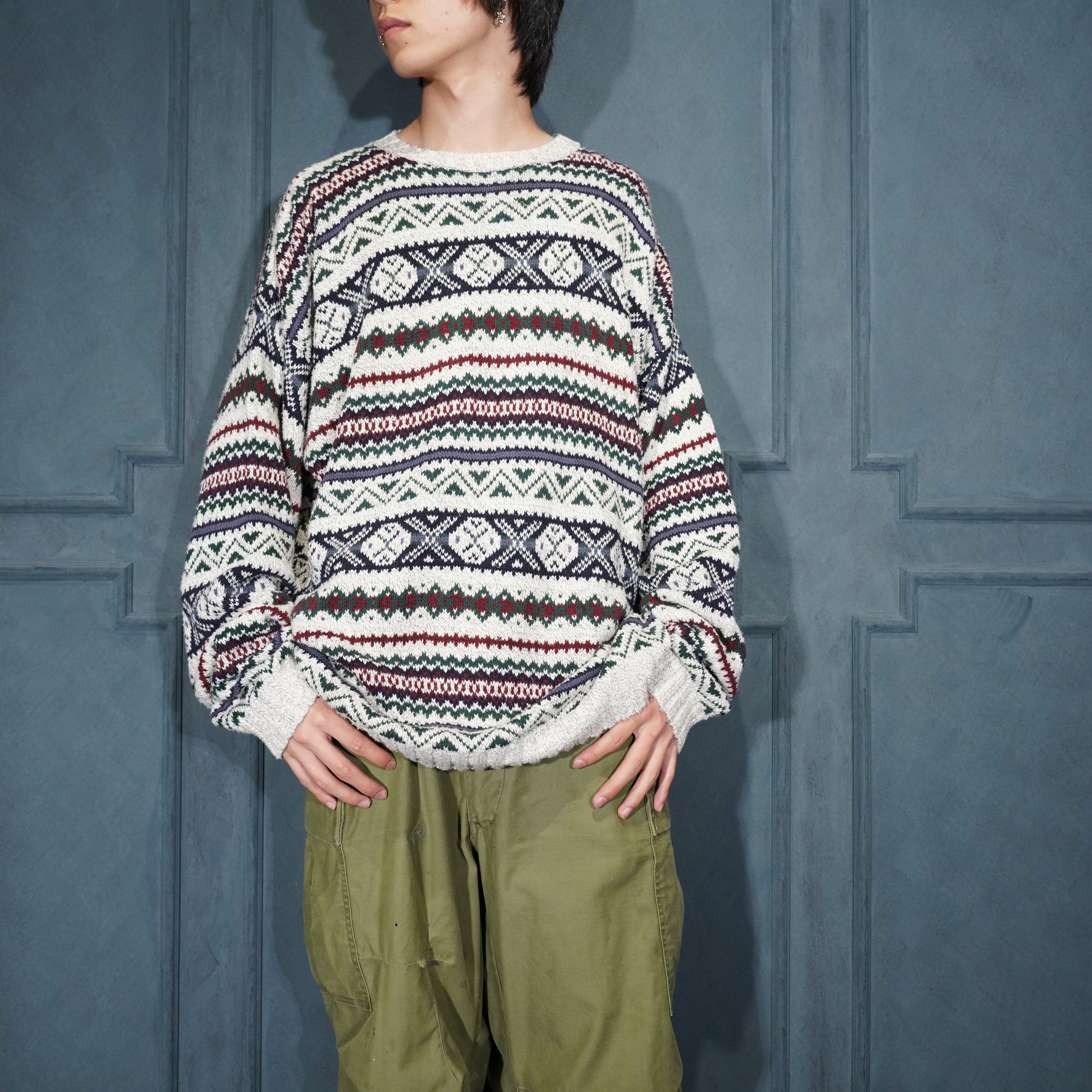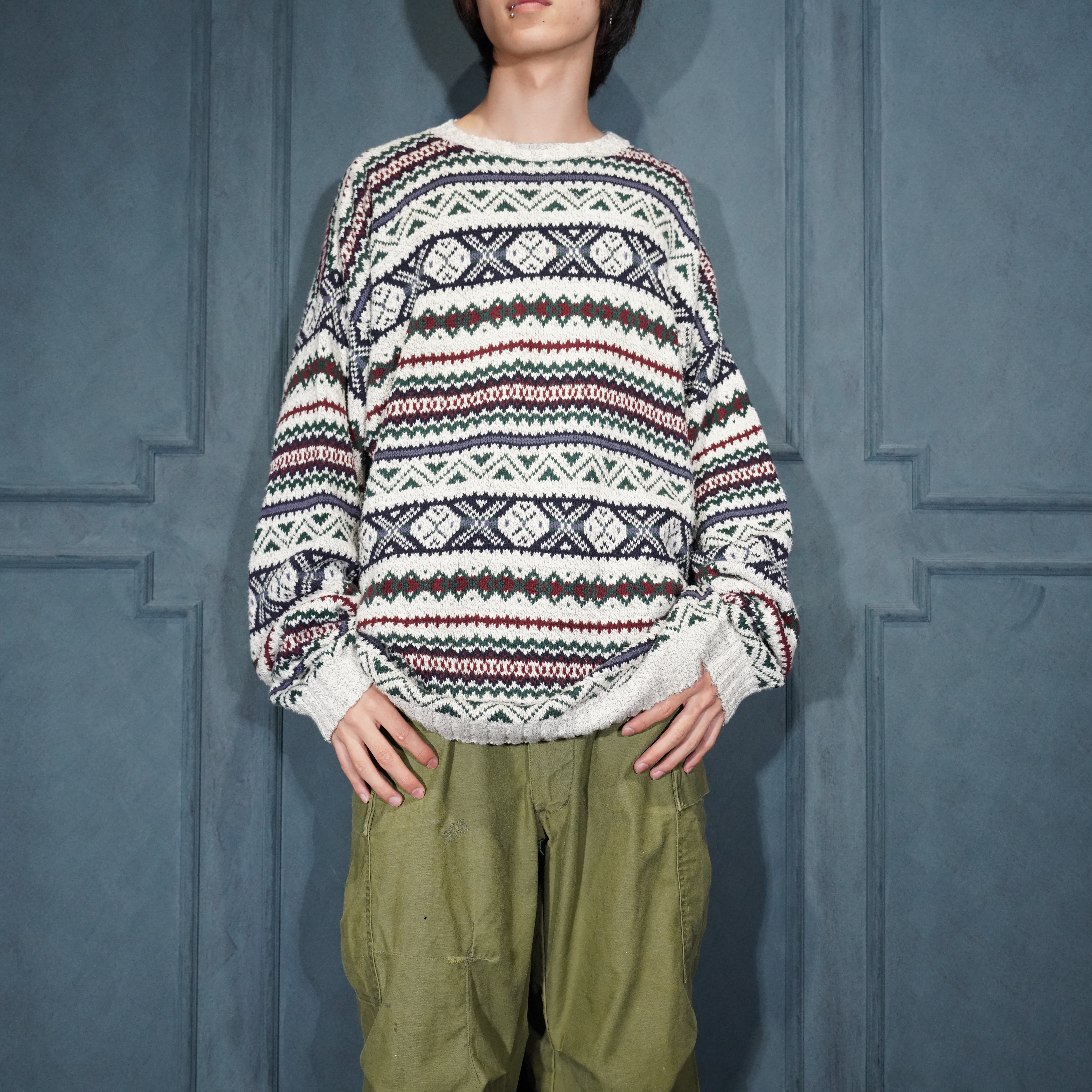 USA VINTAGE LIBERTY FAIRISLE PATTERNED COTTON KNIT MADE IN USA/アメリカ古着フェアアイル柄コットンニット