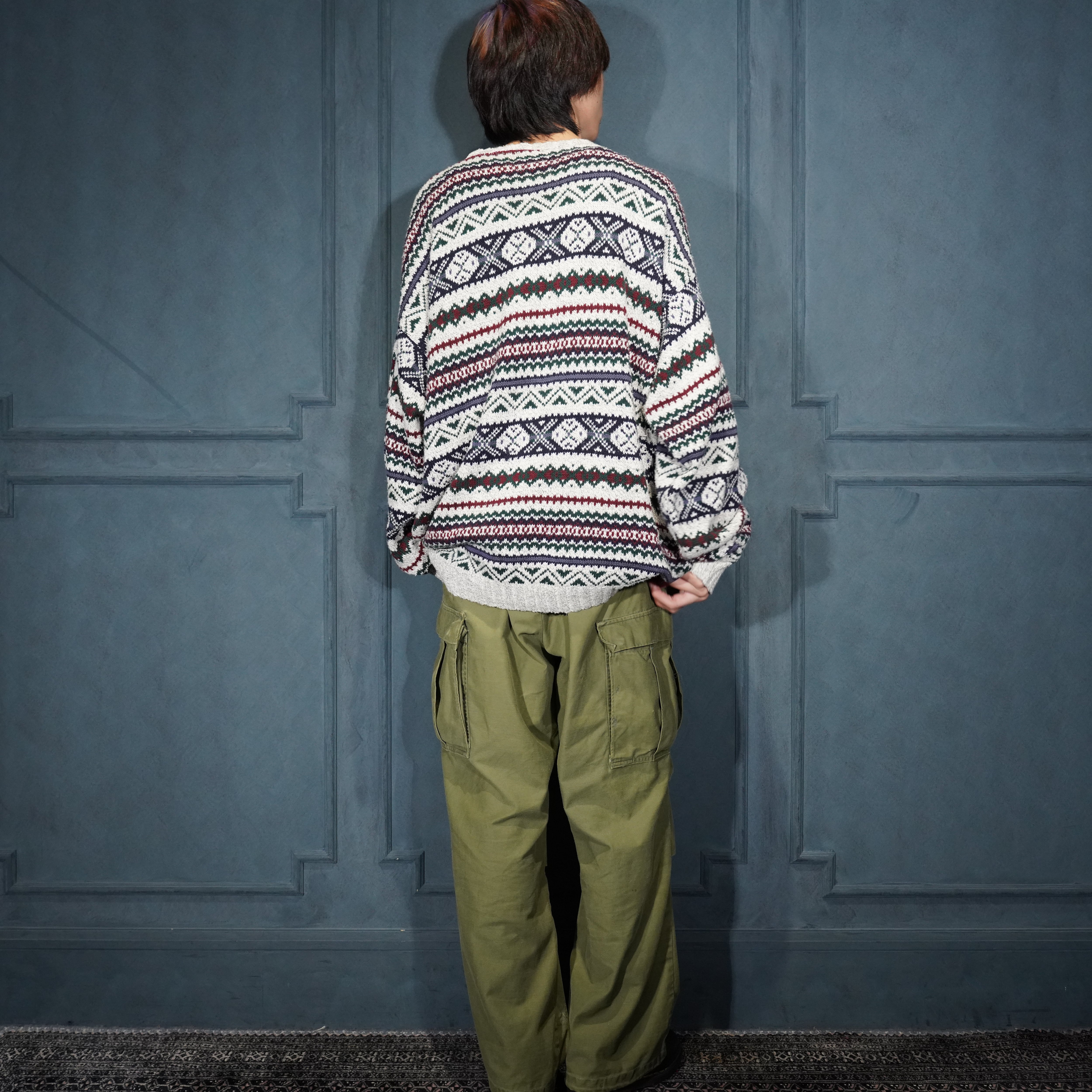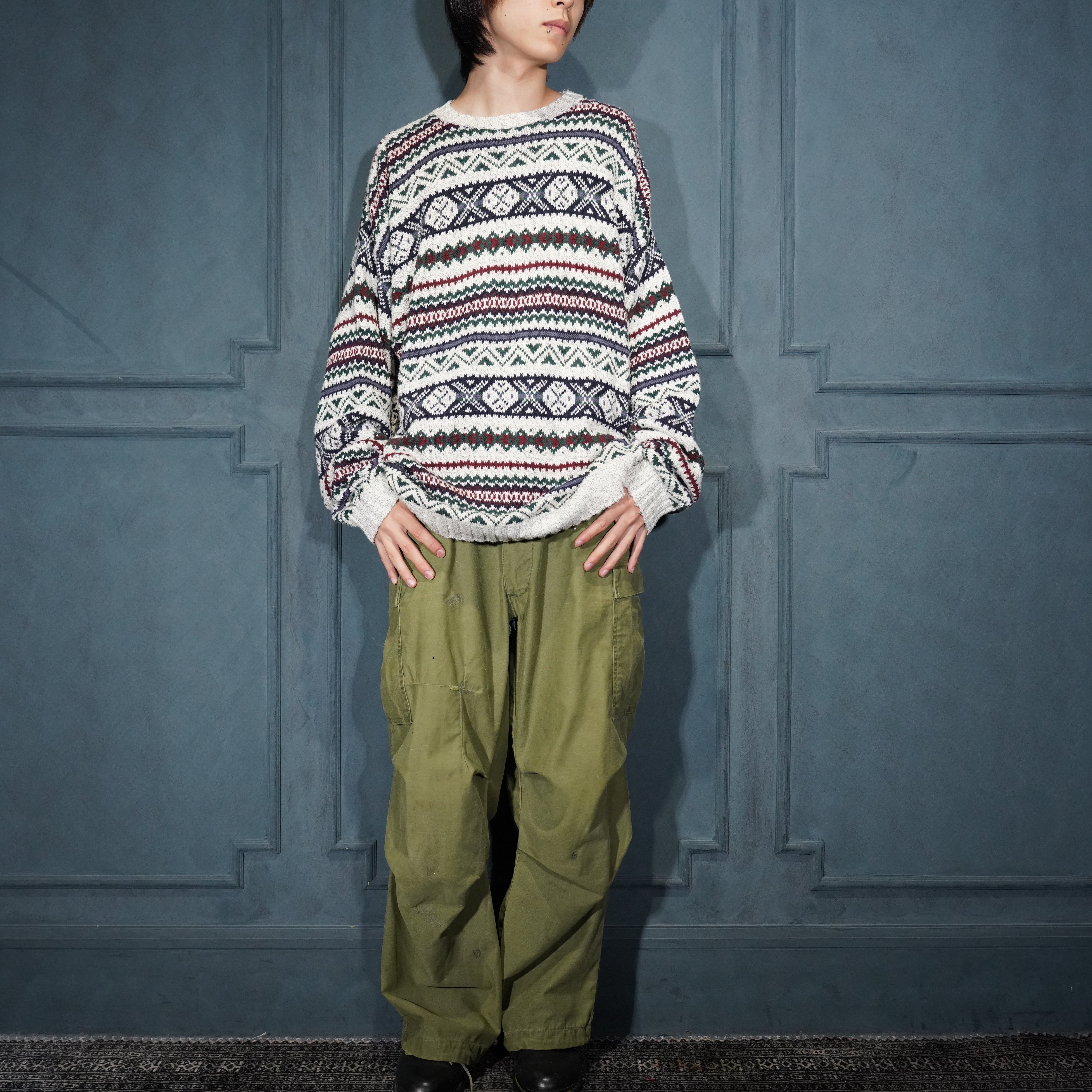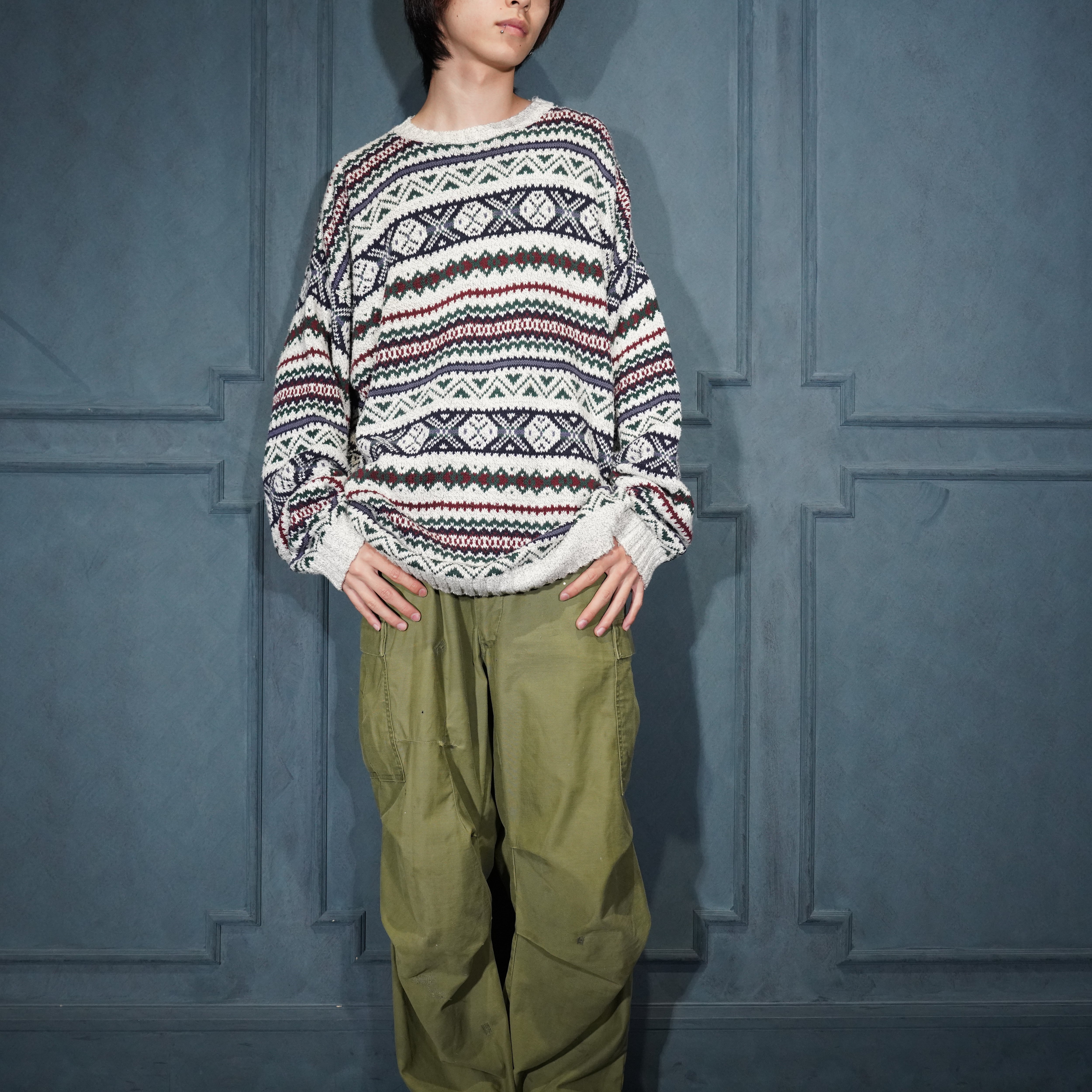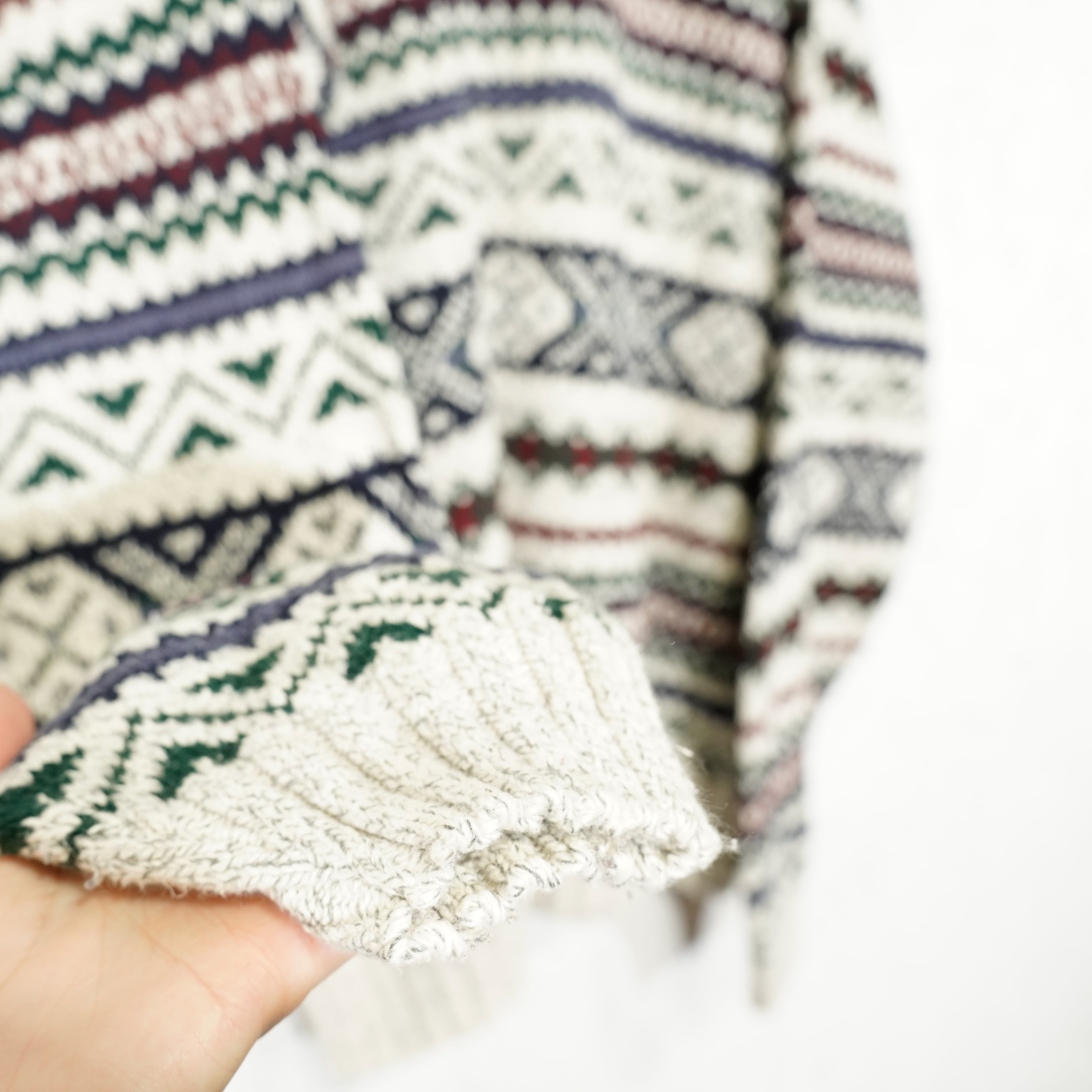 USA VINTAGE LIBERTY FAIRISLE PATTERNED COTTON KNIT MADE IN USA/アメリカ古着フェアアイル柄コットンニット