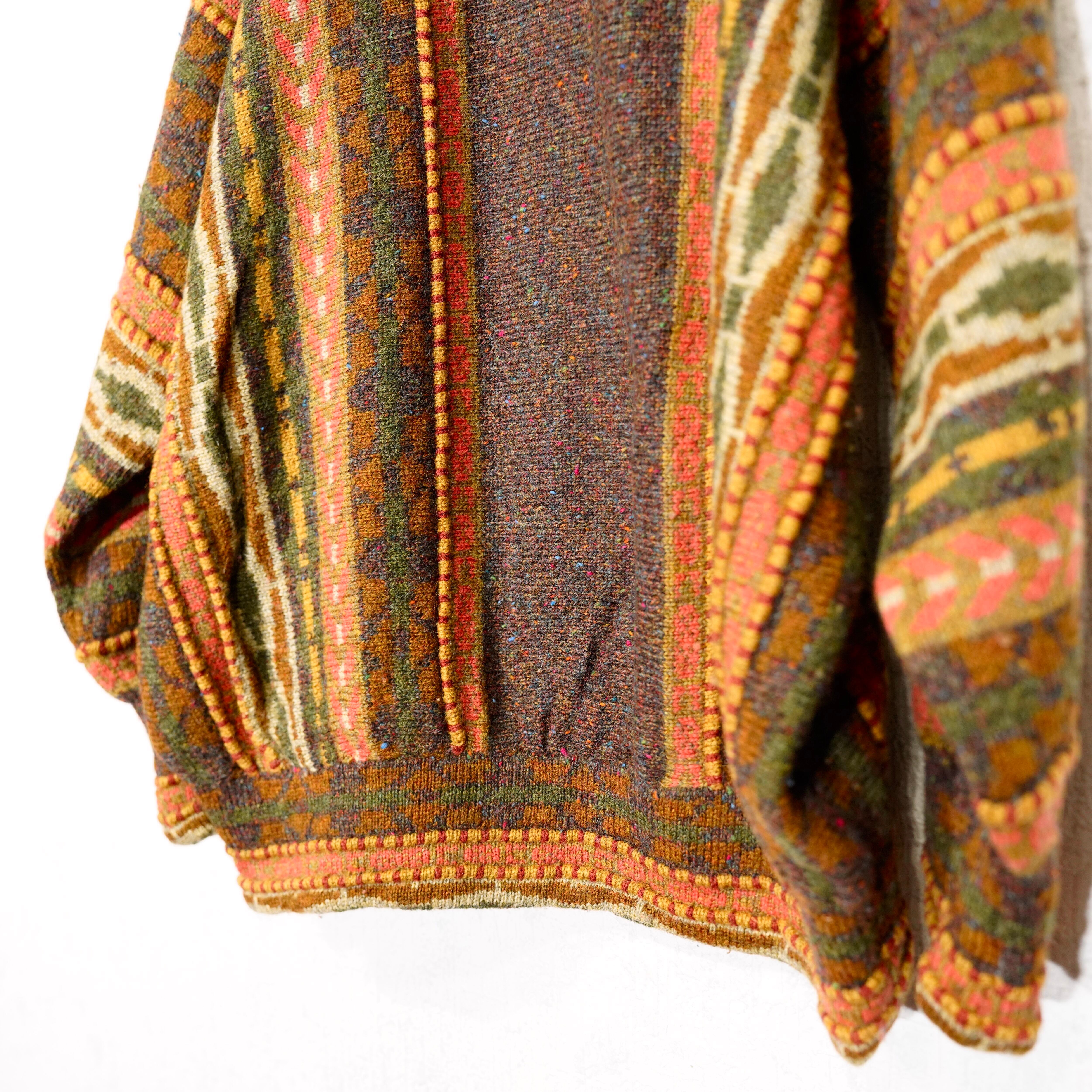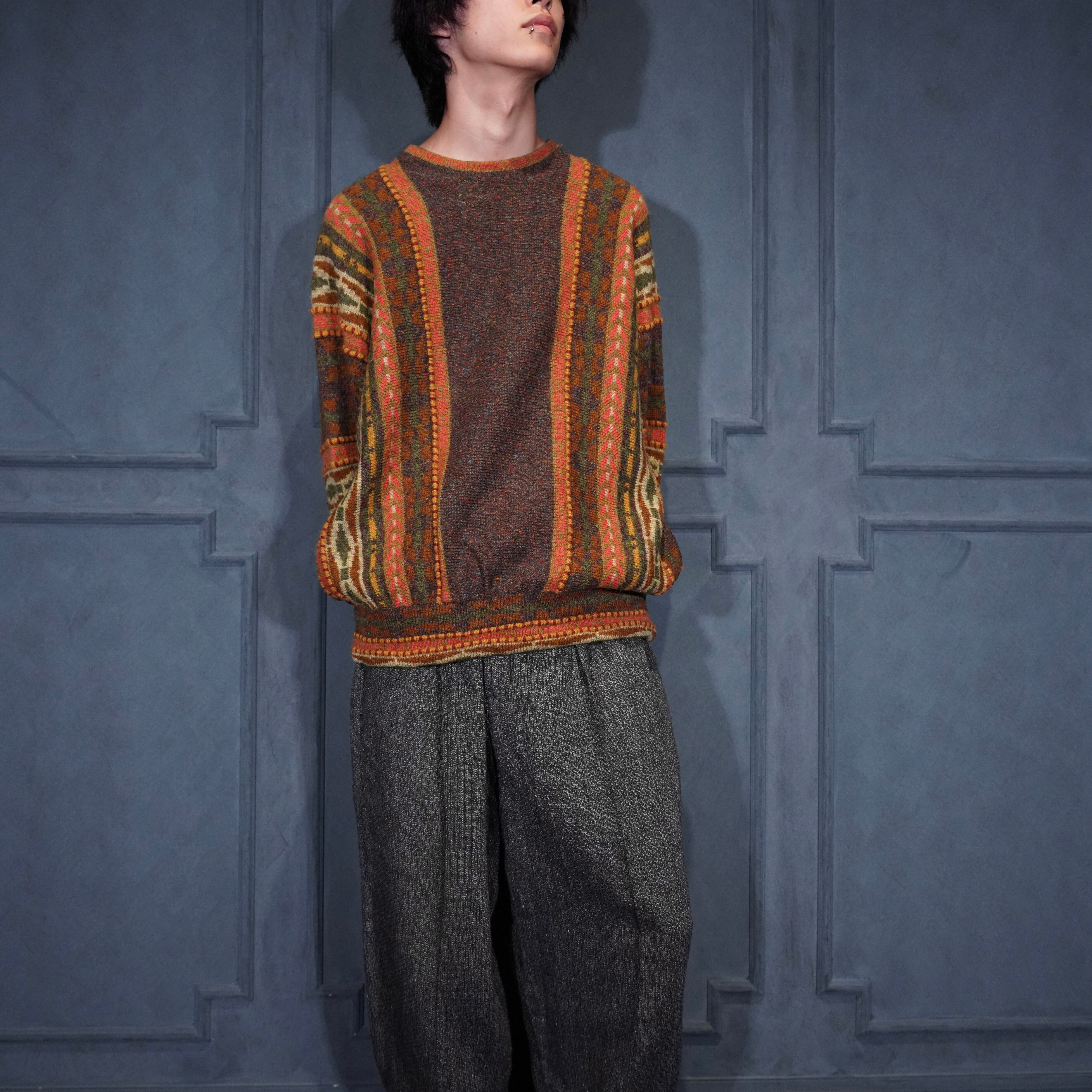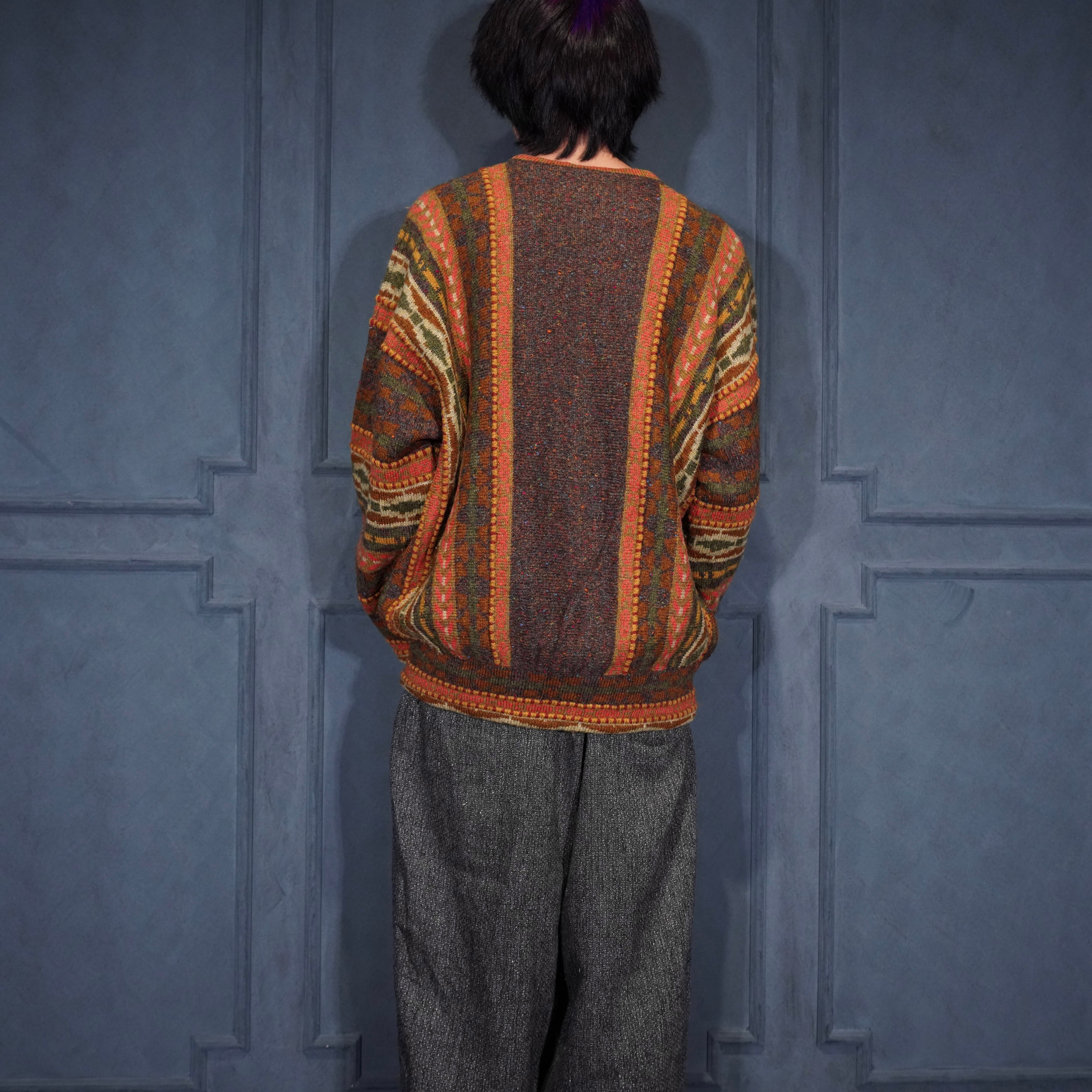 EU VINTAGE annie hall DESIGNER KNITWEAR BEVERLY ENGLAND MULTI 3D PATTERNED DESIGN KNIT/ヨーロッパ古着マルチ3Dパターンデザインニット