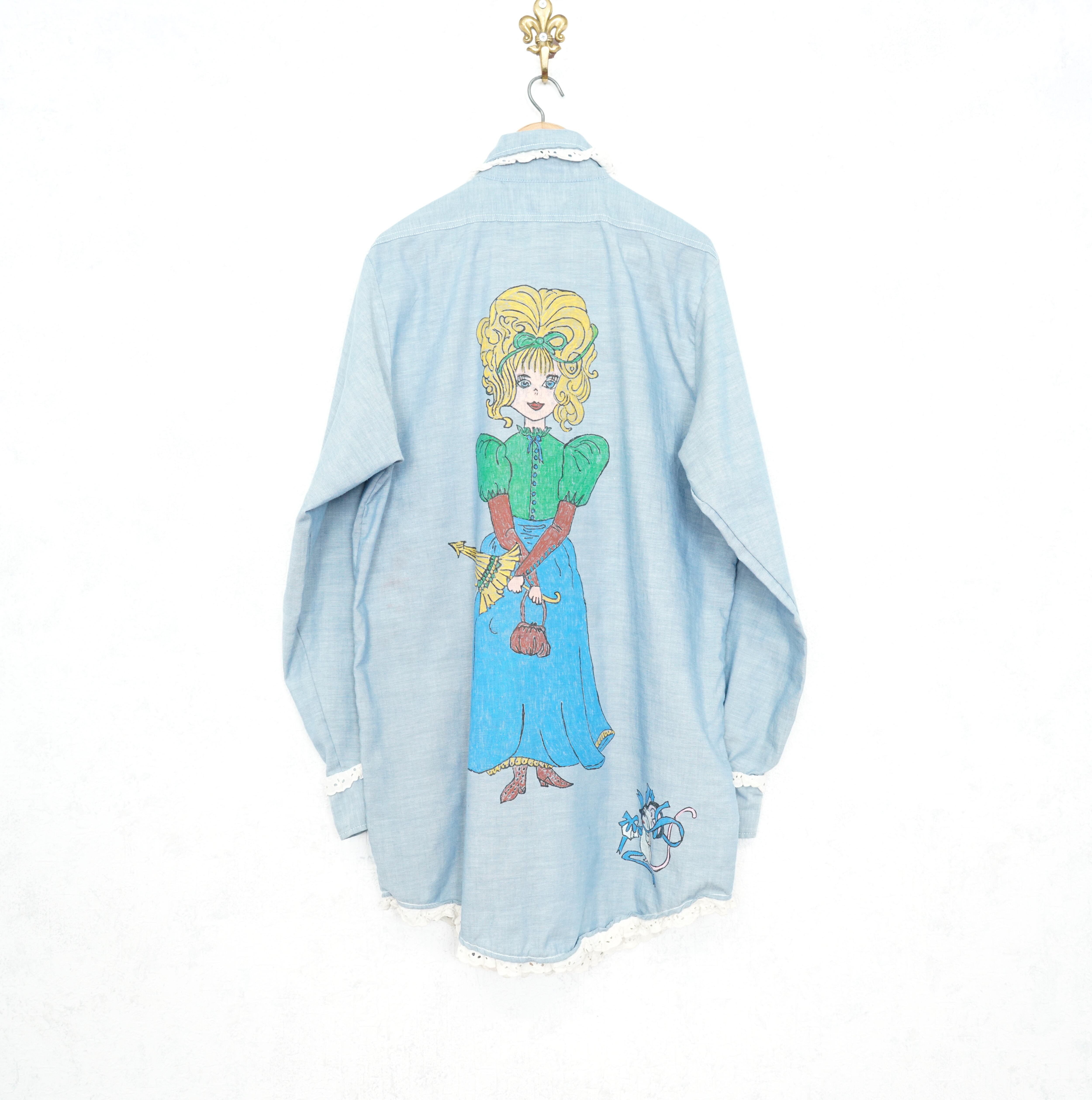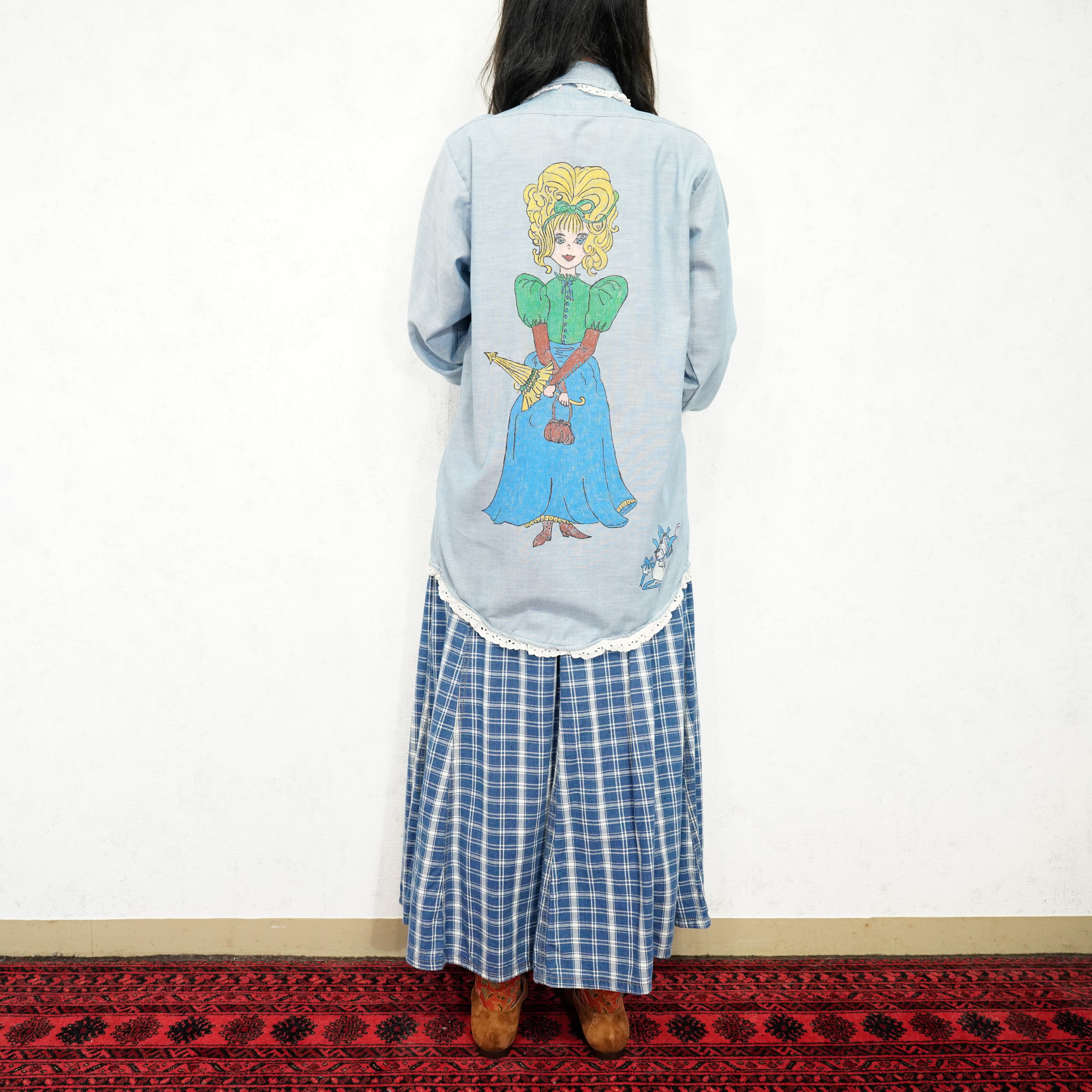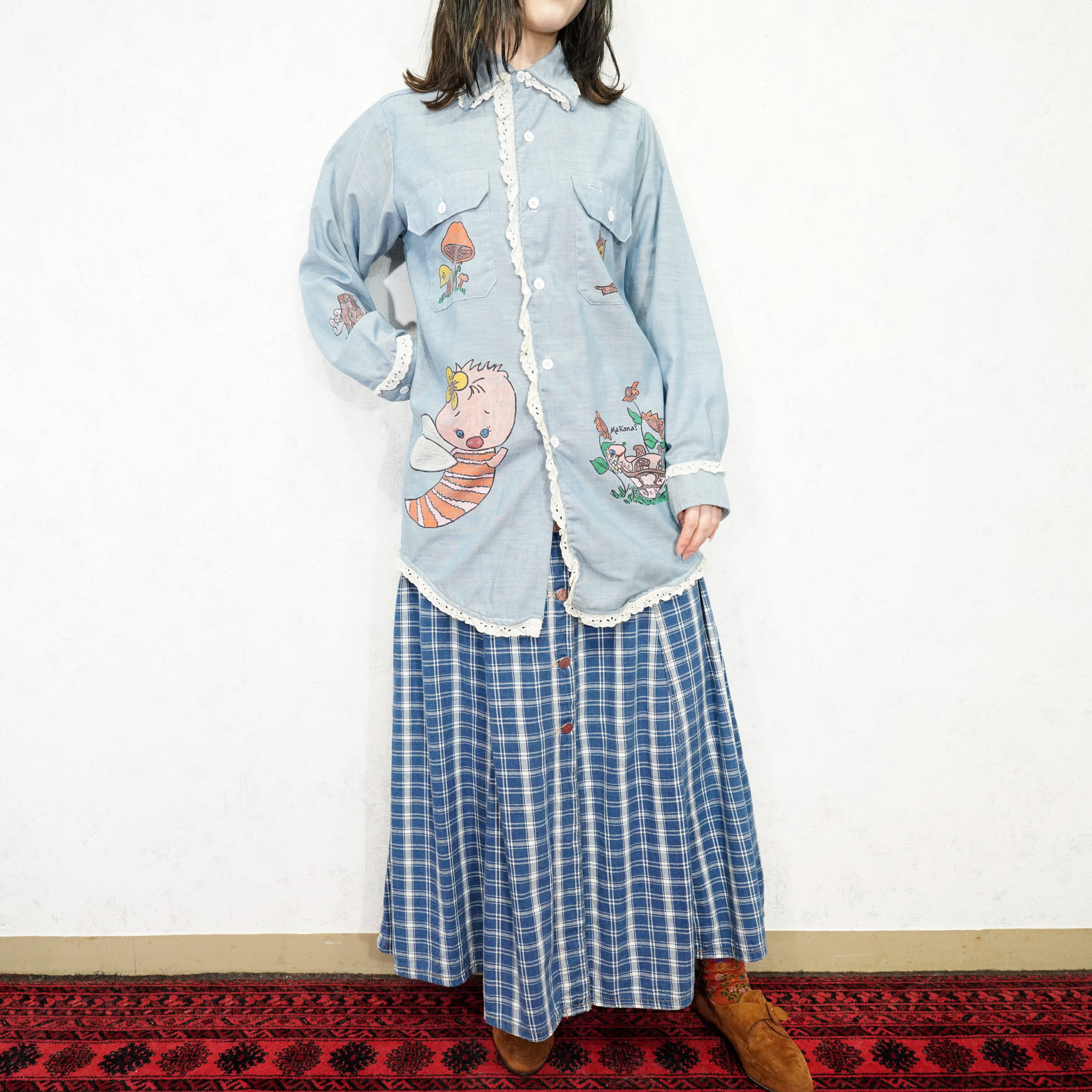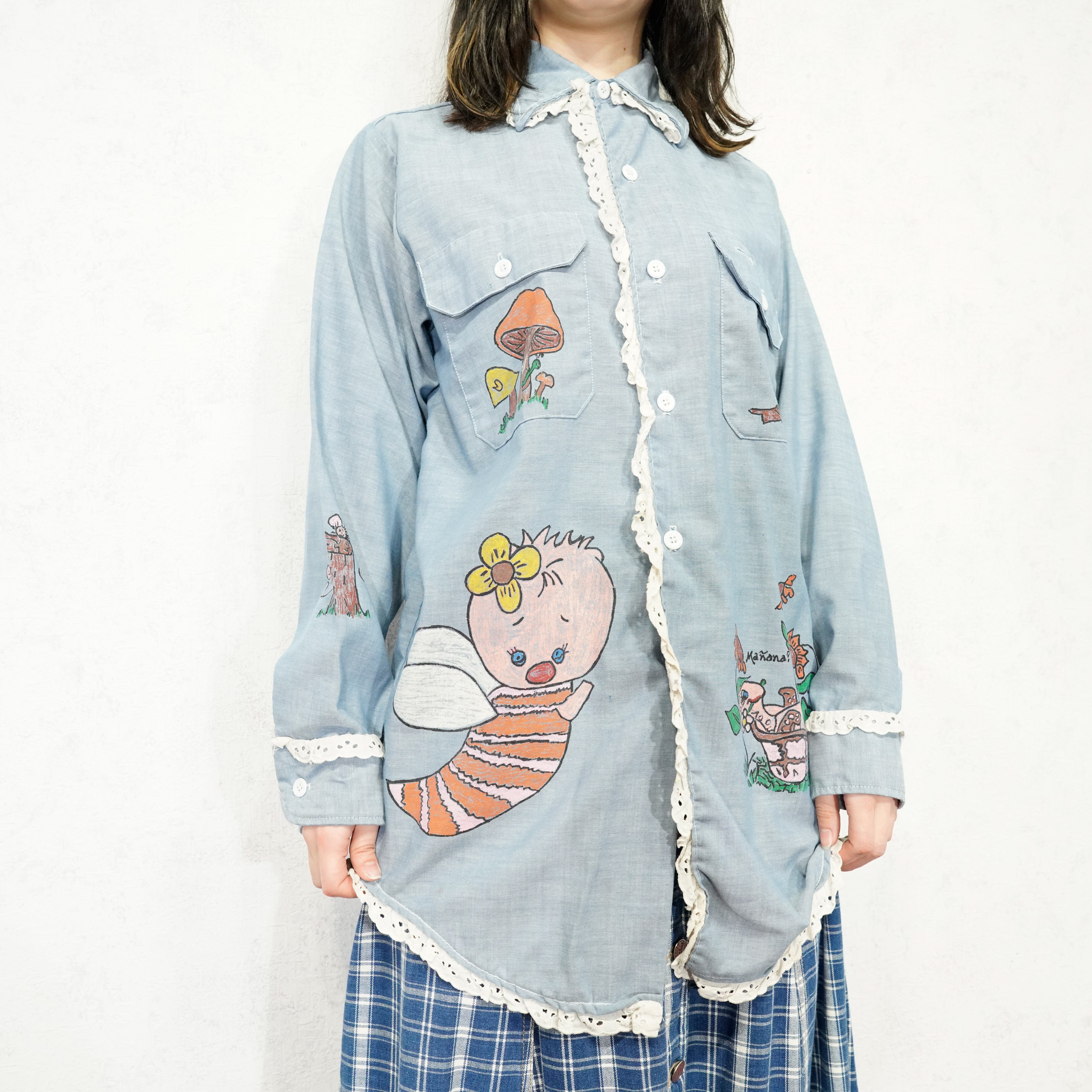 *SPECIAL ITEM* 70's USA VINTAGE MONGOMERY WARD HAND DRAWING DESIGN CHAMBRAY SHIRT/70年代アメリカ古着ハンドドローウィングデザインシャンブレーシャツ
