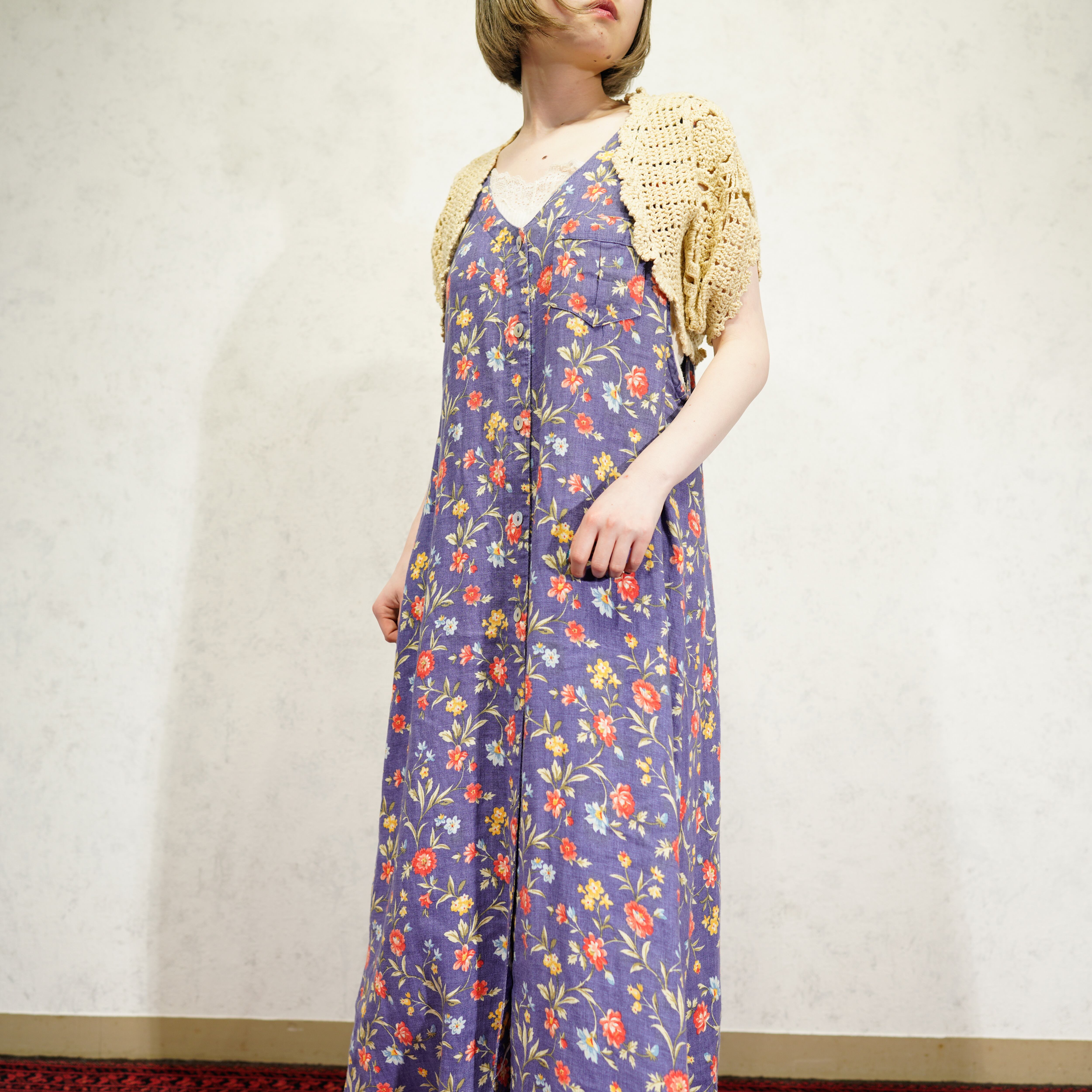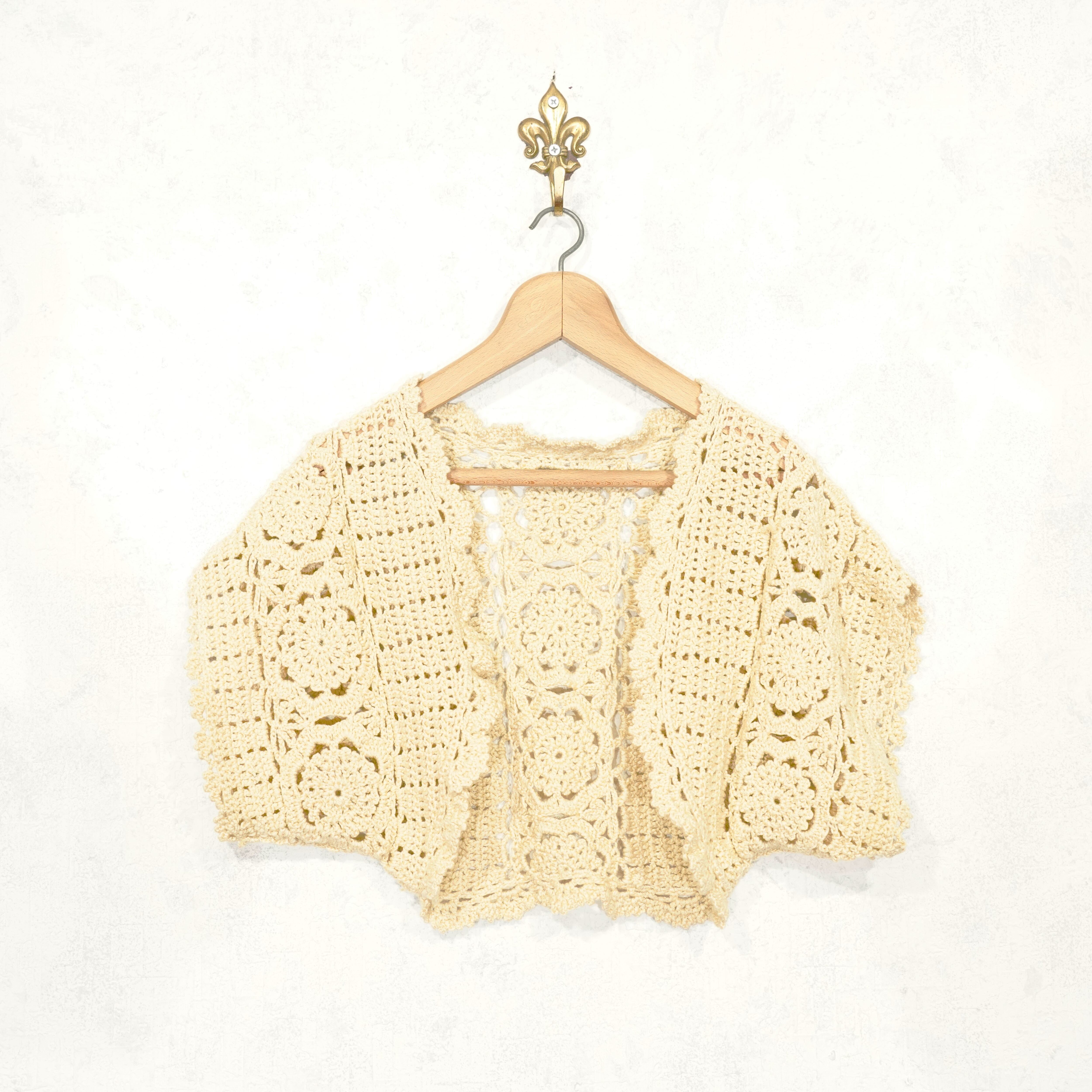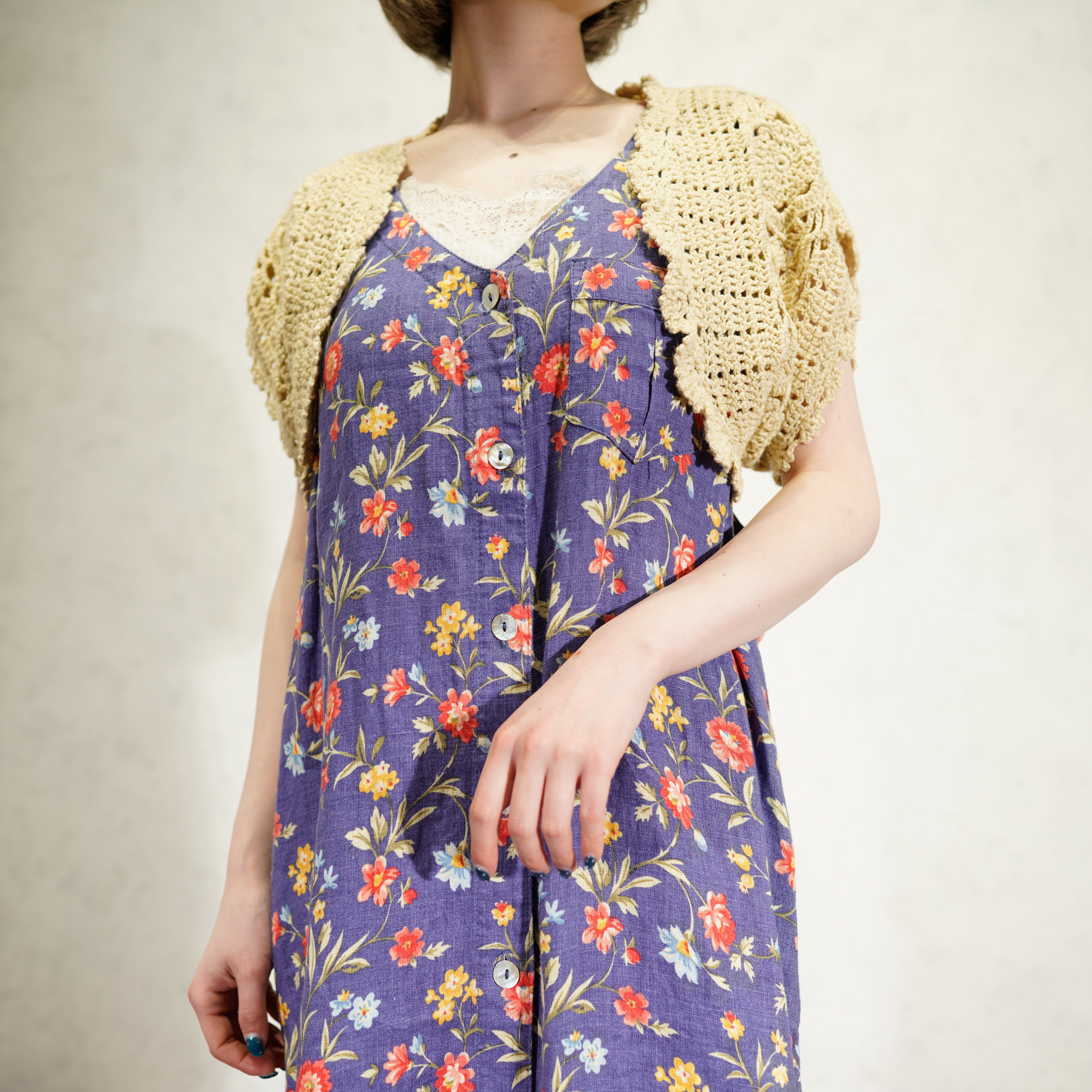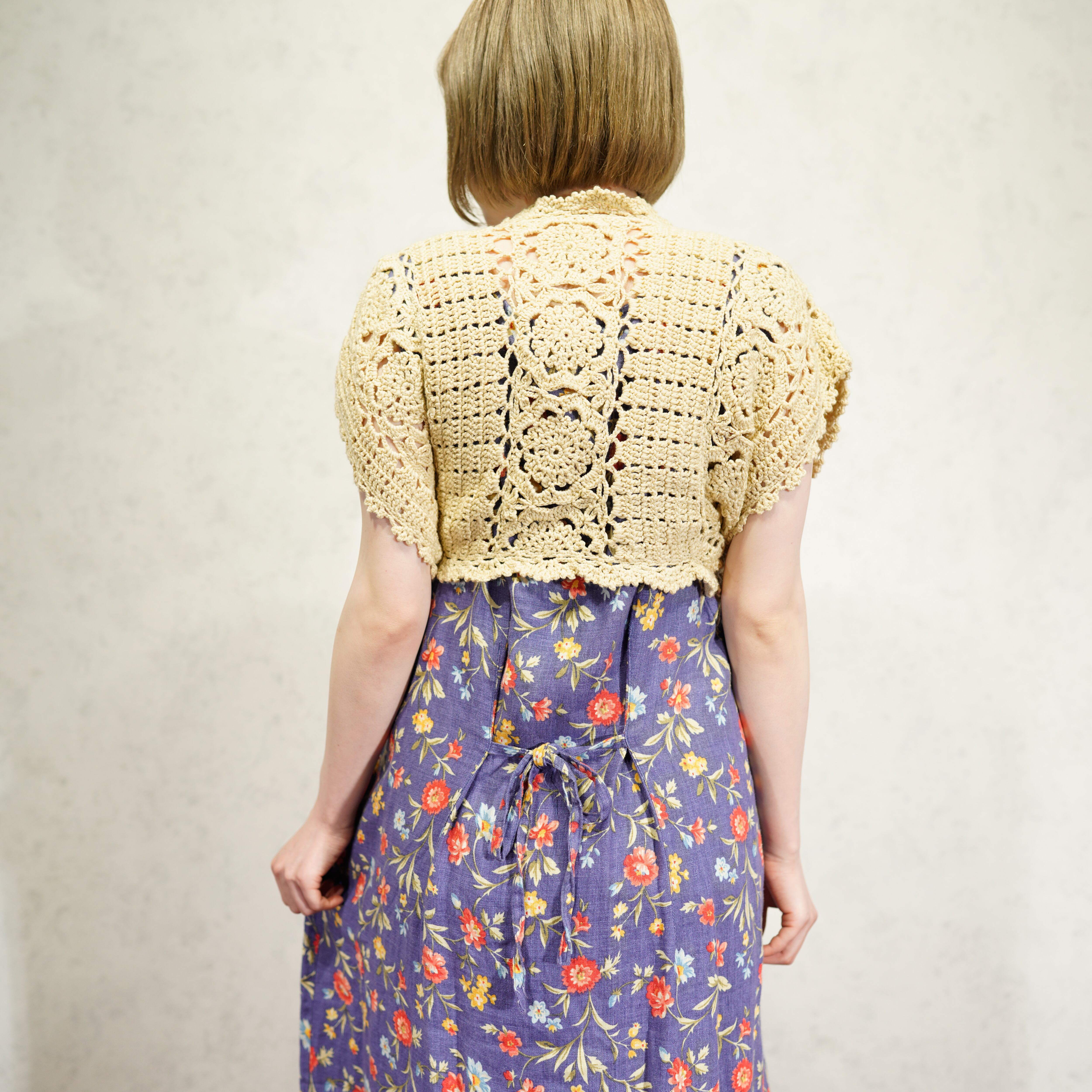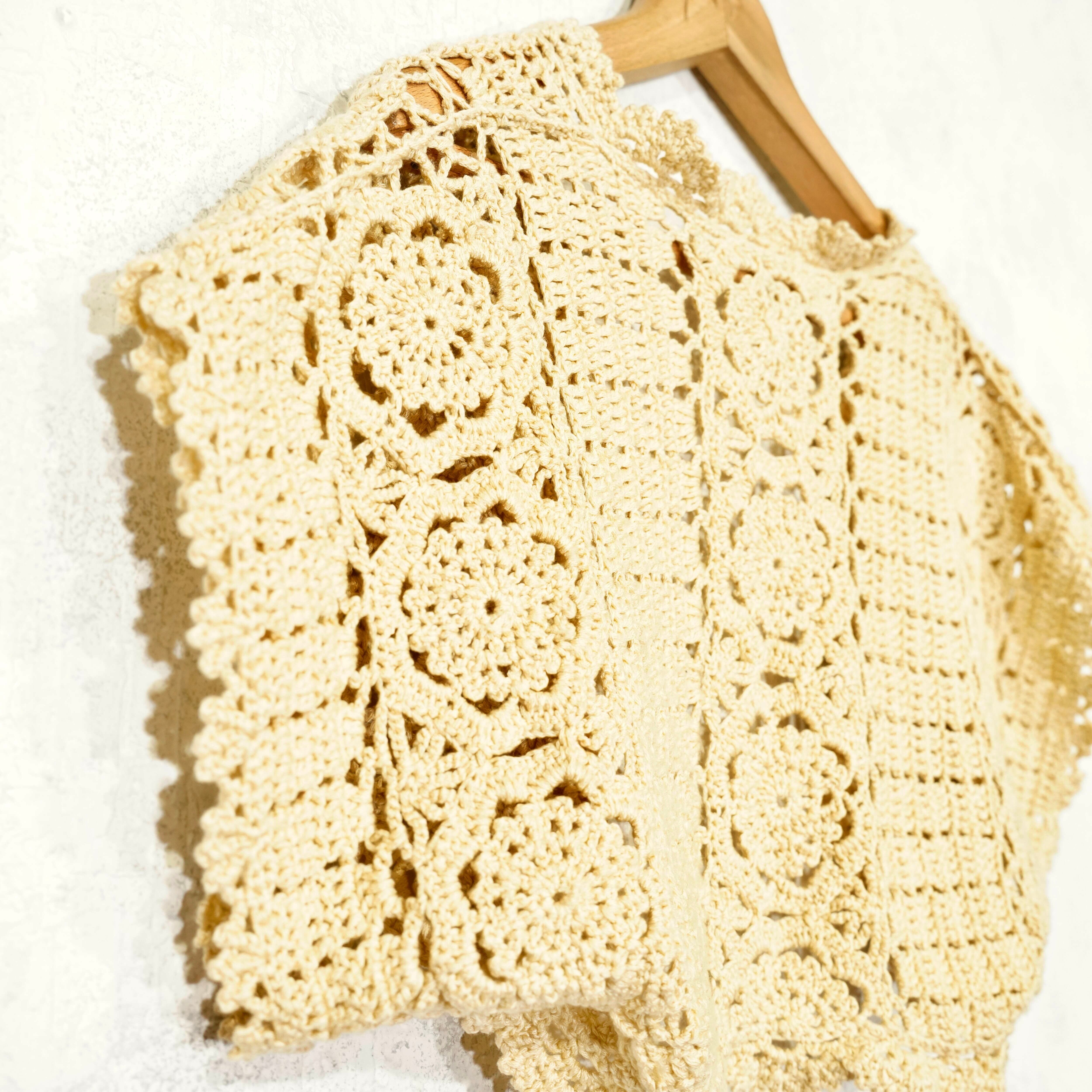 USA VINTAGE CLOCHET DESIGN SUMMER KNIT CARDIGAN/アメリカ古着鍵編みデザインサマーニット