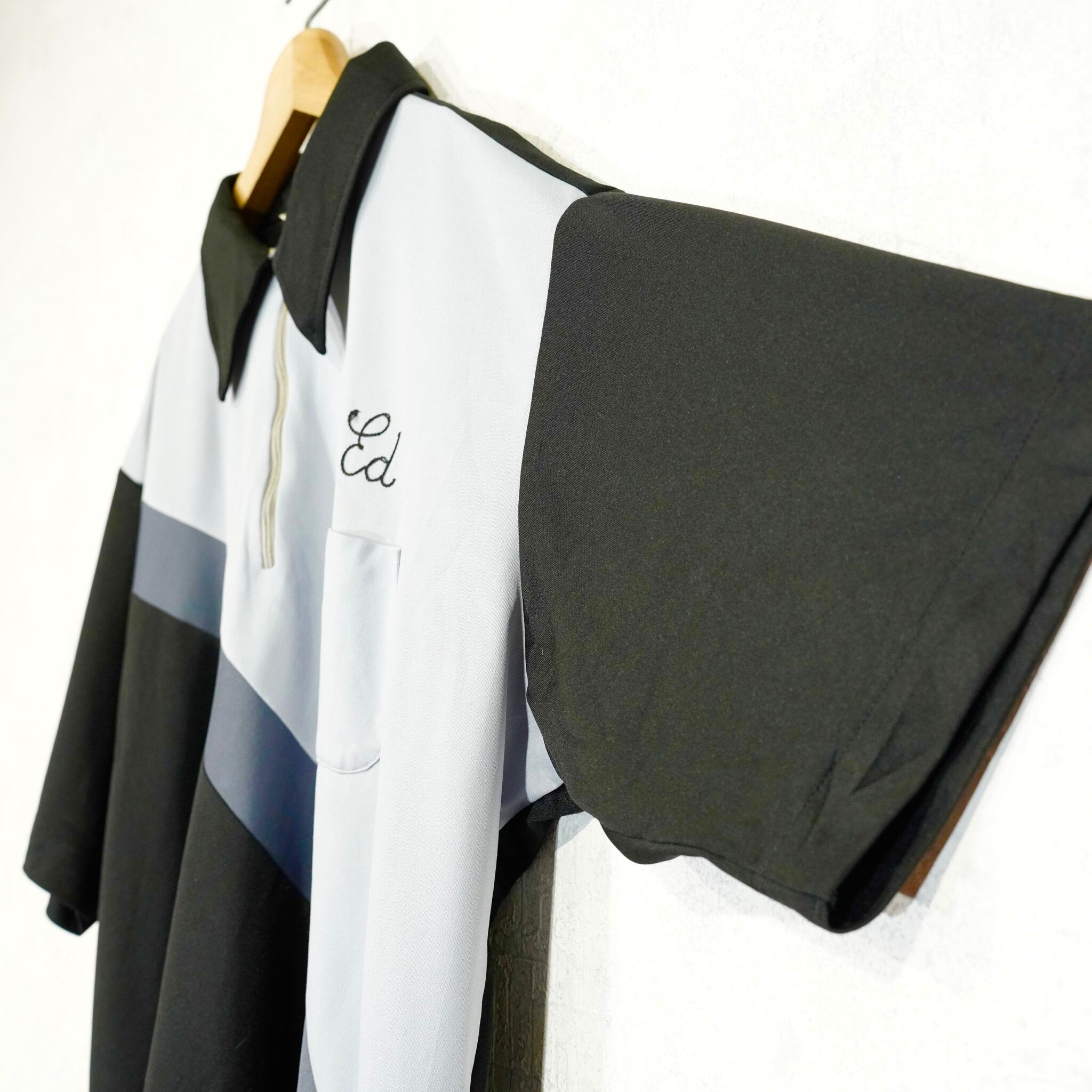 *SPECIAL ITEM* 70's USA VINTAGE King Louie EMBROIDERY PRINT DESIGN HALF ZIP BOWLING SHIRT/70年代アメリカ古着刺繍プリントデザインハーフジップボーリングシャツ