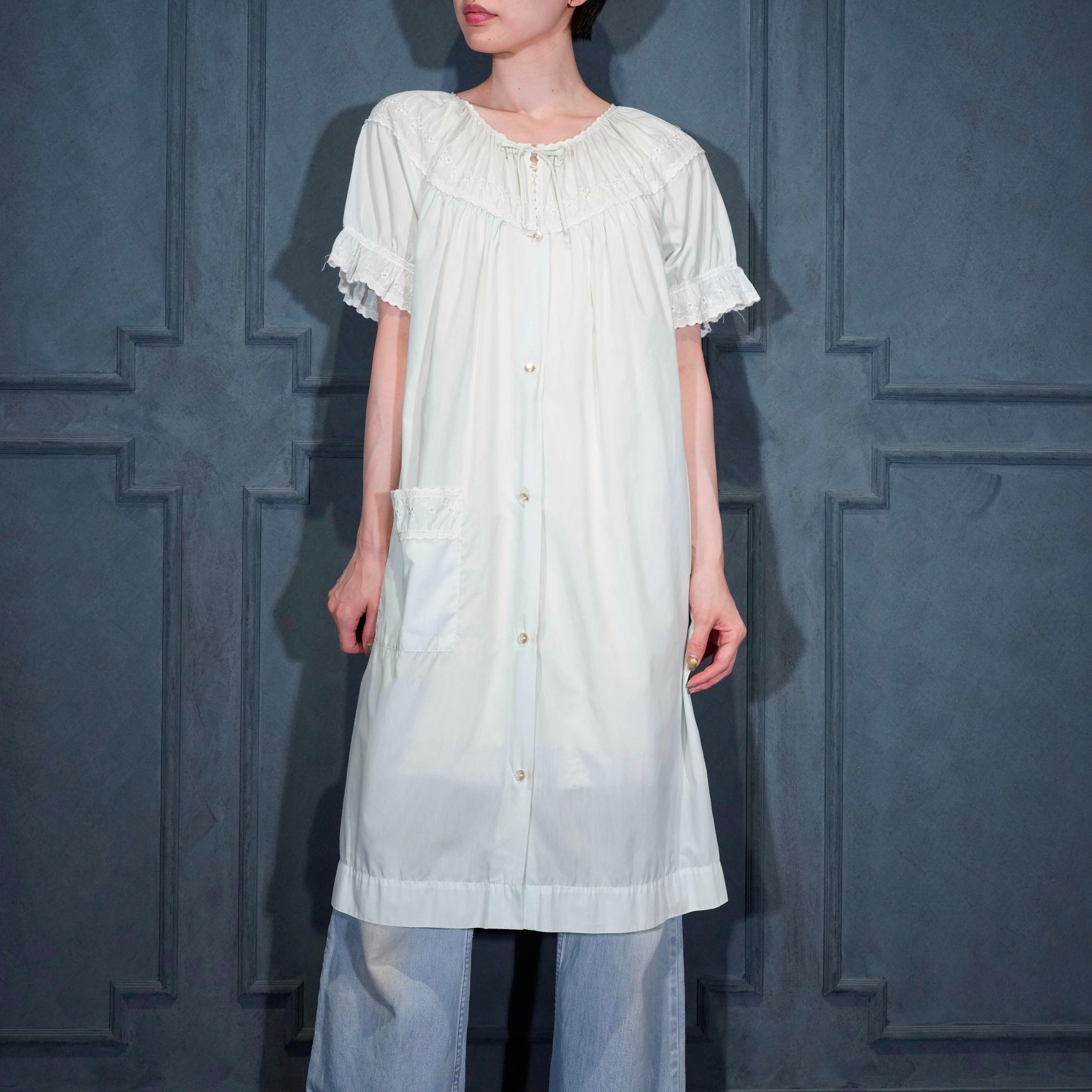 60's〜70’s USA VINTAGE KOMAN LACE GATHER DESIGN NIGHTY DRESS ONE PIECE GOWN/60年代〜70年代アメリカ古着レースギャザーデザインナイティドレスワンピースガウン(ナイトドレス)