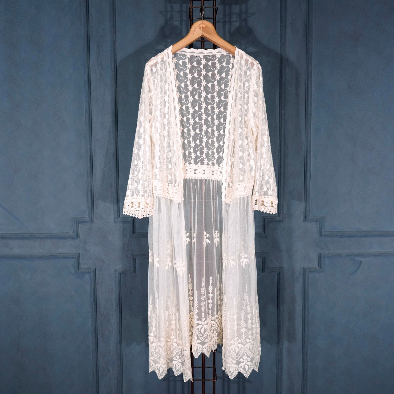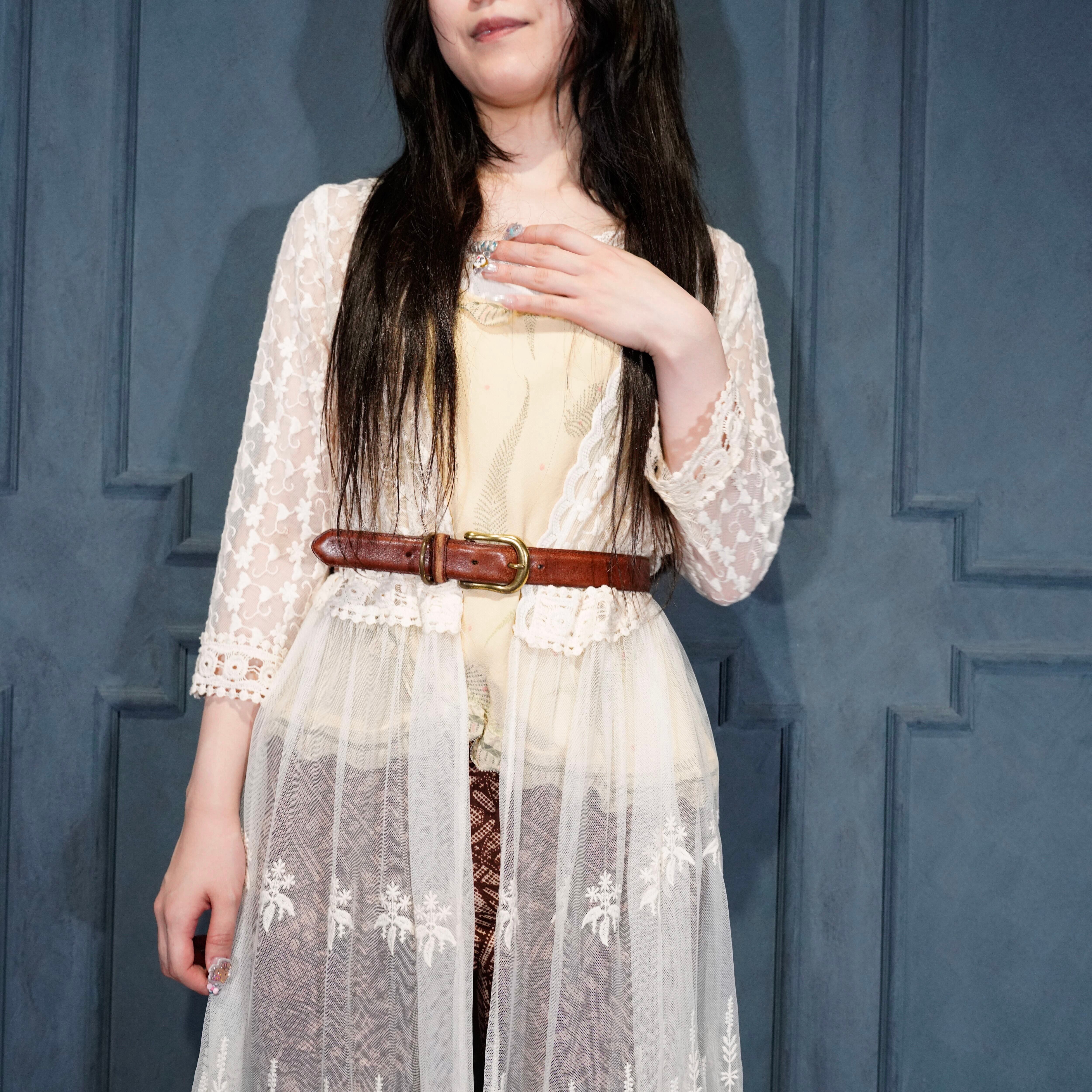 USA VINTAGE ALL LACE DESIGN SHEER LONG CARDIGAN/アメリカ古着総レースデザインシアーロングカーディガン
