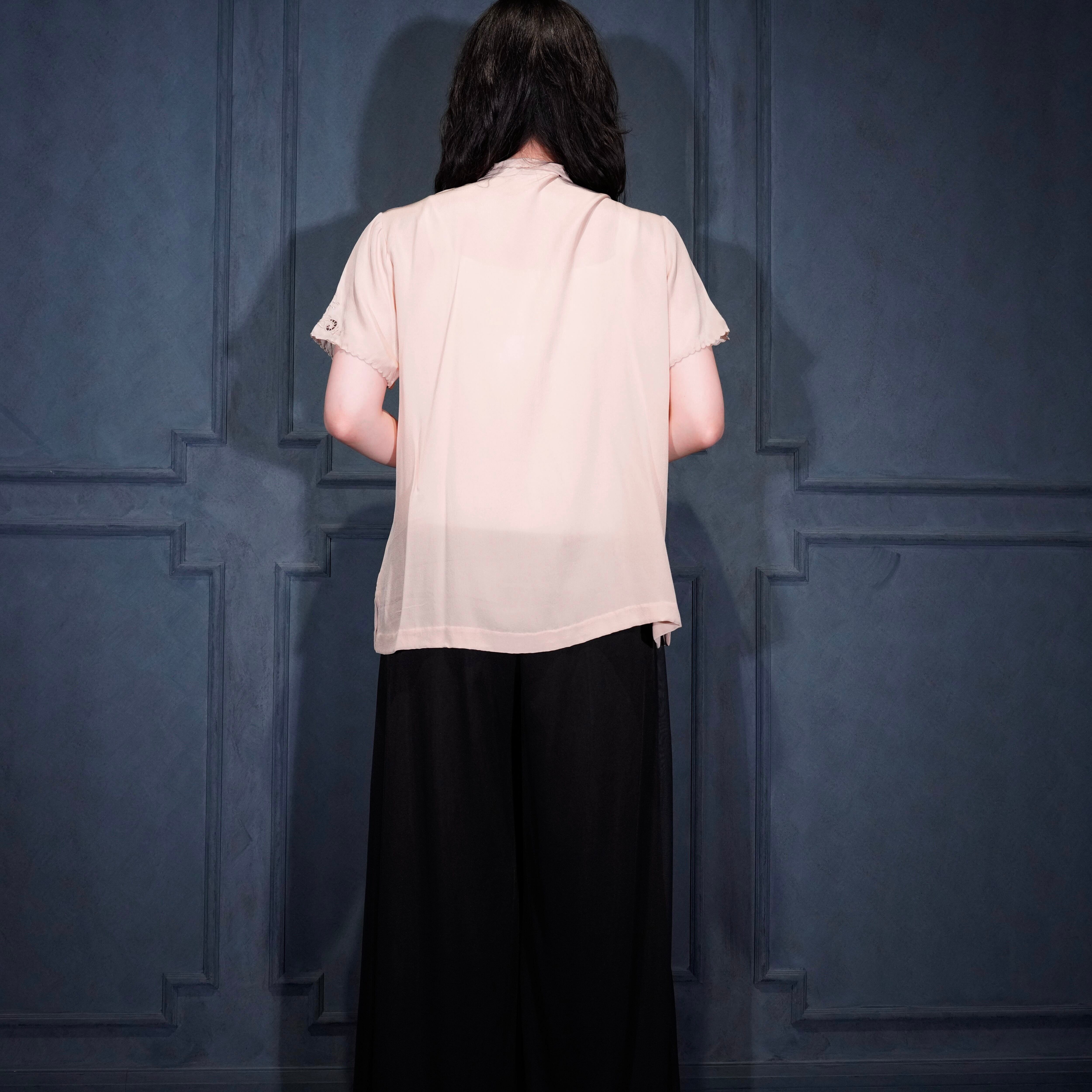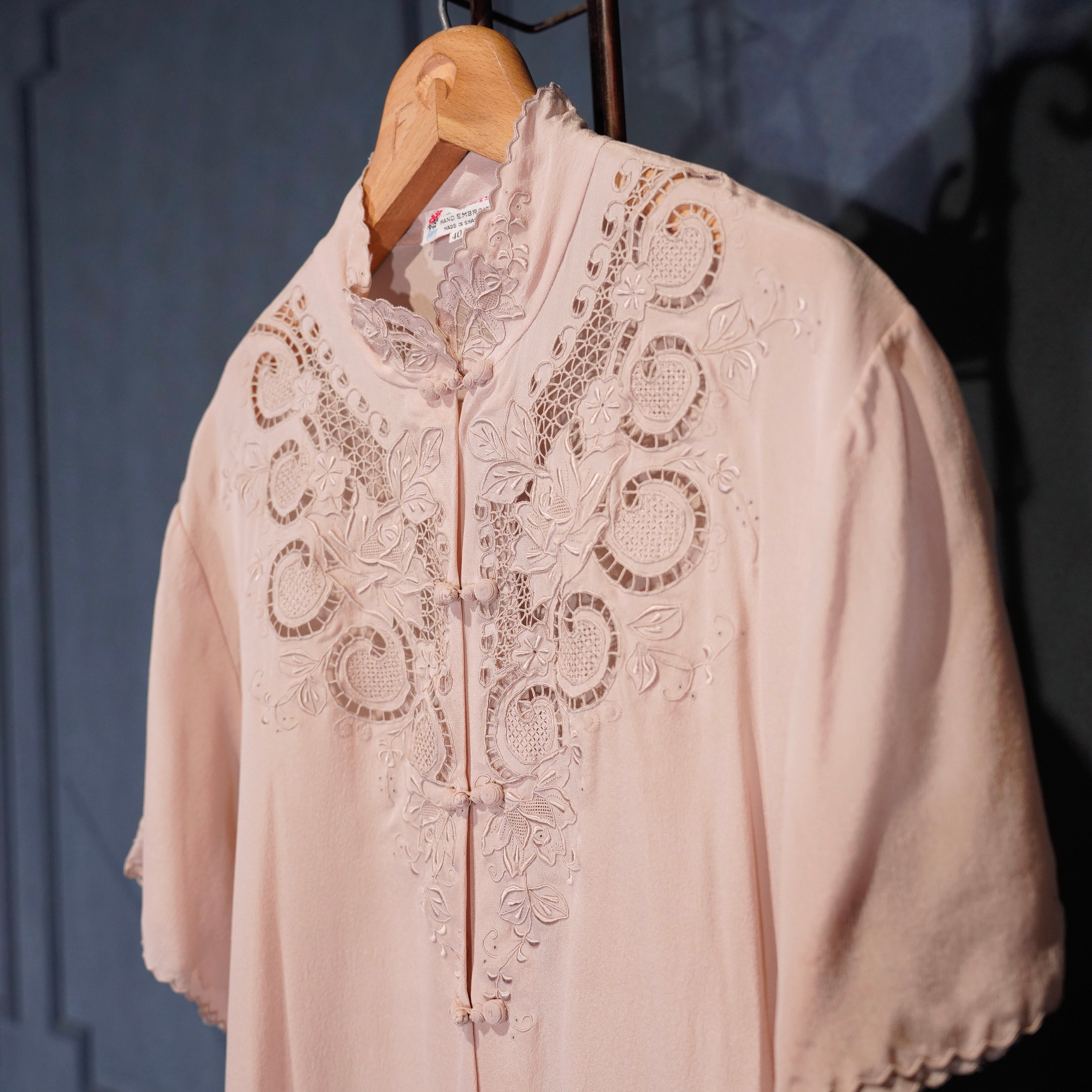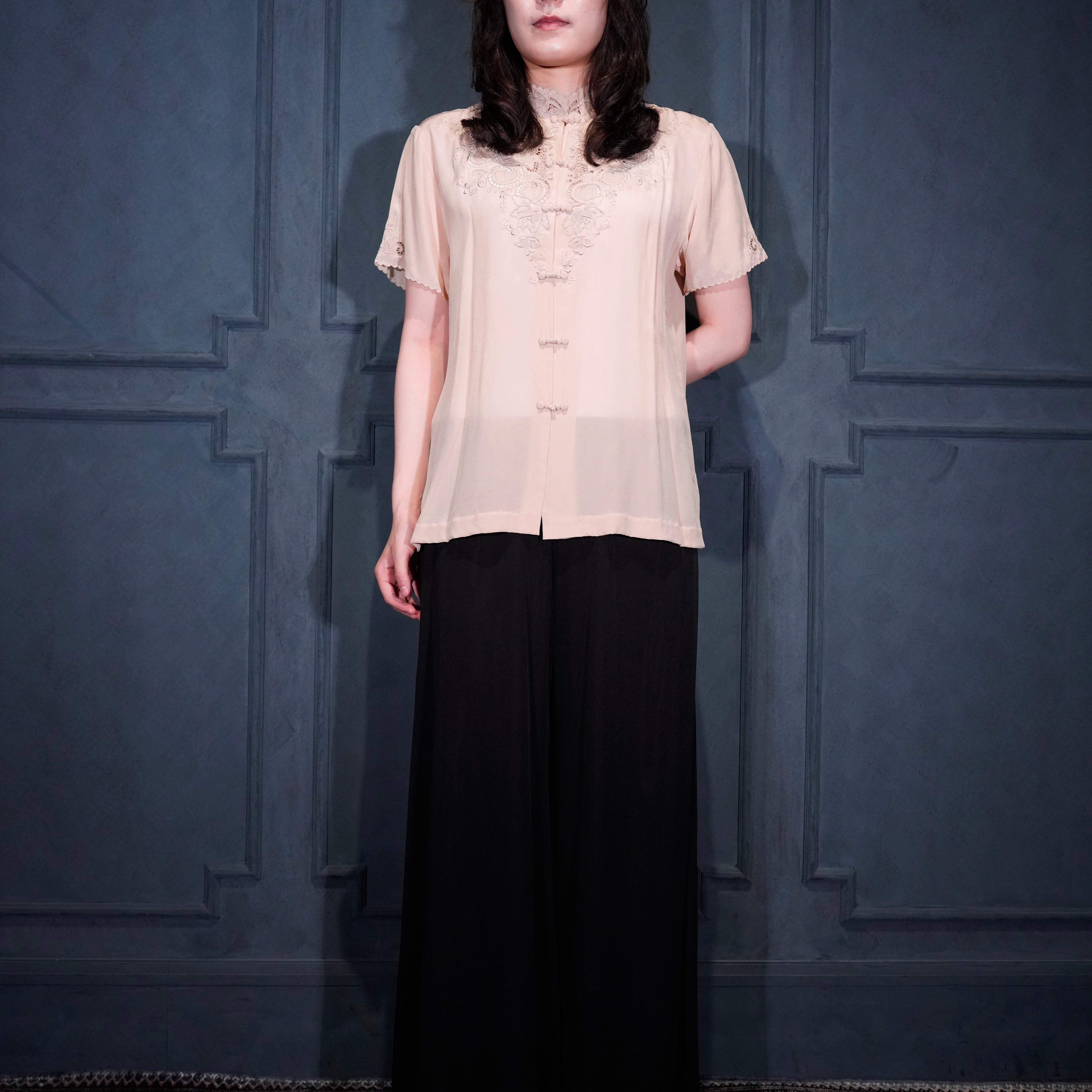 60's~70's USA VINTAGE 牡丹牌 EMBROIDERY CHINA BUTTON DESIGN HALF SLEEVE SILK SHIRT/60年代~70年代アメリカ古着刺繍チャイナボタン半袖シルクシャツ
