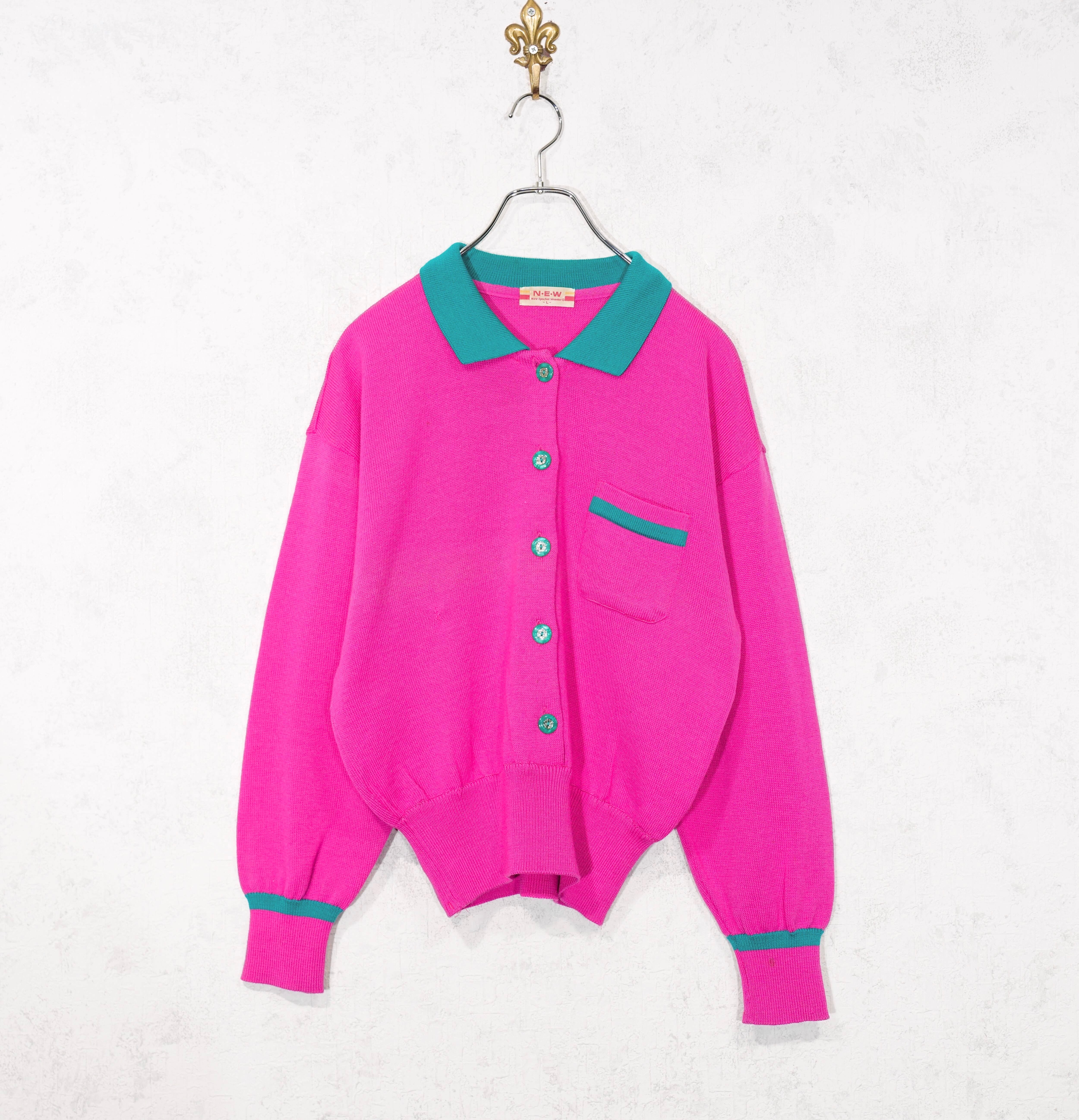 RETRO VINTAGE N・E・W 2 TONE DESIGN KNIT POLO SHIRT/レトロ古着2トーンデザインニットポロシャツ
