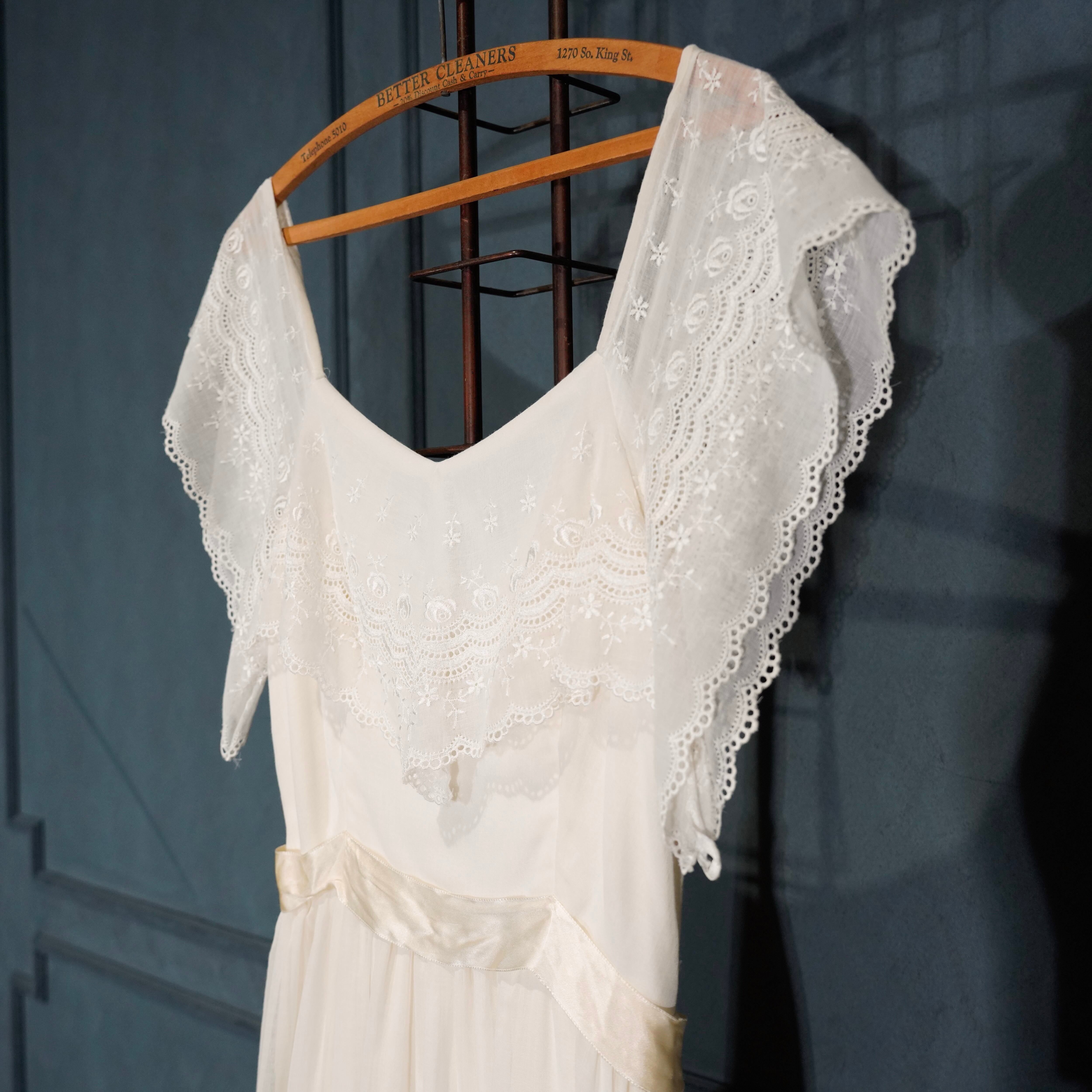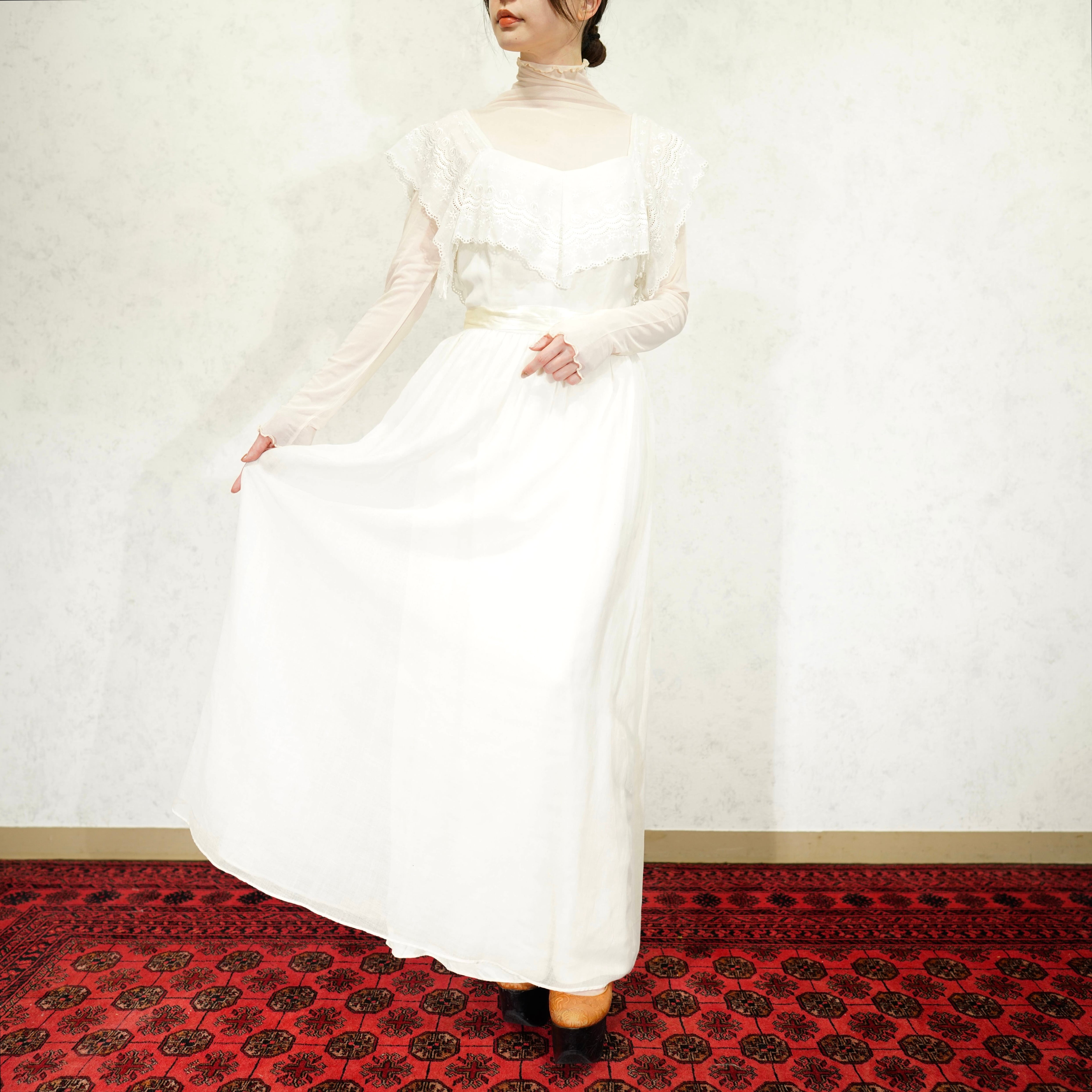 *SPECIAL ITEM* 60's~70's USA VINTAGE LACE COLLAR RIBBON DESIGN COTTON DRESS ONE PIECE/60年代~70年代アメリカ古着レース襟リボンデザインコットンドレスワンピース