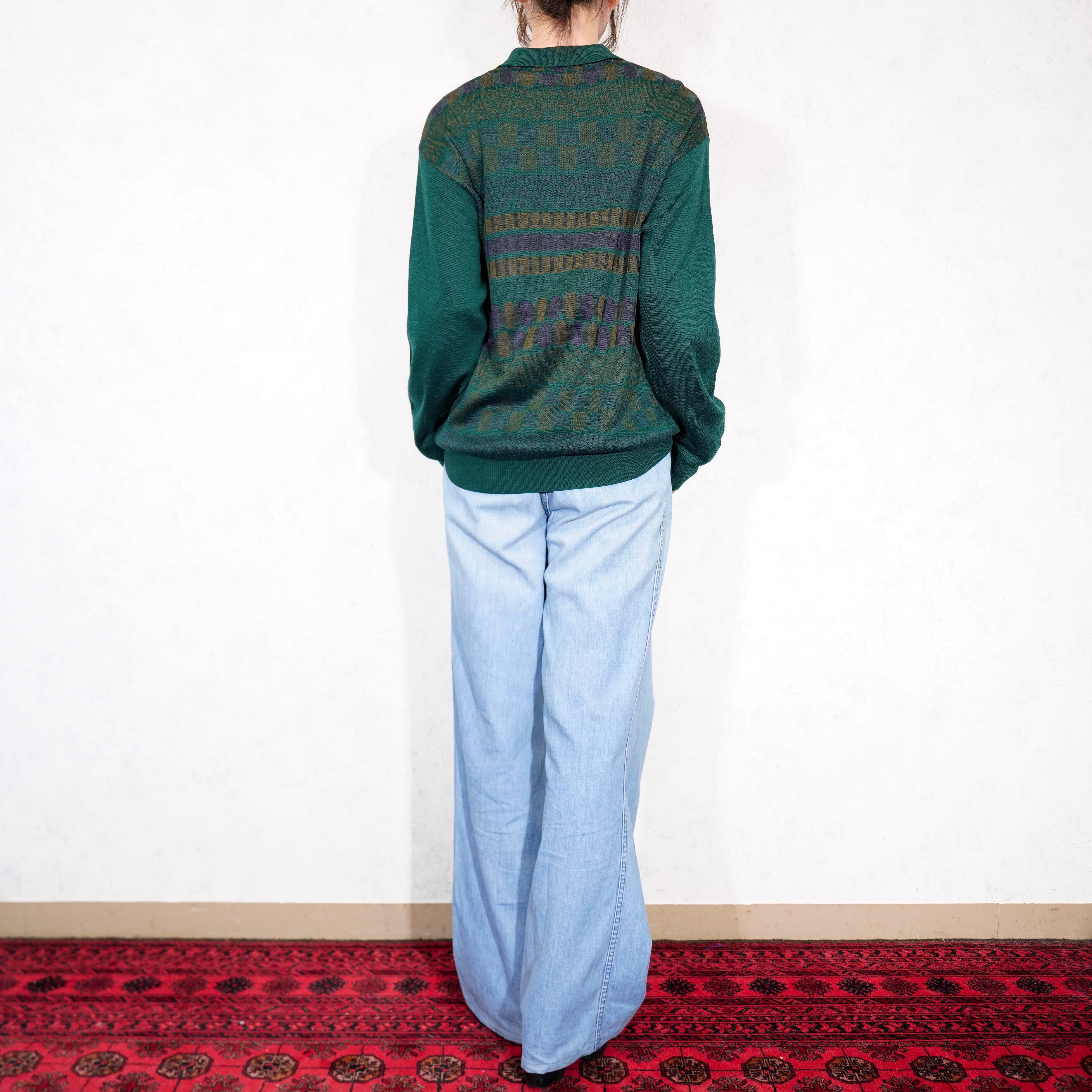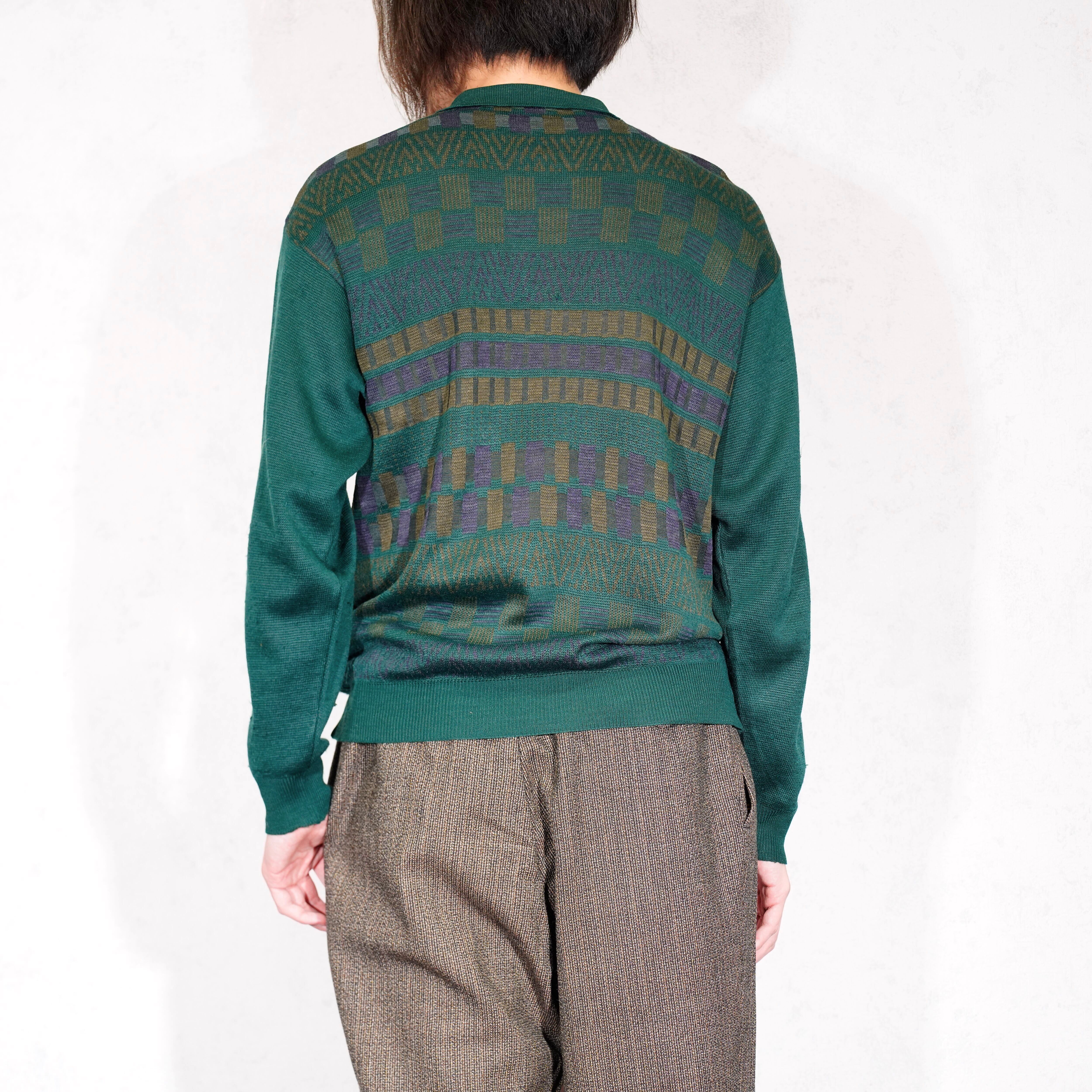 EU VINTAGE PATTERNED DESIGN KNIT POLO SHIRT/ヨーロッパ古着柄デザインニットポロシャツ