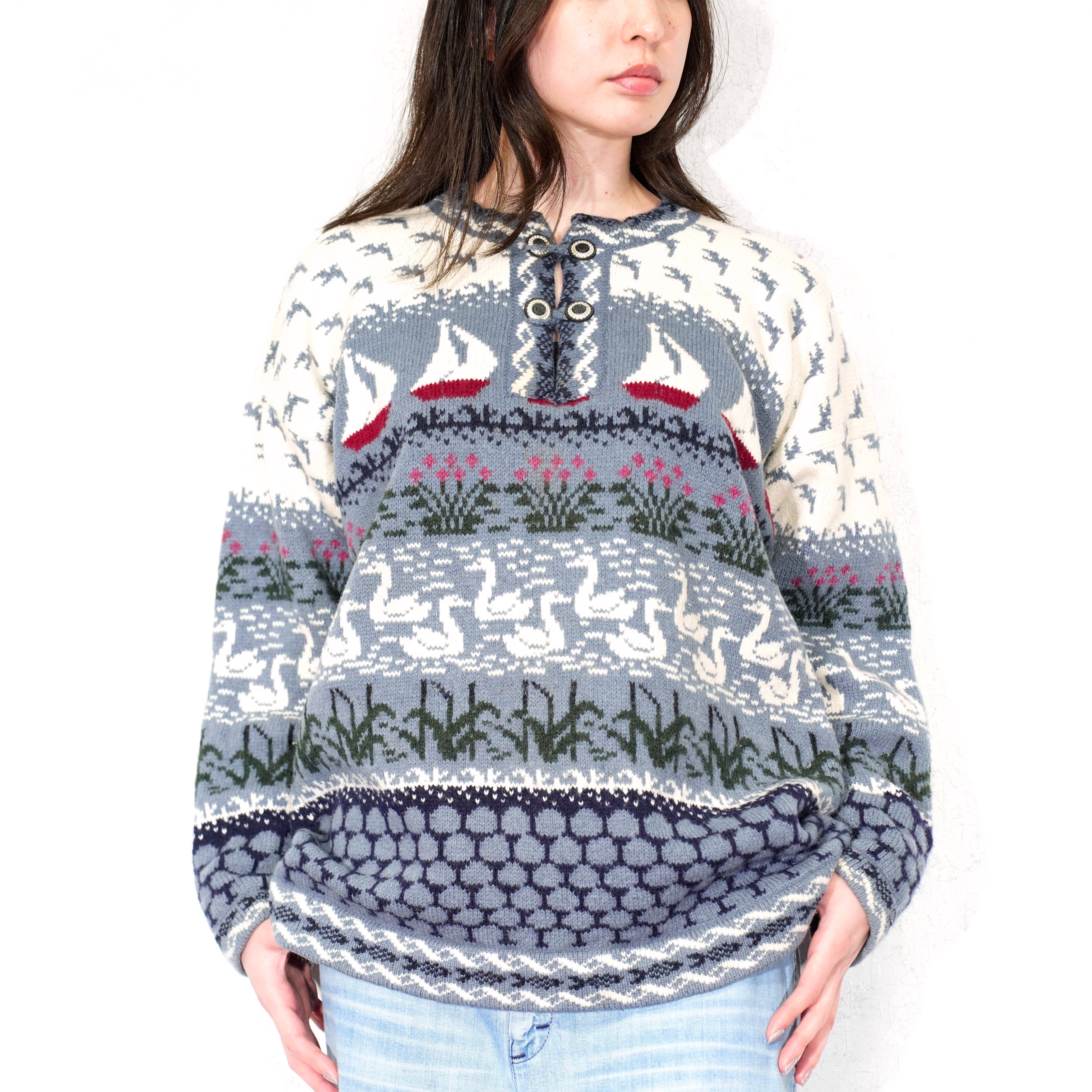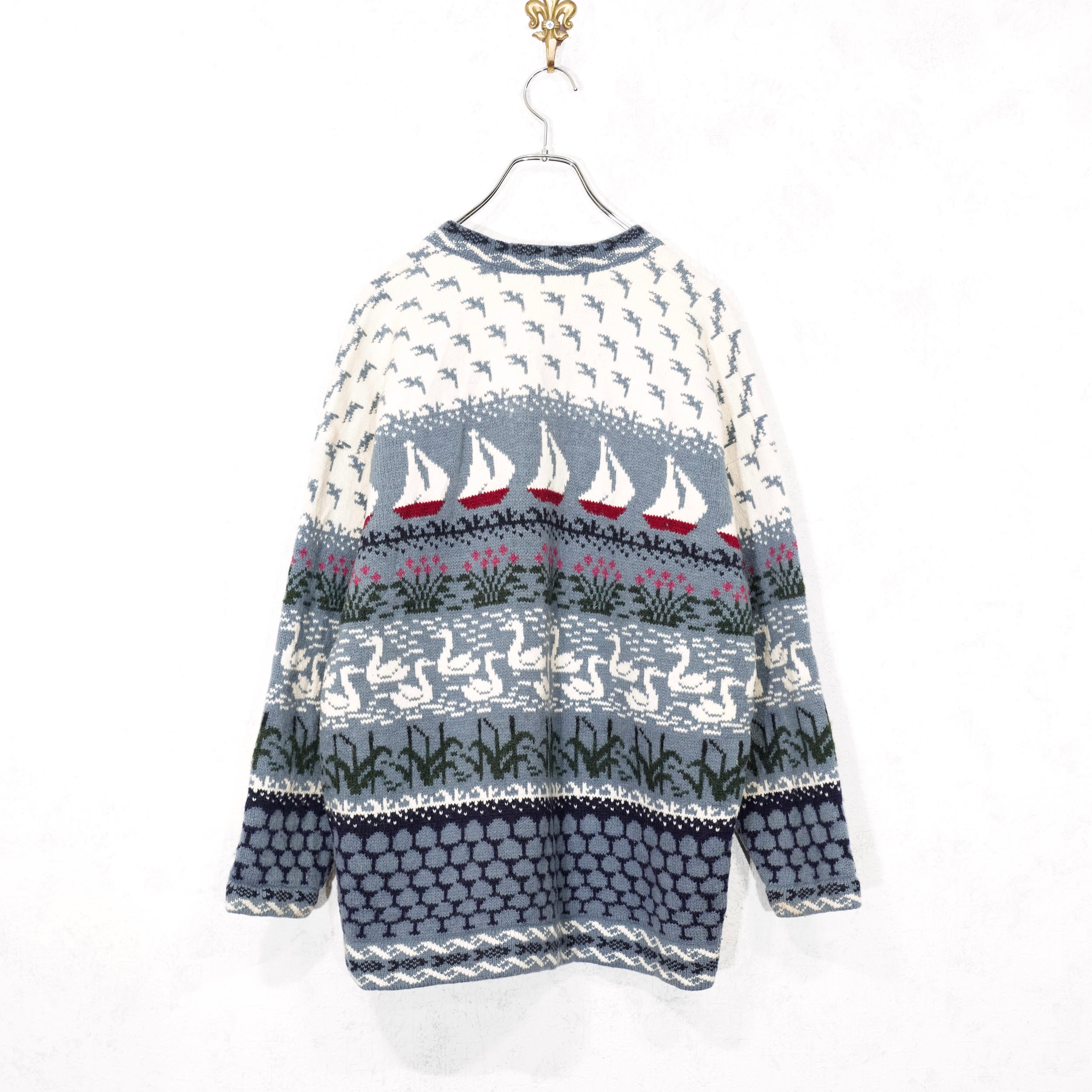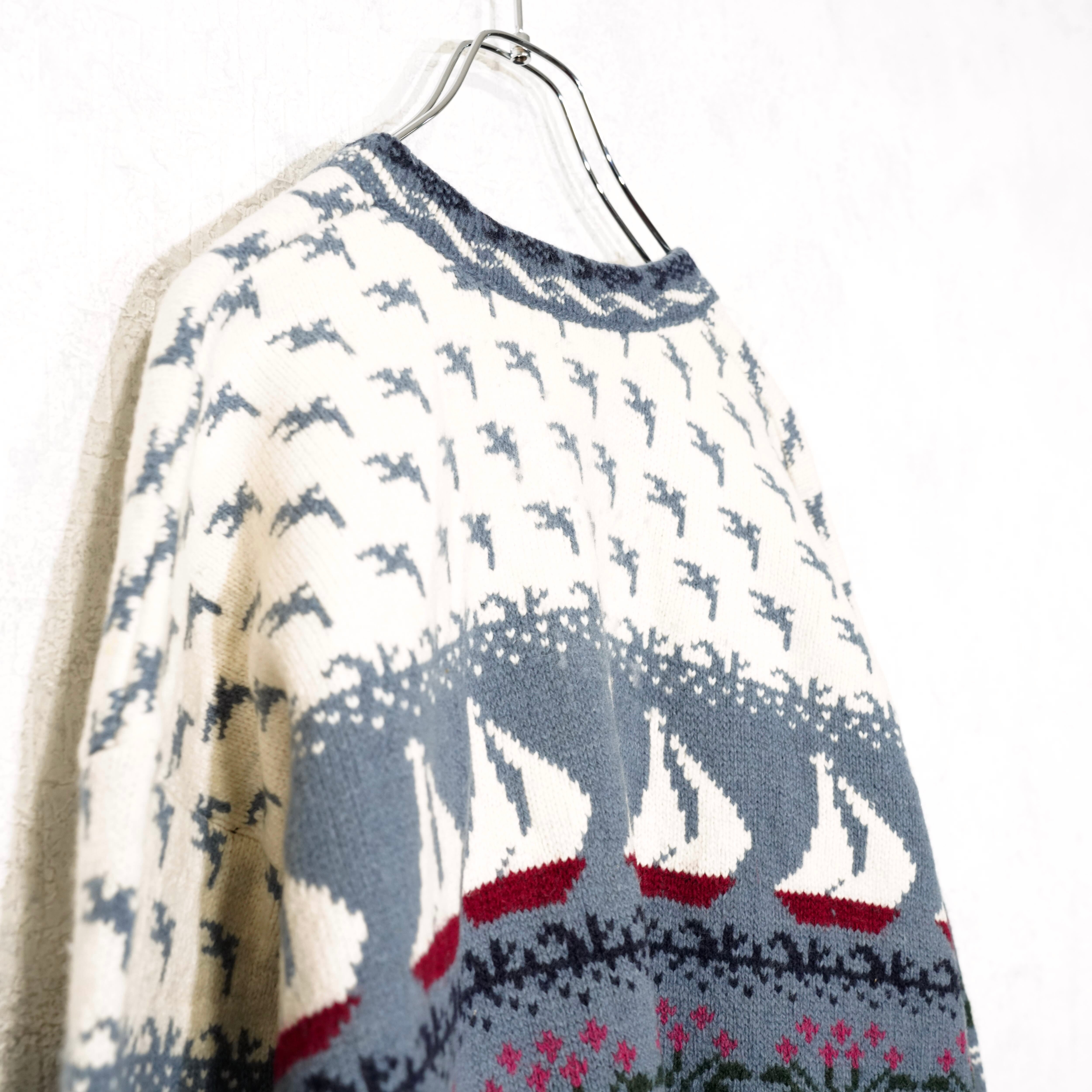 USA VINTAGE DUCK&YACHT PATTERNED DESIGN KNIT/アメリカ古着あひるとヨット柄デザインニット