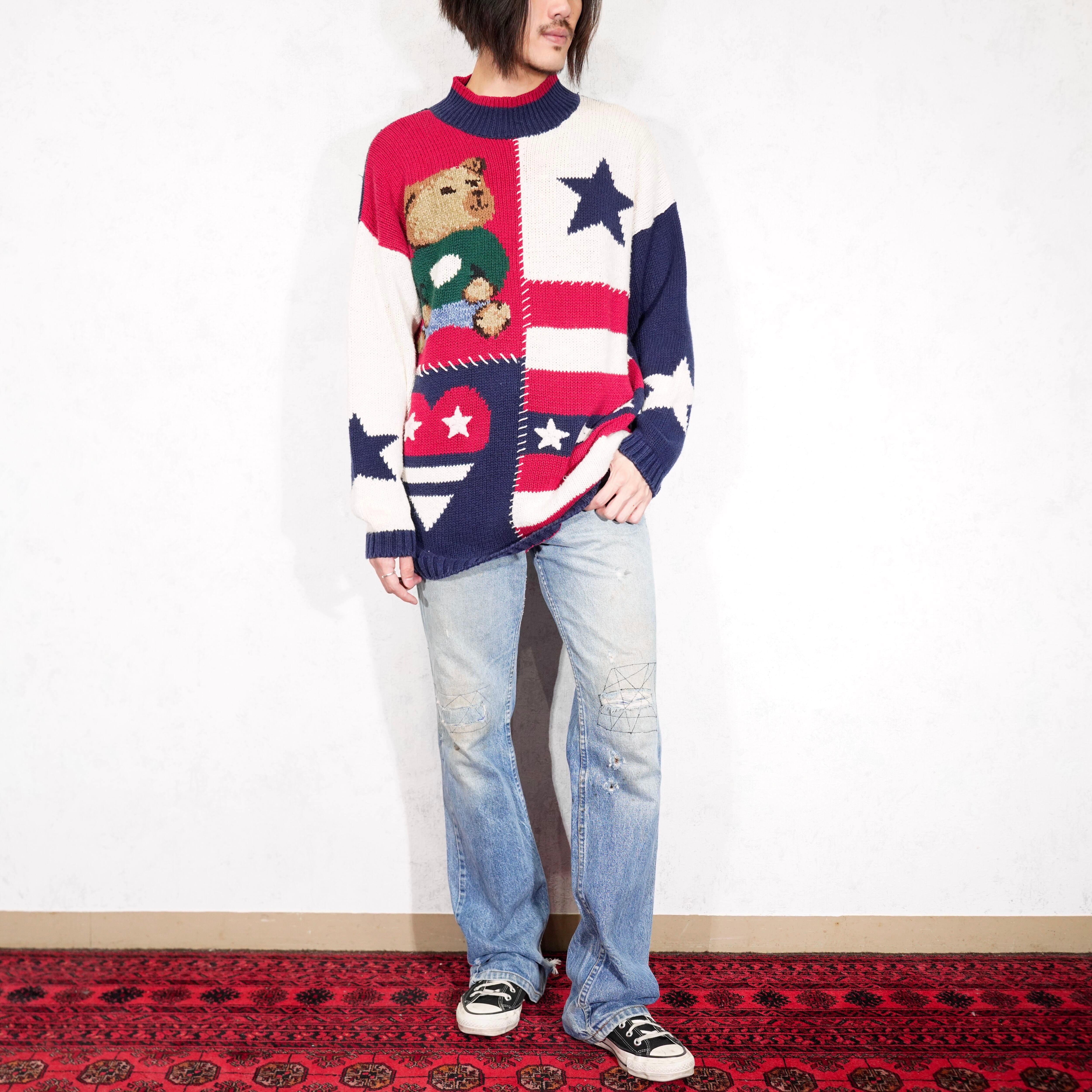 *SPECIAL ITEM* USA VINTAGE MARSH LANDING LOVELY BEAR DESIGN COTTON KNIT/アメリカ古着ラブリーベアーデザインコットンニット