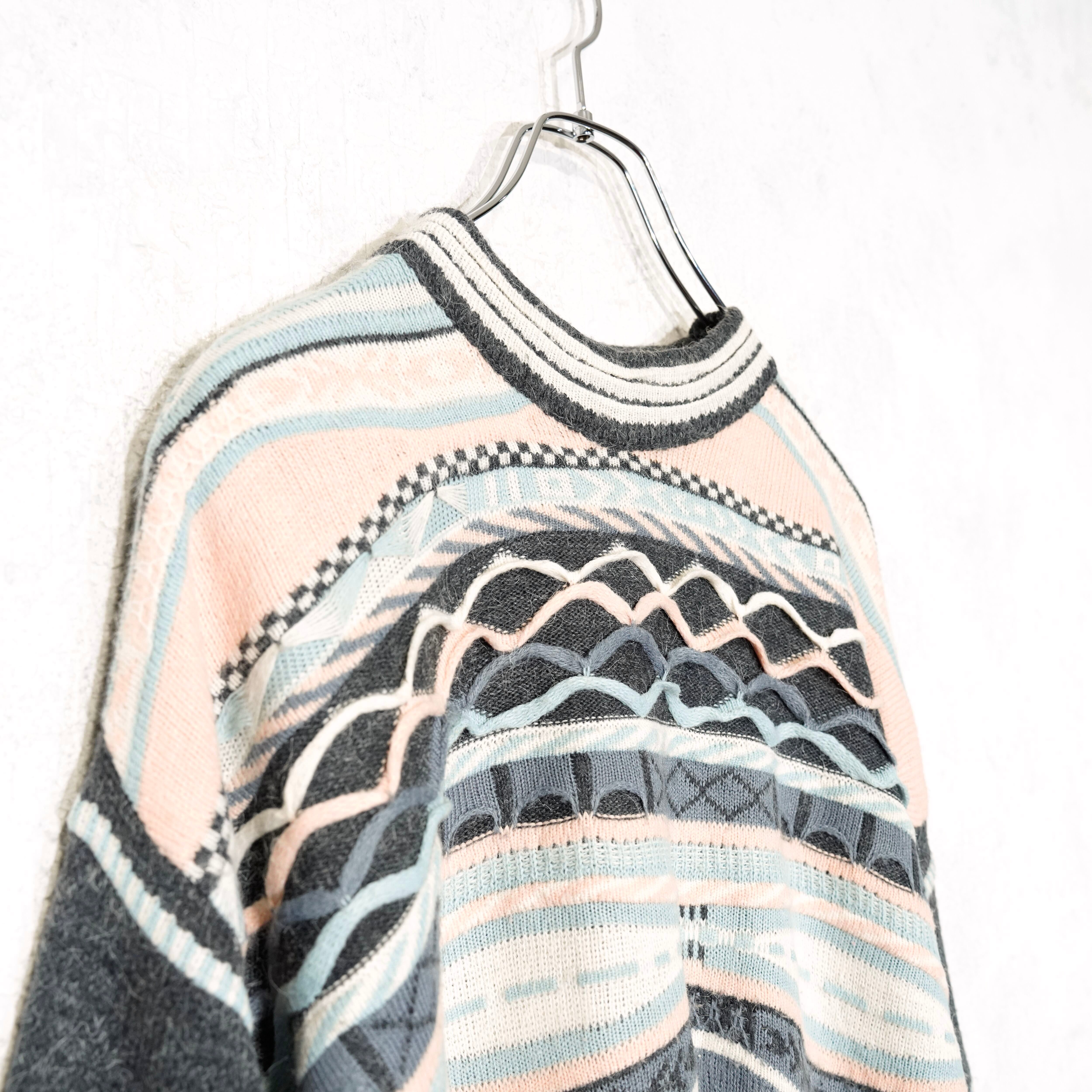 USA VINTAGE MULTI PATTERNED DESIGN 3D KNIT/アメリカ古着マルチパターンデザイン3Dニット