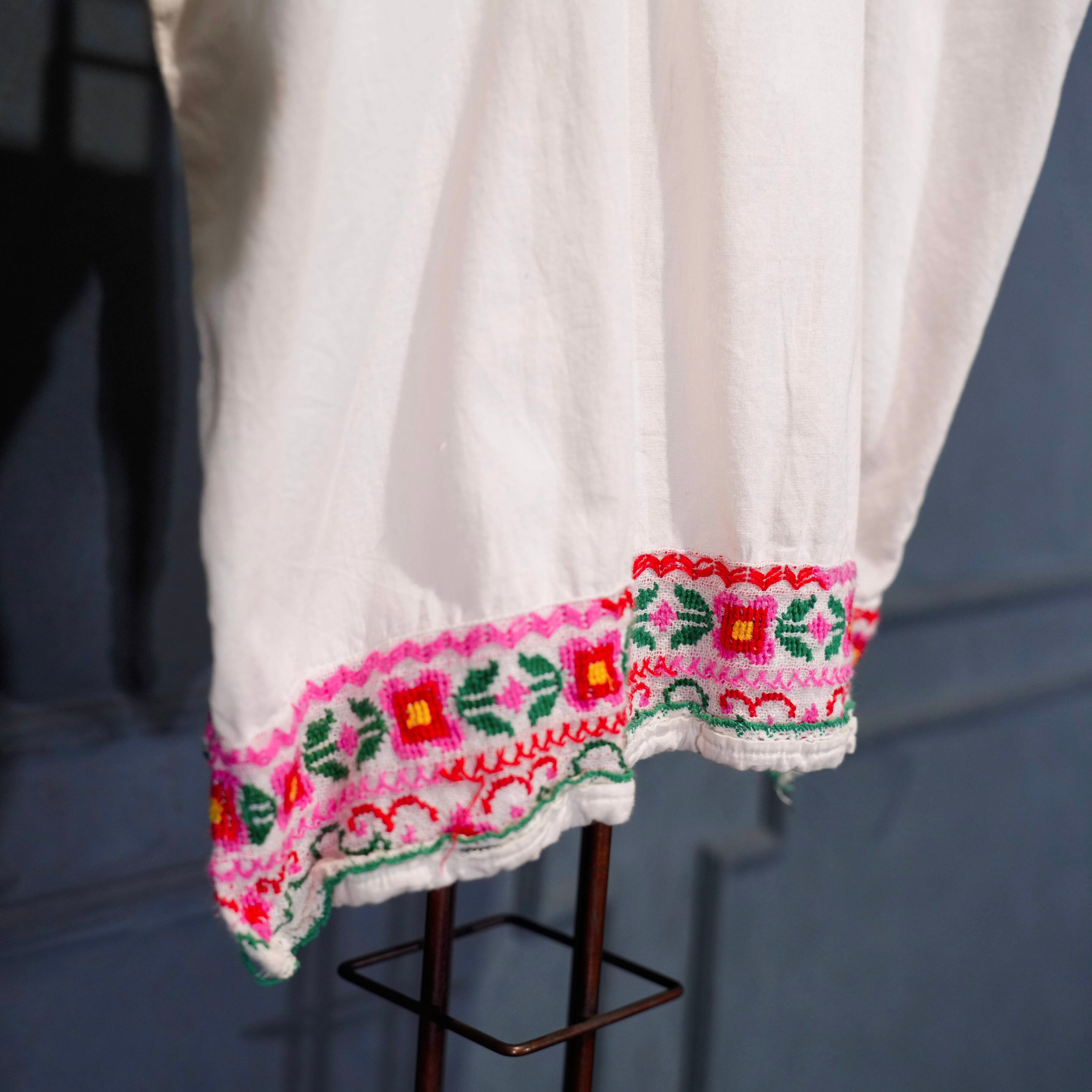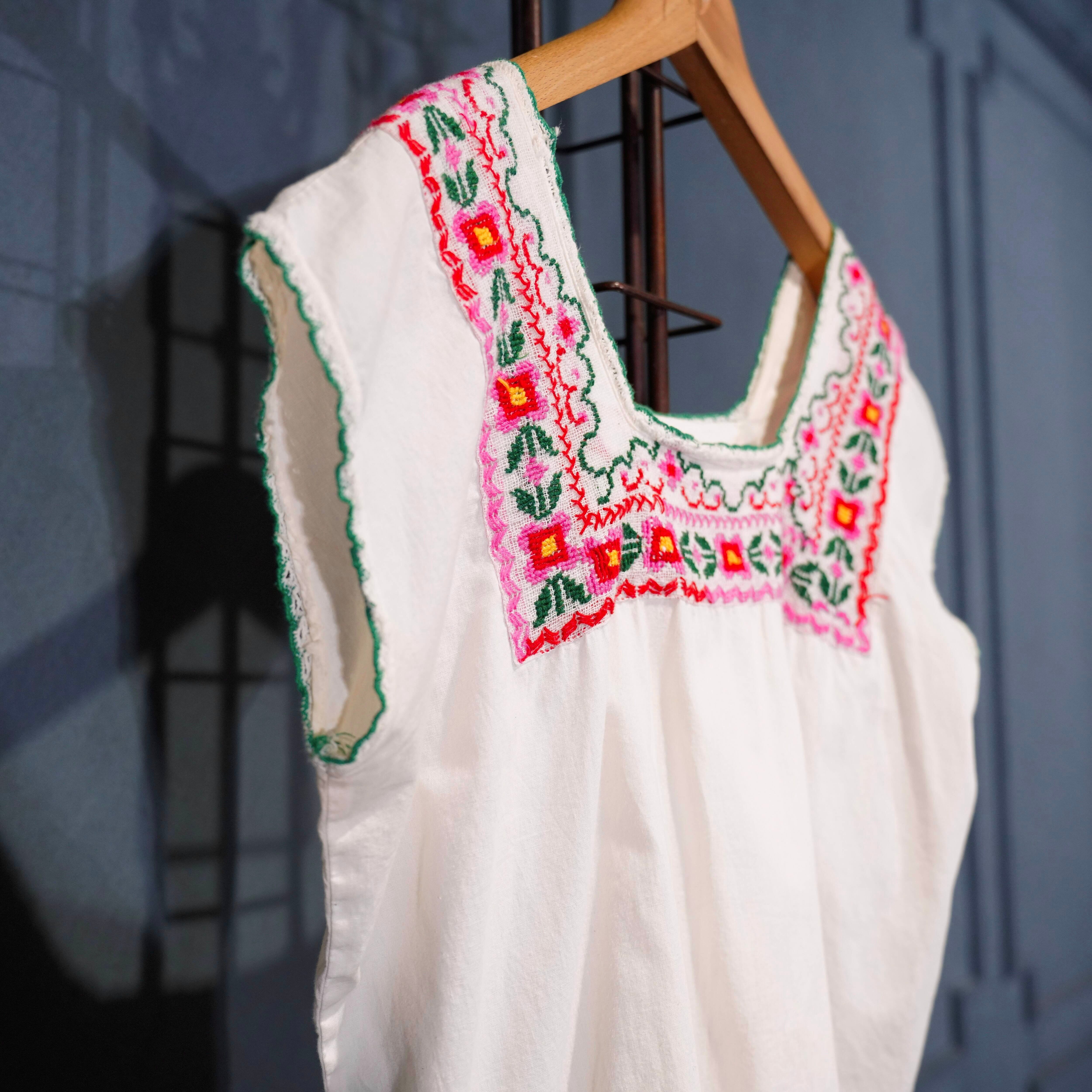 USA VINTAGE PUEBRA MEXICAN EMBROIDERY CROSS STITCH DESIGN TUNIC BLOUSE/アメリカ古着プエブラメキシコ刺繍クロスステッチデザインチュニックブラウス
