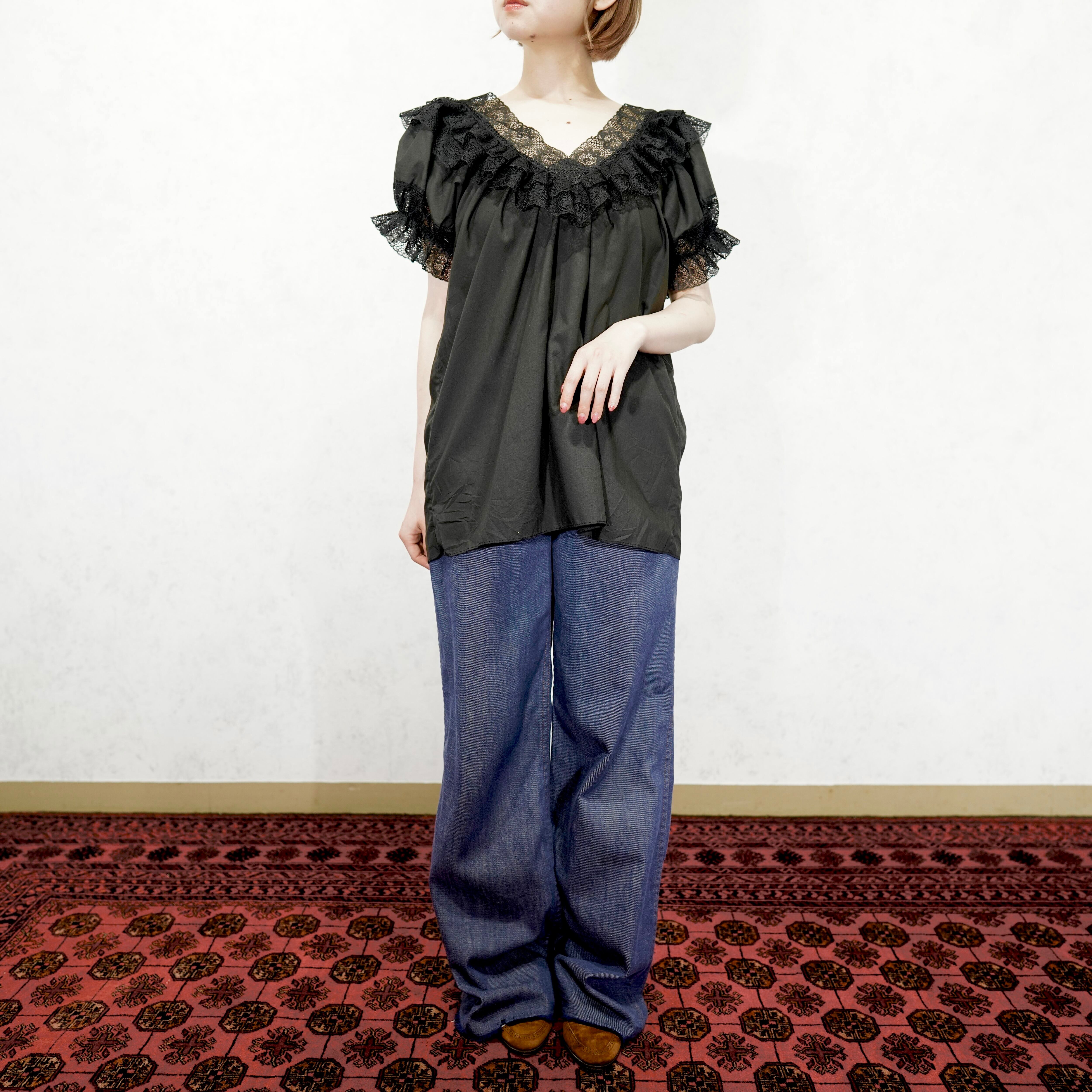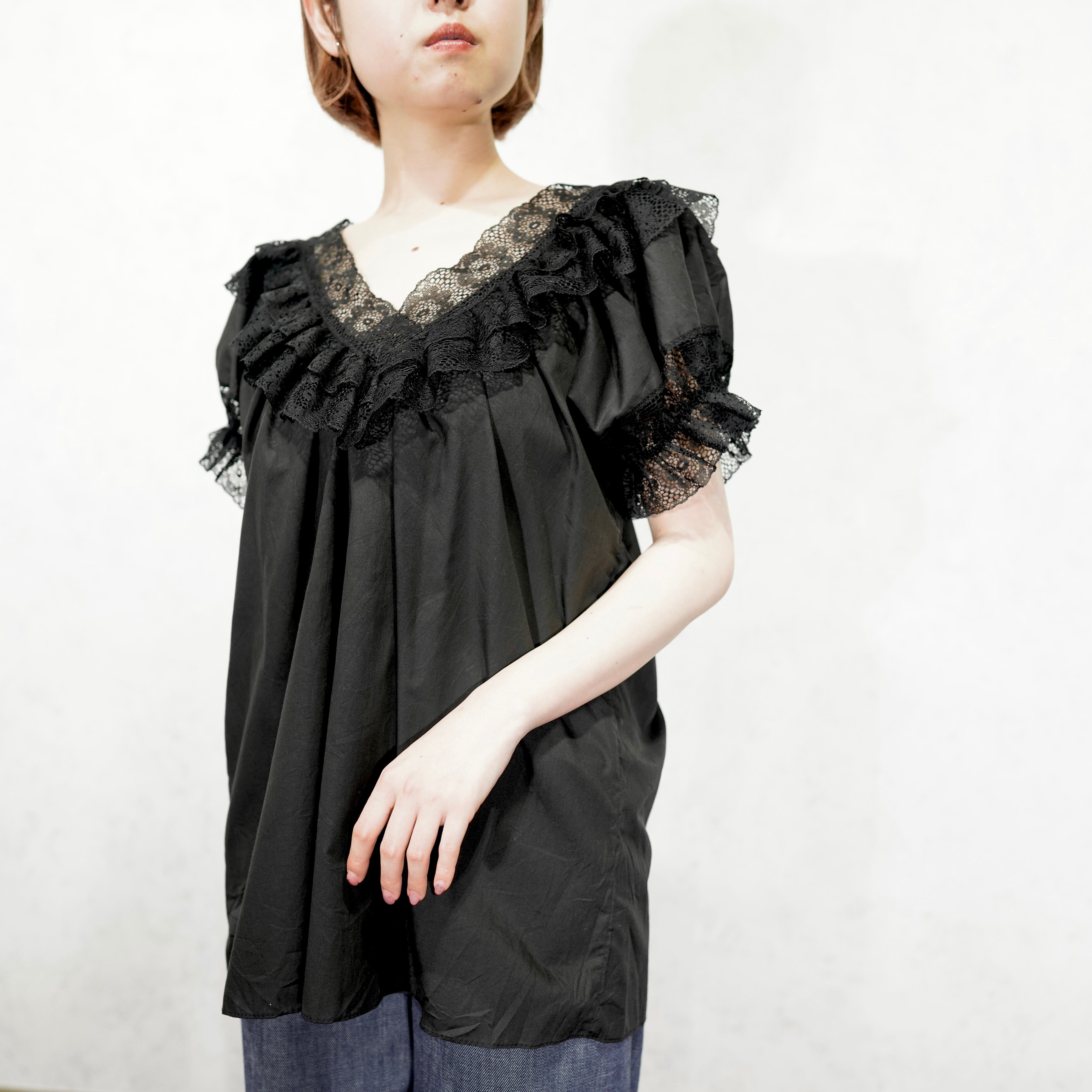 USA VINTAGE LACE DESIGN TUNIC BLOUSE/アメリカ古着レースデザインチュニックブラウス