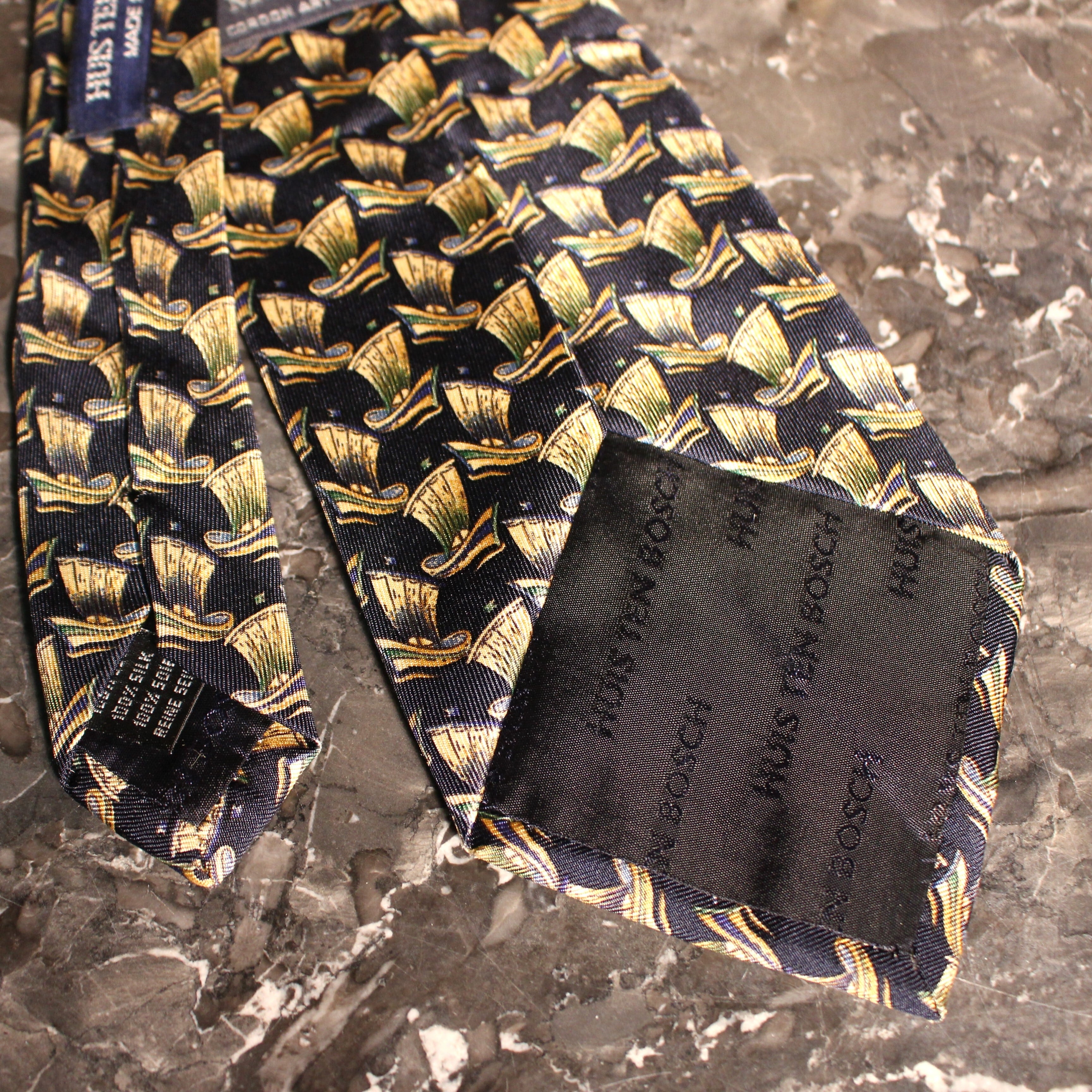 EU VINTAGE M.C.ESCHER HUIS TEN BOSCH YACHT PATTERNED DESIGN SILK TIE/ヨーロッパ古着ヨット柄デザインシルクネクタイ