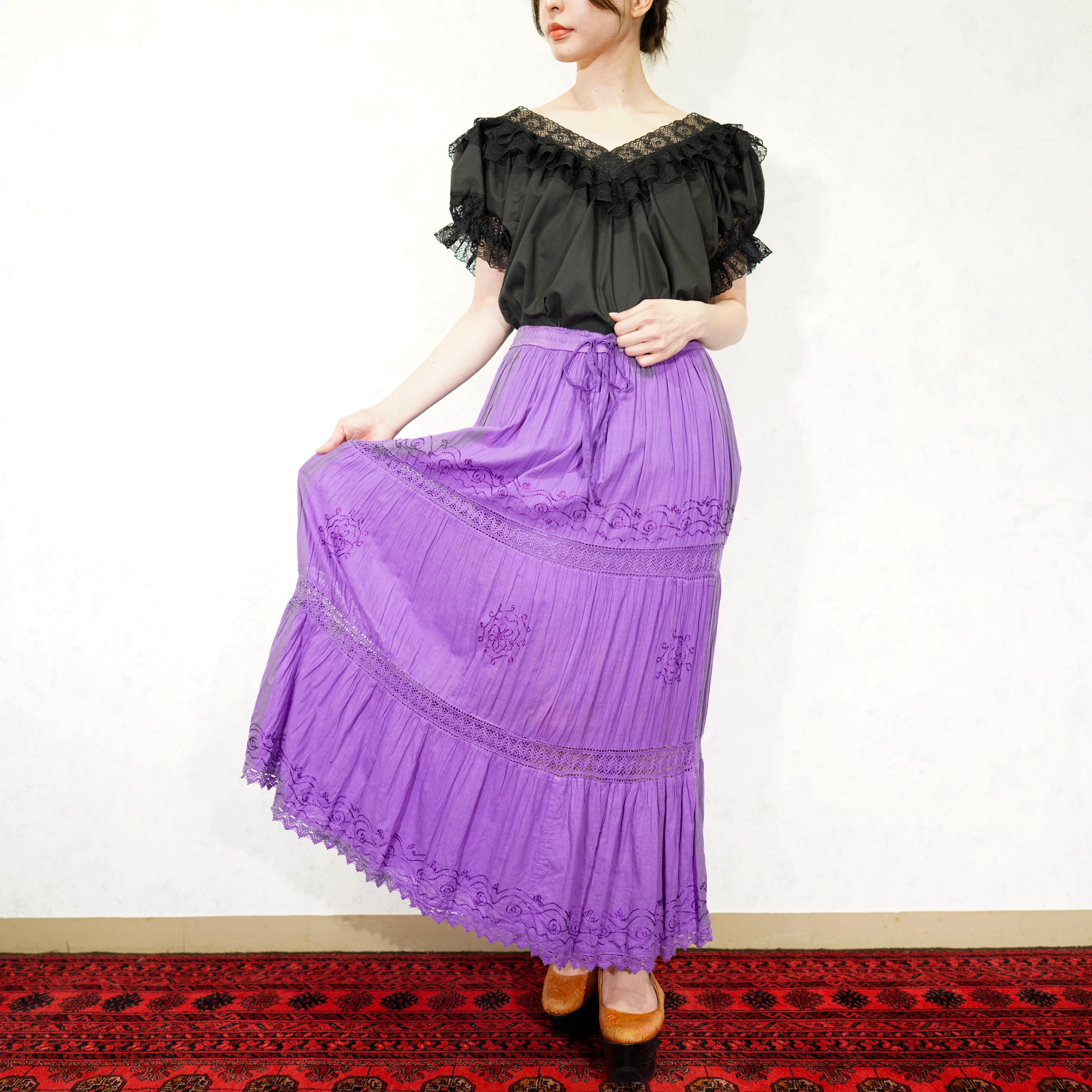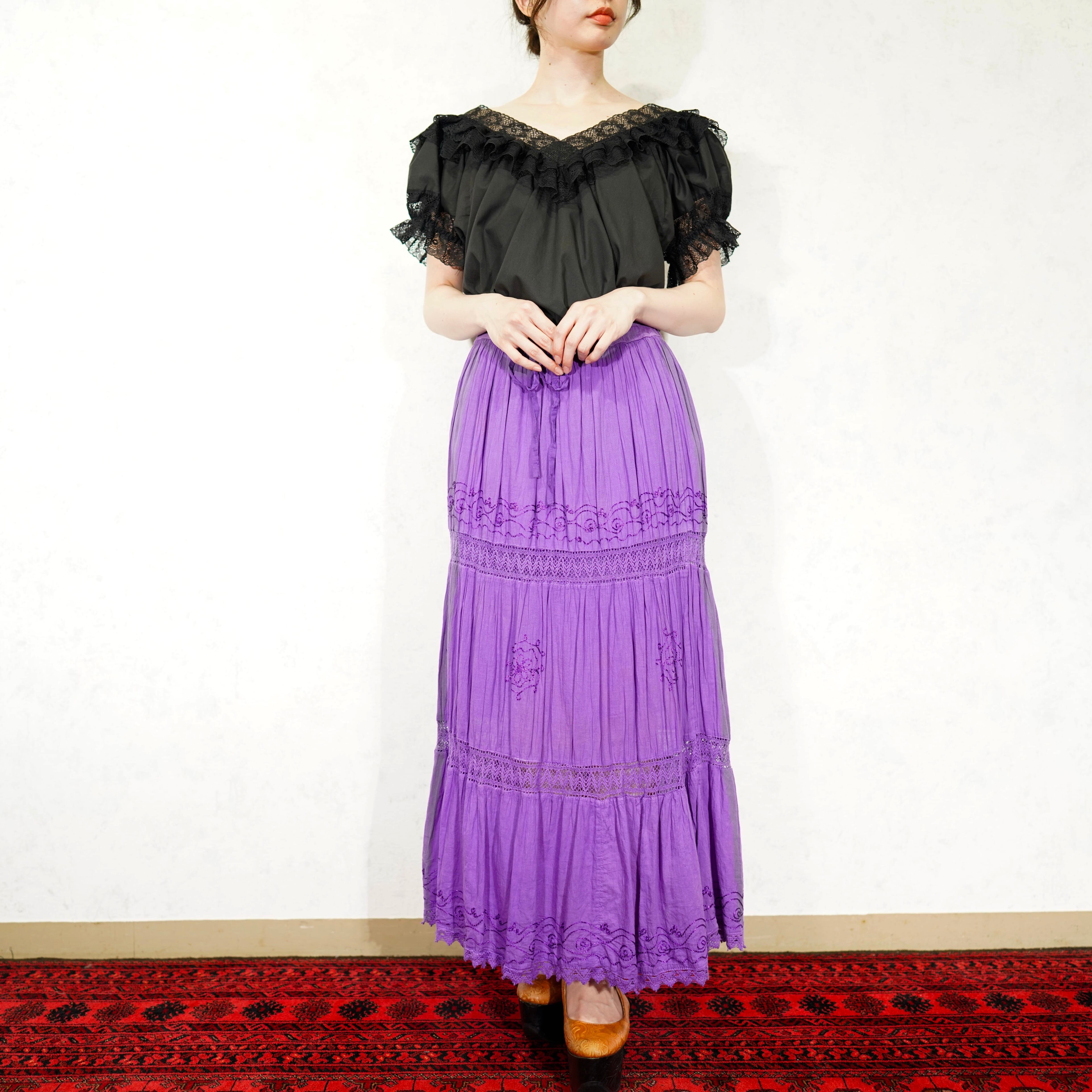 USA VINTAGE Advance Apparels EMBROIDERY DESIGN LONG SKIRT/アメリカ古着刺繍デザインロングスカート