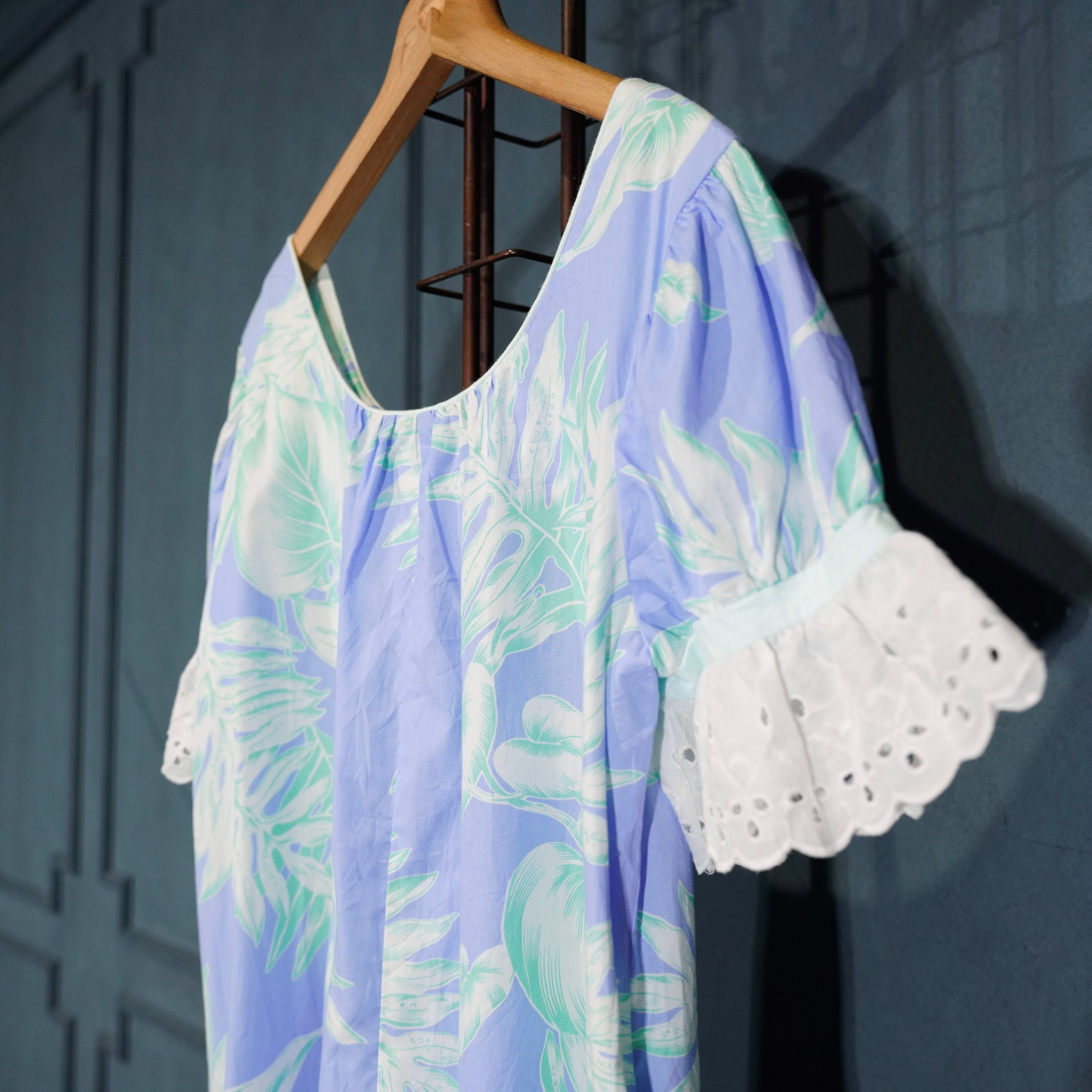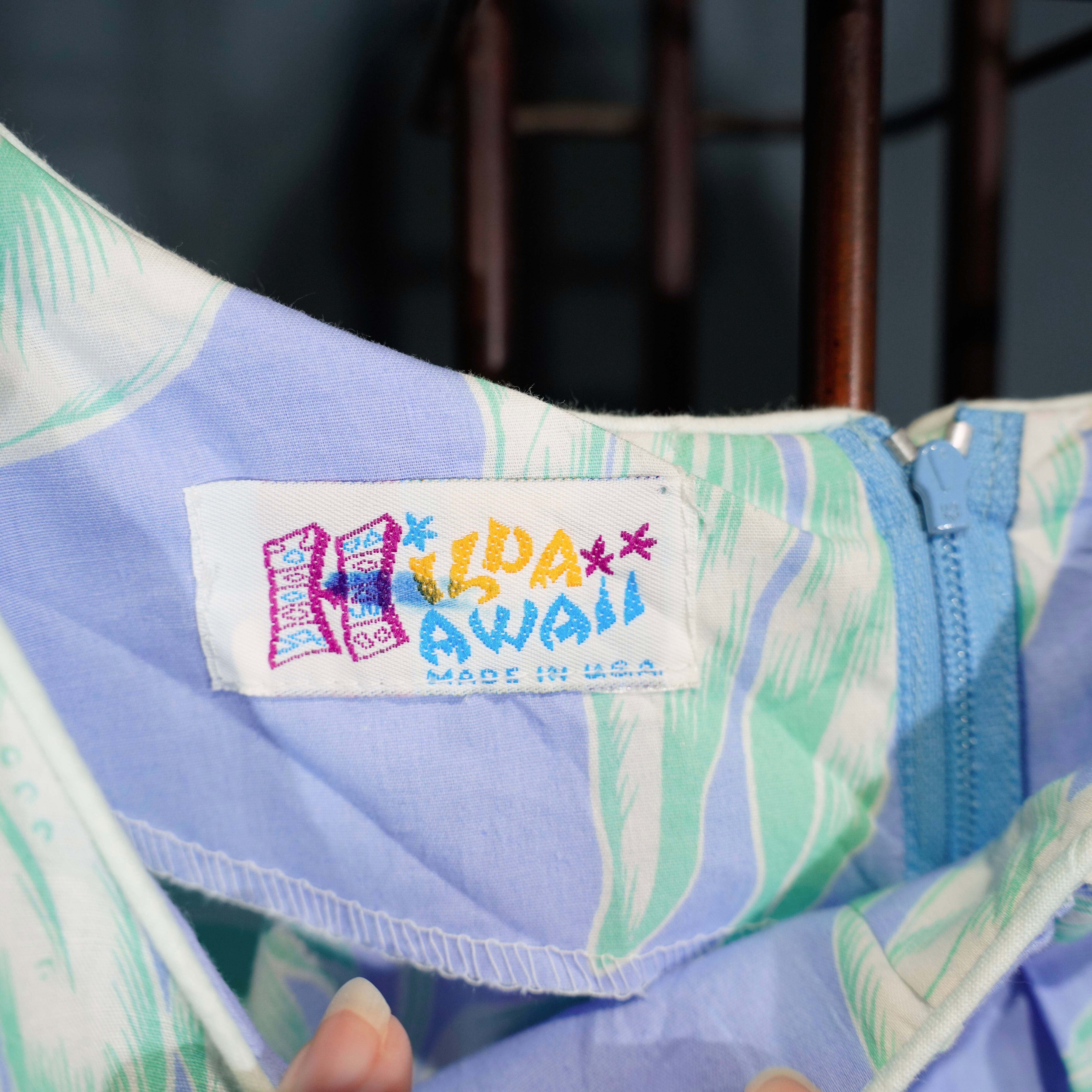 70's USA VINTAGE HILDA HAWAII FLOWER PATTRNED LACE SLEEVE HAWAIIAN DESIGN ONE PIECE/70年代アメリカ古着花柄レース袖ハワイアンデザインワンピース