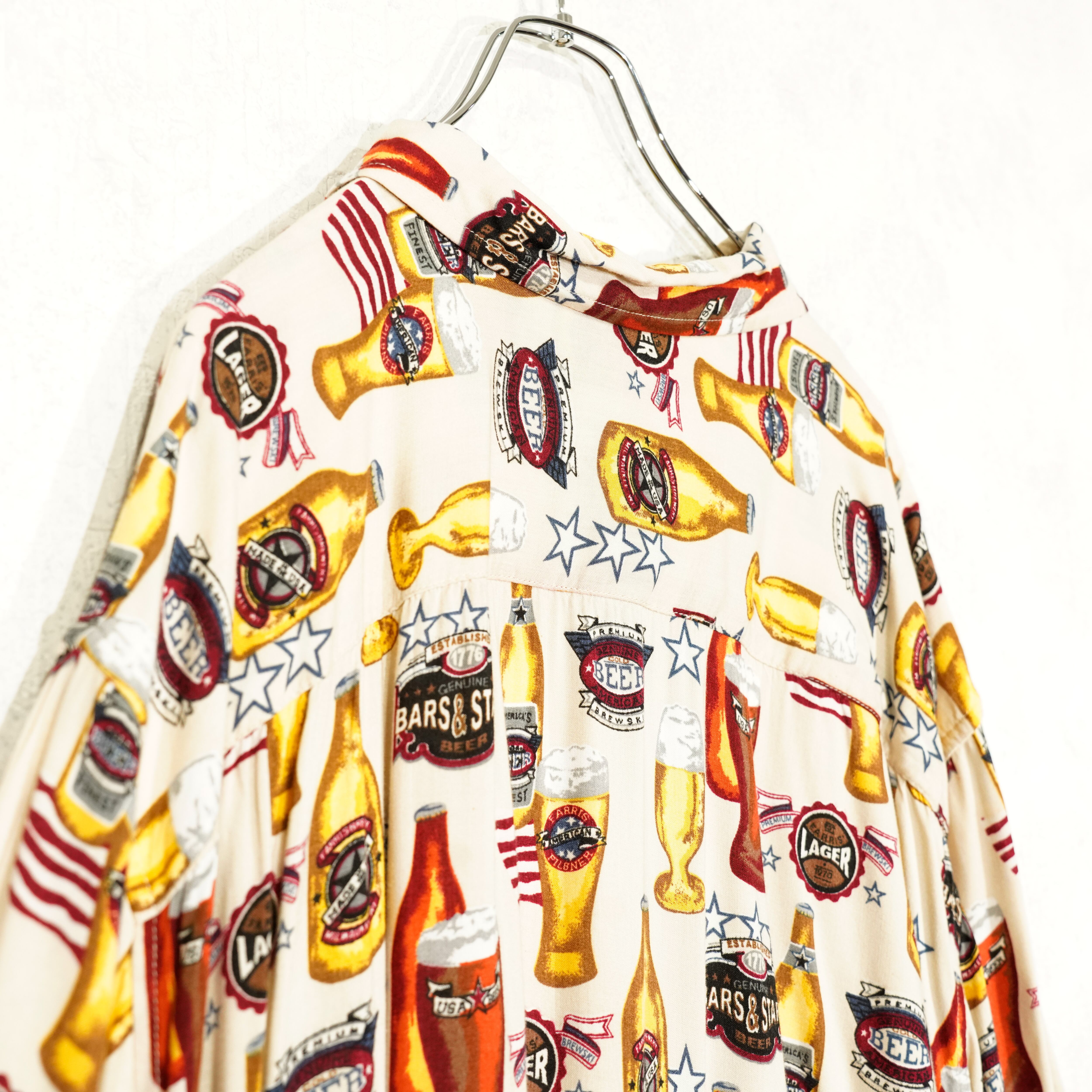 USA VINTAGE C&B by CROFT&BARROW BEER PRINT DESIGN HALF SLEEVE RAYON SHIRT/アメリカ古着ビール柄デザイン半袖レーヨンシャツ