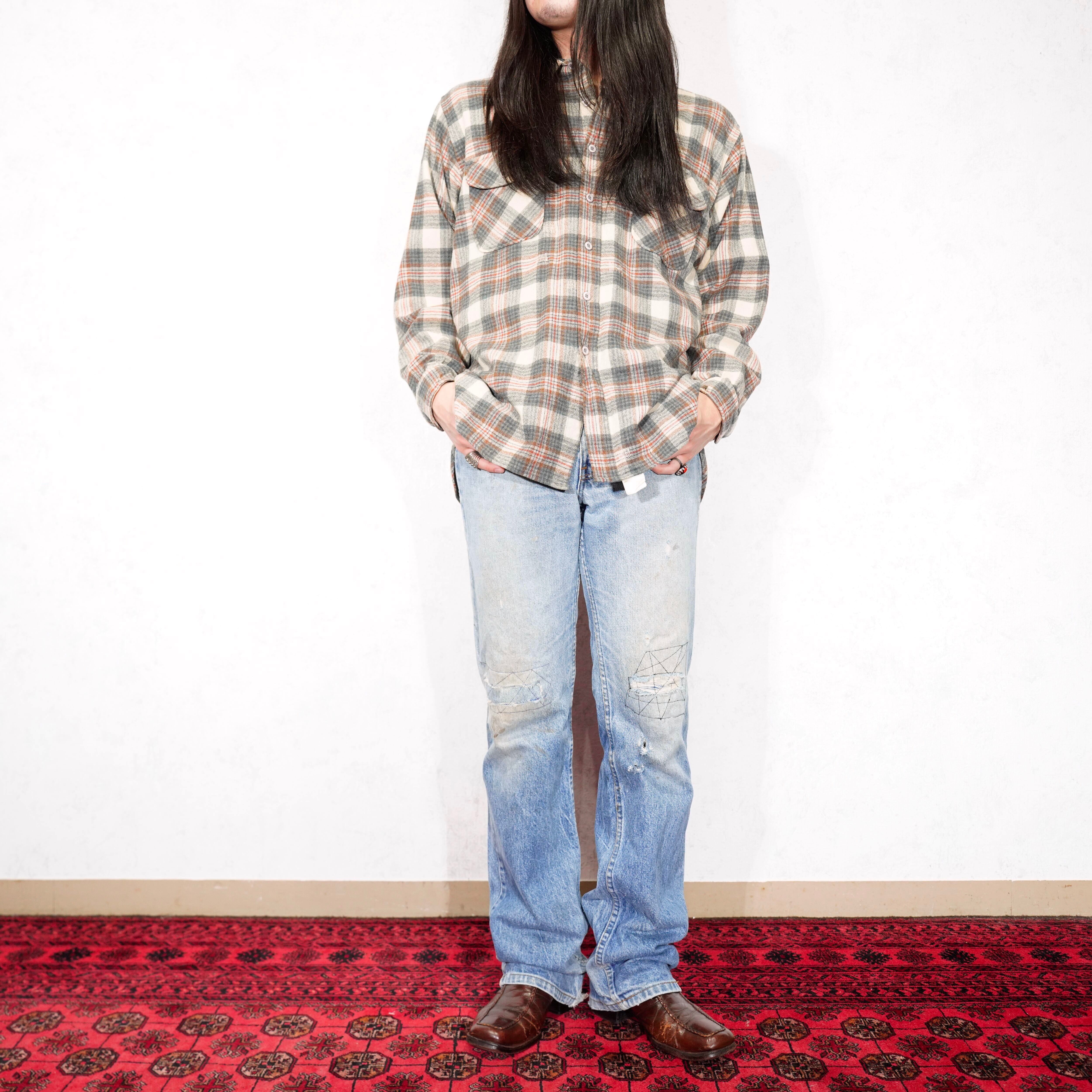70's USA VINTAGE PENDLETON CHECK PATTERNED WOOL FLANNEL SHIRT MADE IN USA/70年代アメリカ古着ペンドルトンウールフランネルシャツ