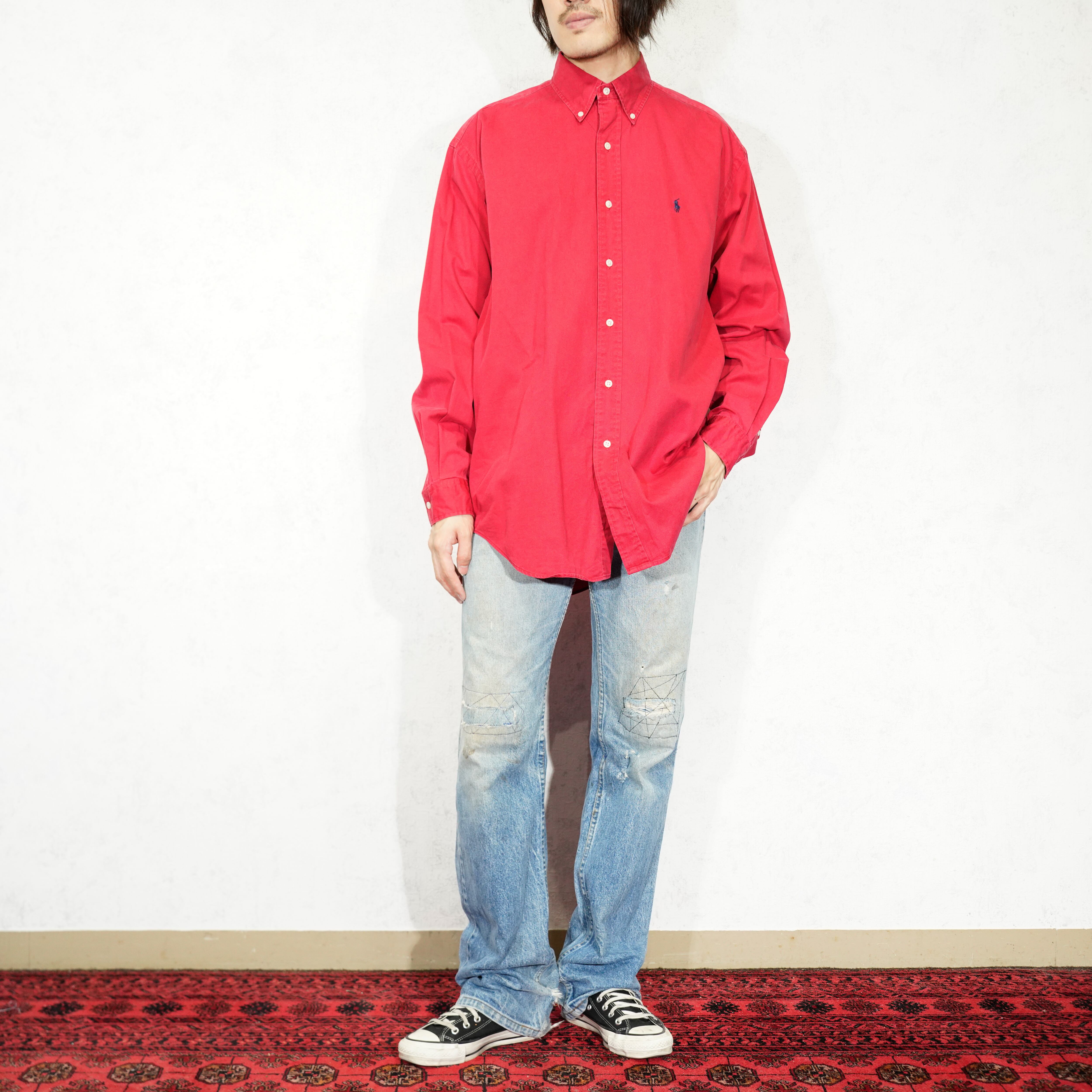USA VINTAGE Ralph Lauren HORSE EMBROIDERY DESIGN BD COTTON COLOR SHIRT/アメリカ古着ラルフローレンホース刺繍デザインボタンダウンコットンカラーシャツ