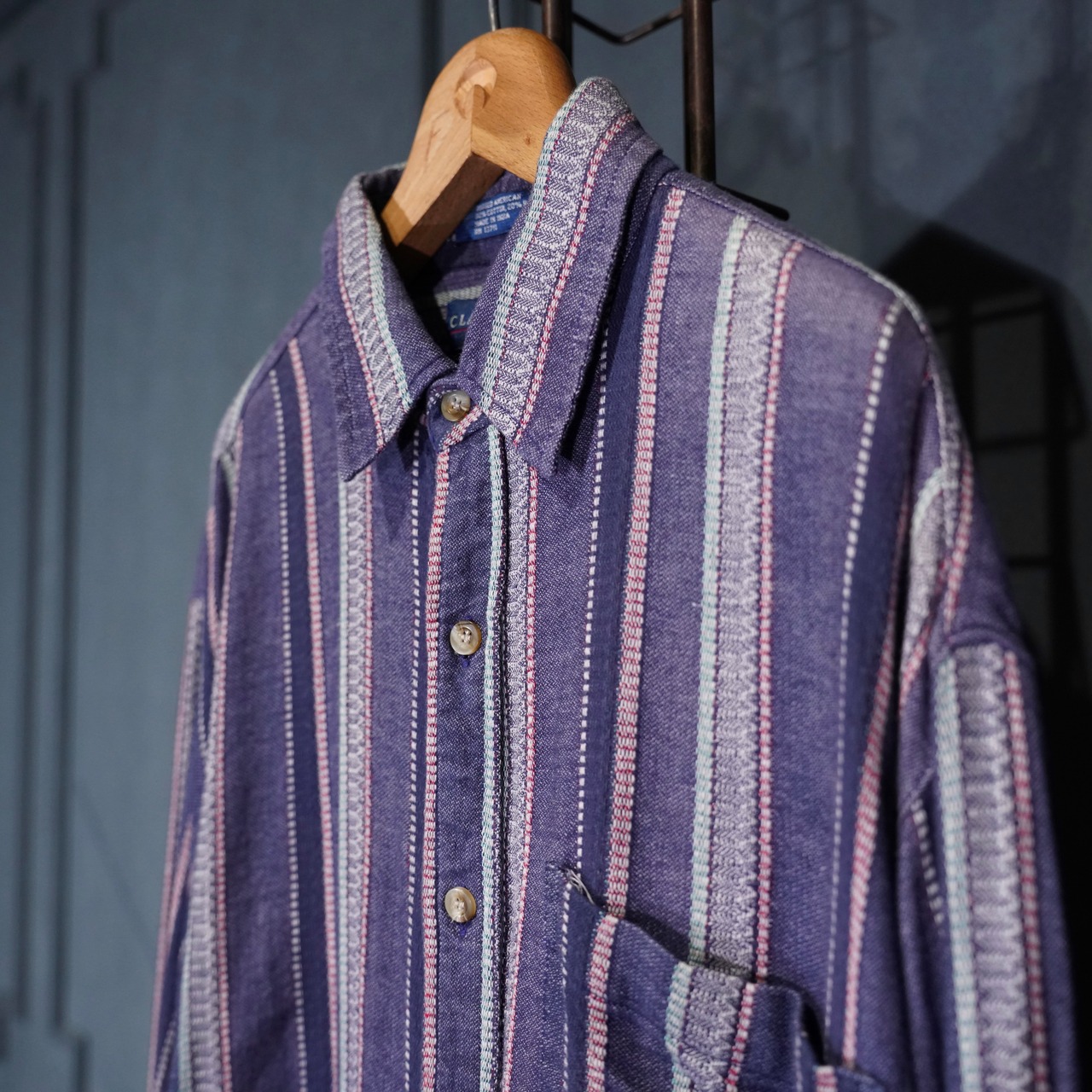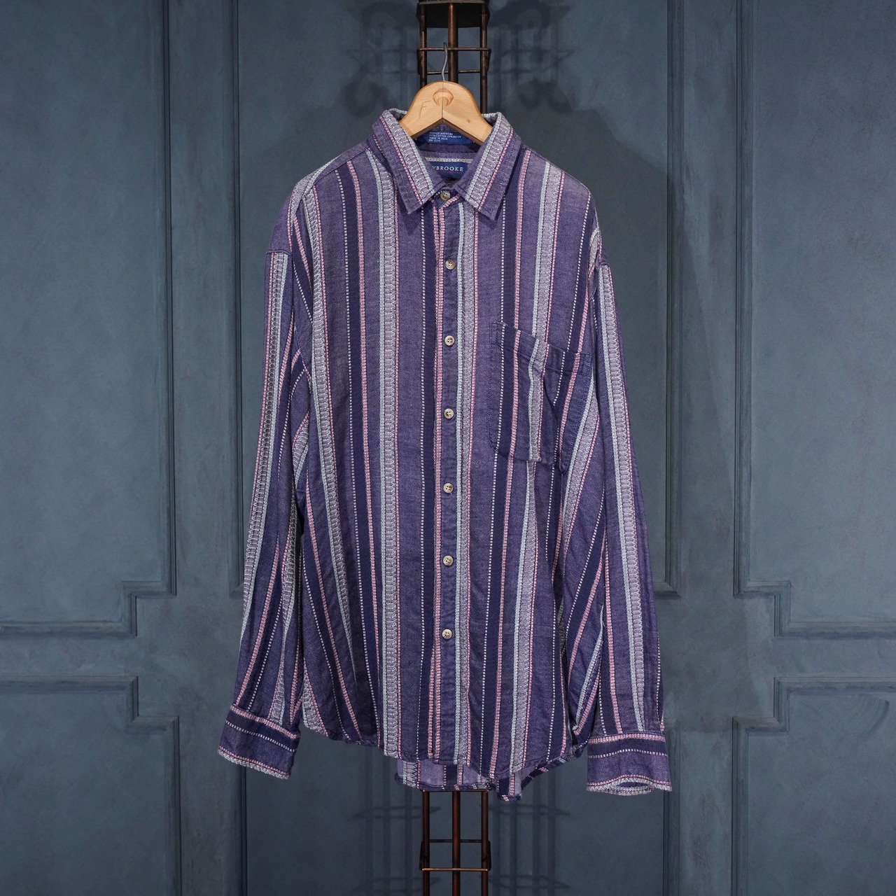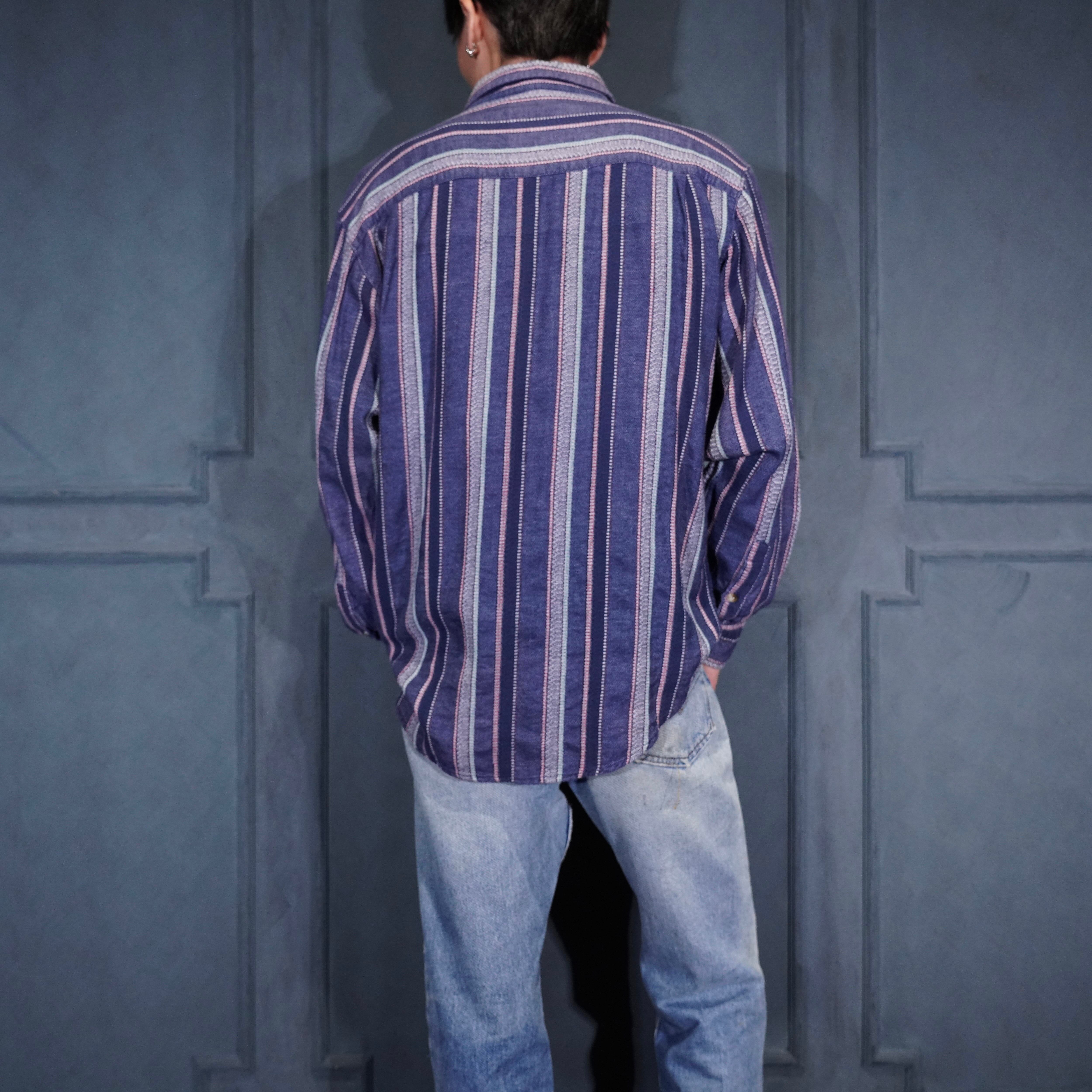 USA VINTAGE CLAYBROOKE EMBROIDERY STRIPE PATTERNED DESIGN SHIRT/アメリカ古着刺繍ストライプ柄デザインシャツ