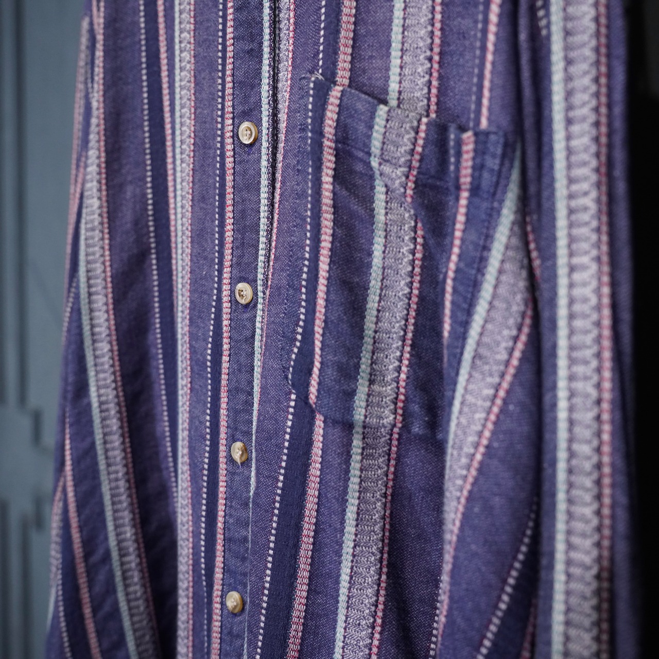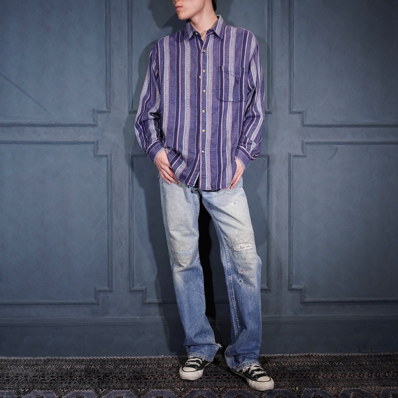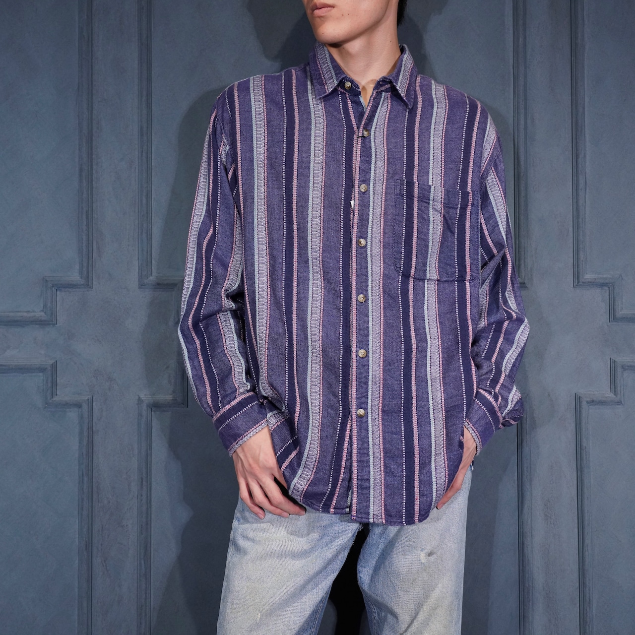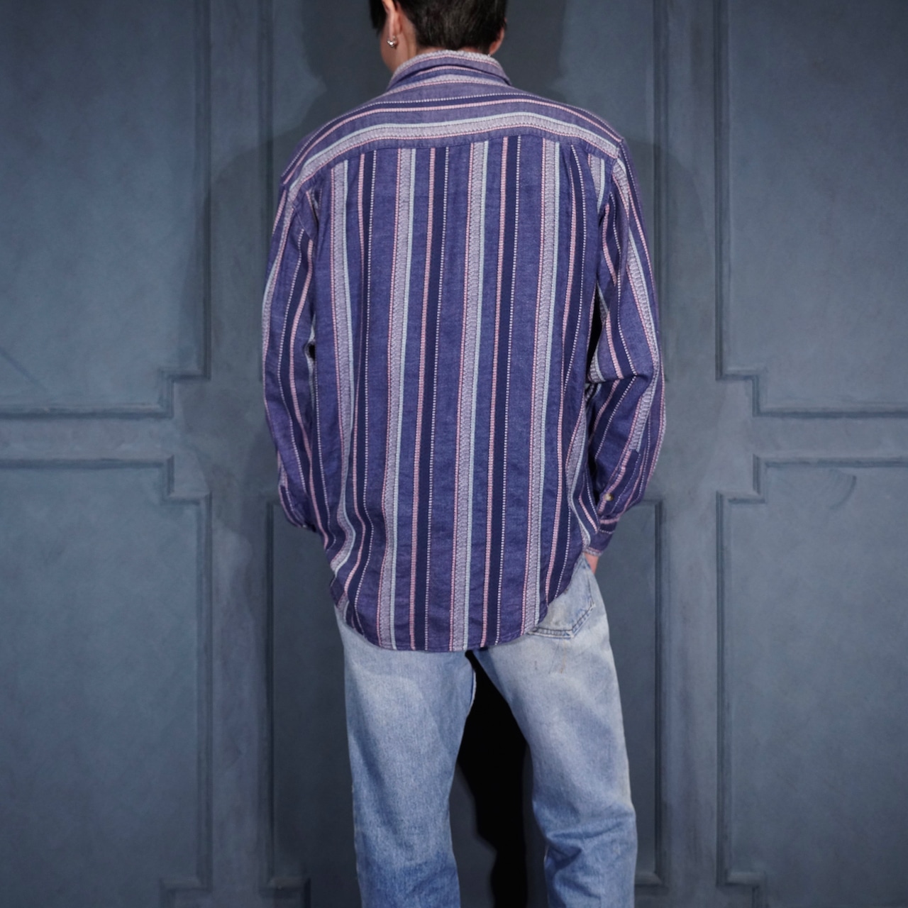 USA VINTAGE CLAYBROOKE EMBROIDERY STRIPE PATTERNED DESIGN SHIRT/アメリカ古着刺繍ストライプ柄デザインシャツ