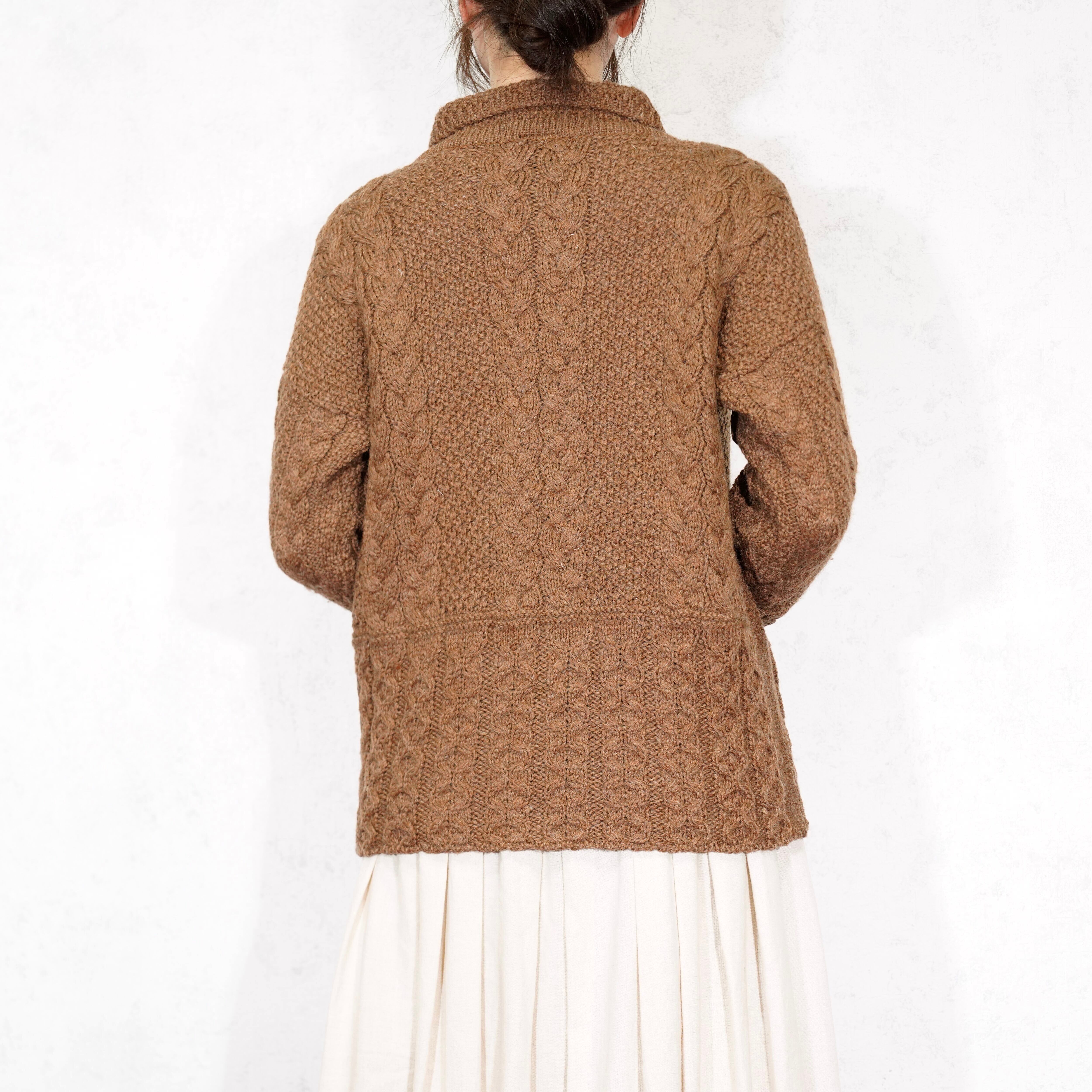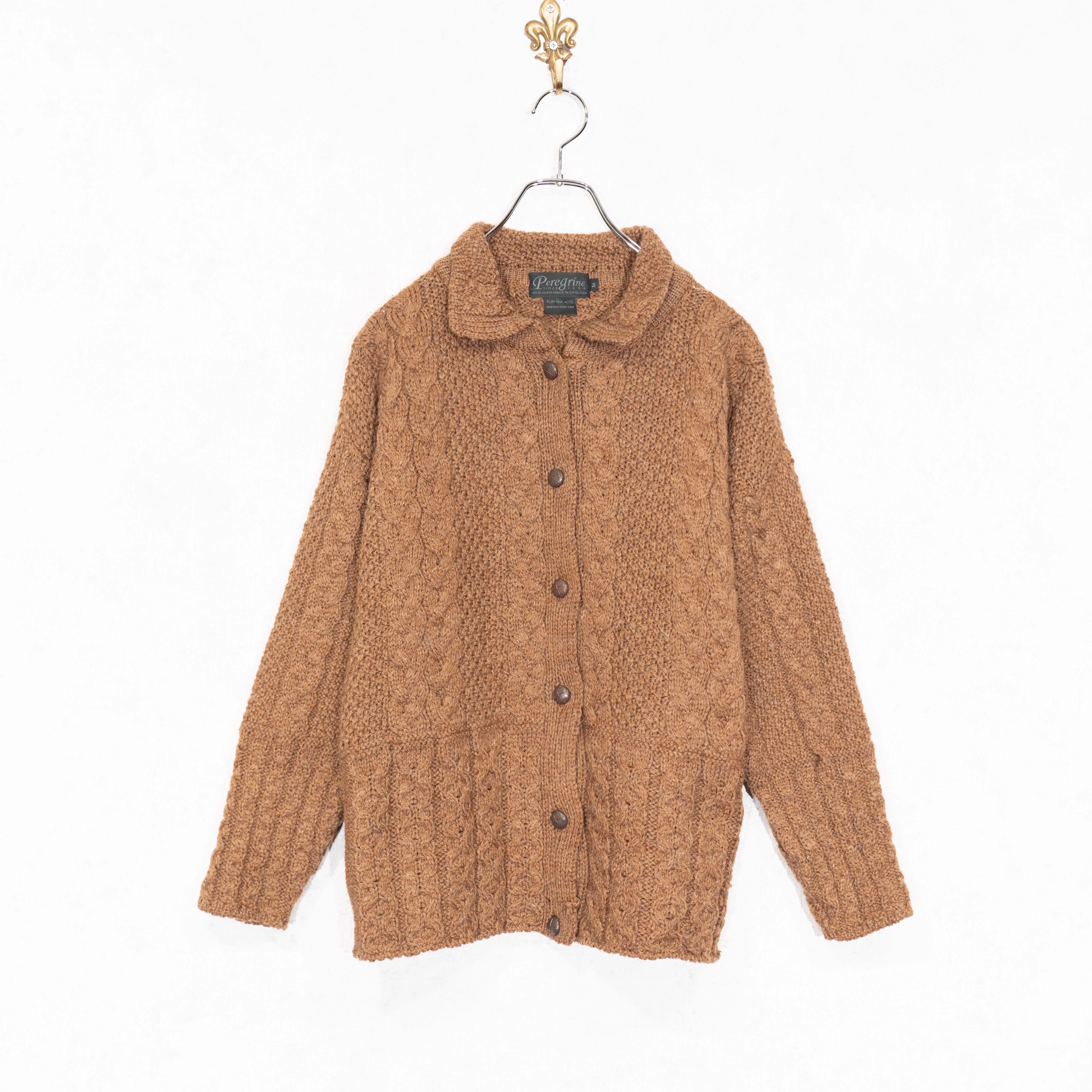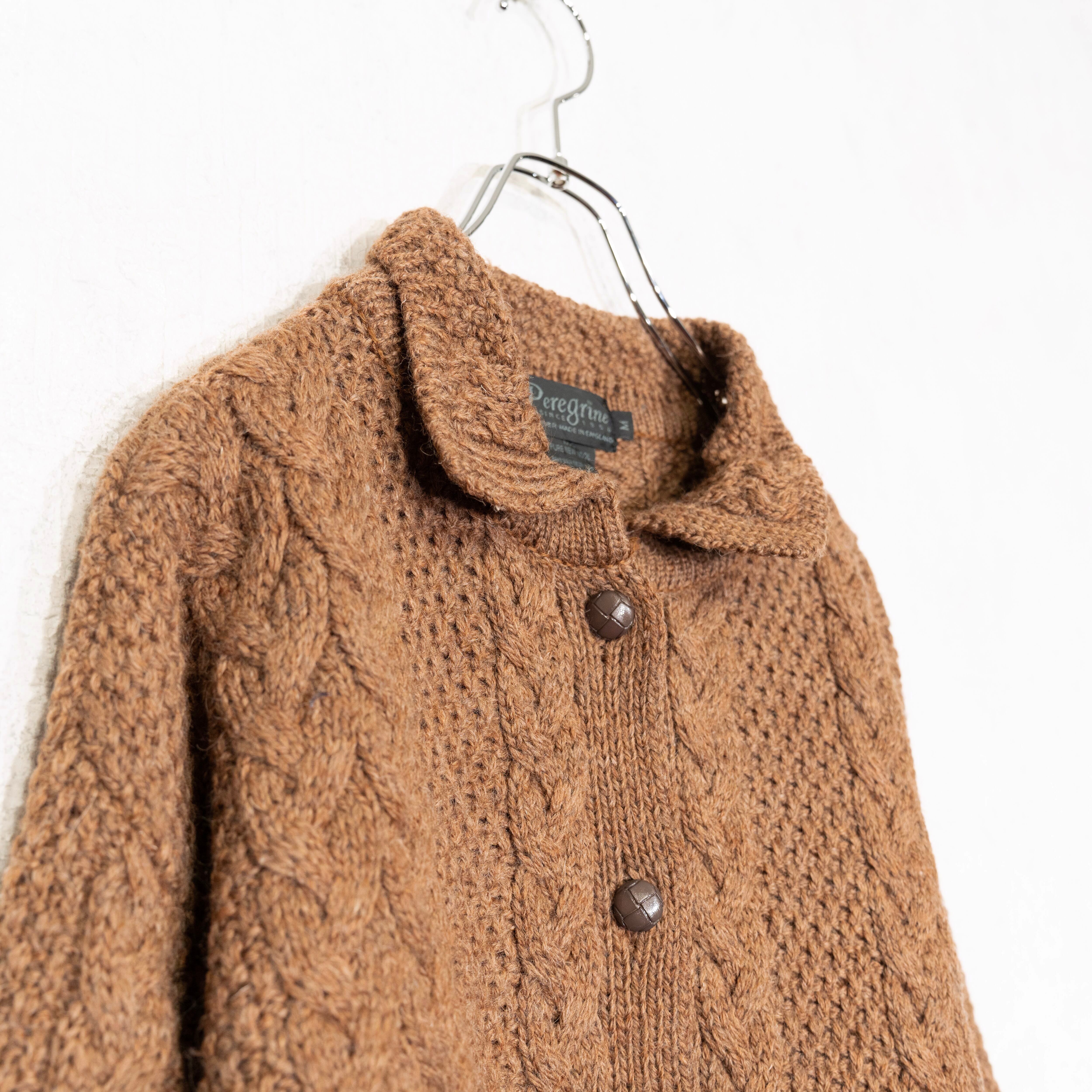 EU VINTAGE Peregrine COLLAR DESIGN CABLE KNIT CARDIGAN JACKET MADE IN ENGLAND/ヨーロッパ古着襟デザインケーブルニットカーディガン(ジャケット)