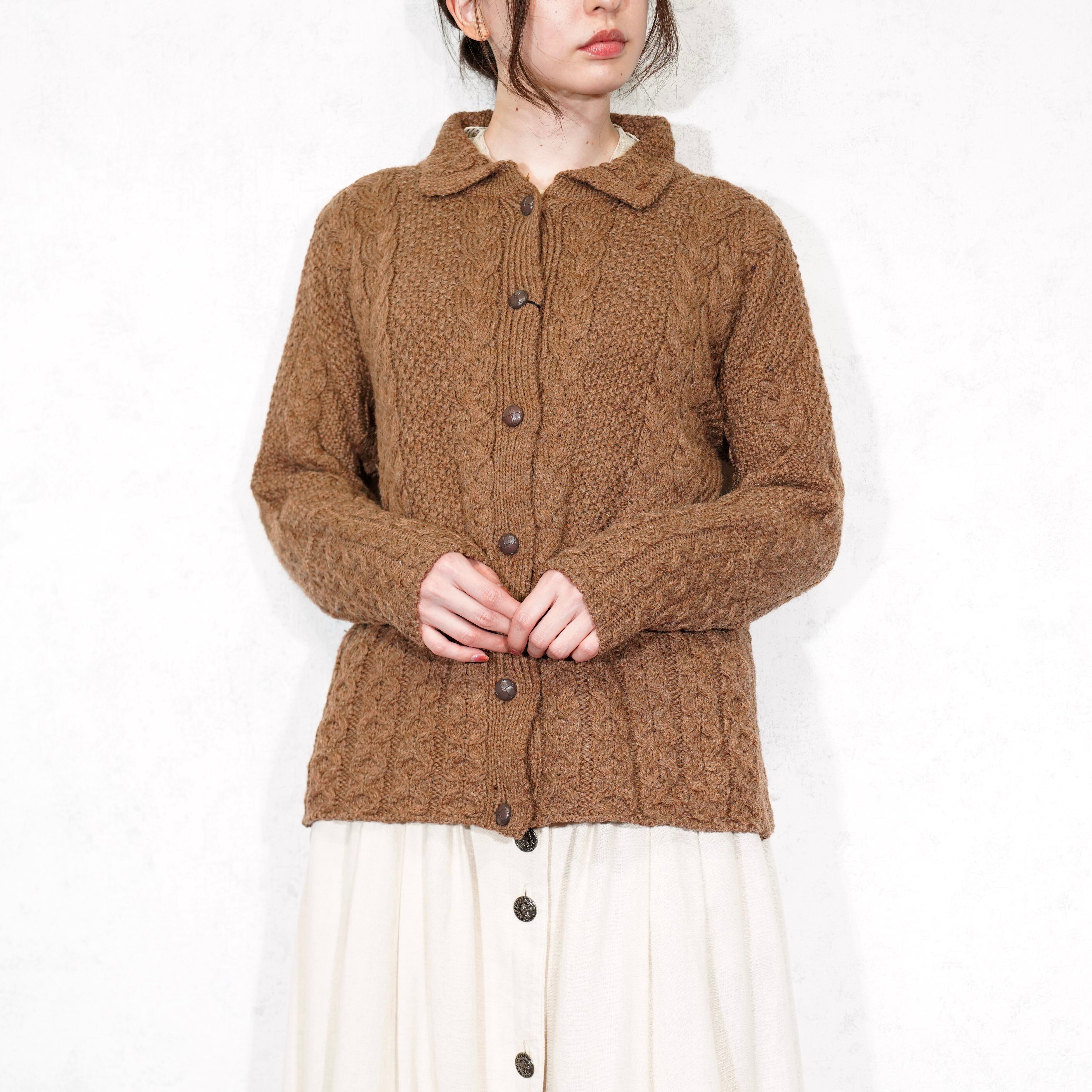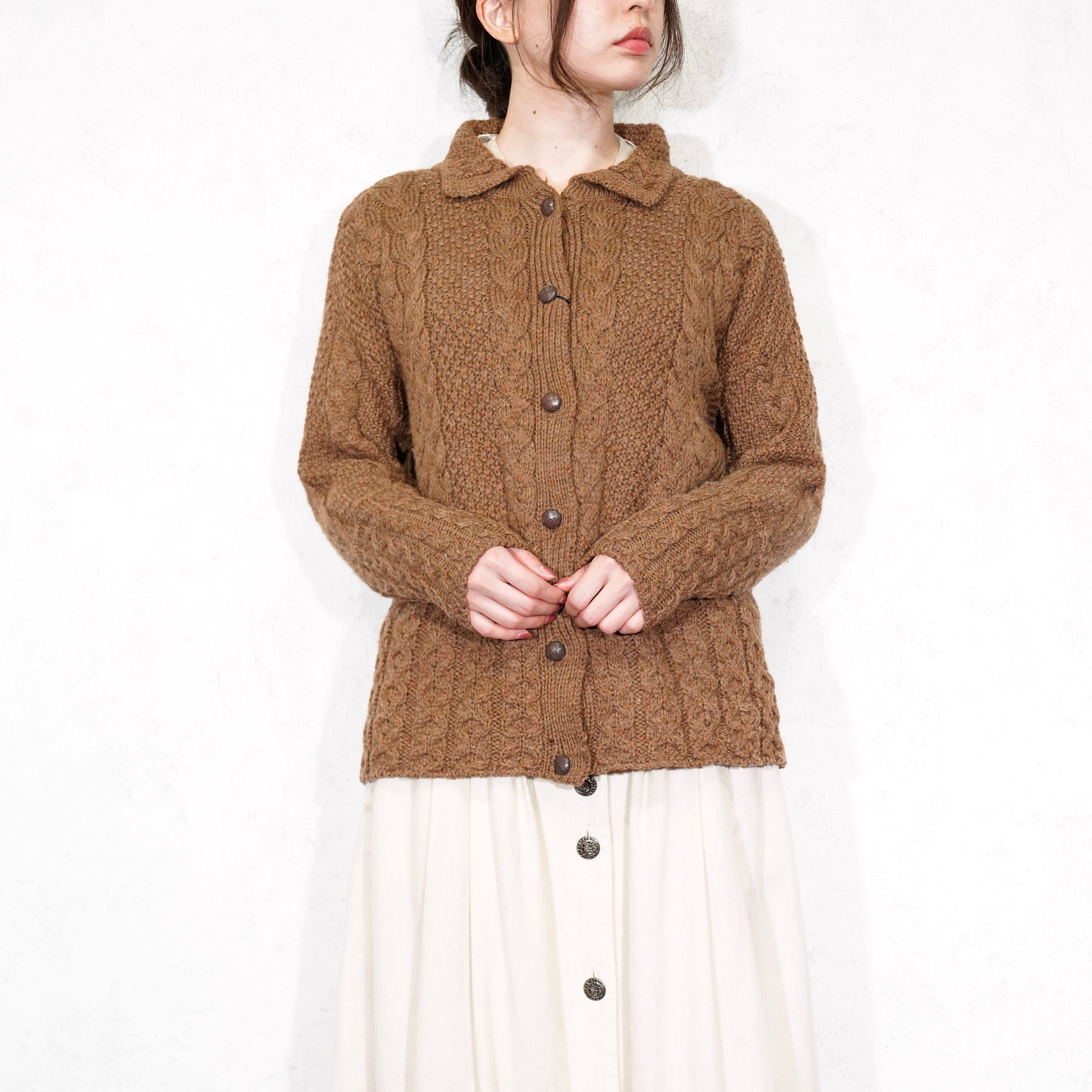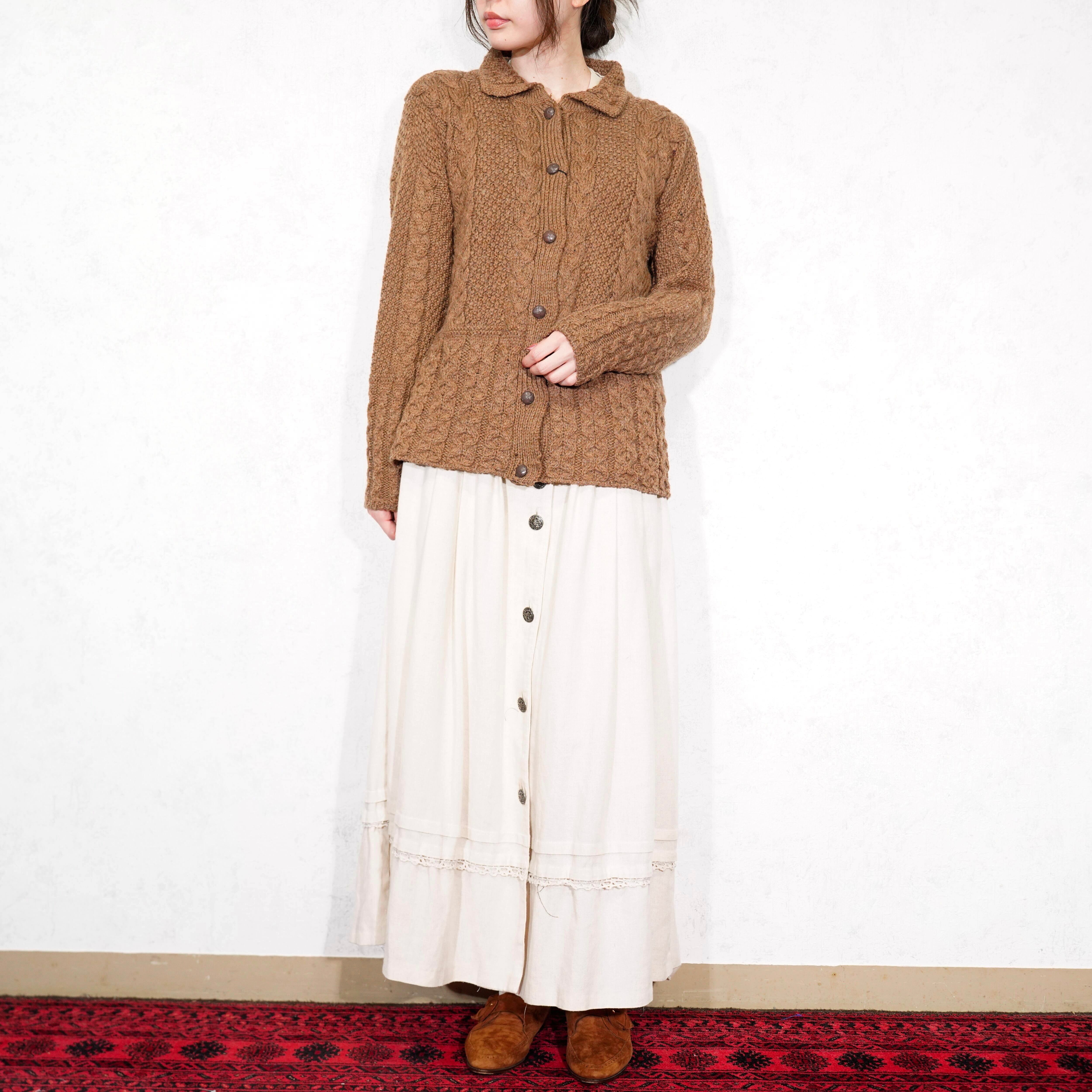 EU VINTAGE Peregrine COLLAR DESIGN CABLE KNIT CARDIGAN JACKET MADE IN ENGLAND/ヨーロッパ古着襟デザインケーブルニットカーディガン(ジャケット)